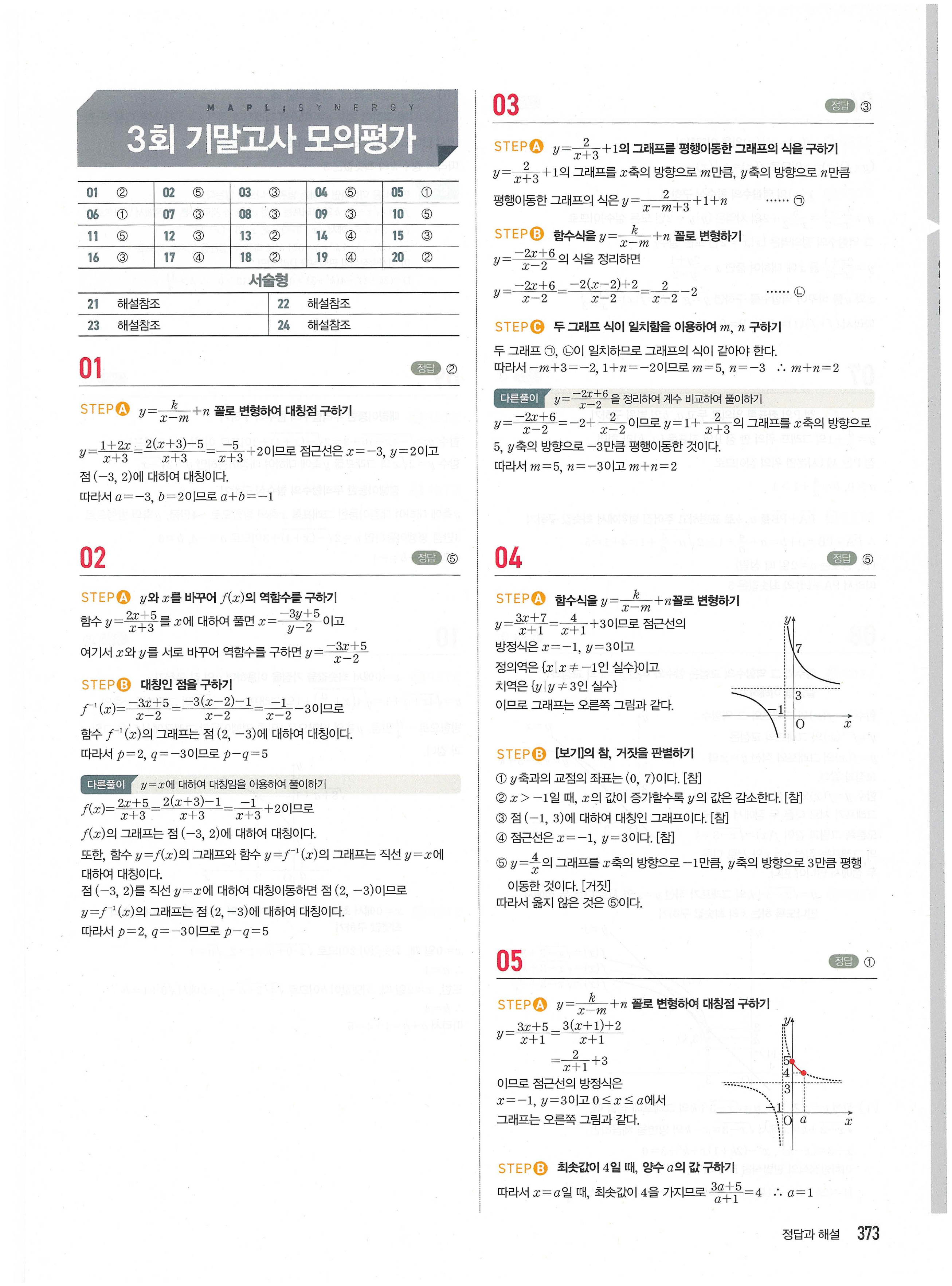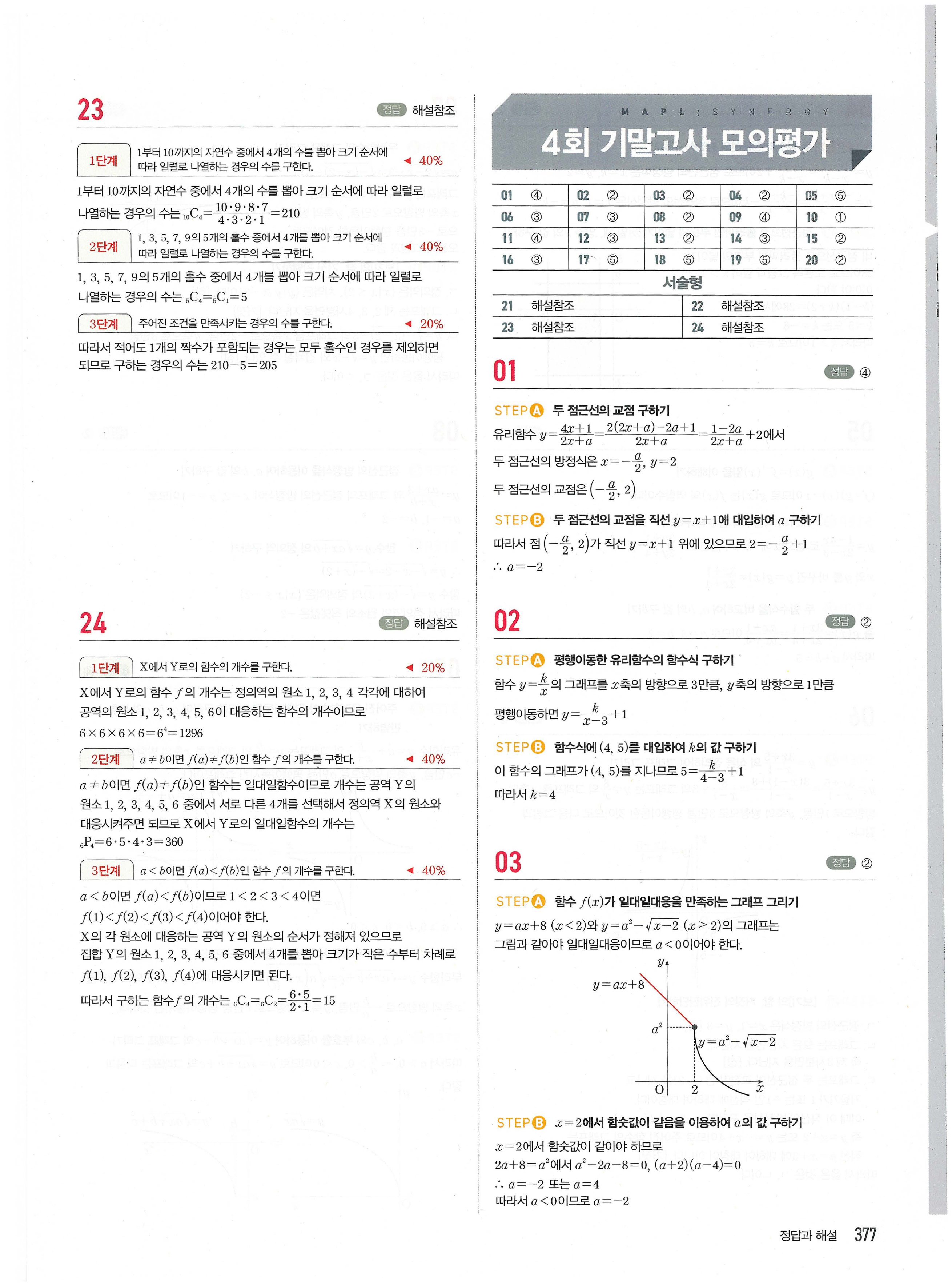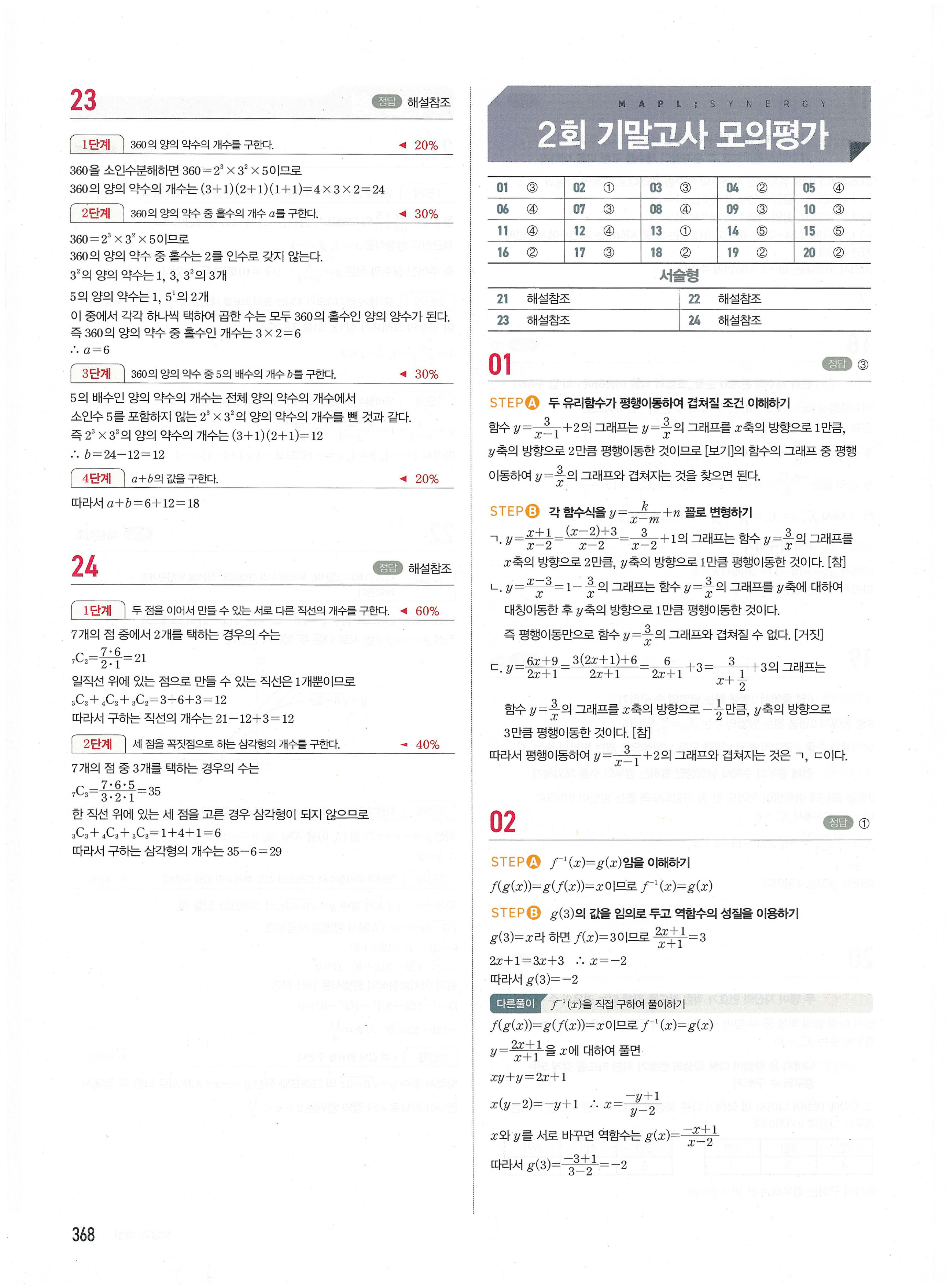 마플시너지 수학하 답지 사진답지 빠른답지 모바일최적화
