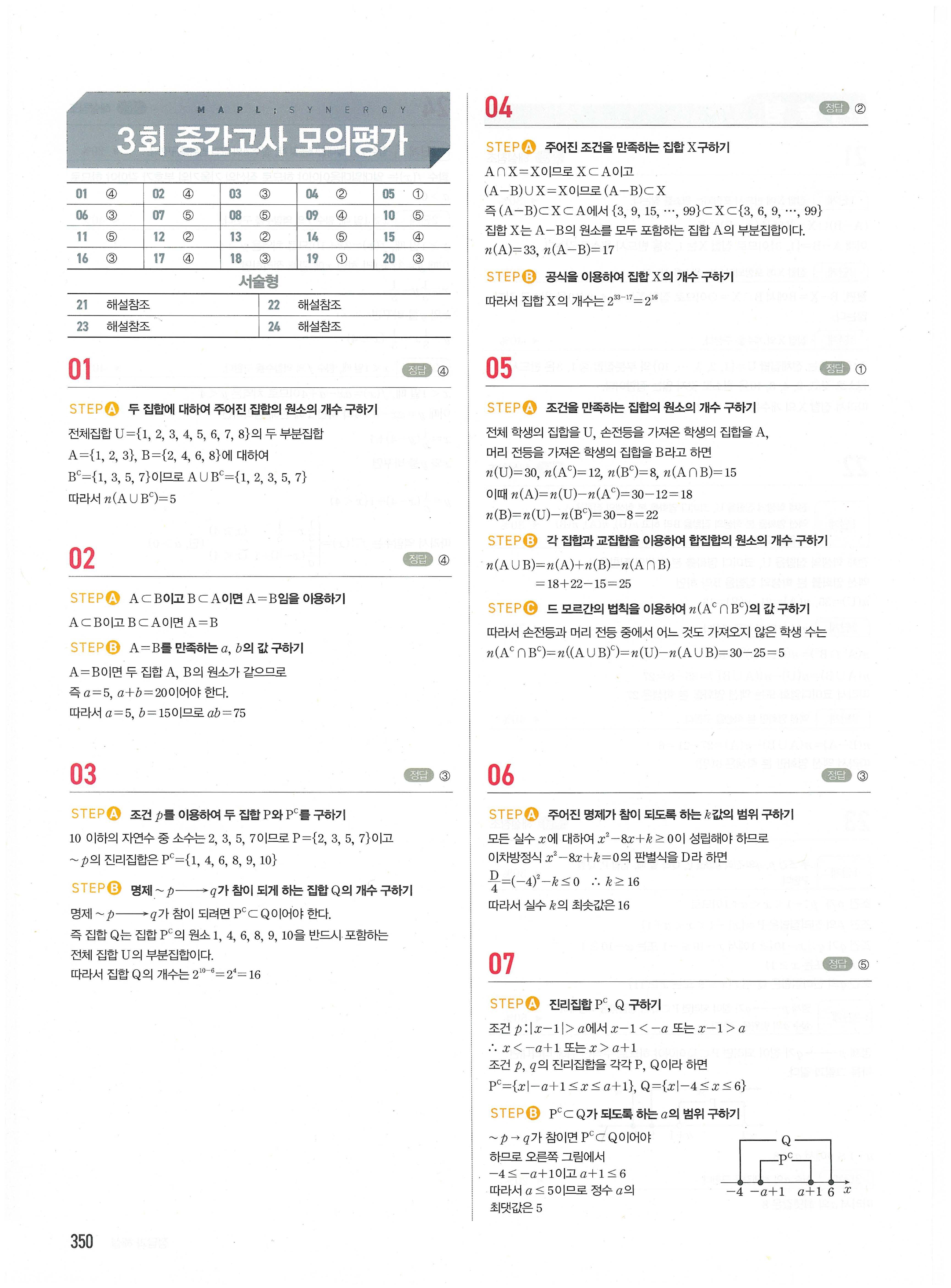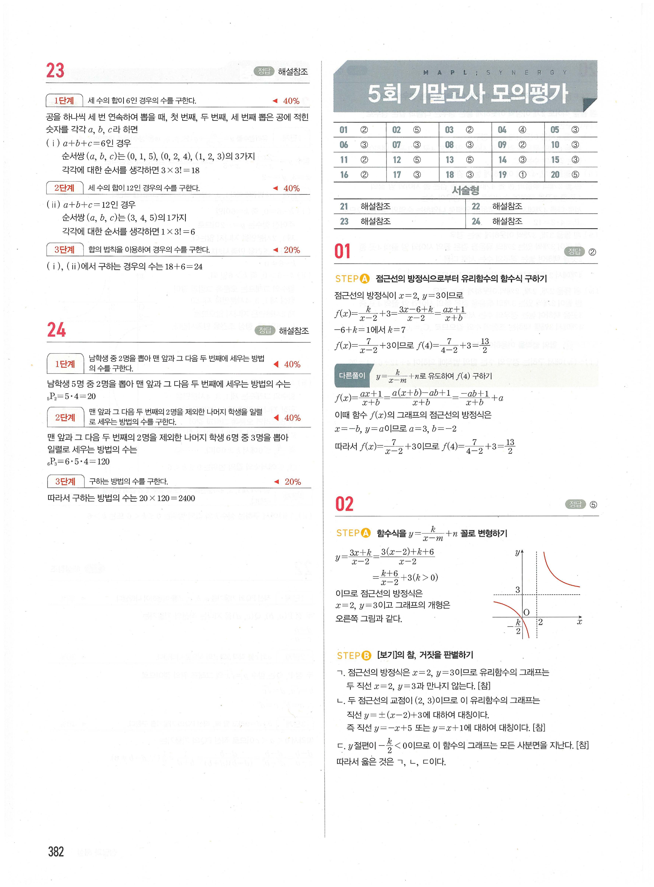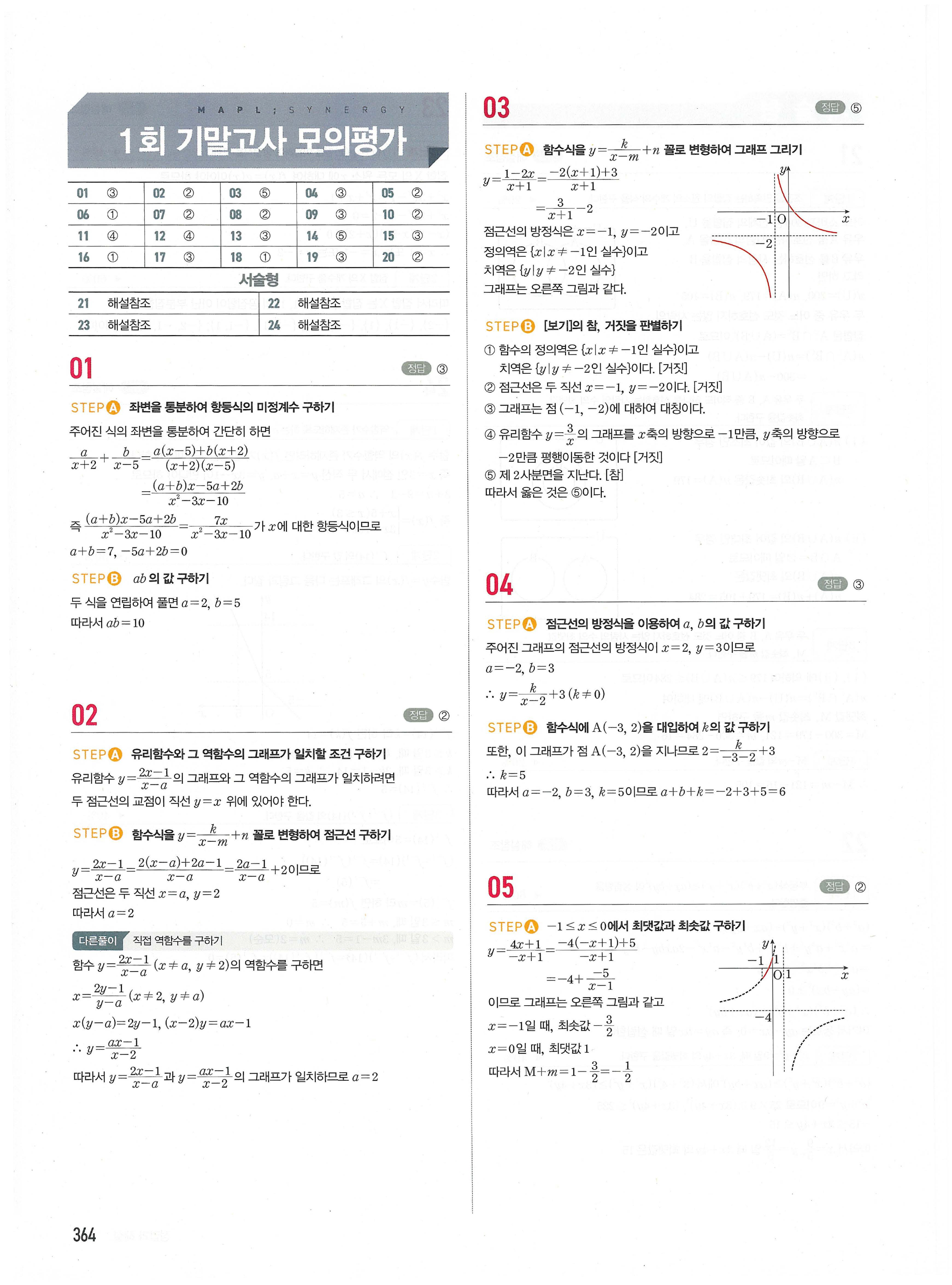 마플시너지 수학하 답지 사진답지 빠른답지 모바일최적화