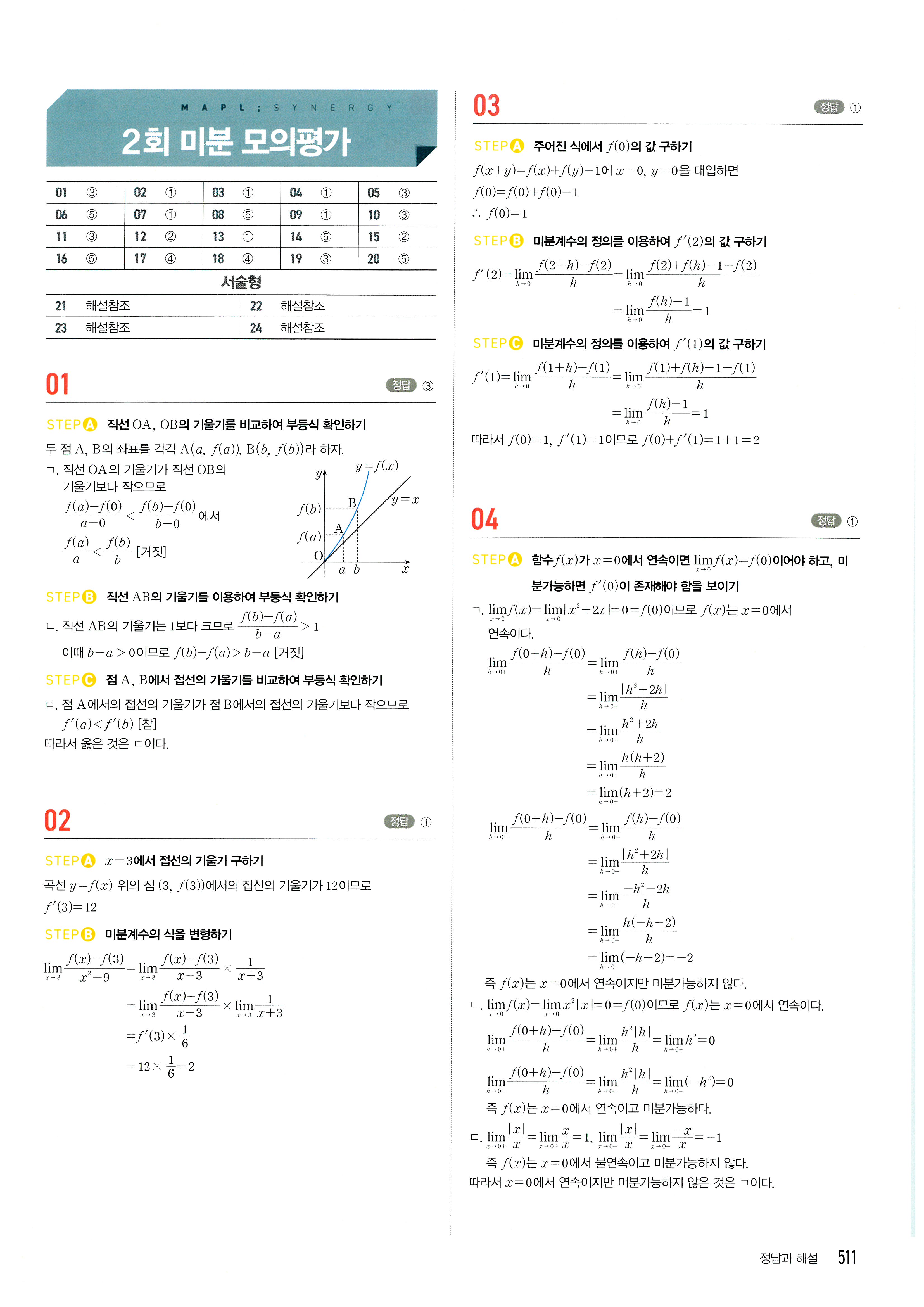마플시너지 수2 단원별 답지 링크