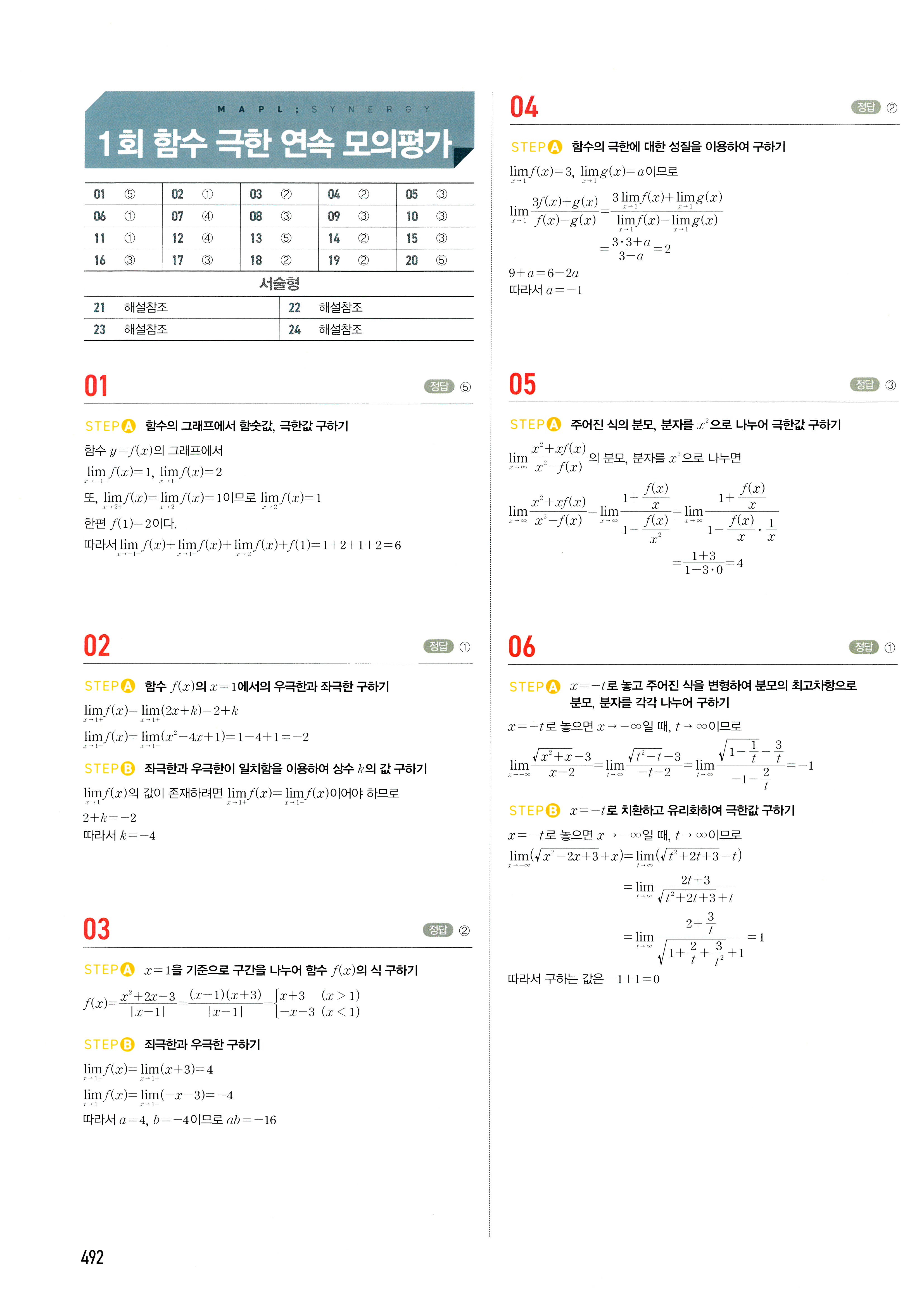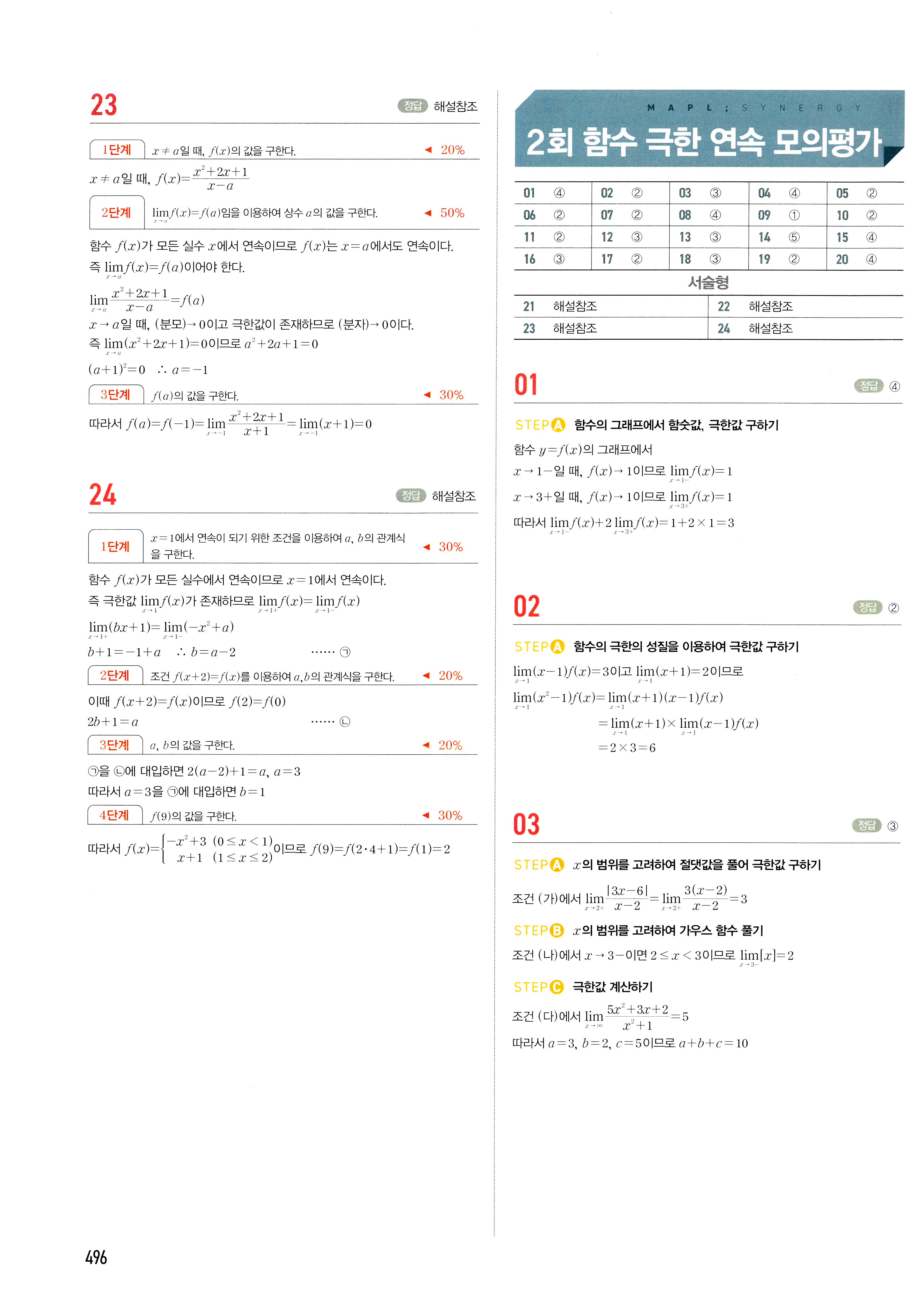 마플시너지 고등수학 전체 수상수하수1수2미적확통 빠른답지