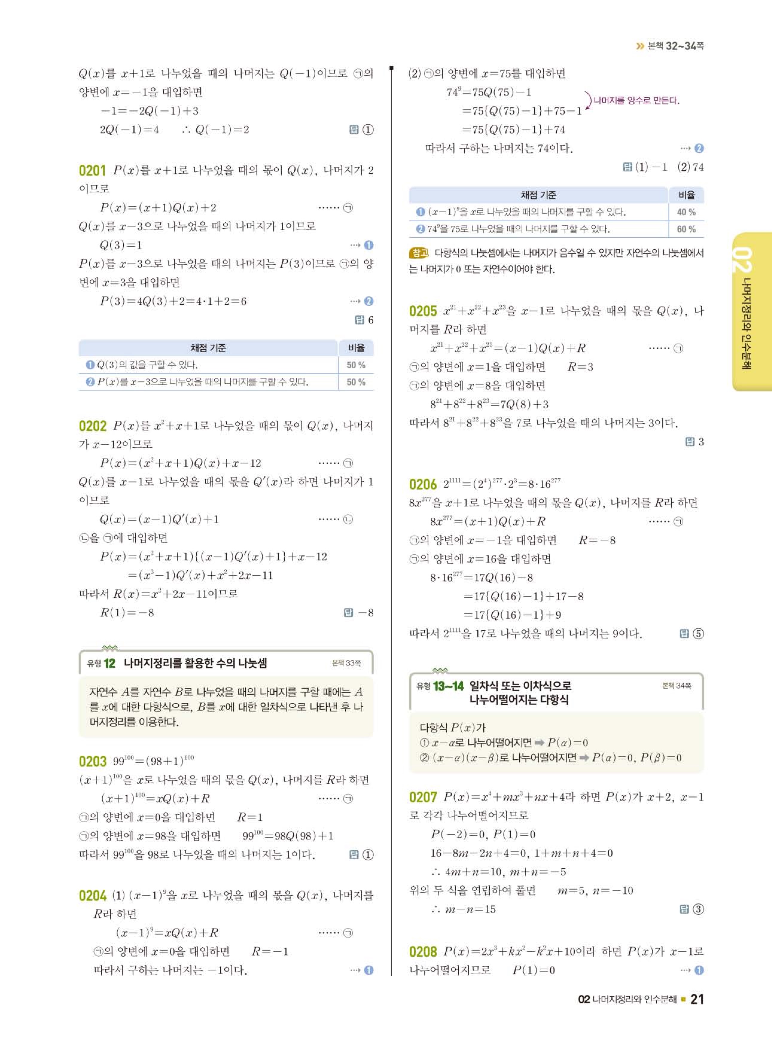 02 나머지정리와 인수분해
