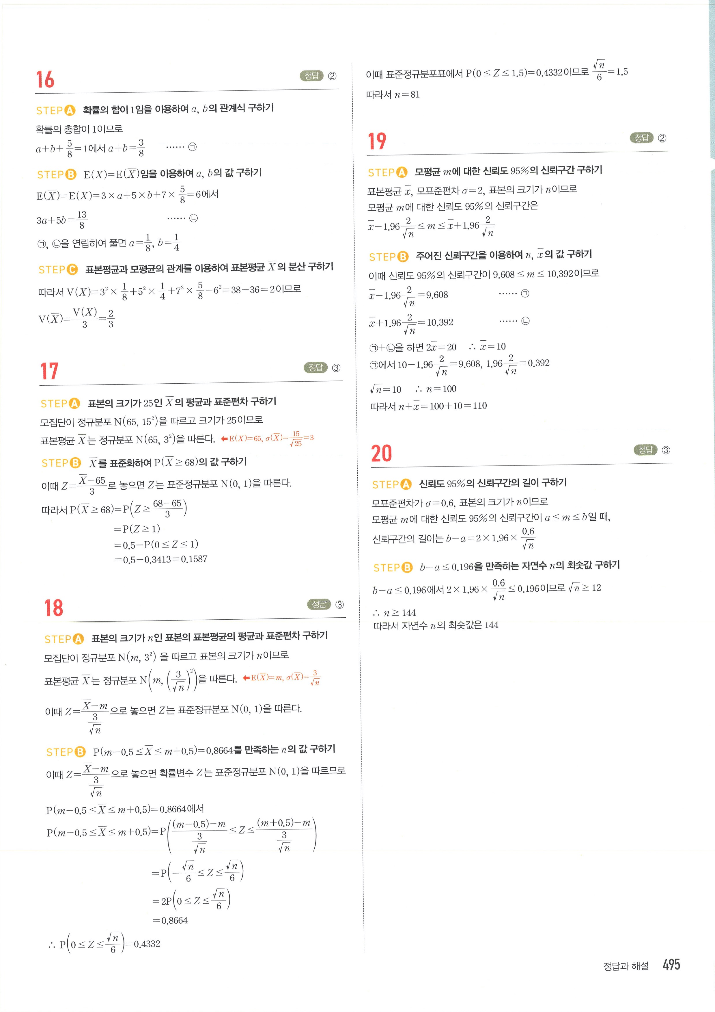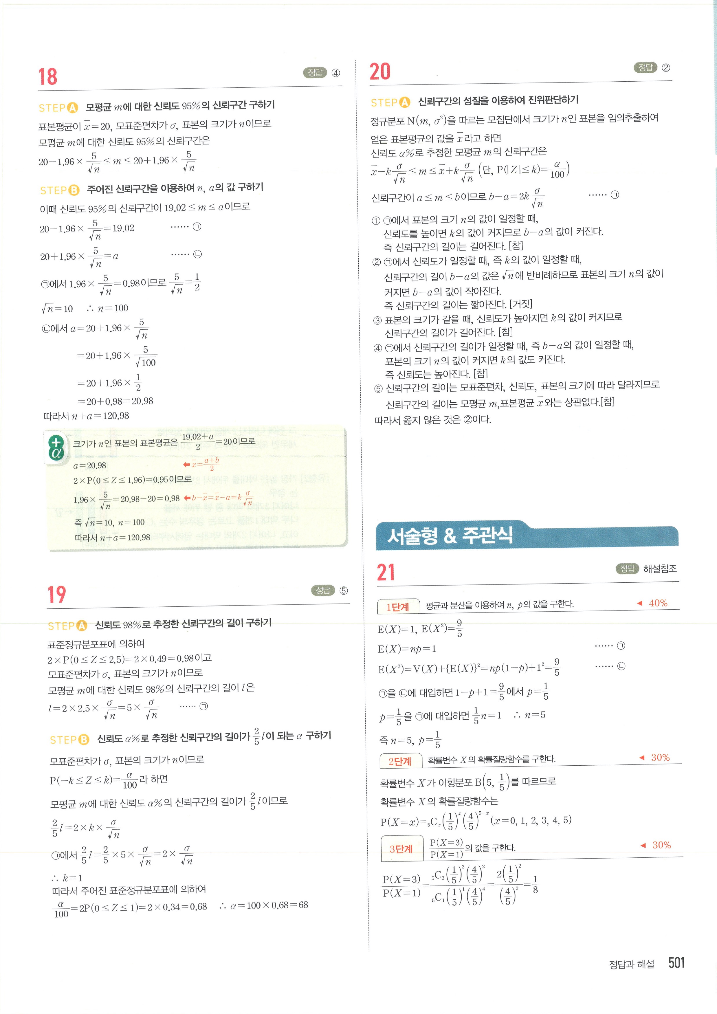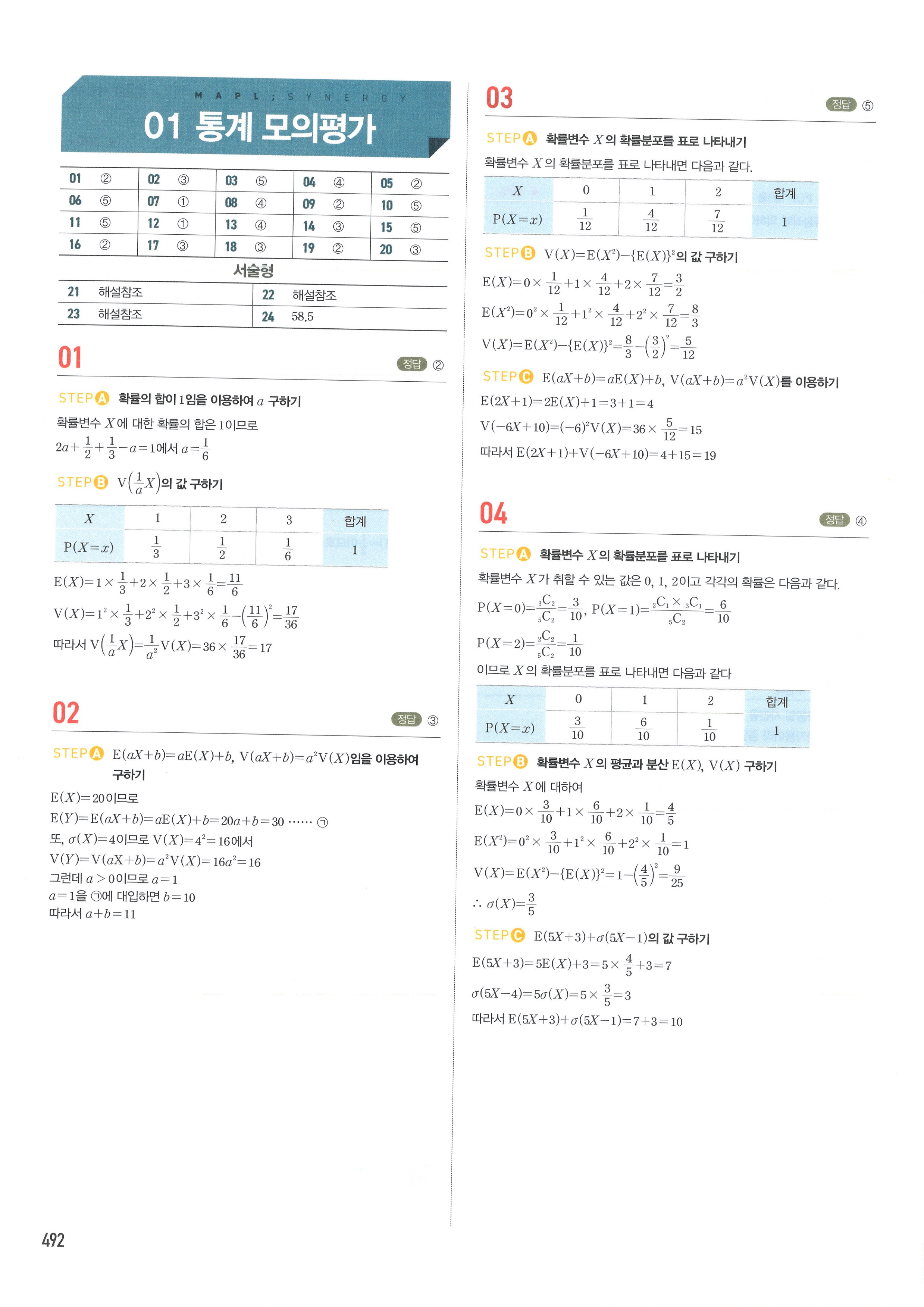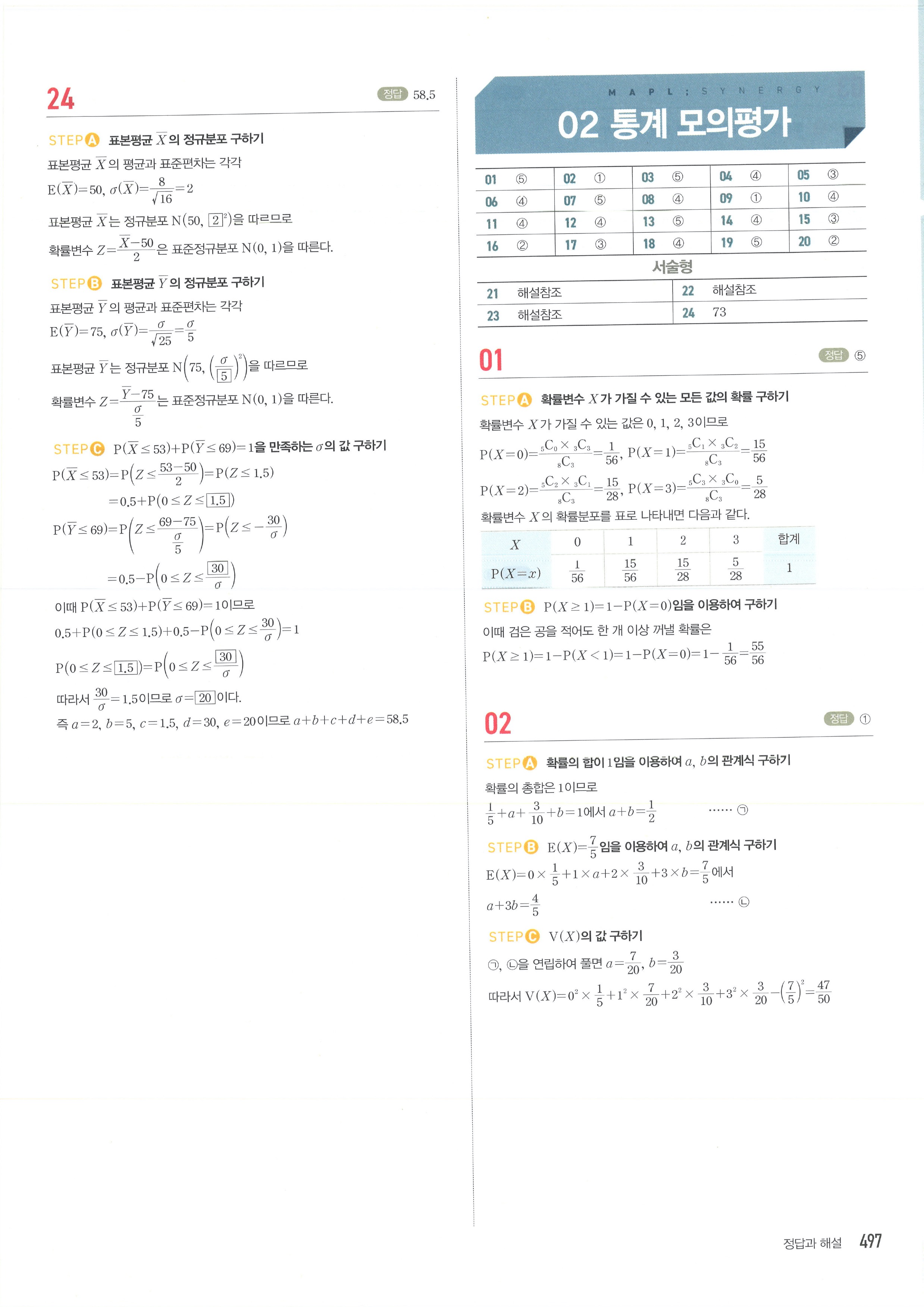 마플시너지 확률과통계 단원별 답지 통계모의평가