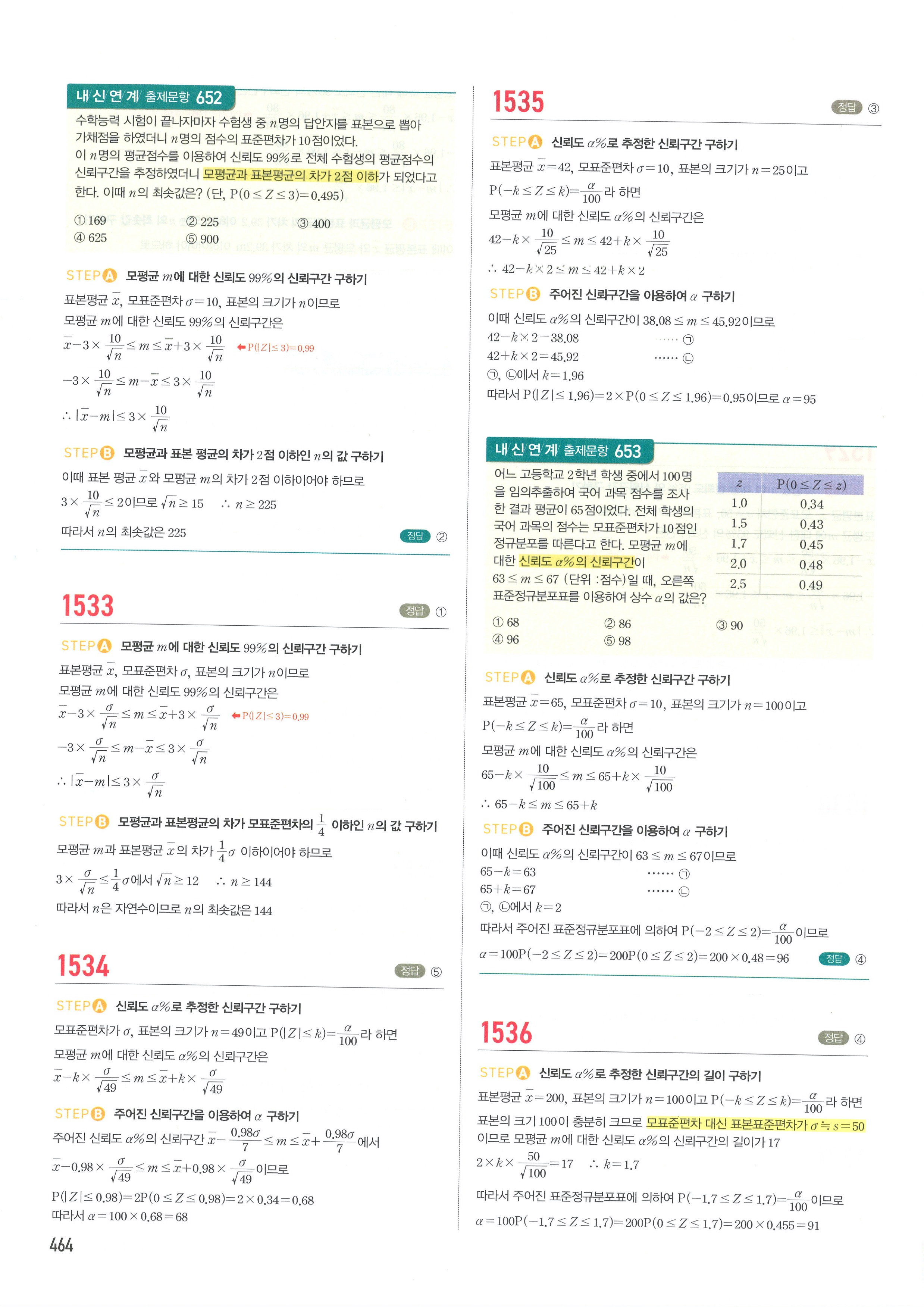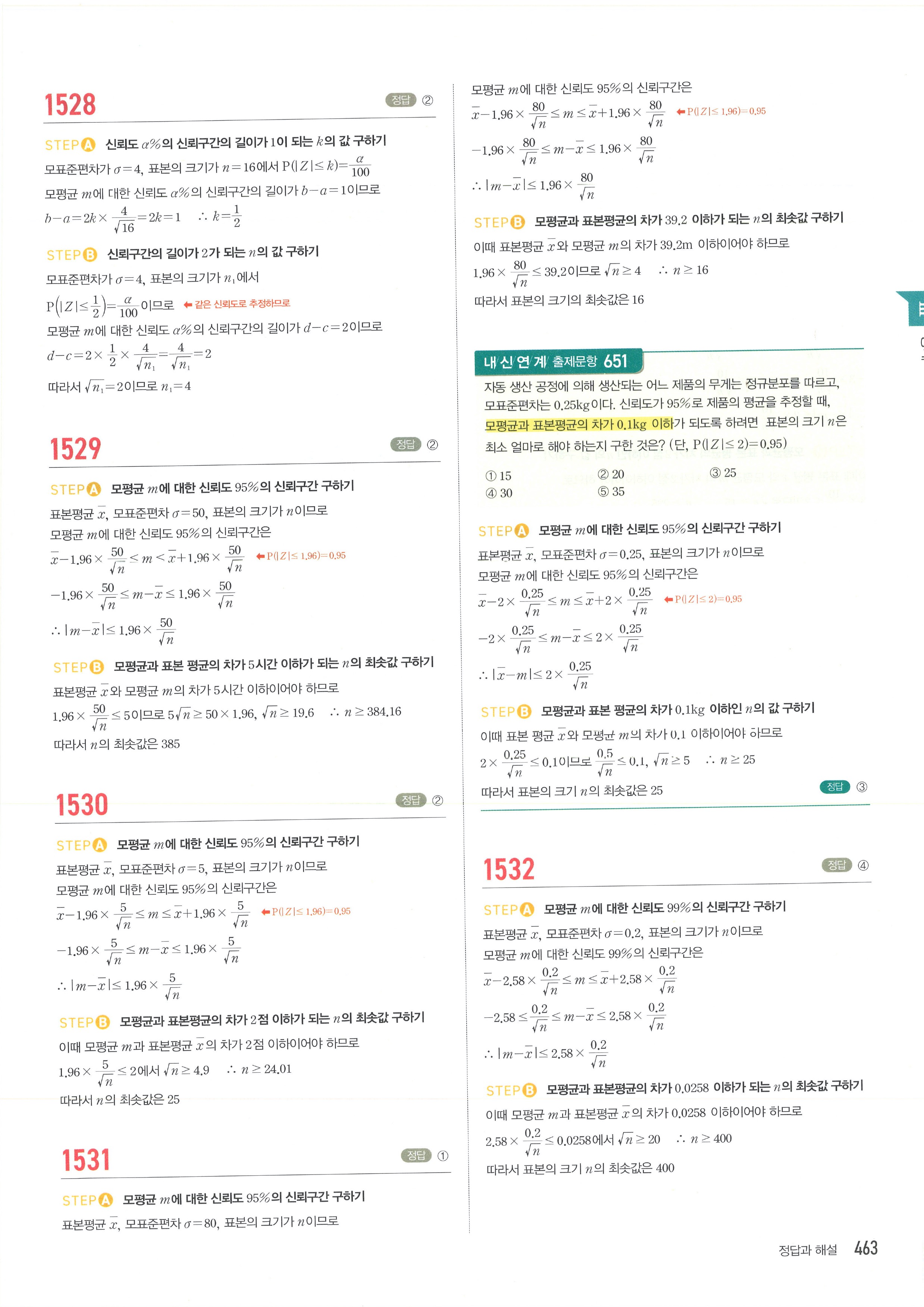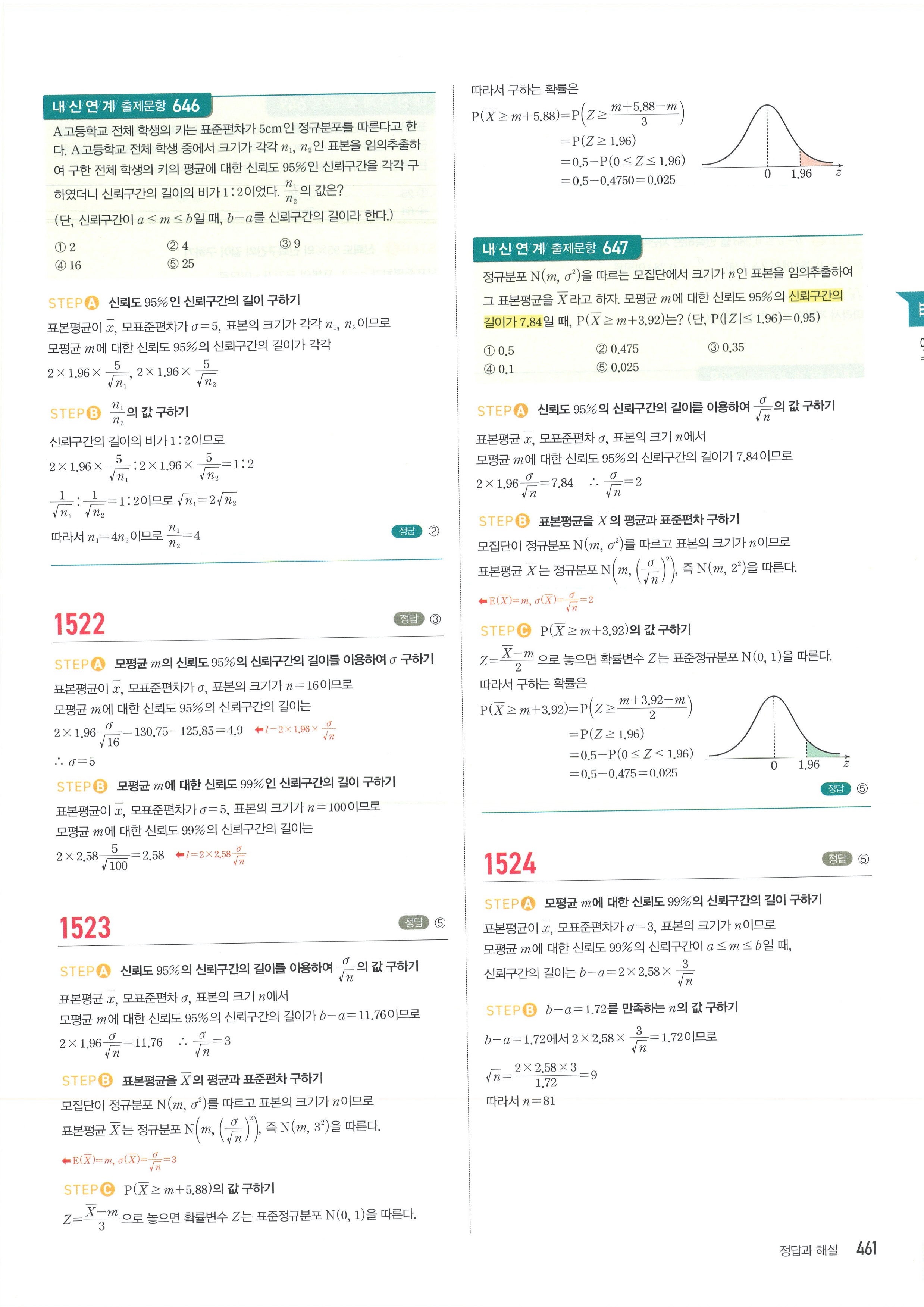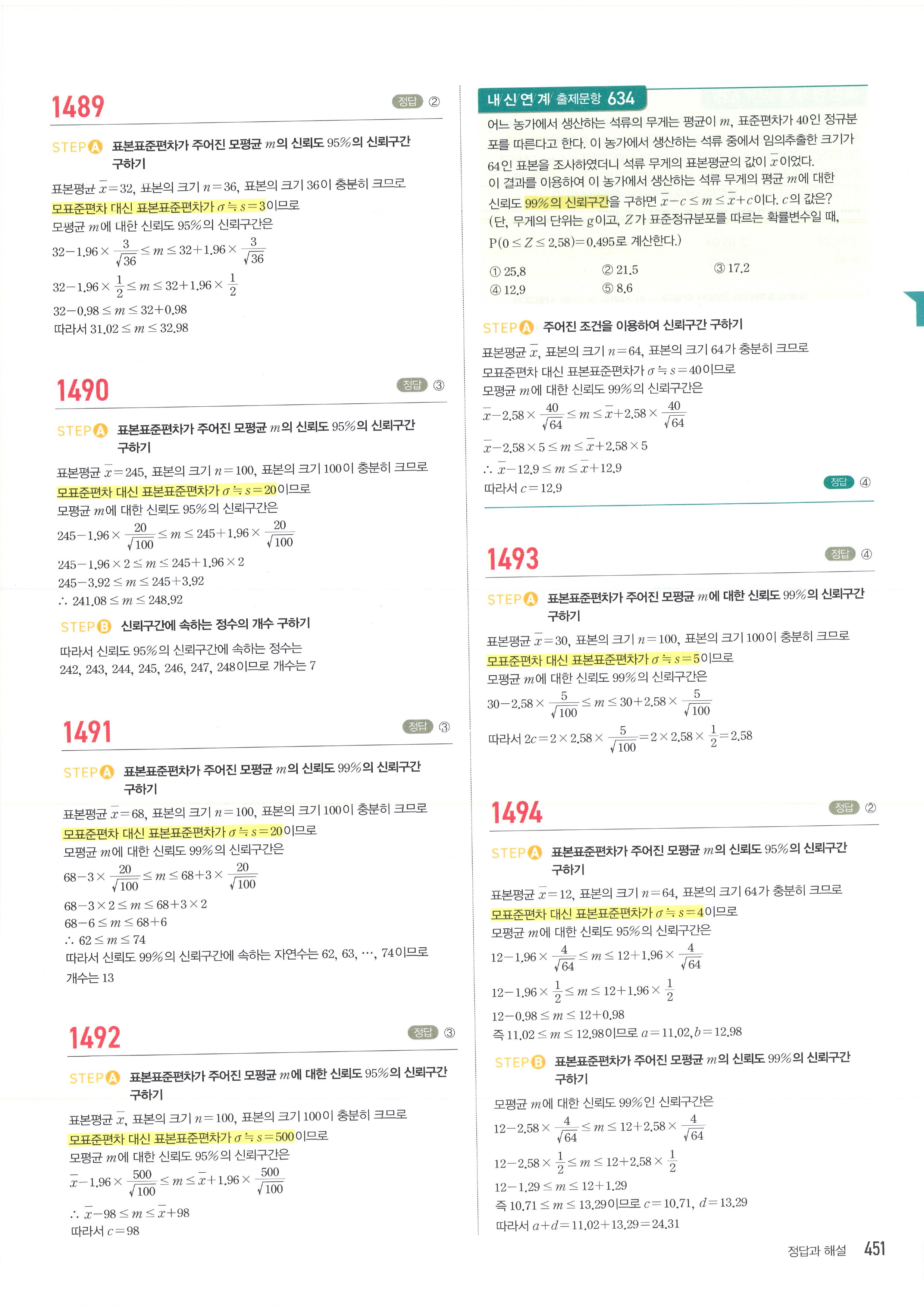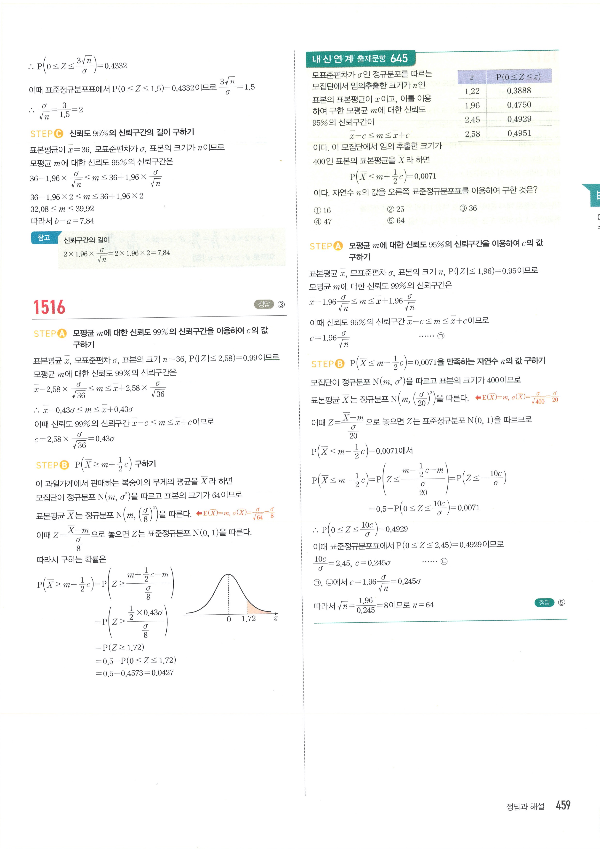 마플시너지 확률과통계 단원별 답지 3-06모평균의추정