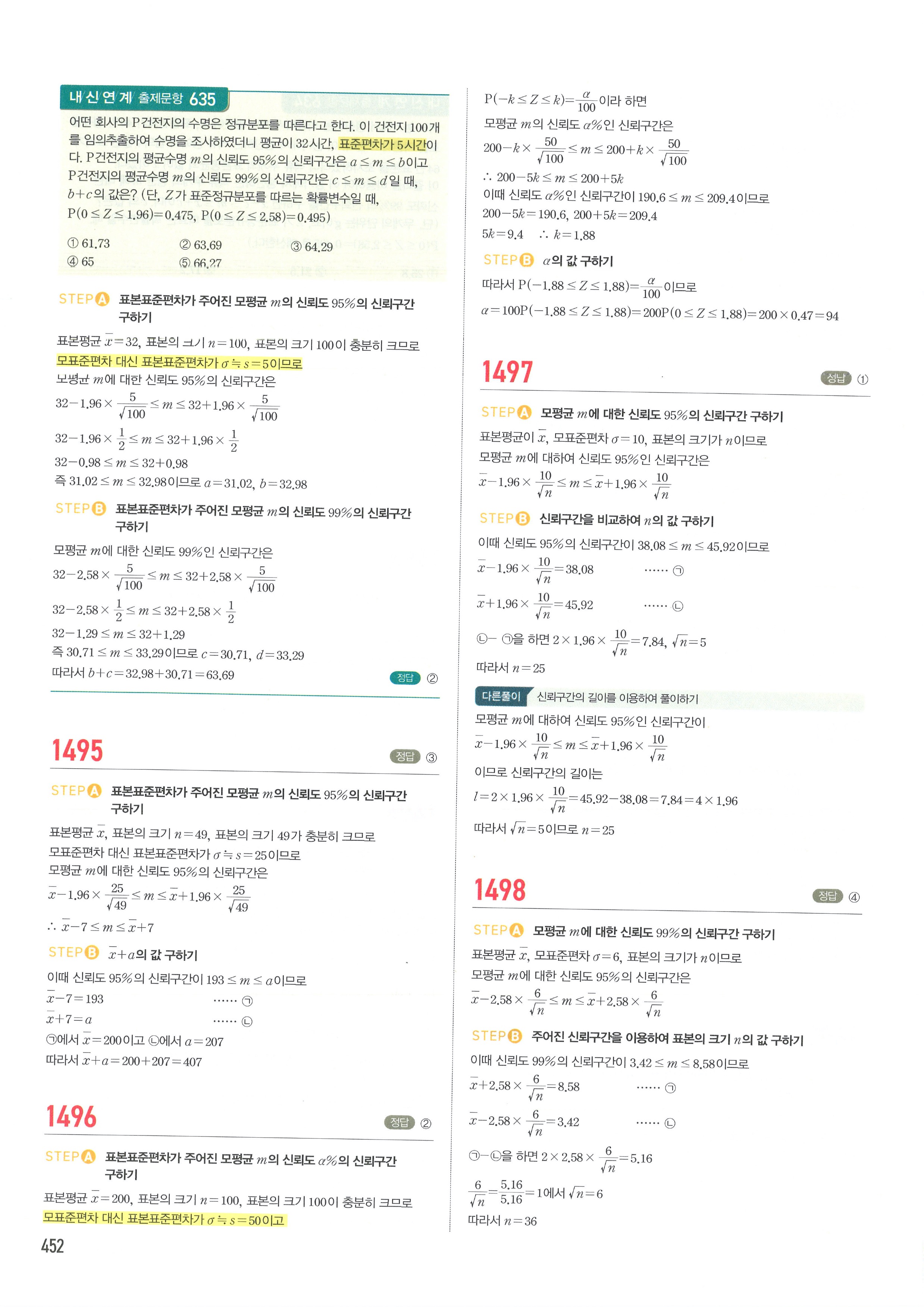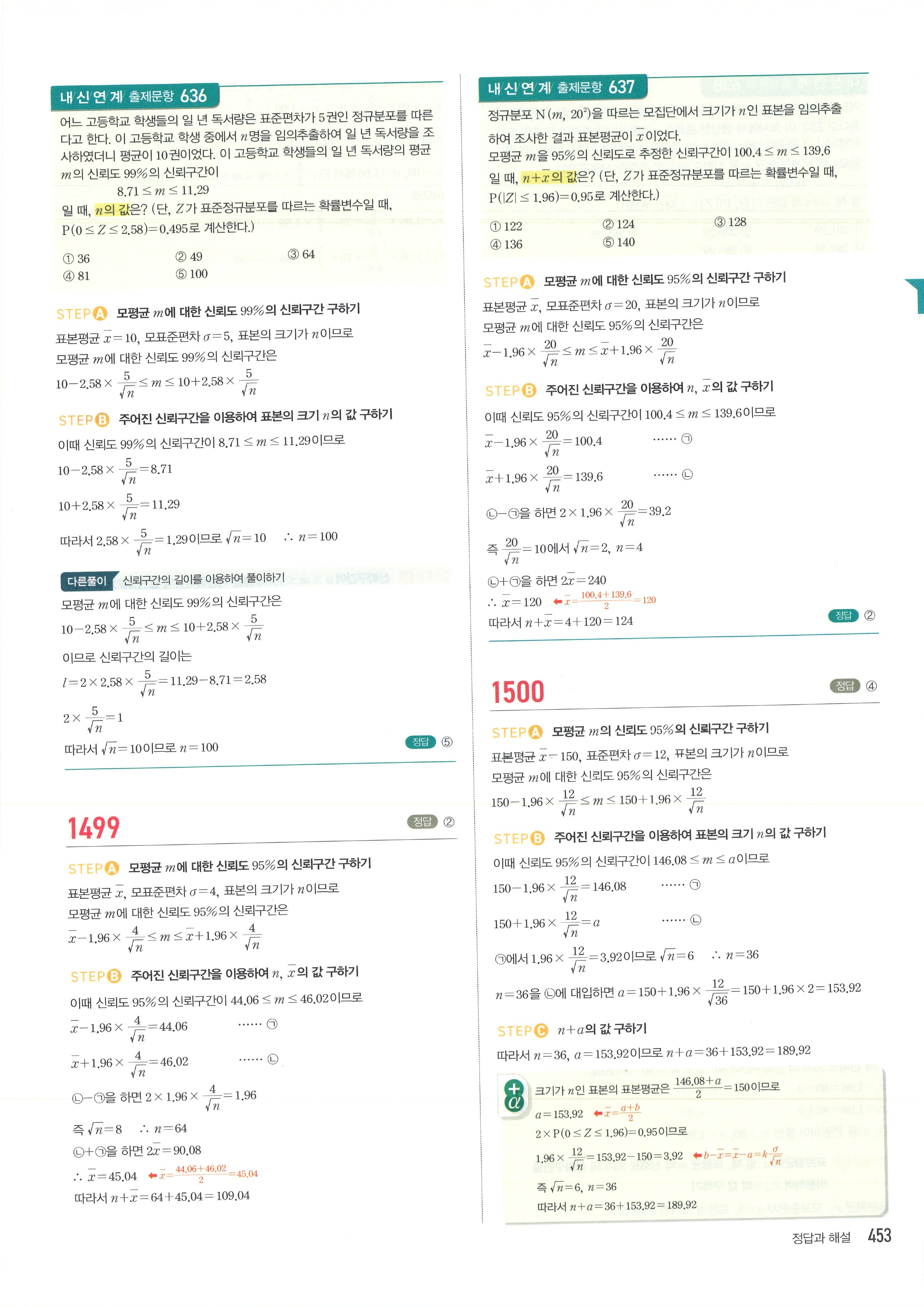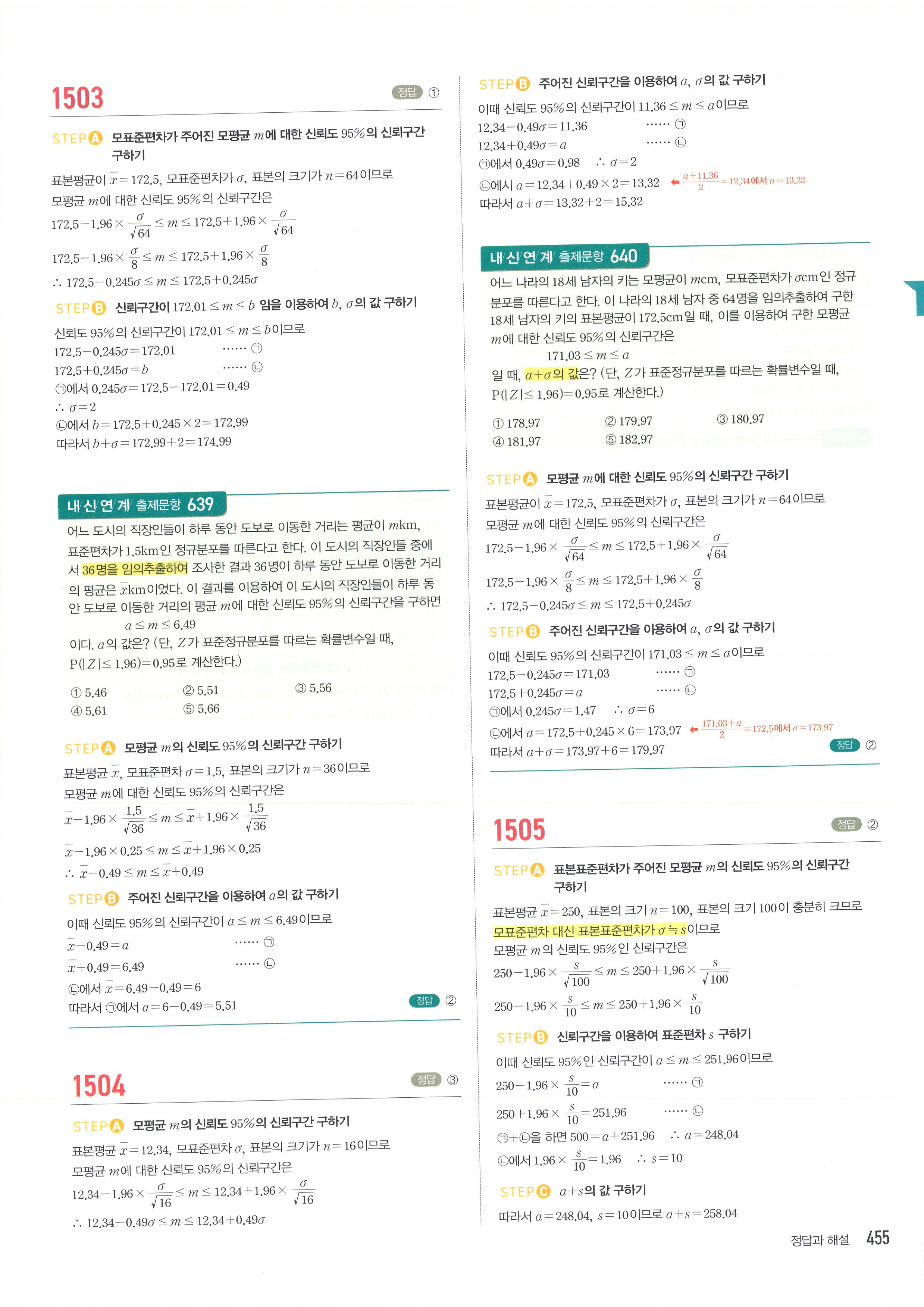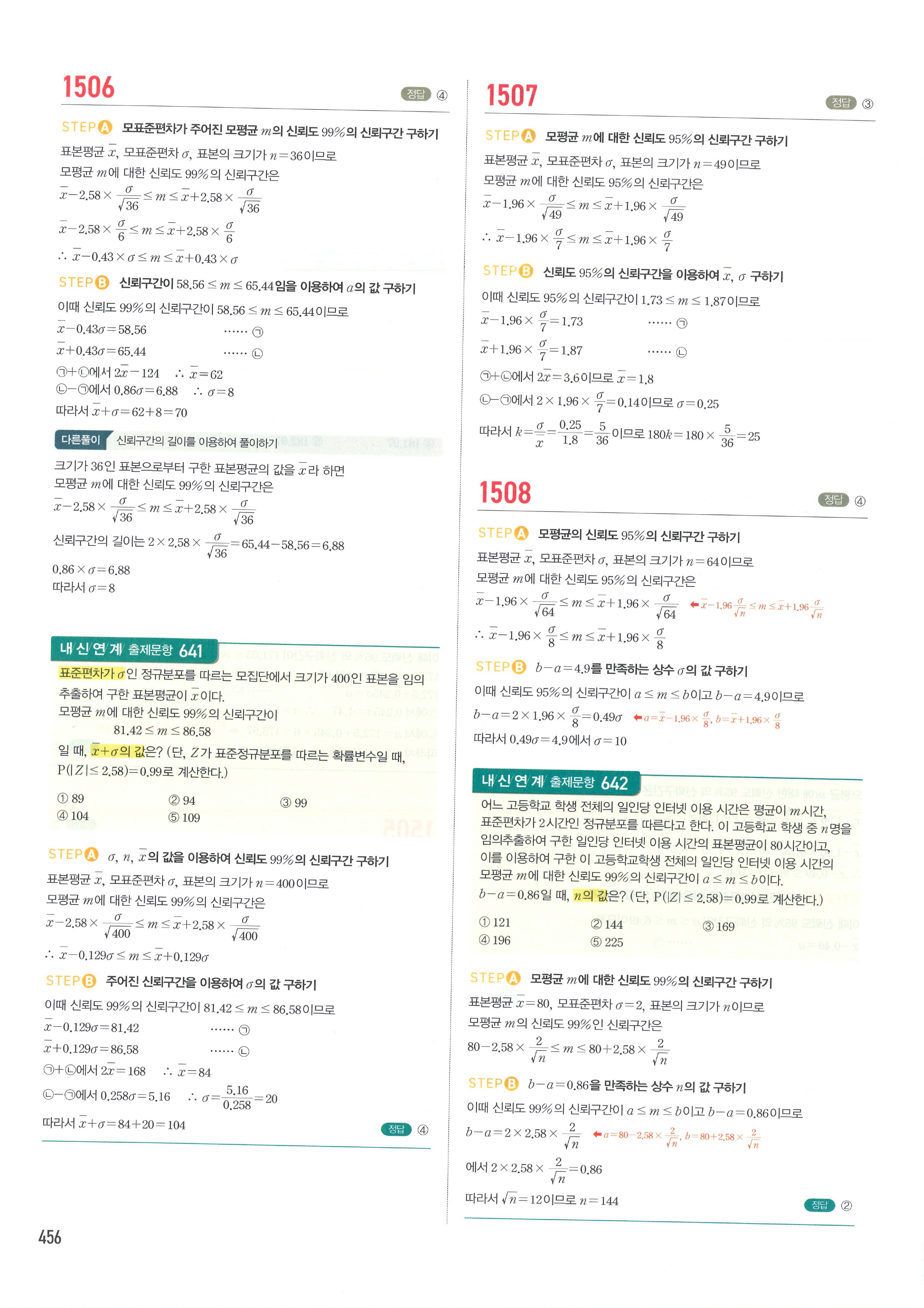 마플시너지 확률과통계 단원별 답지 3-06모평균의추정