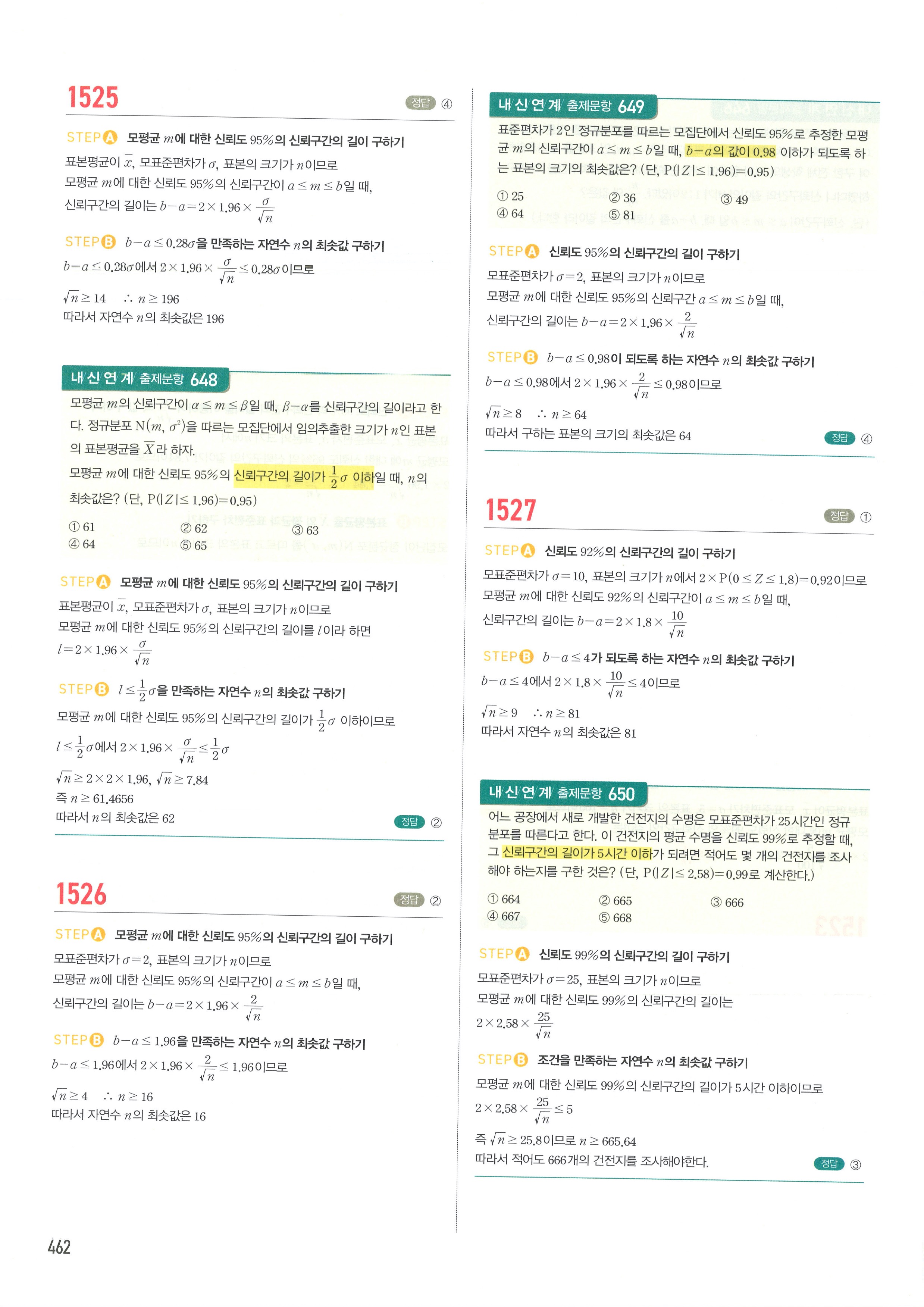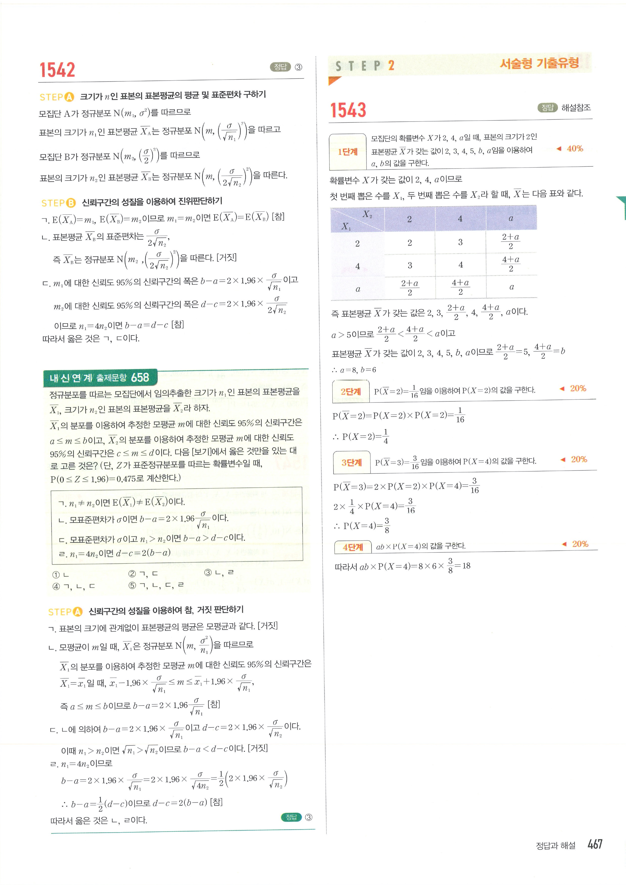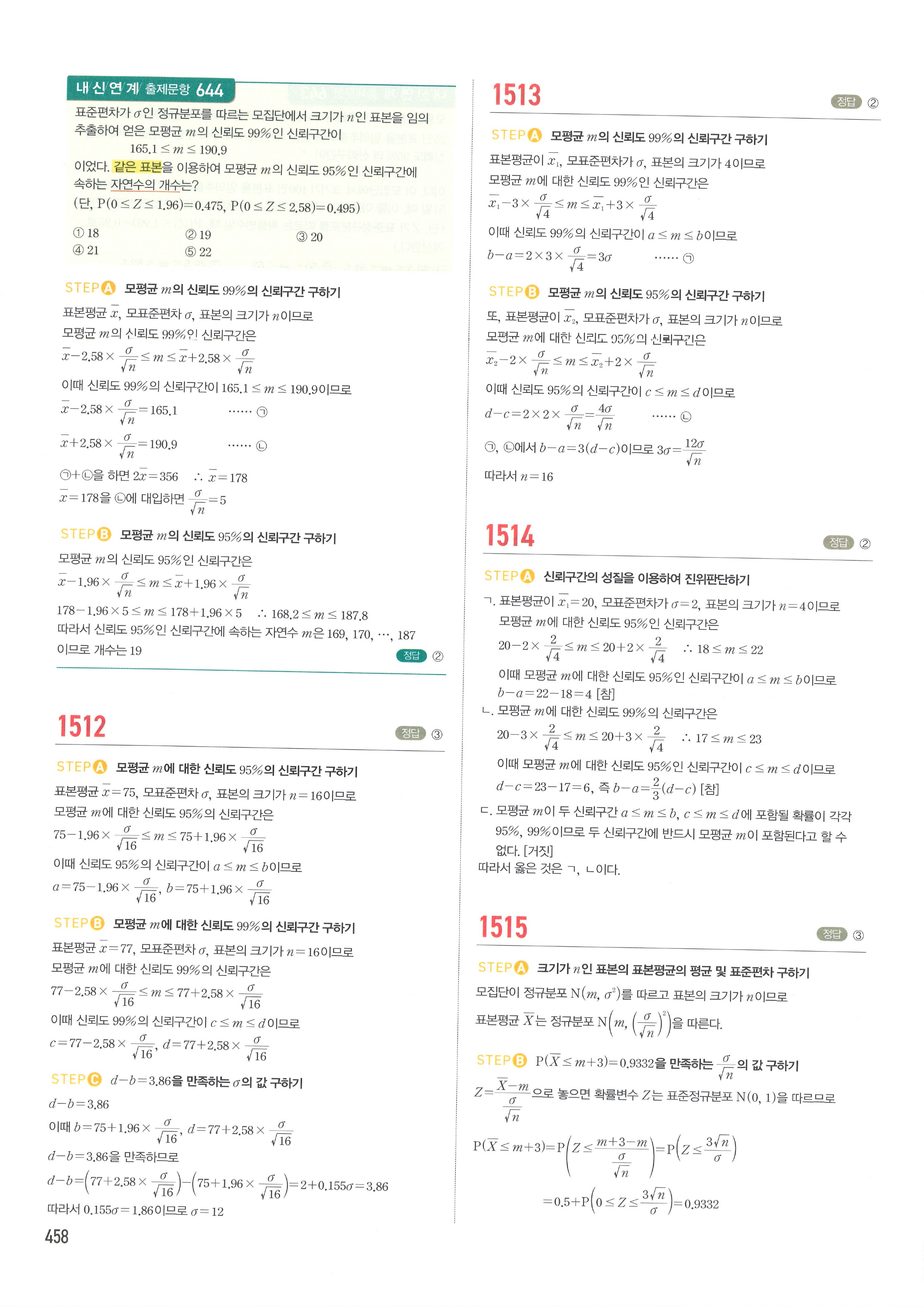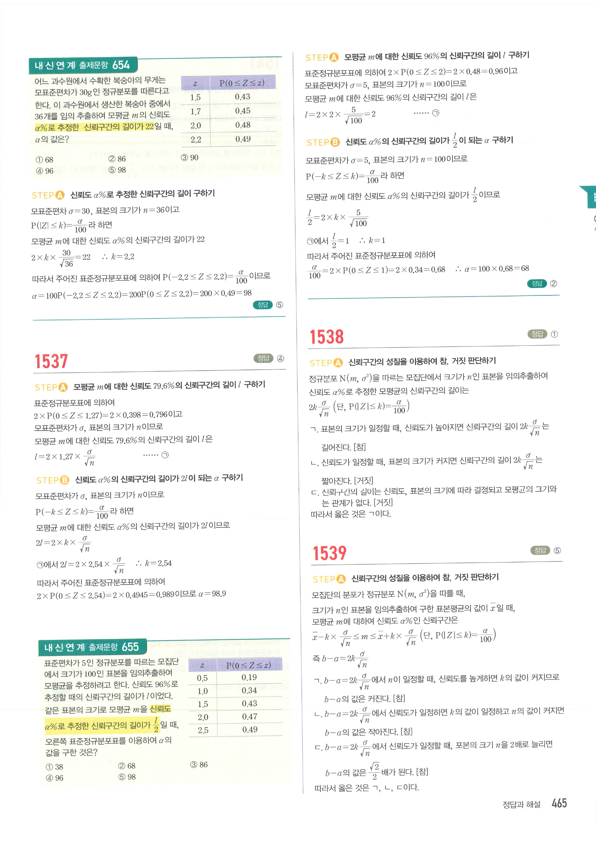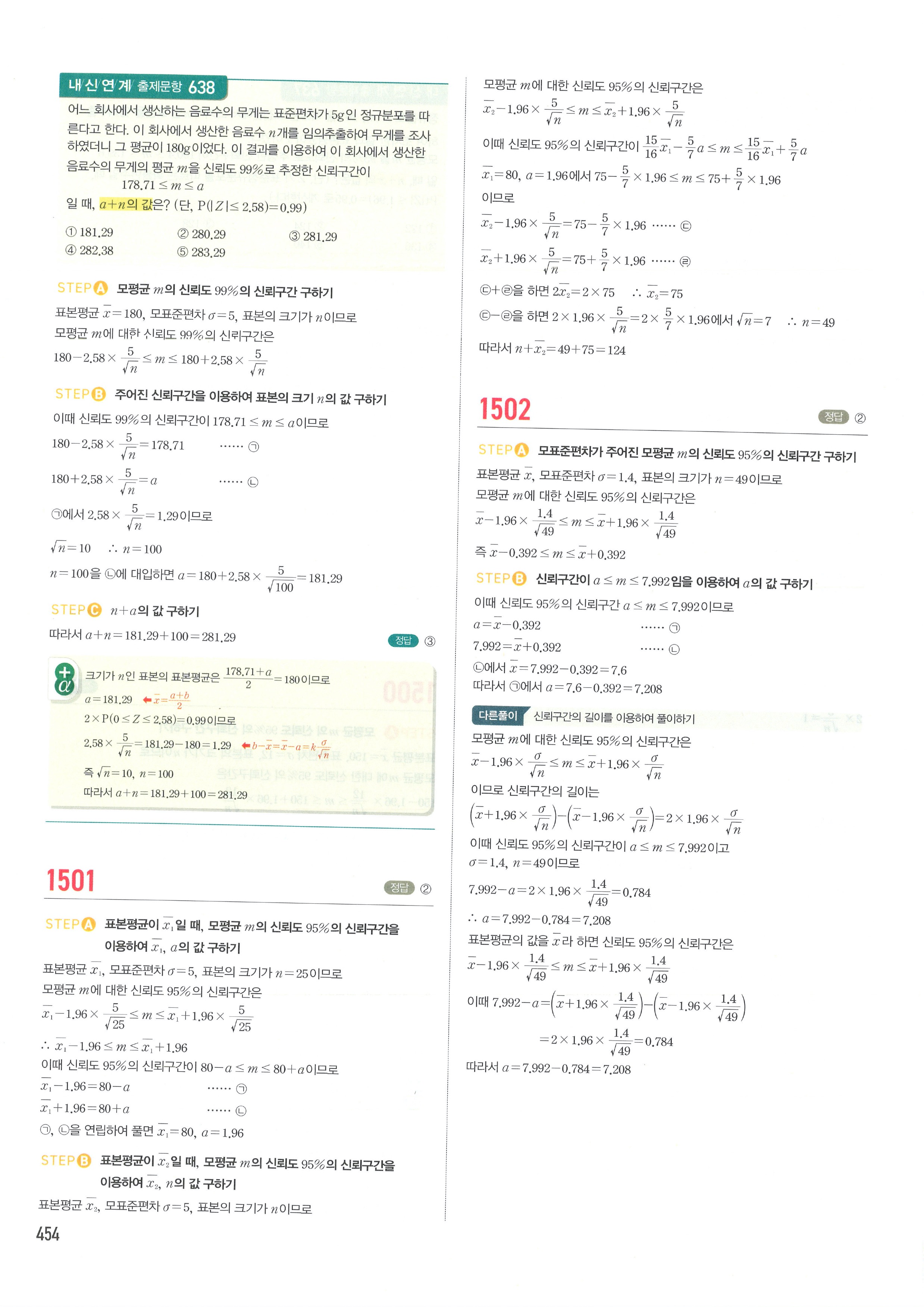 마플시너지 확률과통계 단원별 답지 3-06모평균의추정