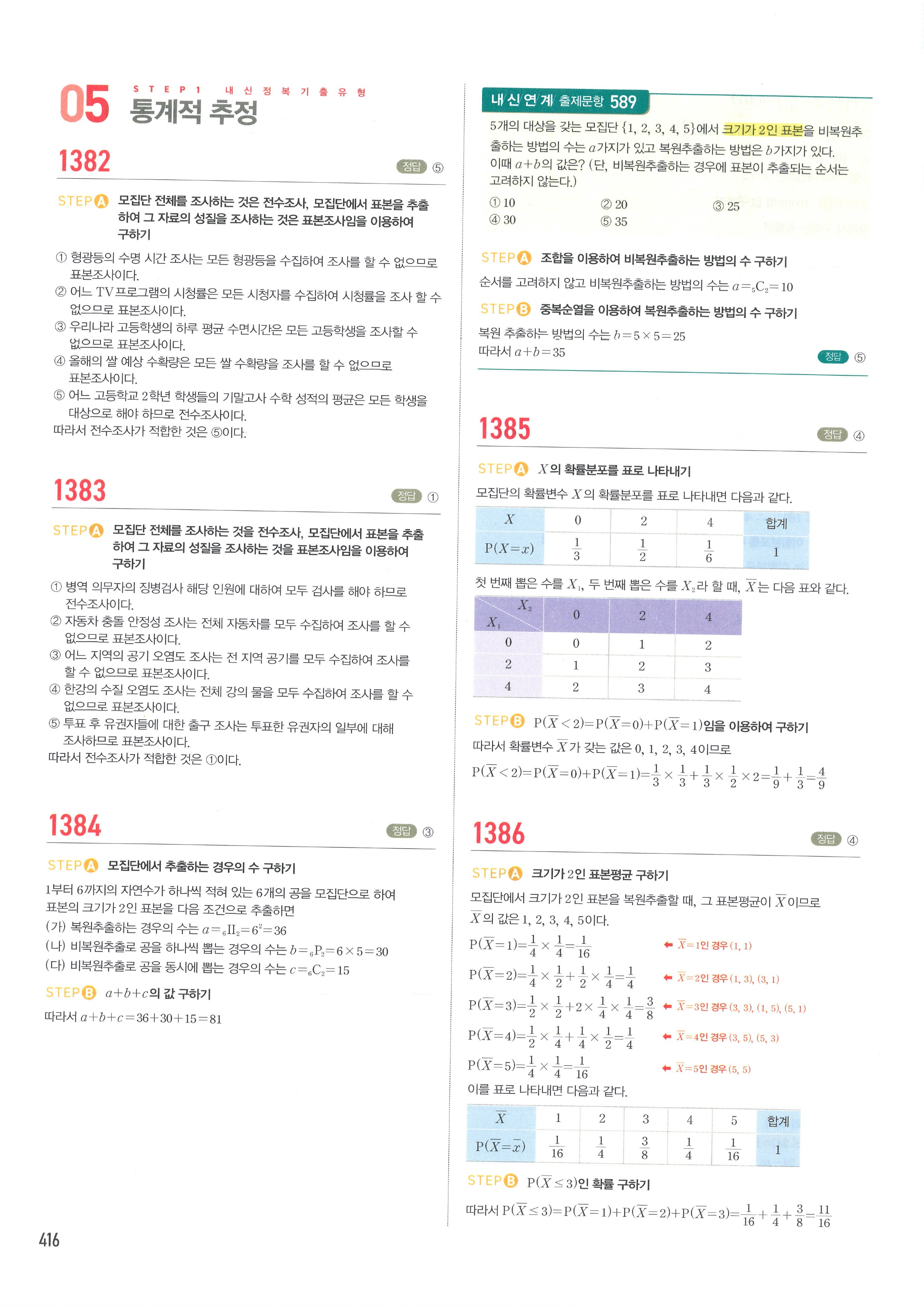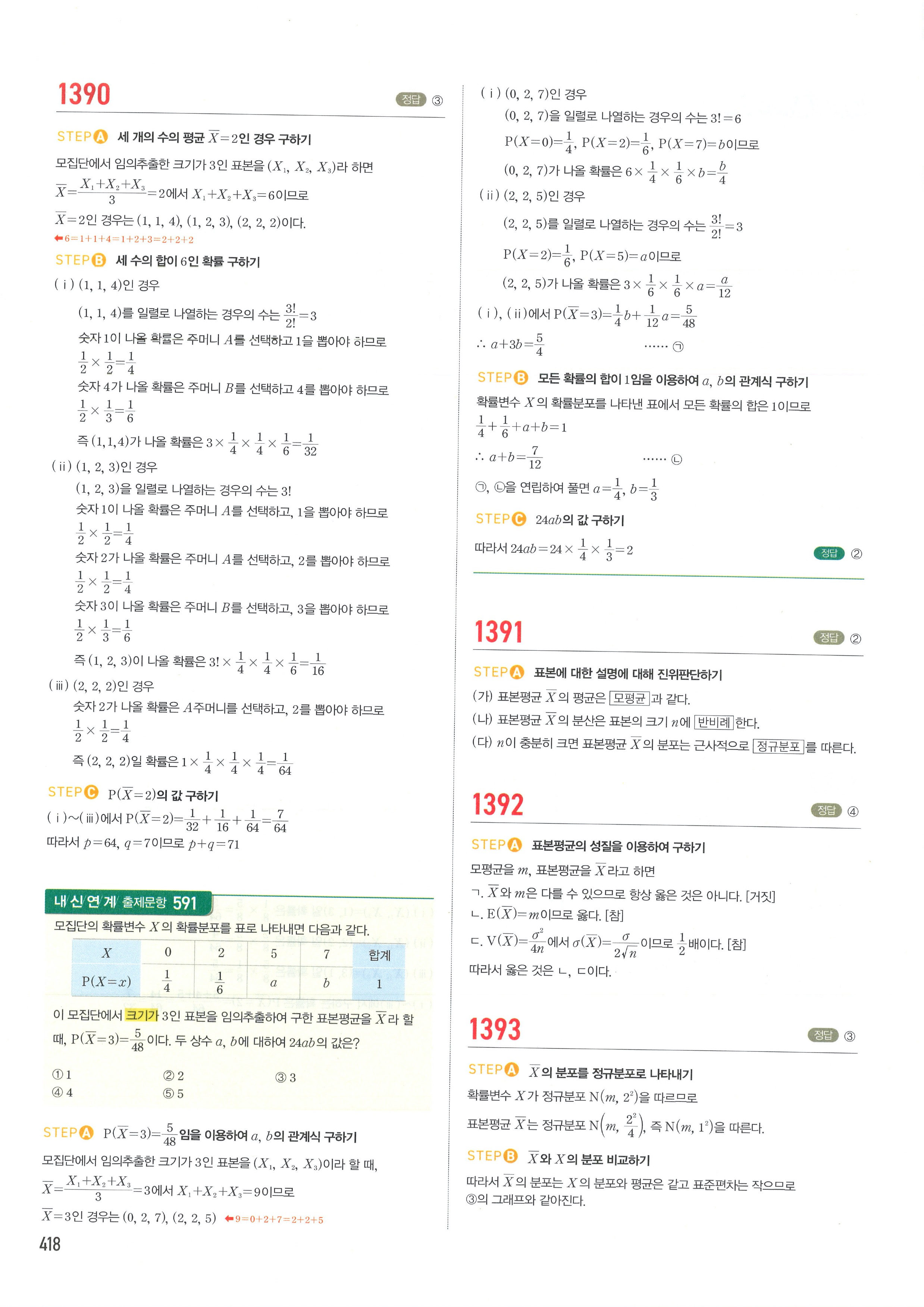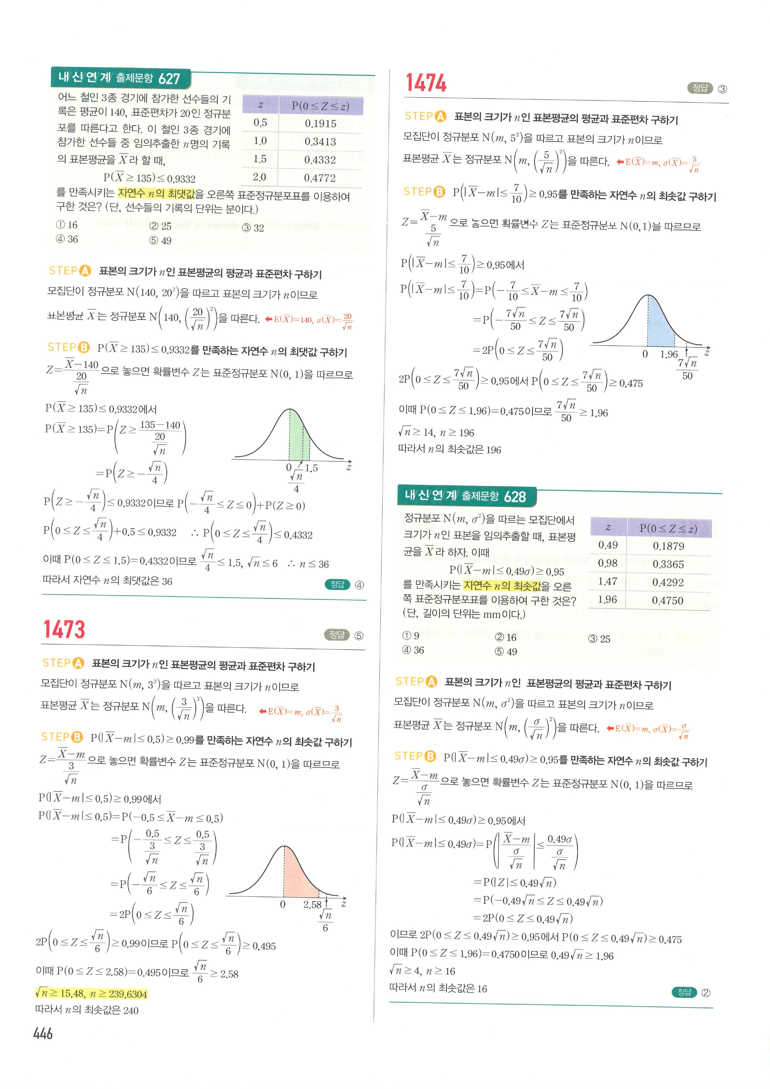 마플시너지 확률과통계 단원별 답지 3-05통계적추정