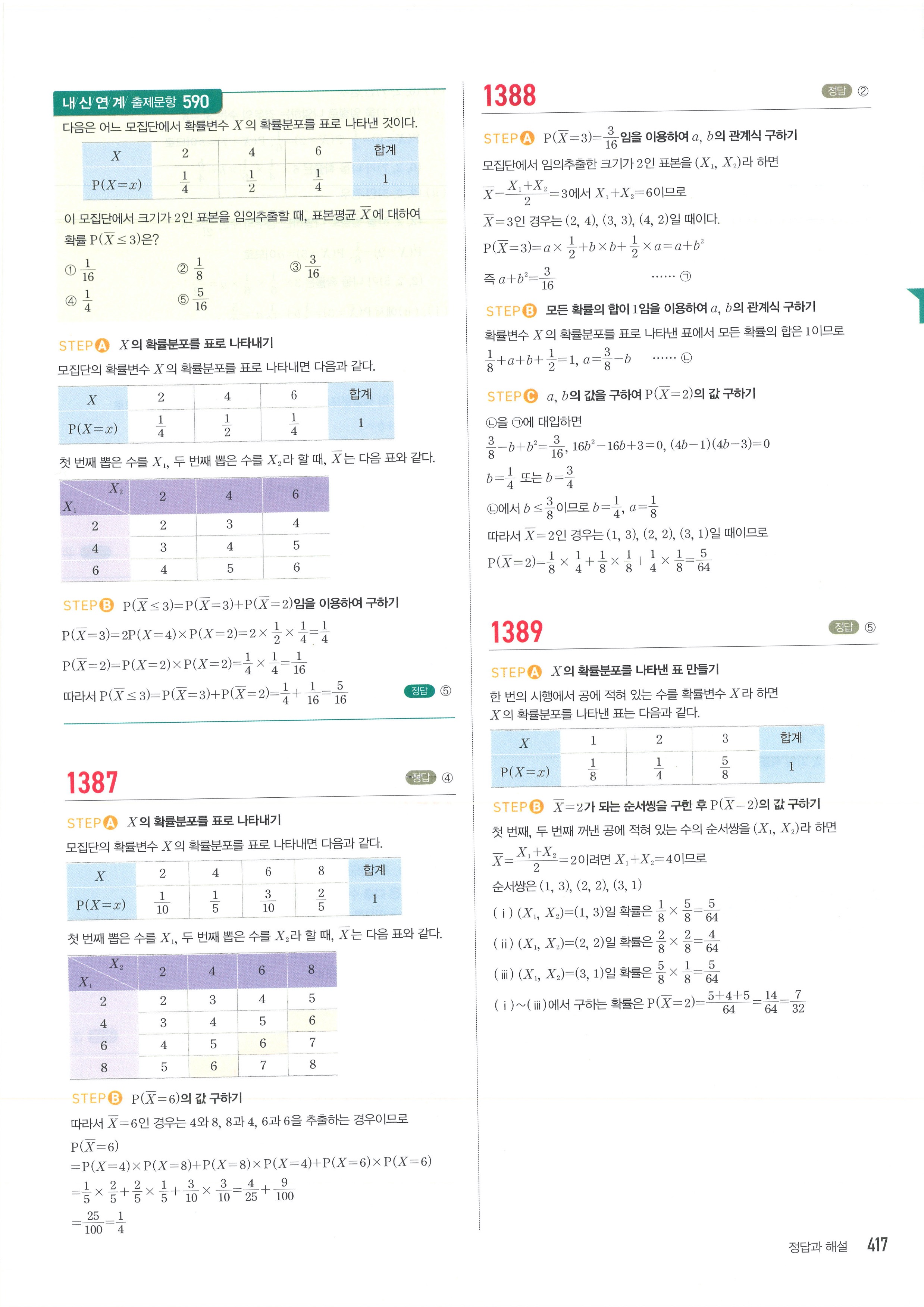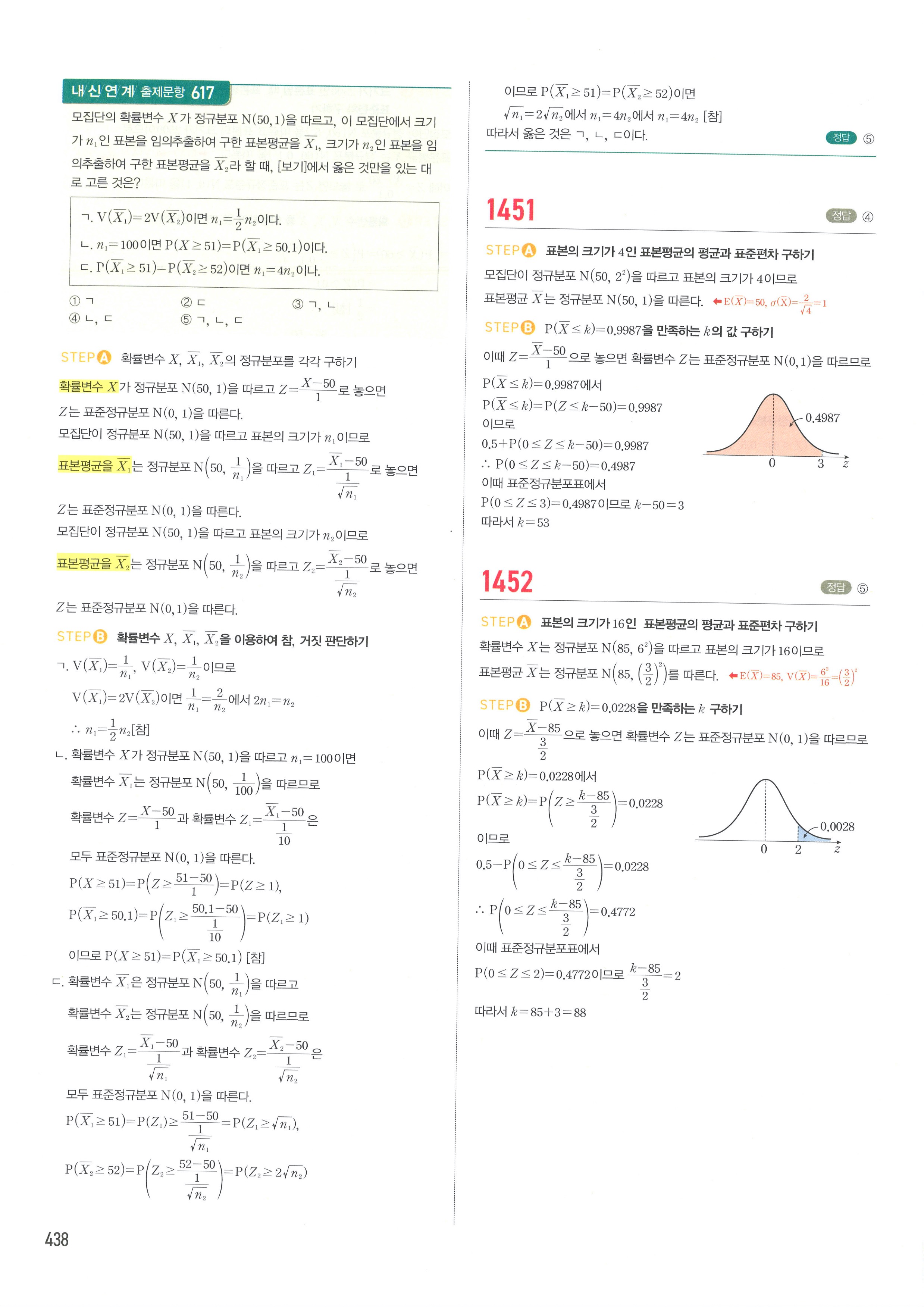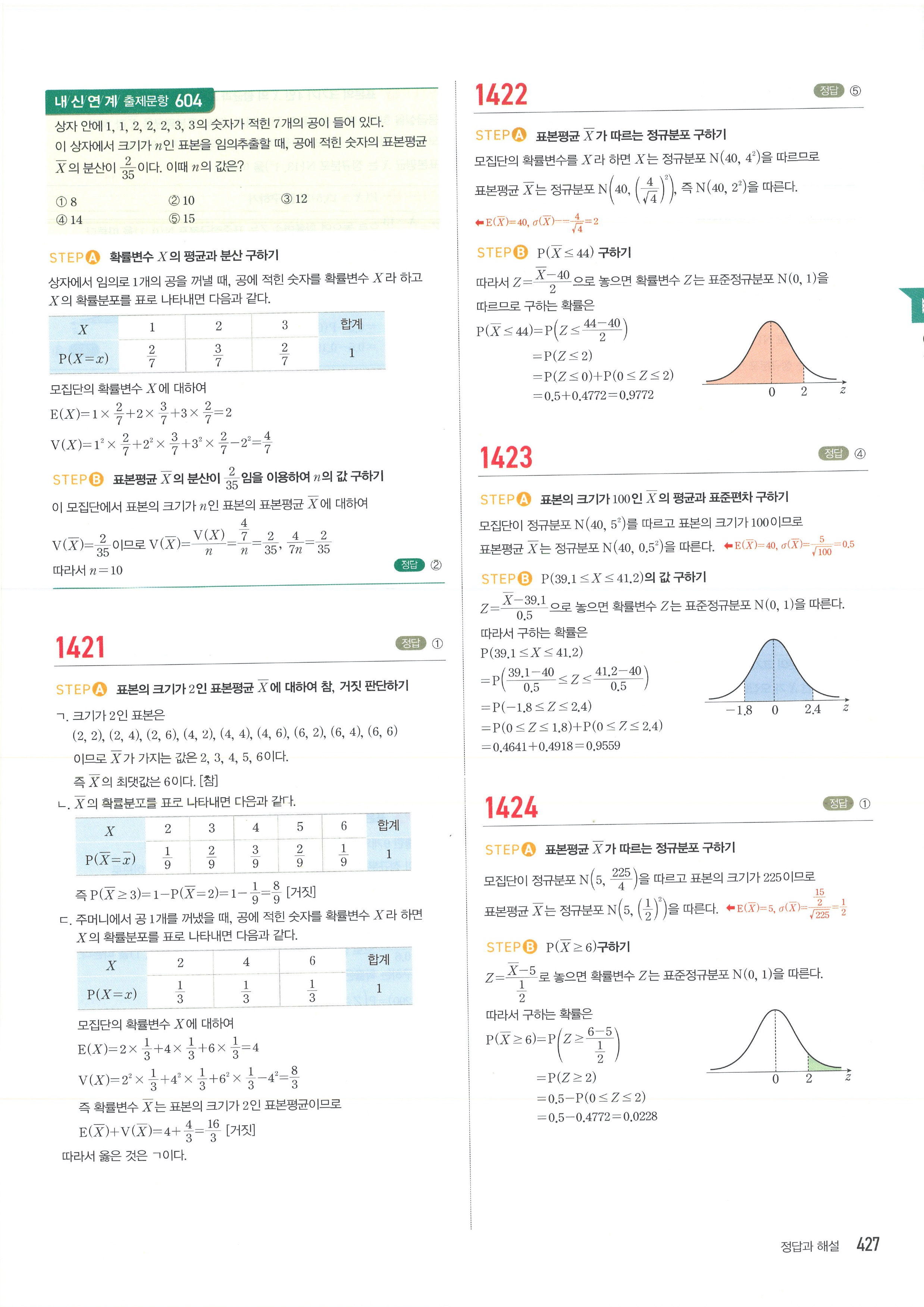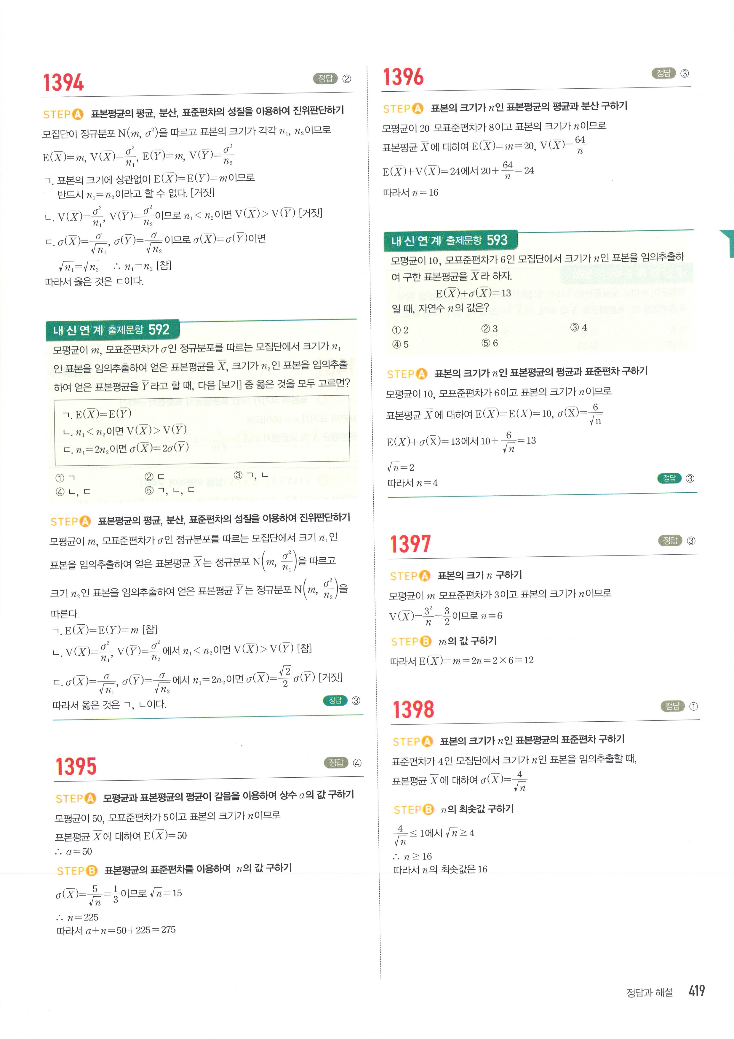 마플시너지 확률과통계 단원별 답지 3-05통계적추정