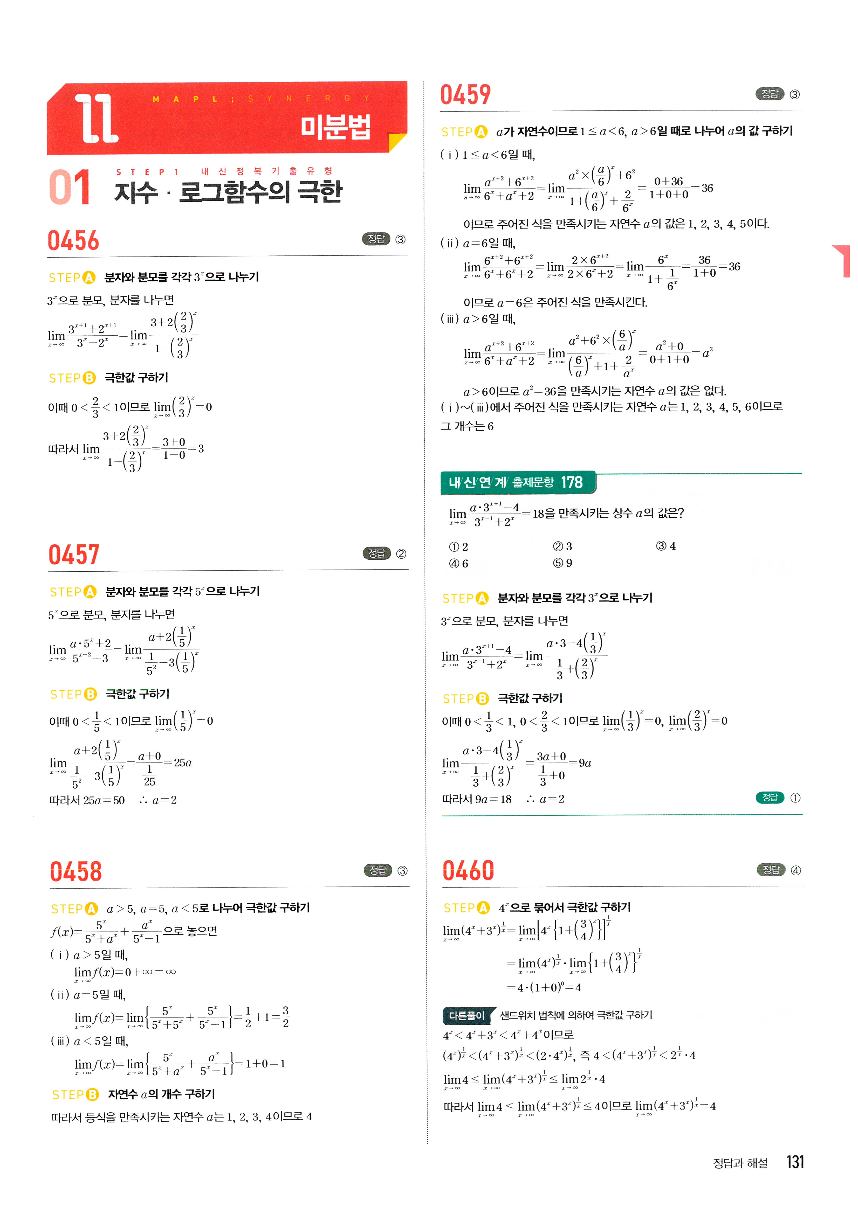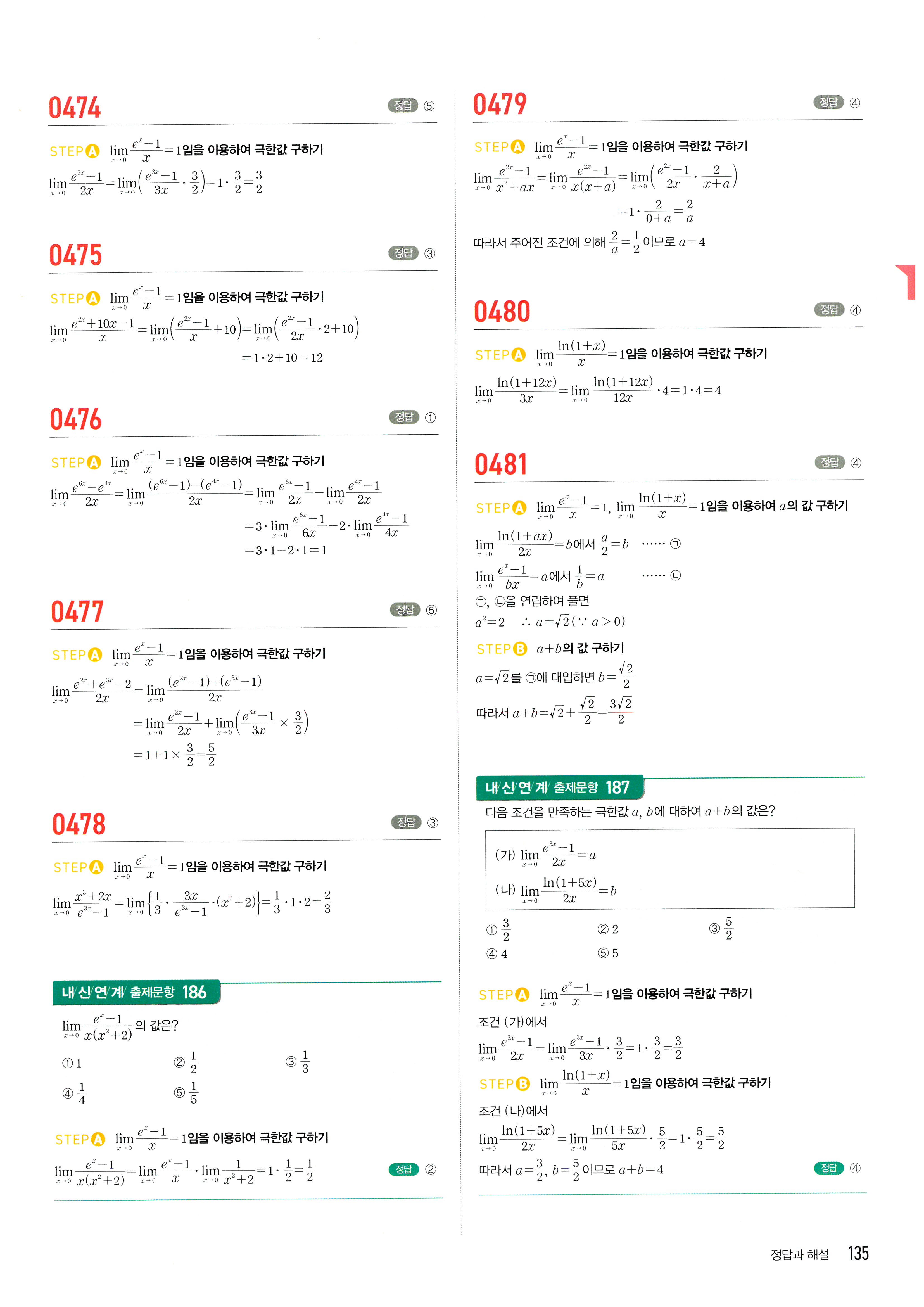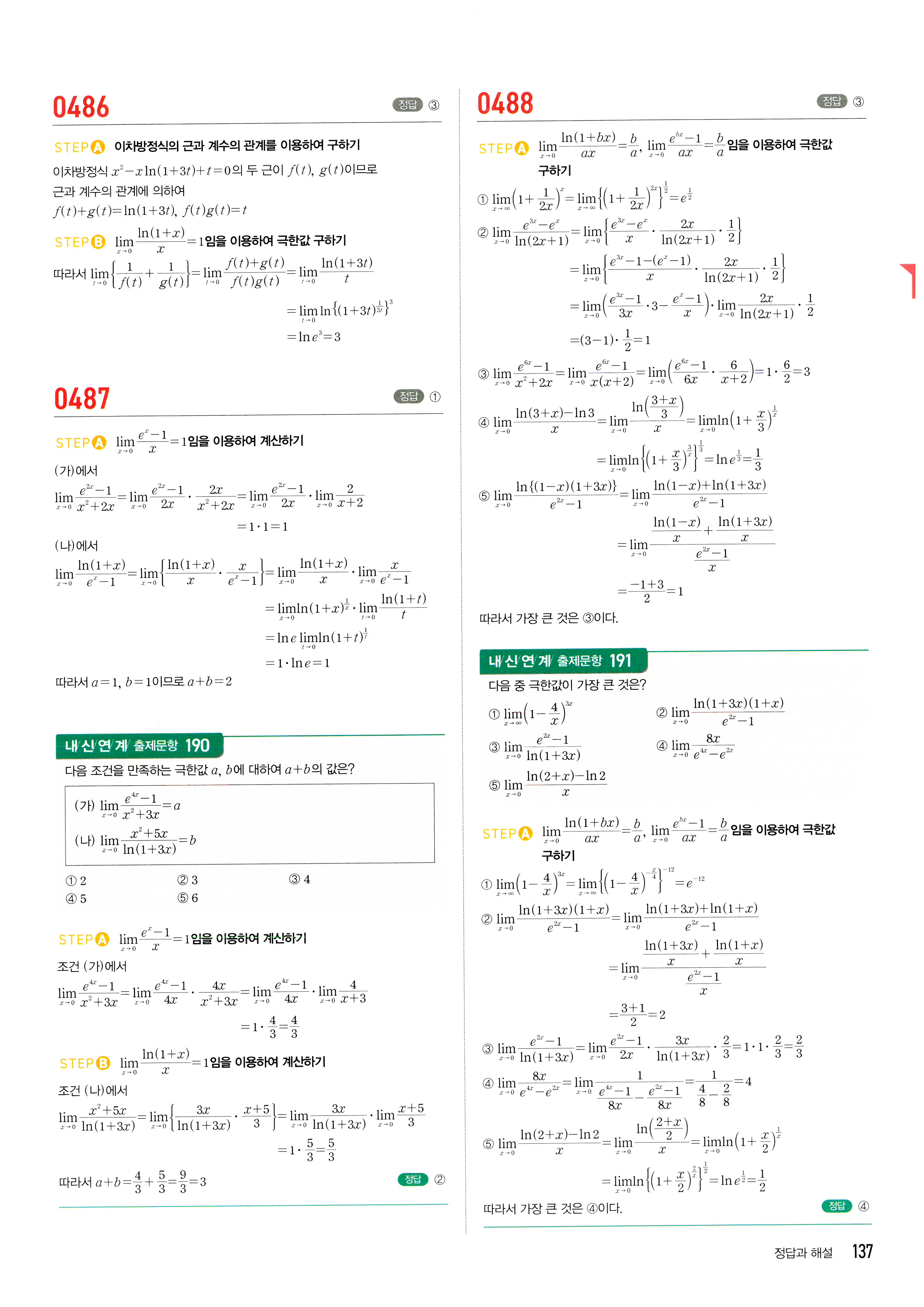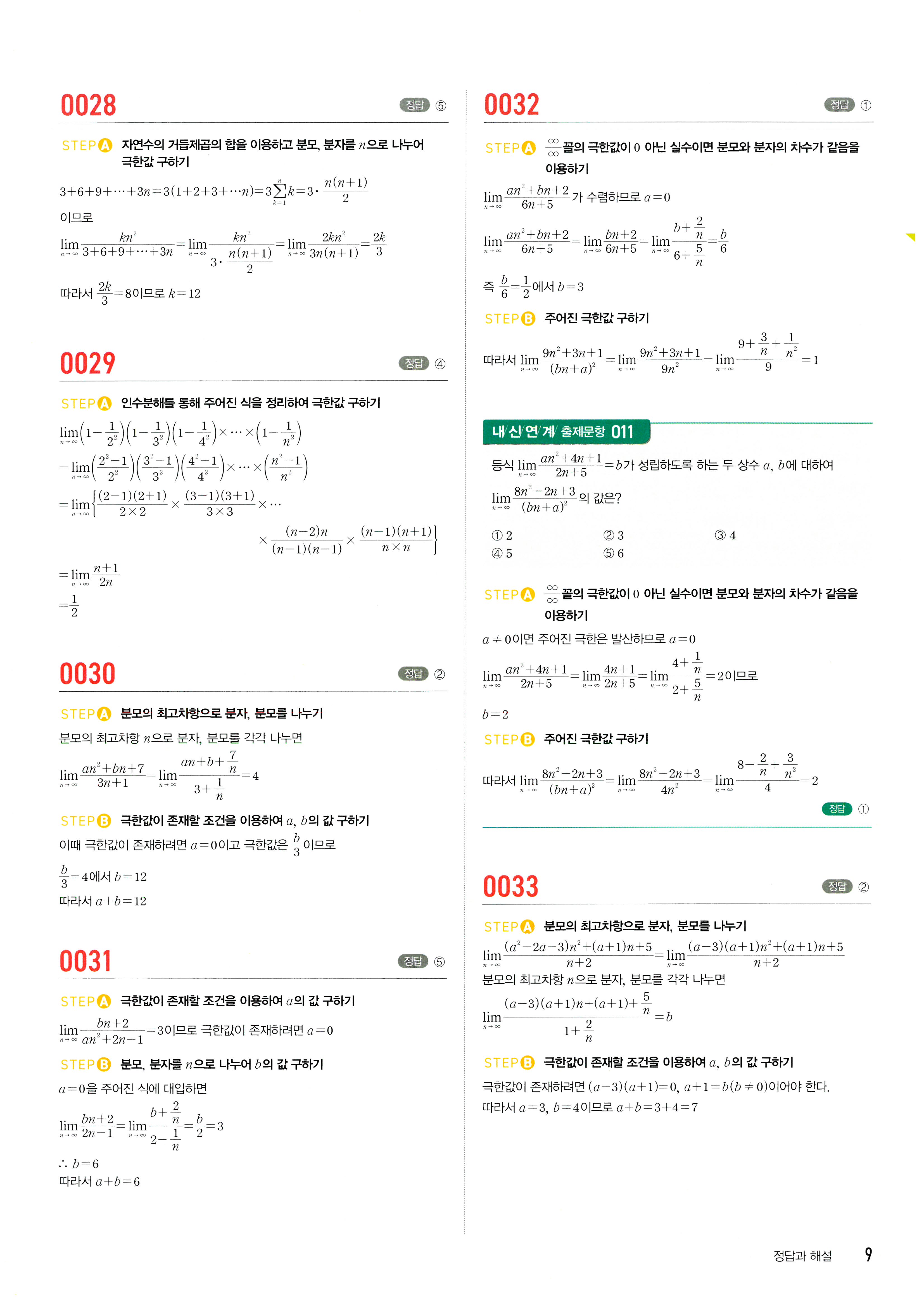 빠른로딩을 위한 마플시너지 미적분 단원별 답지링크