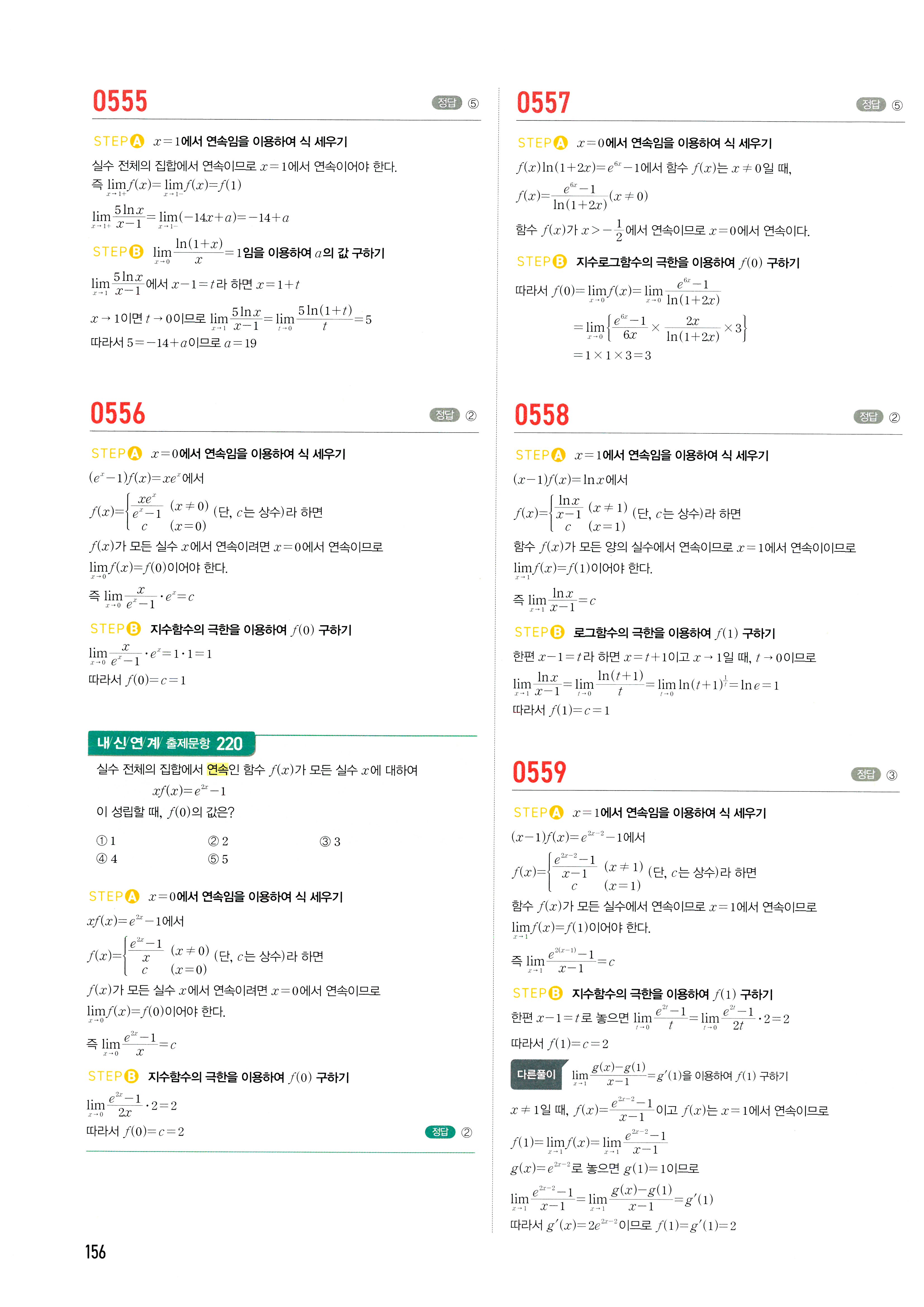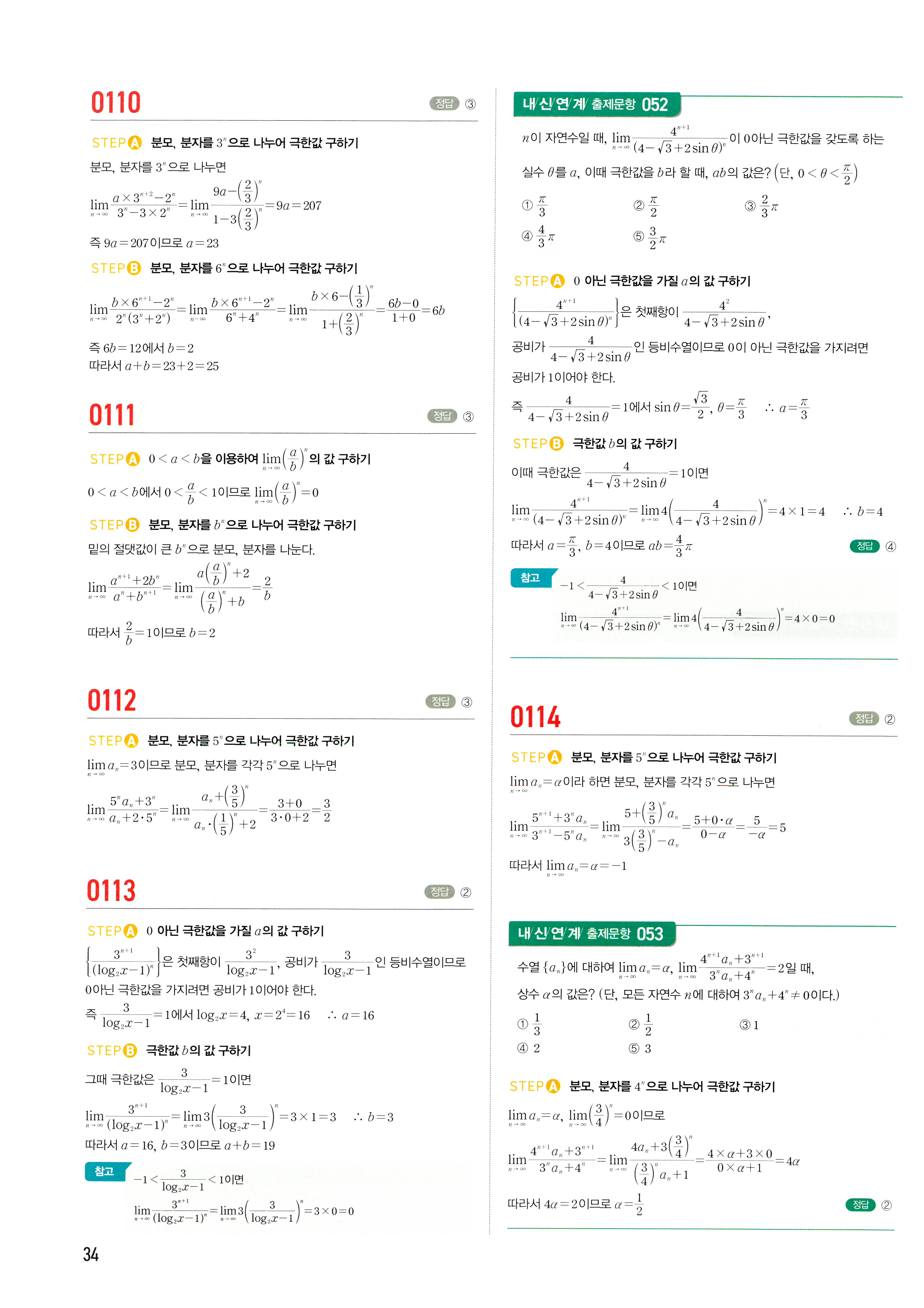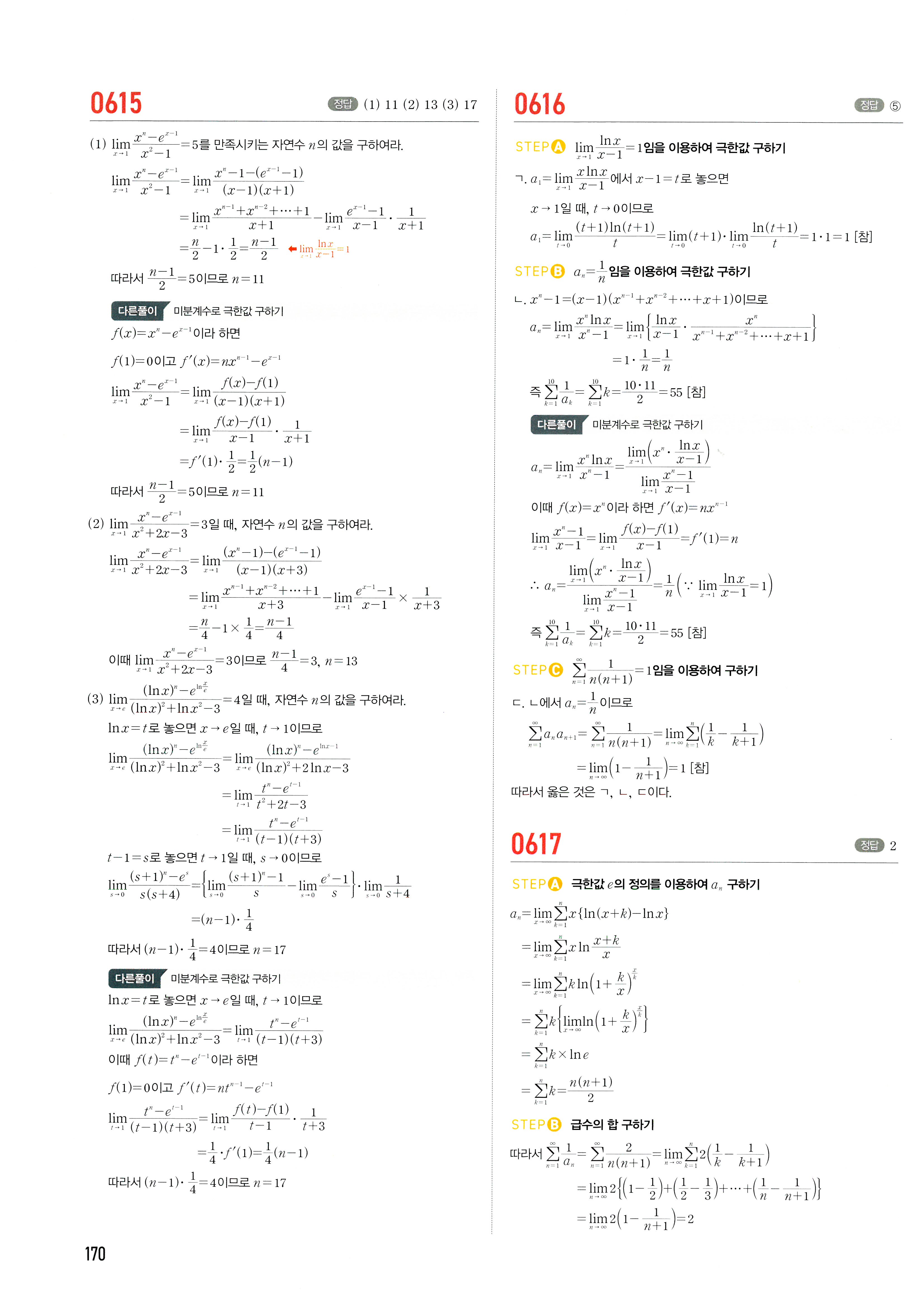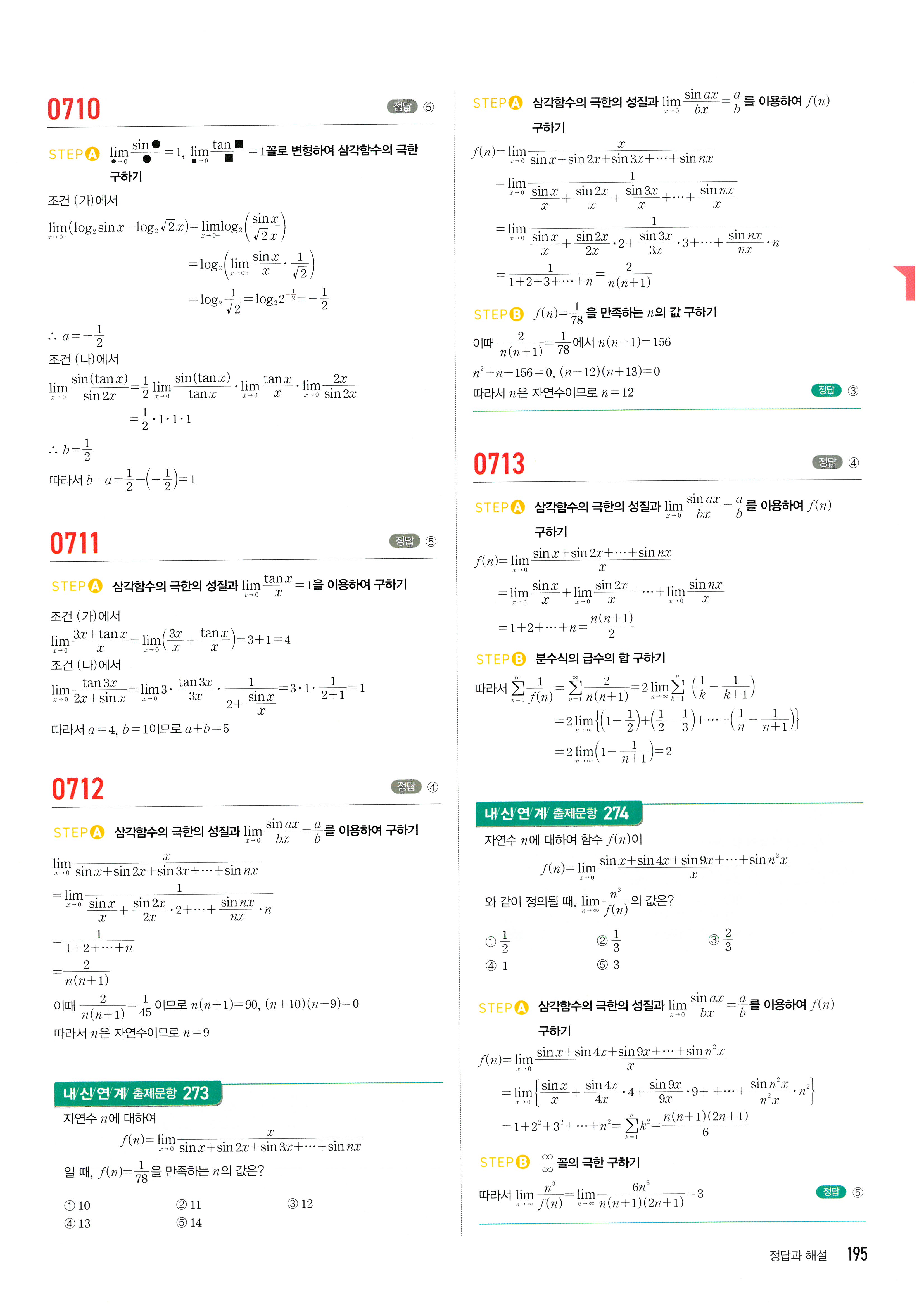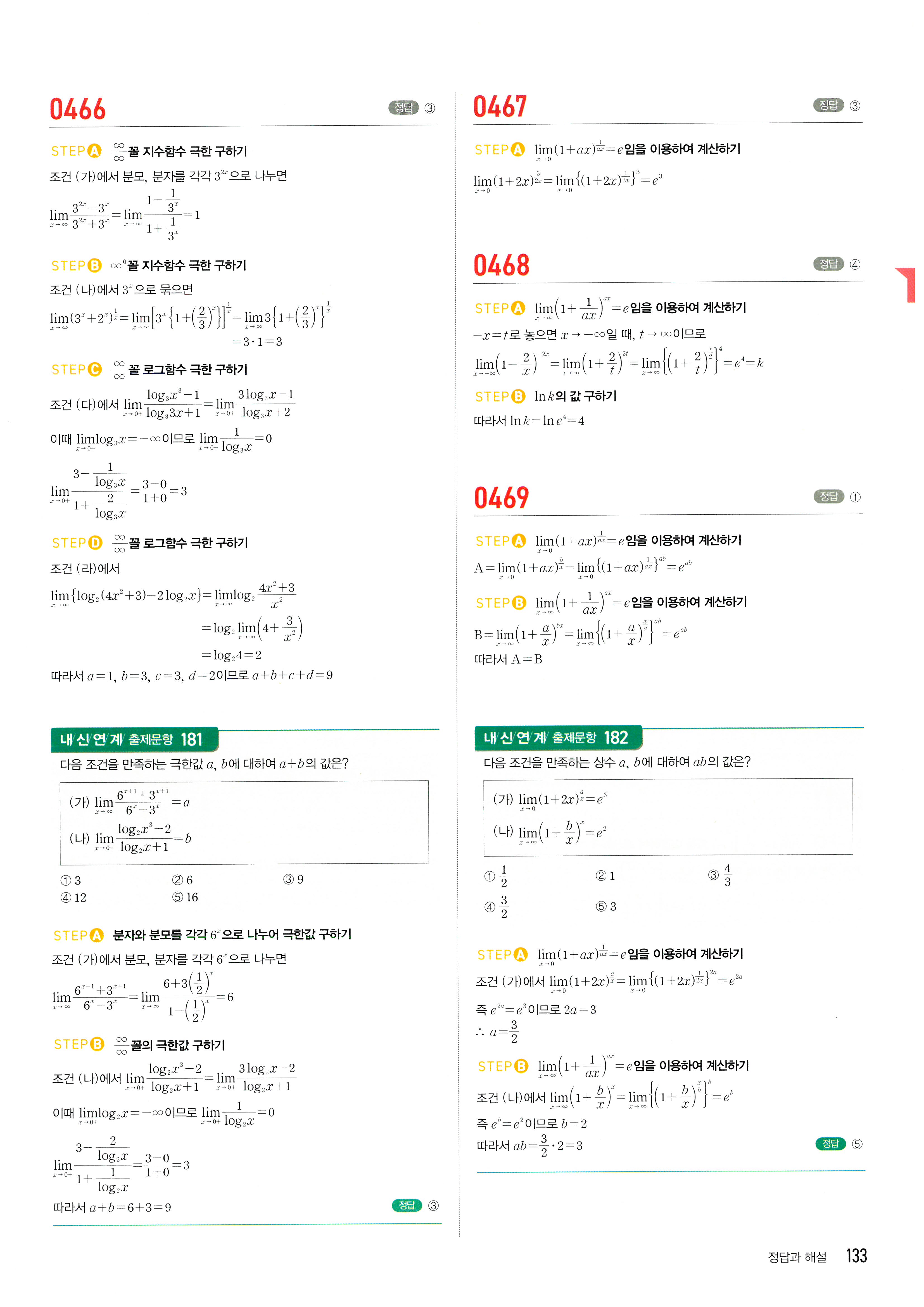 빠른로딩을 위한 마플시너지 미적분 단원별 답지링크