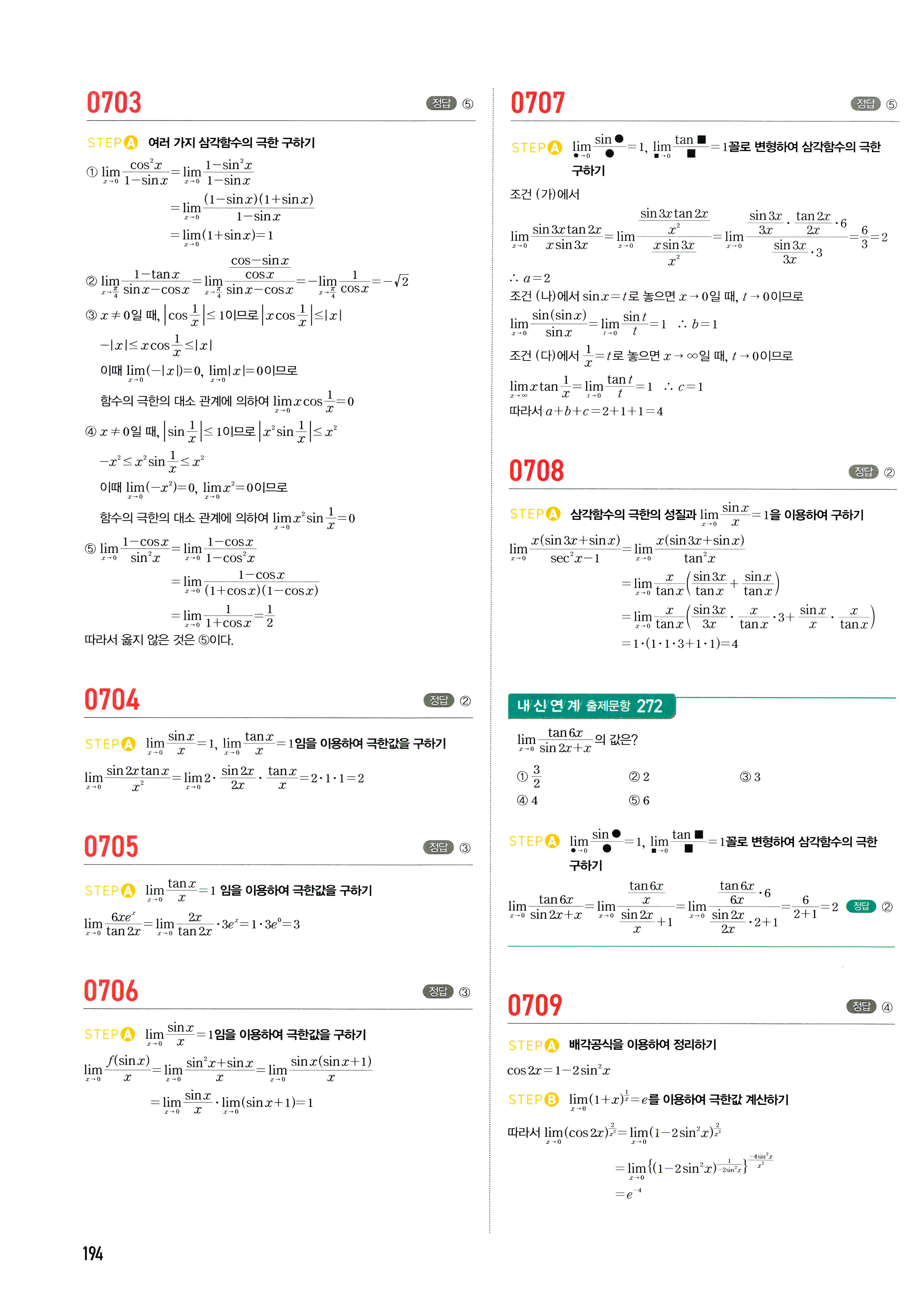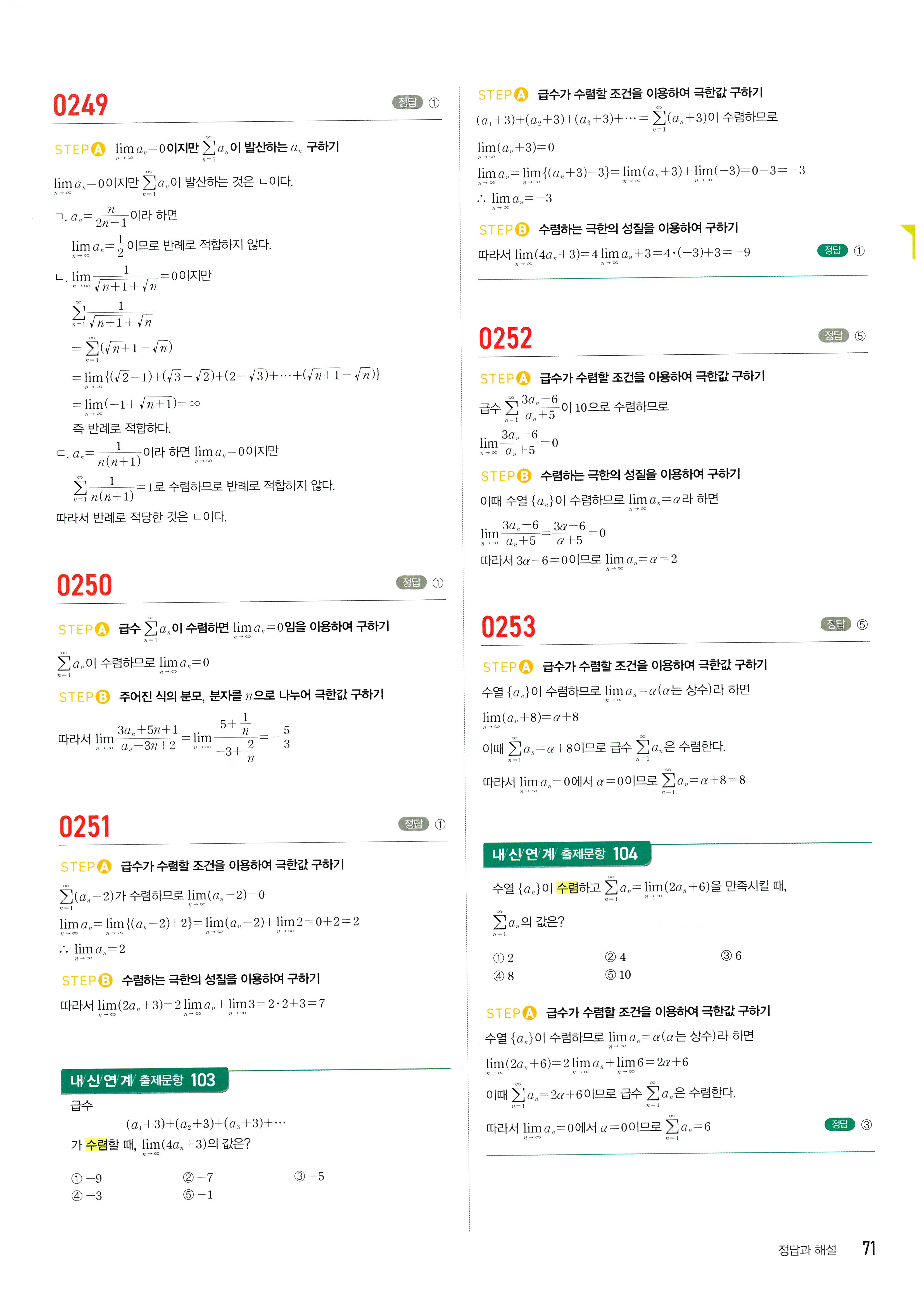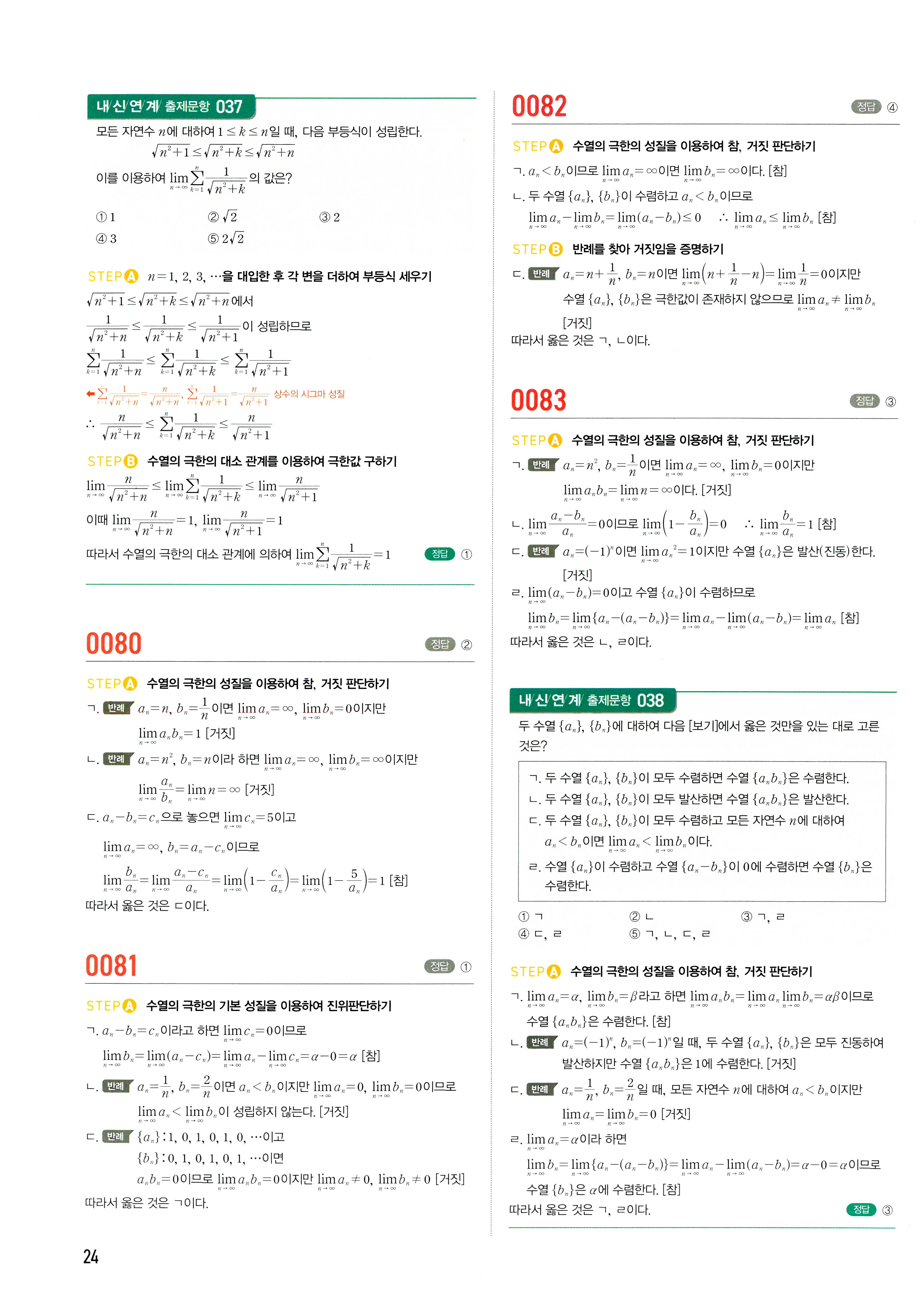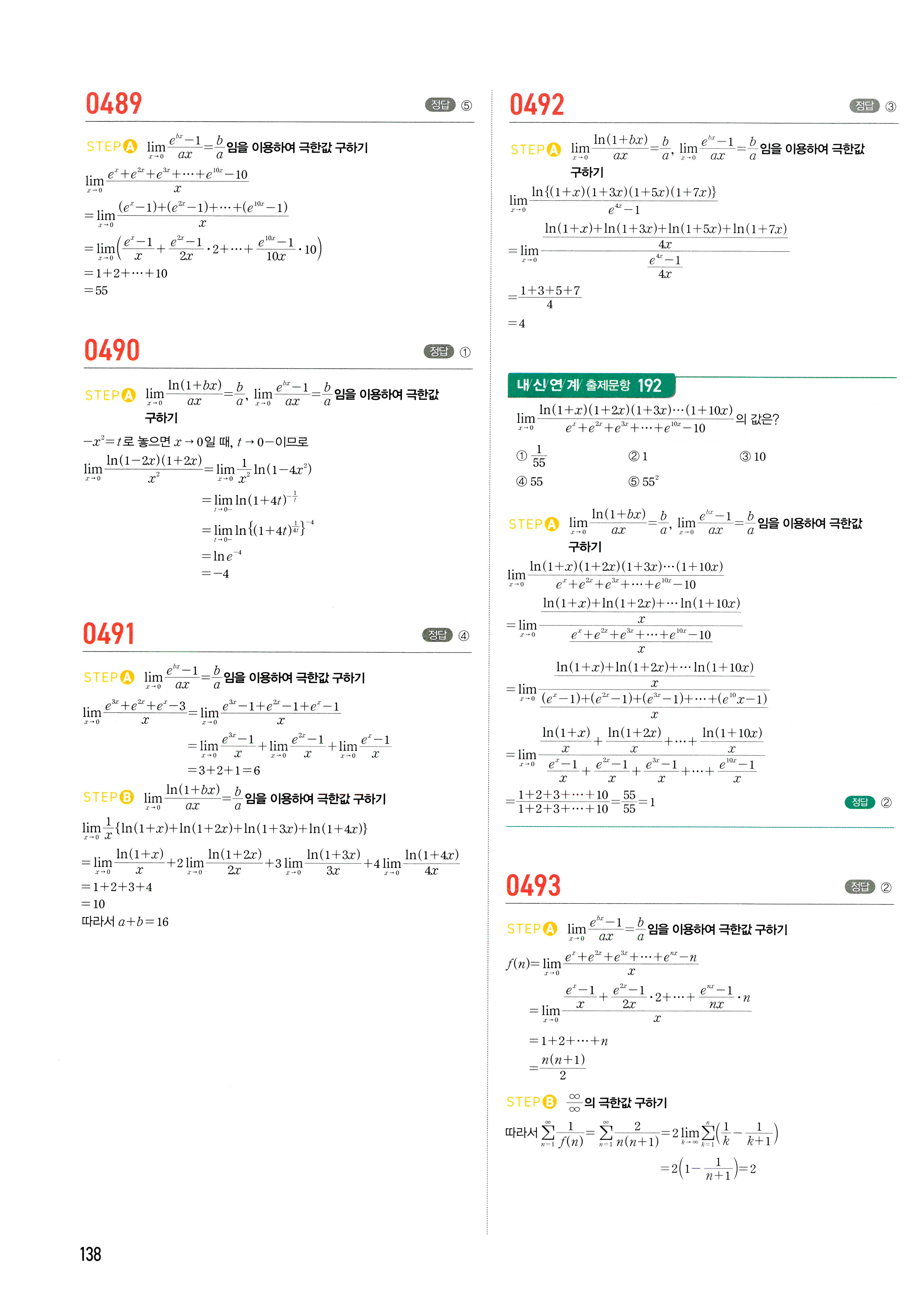 빠른로딩을 위한 마플시너지 미적분 단원별 답지링크
