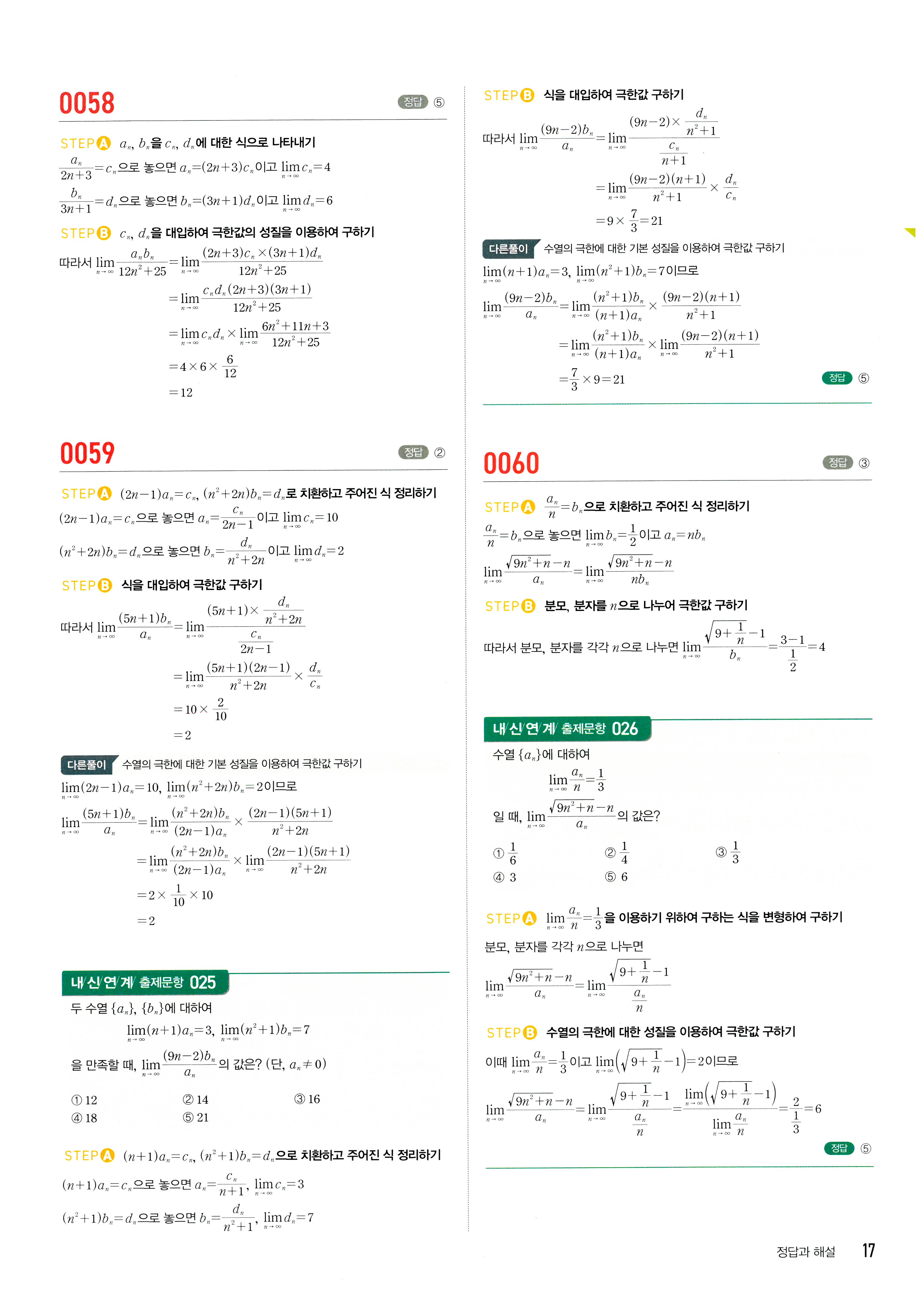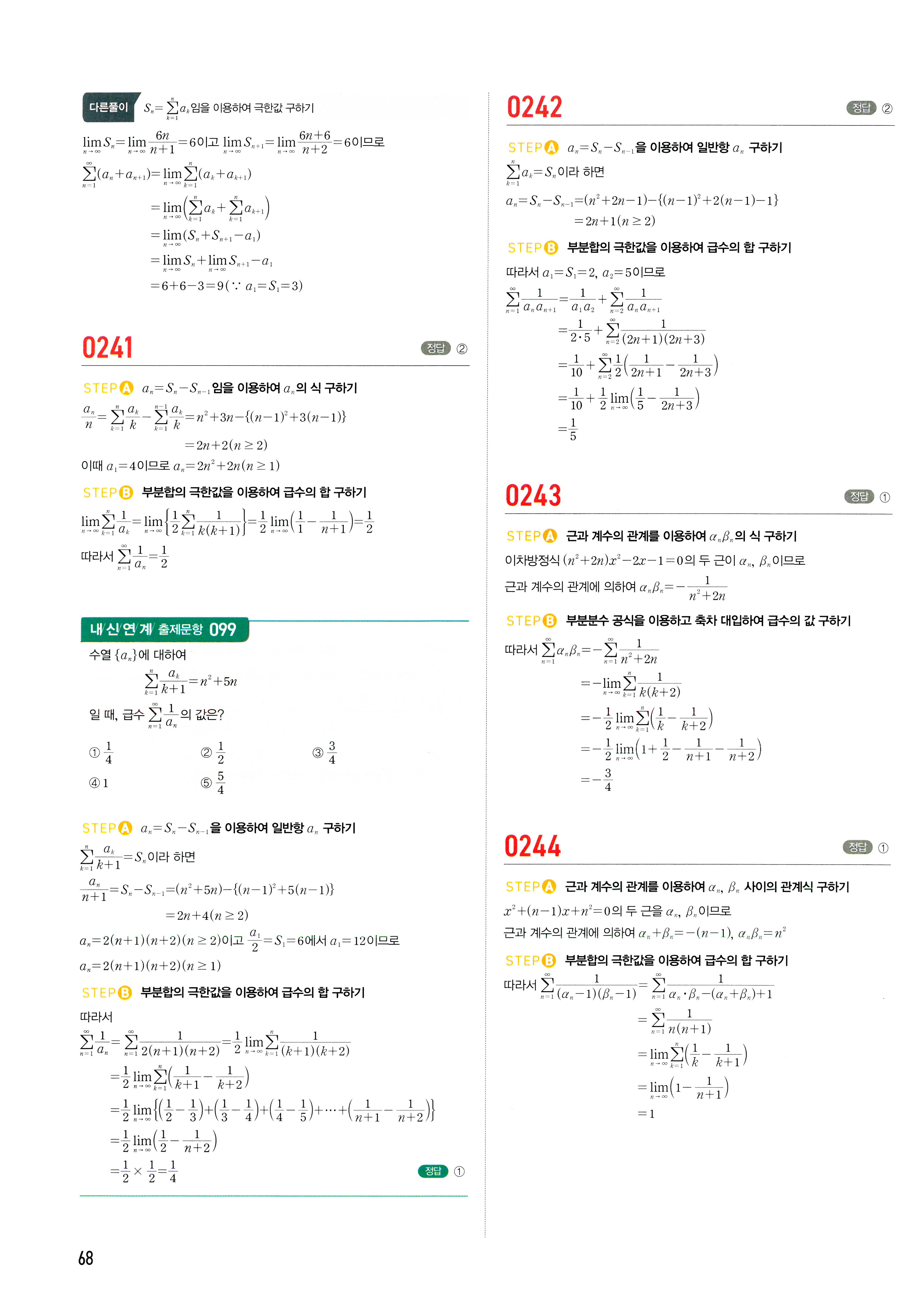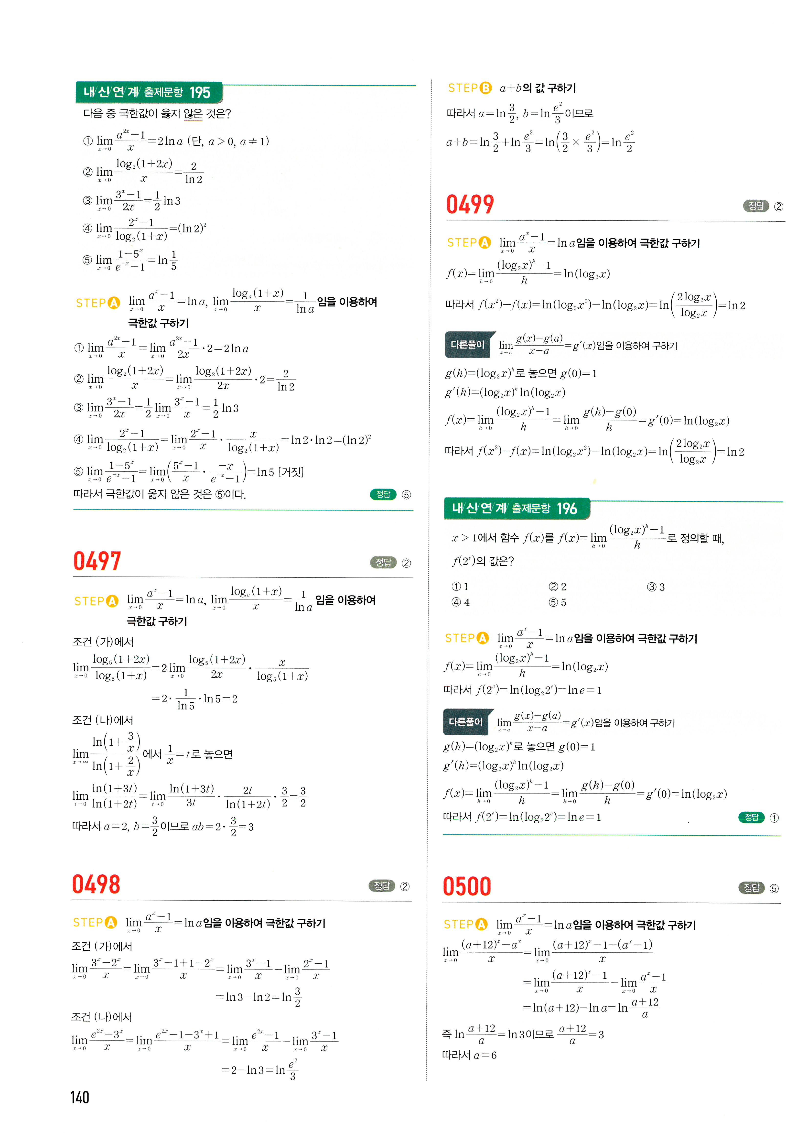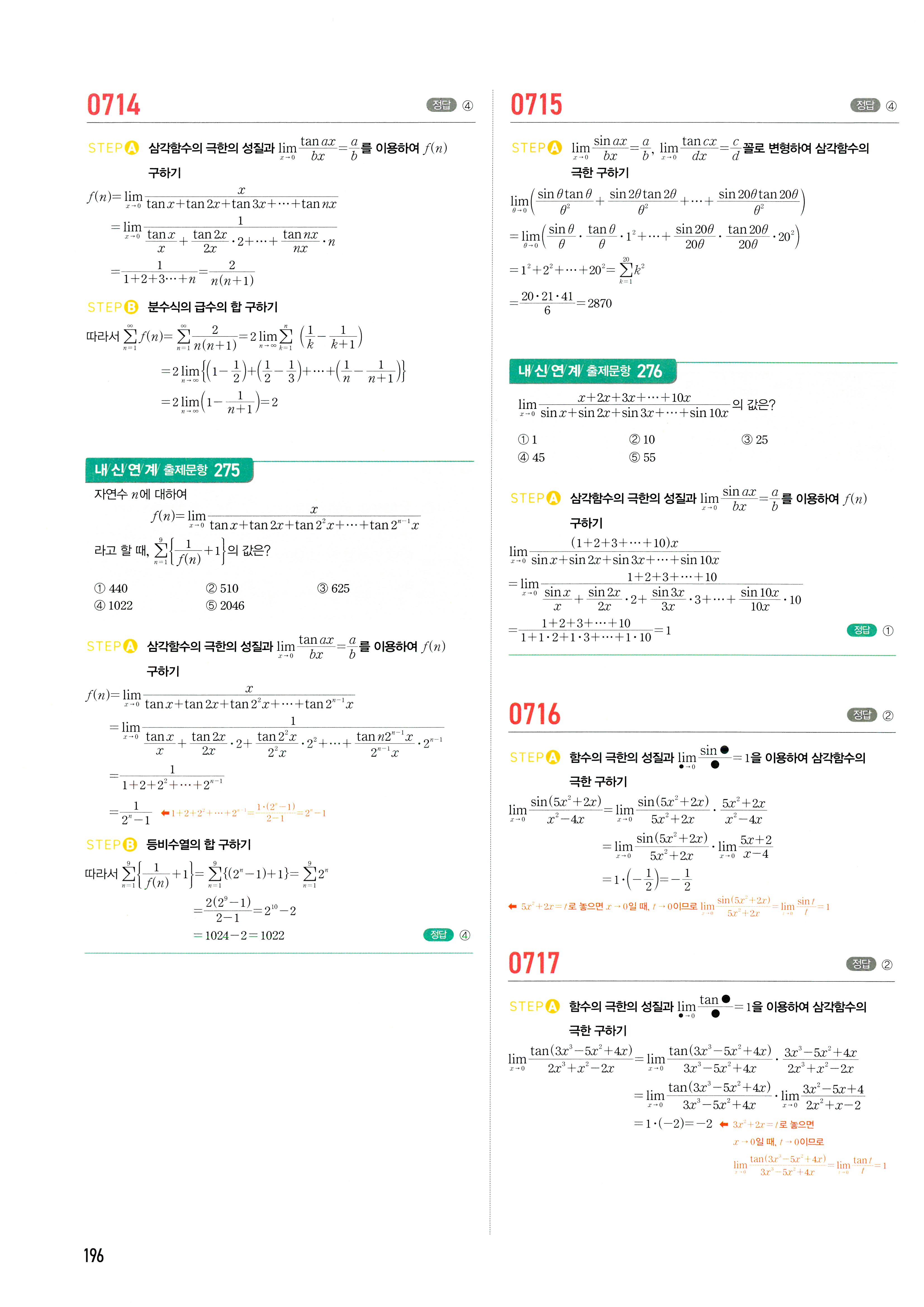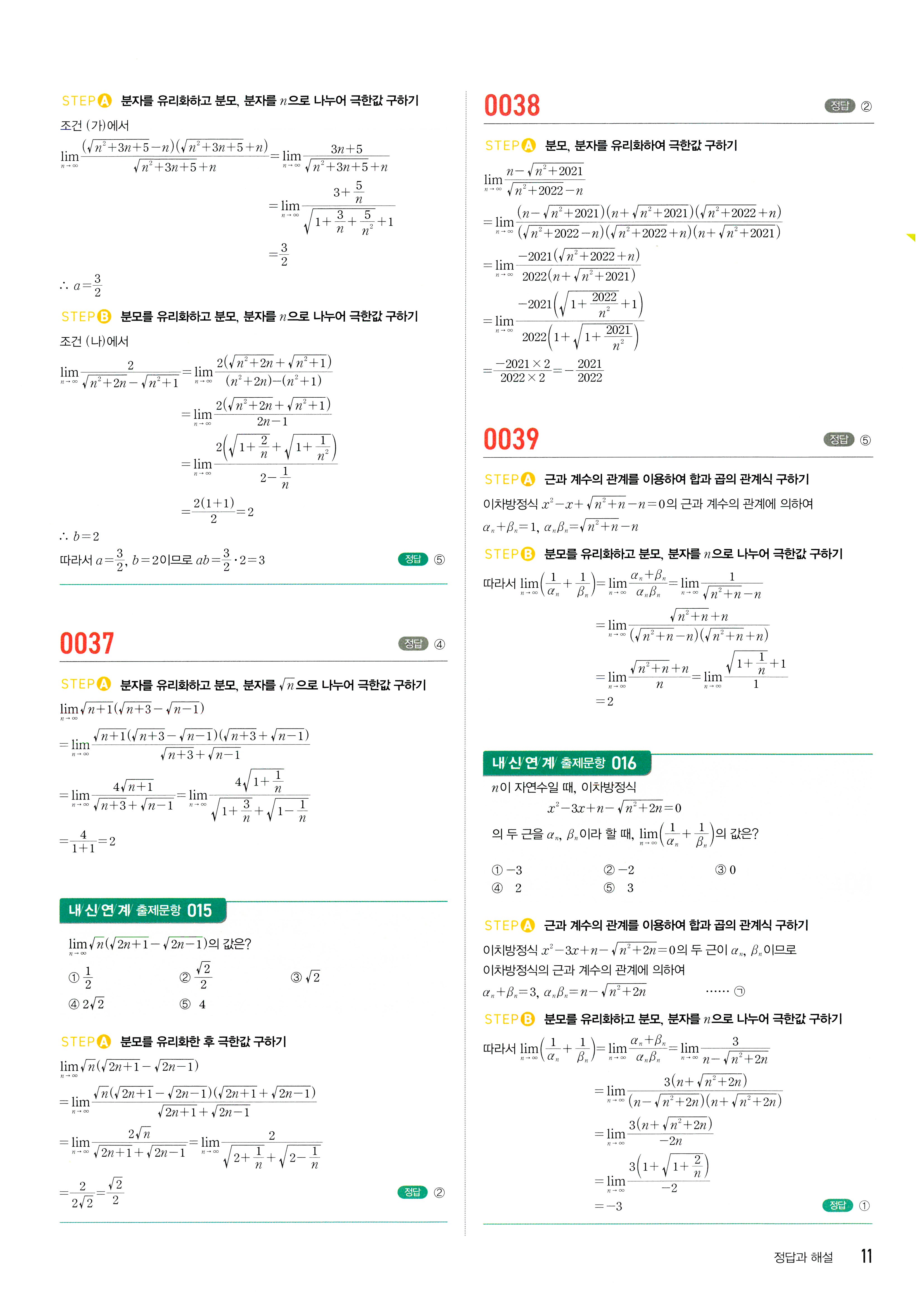 빠른로딩을 위한 마플시너지 미적분 단원별 답지링크