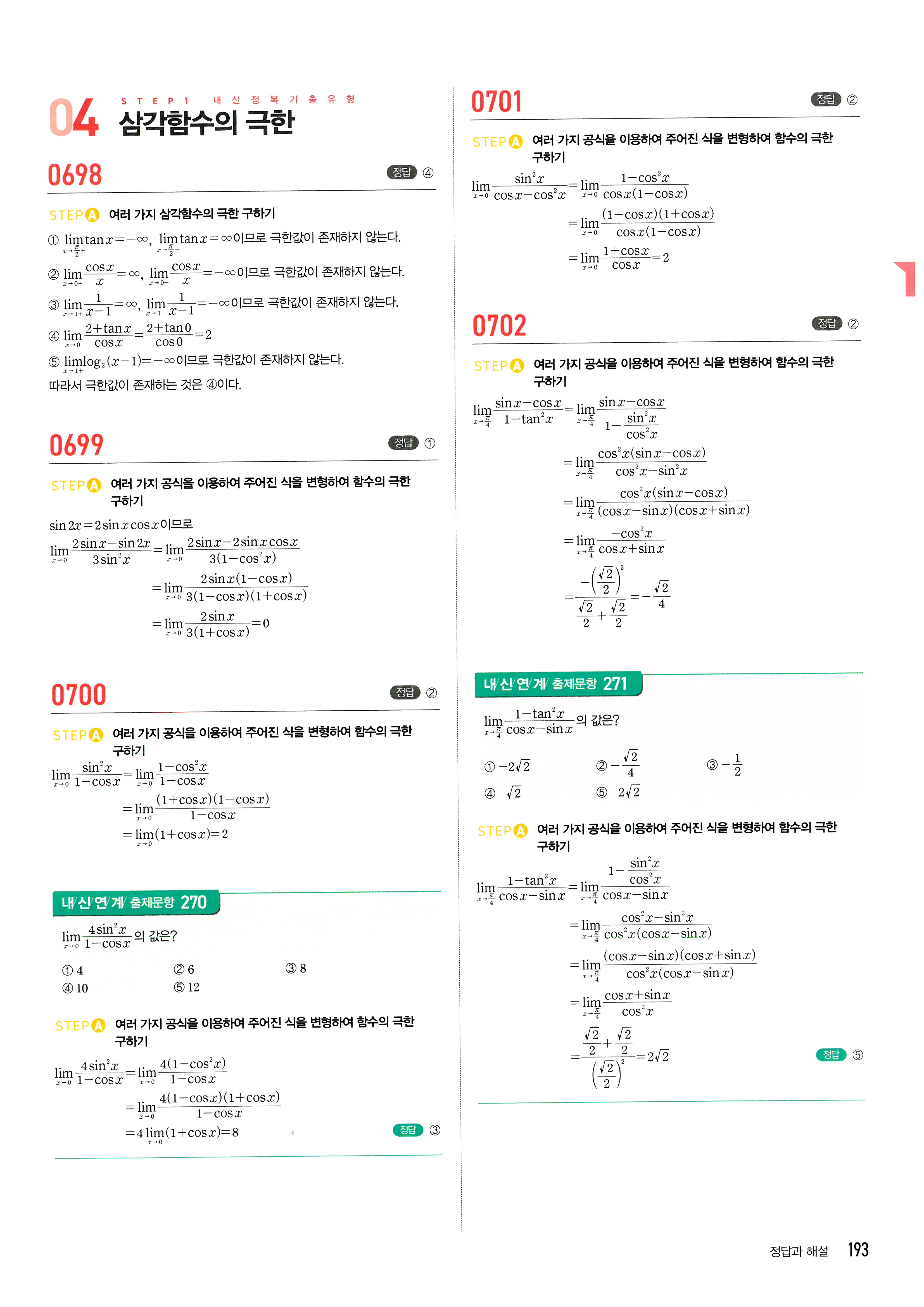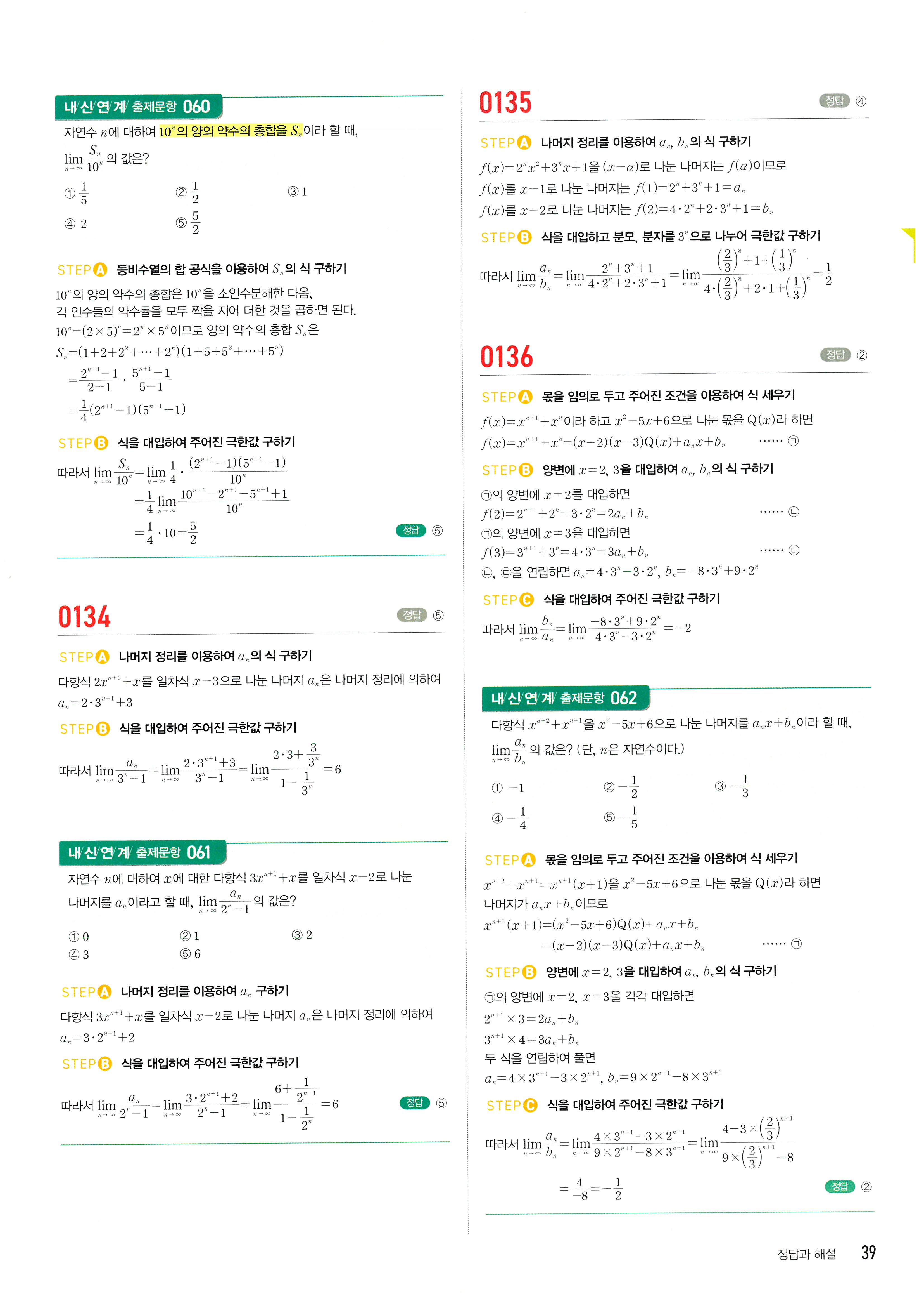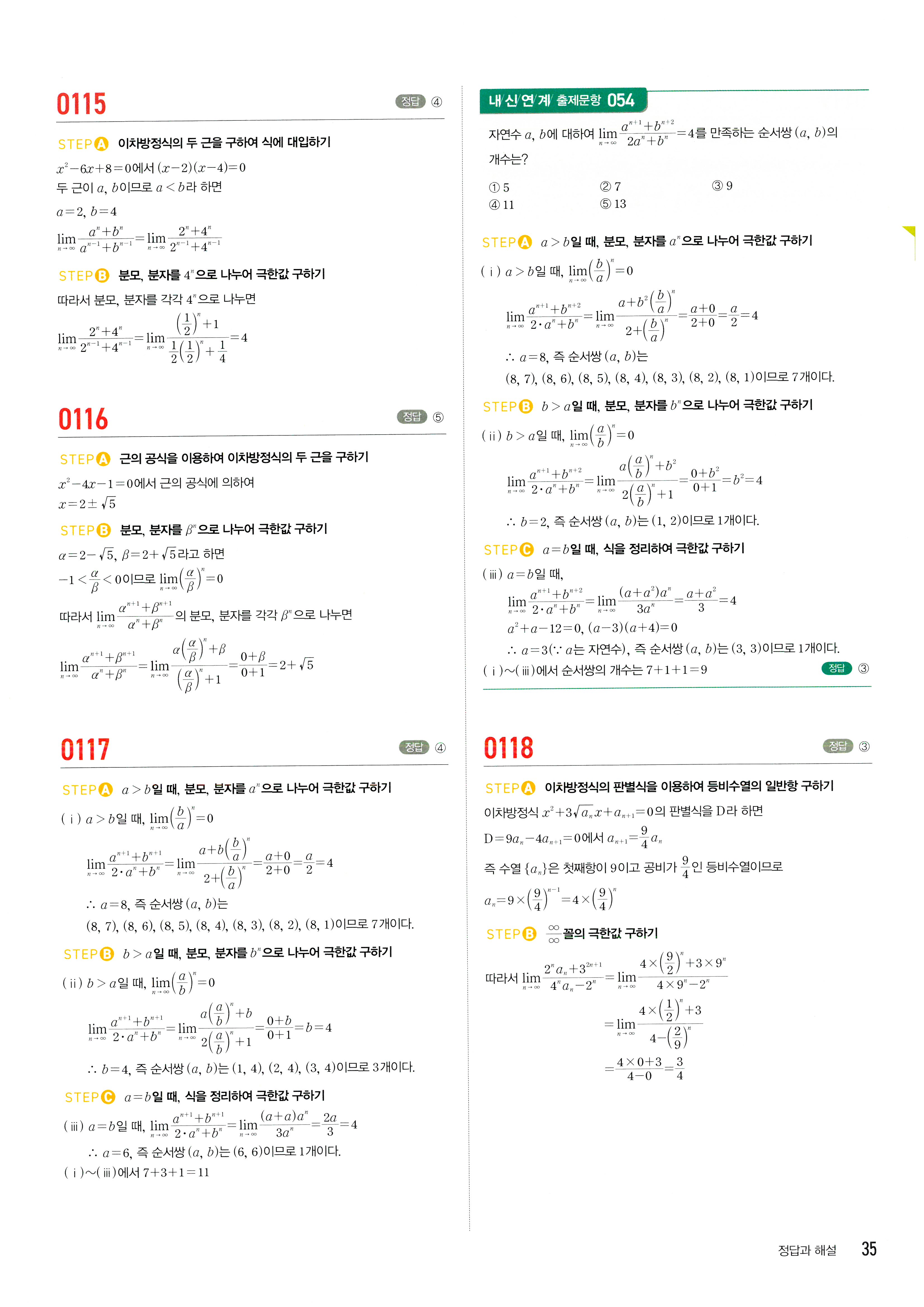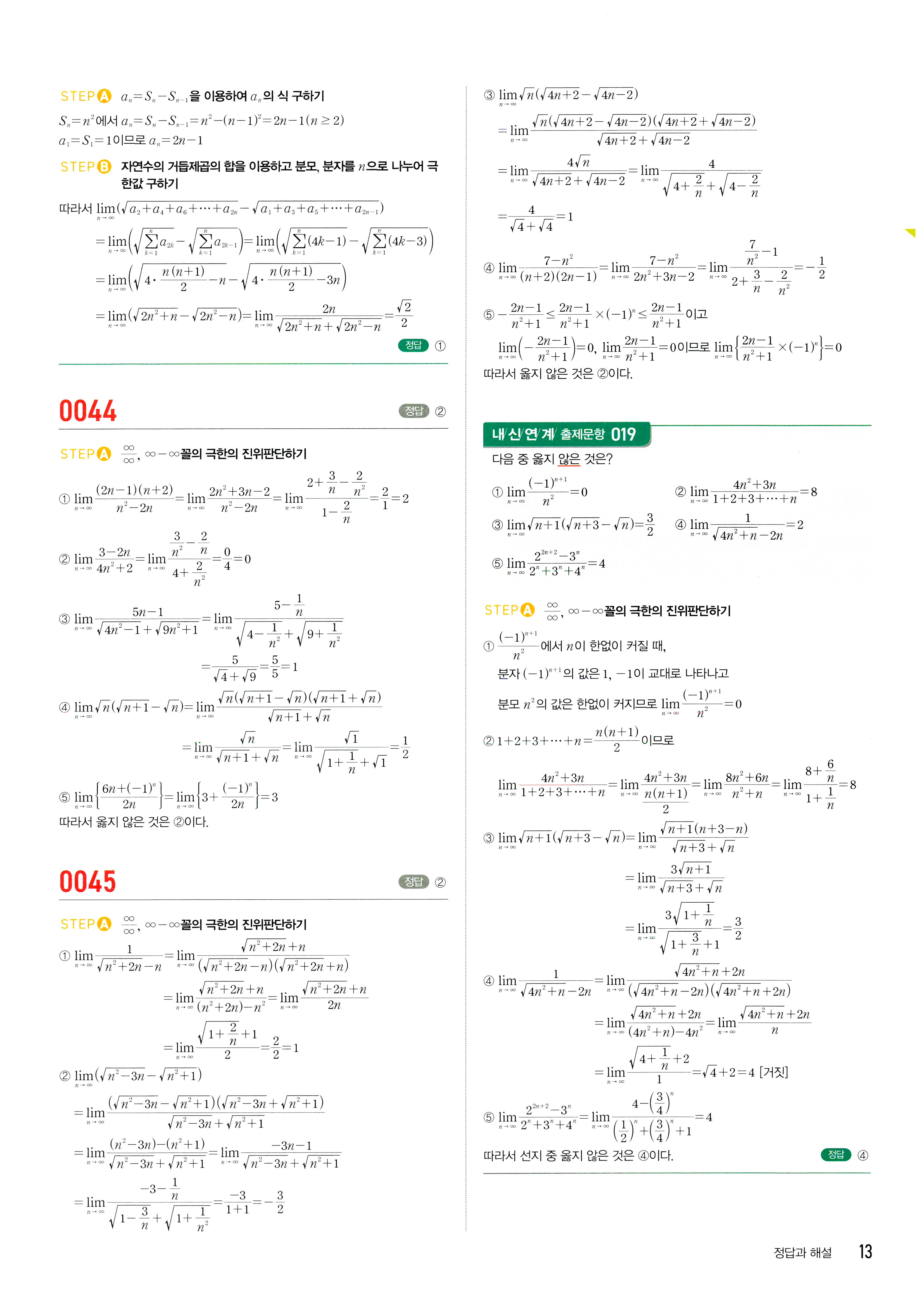 빠른로딩을 위한 마플시너지 미적분 단원별 답지링크