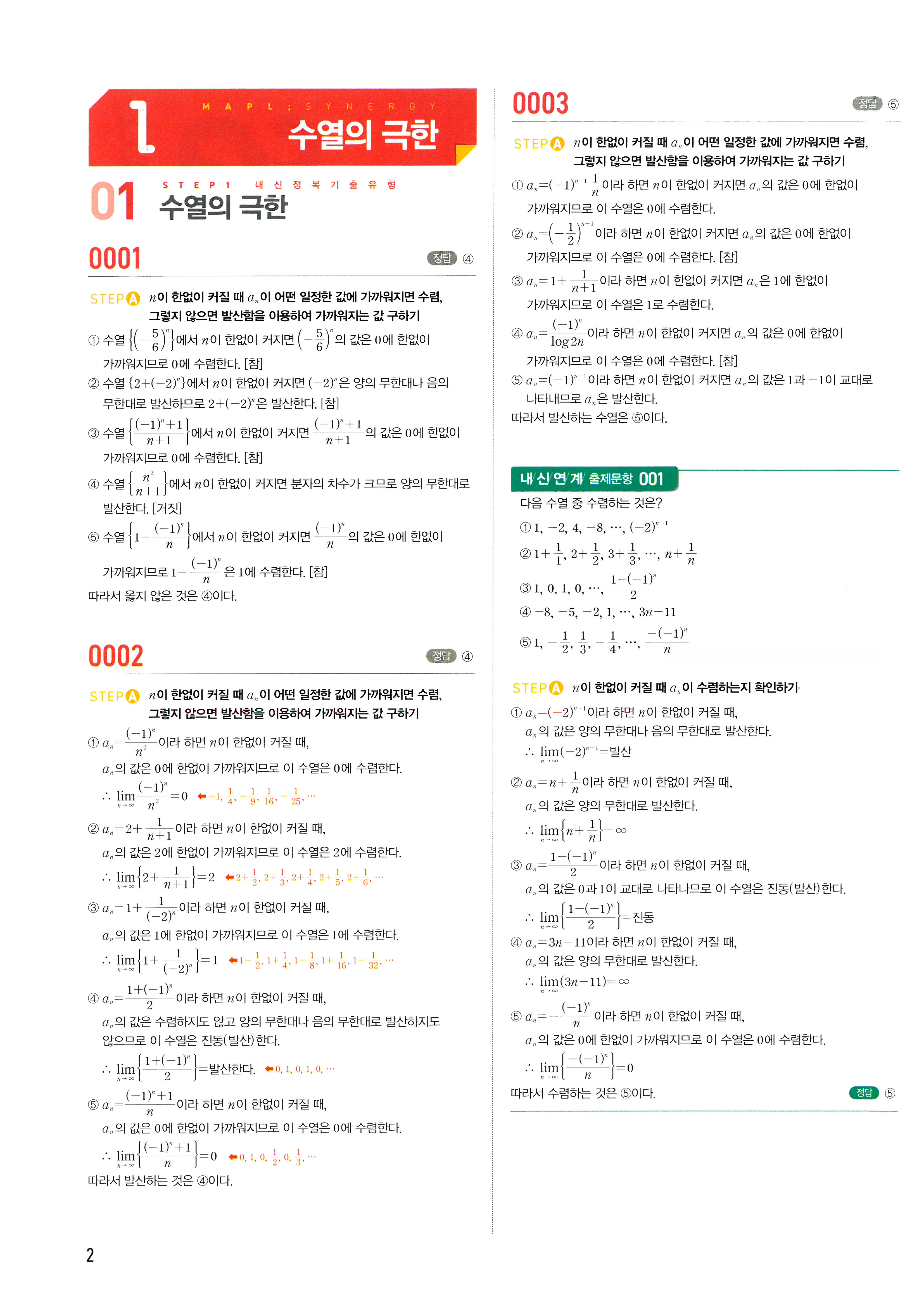 마플시너지 미적분 답지 1편 (1~100p) | 수열의 극한, 급수 해설 📚 마플시너지 미적분 답지 1편 (1~100p) 분류: 고등수학 자료실 | 과목: 미적분 | 범위: Part 1 (수열의 극한 ~ 급수) 이과 수학의 핵심이