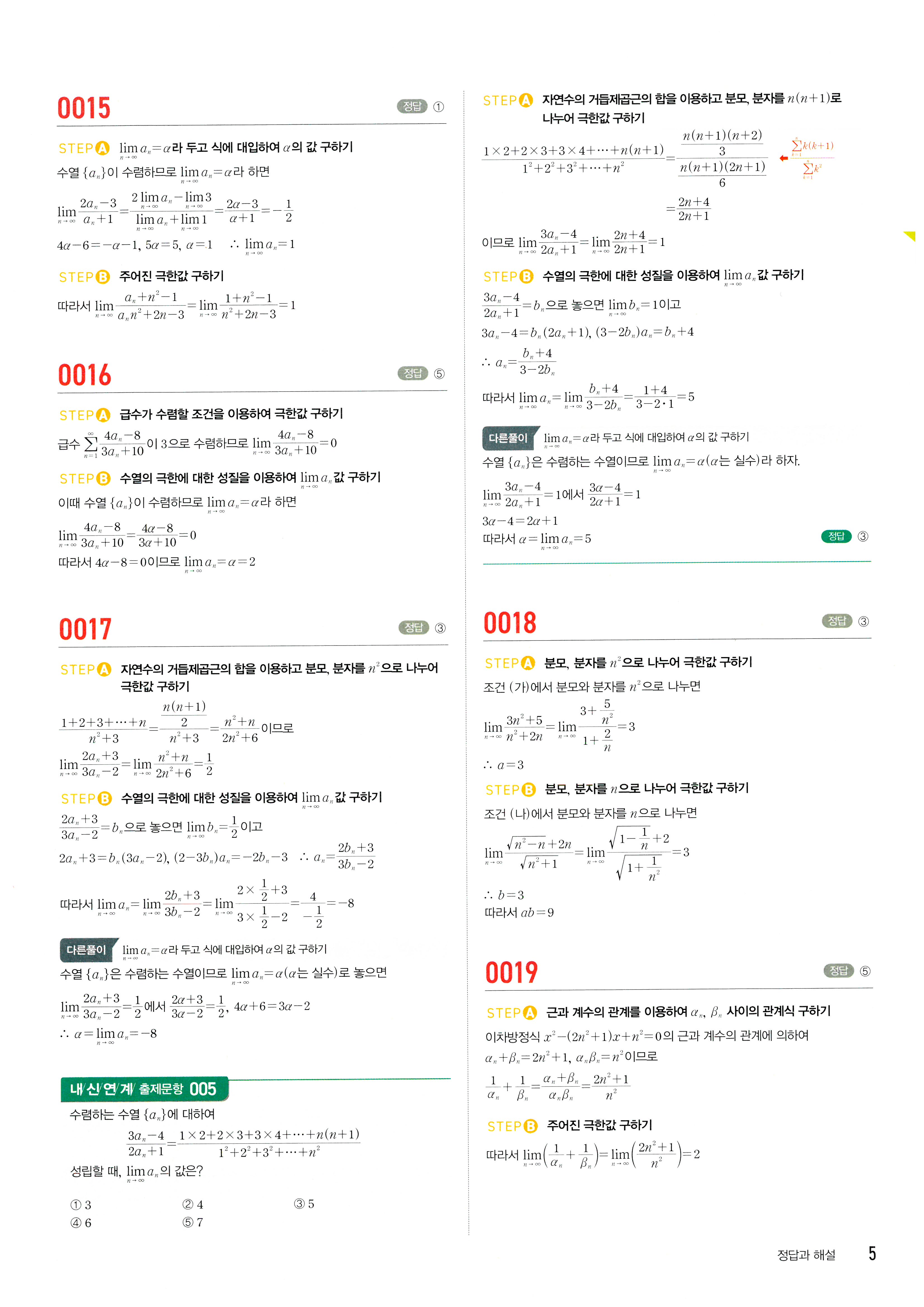 마플시너지 미적분 전반부 답지 해설지 사진답지 빠른답지 모바일최적화
