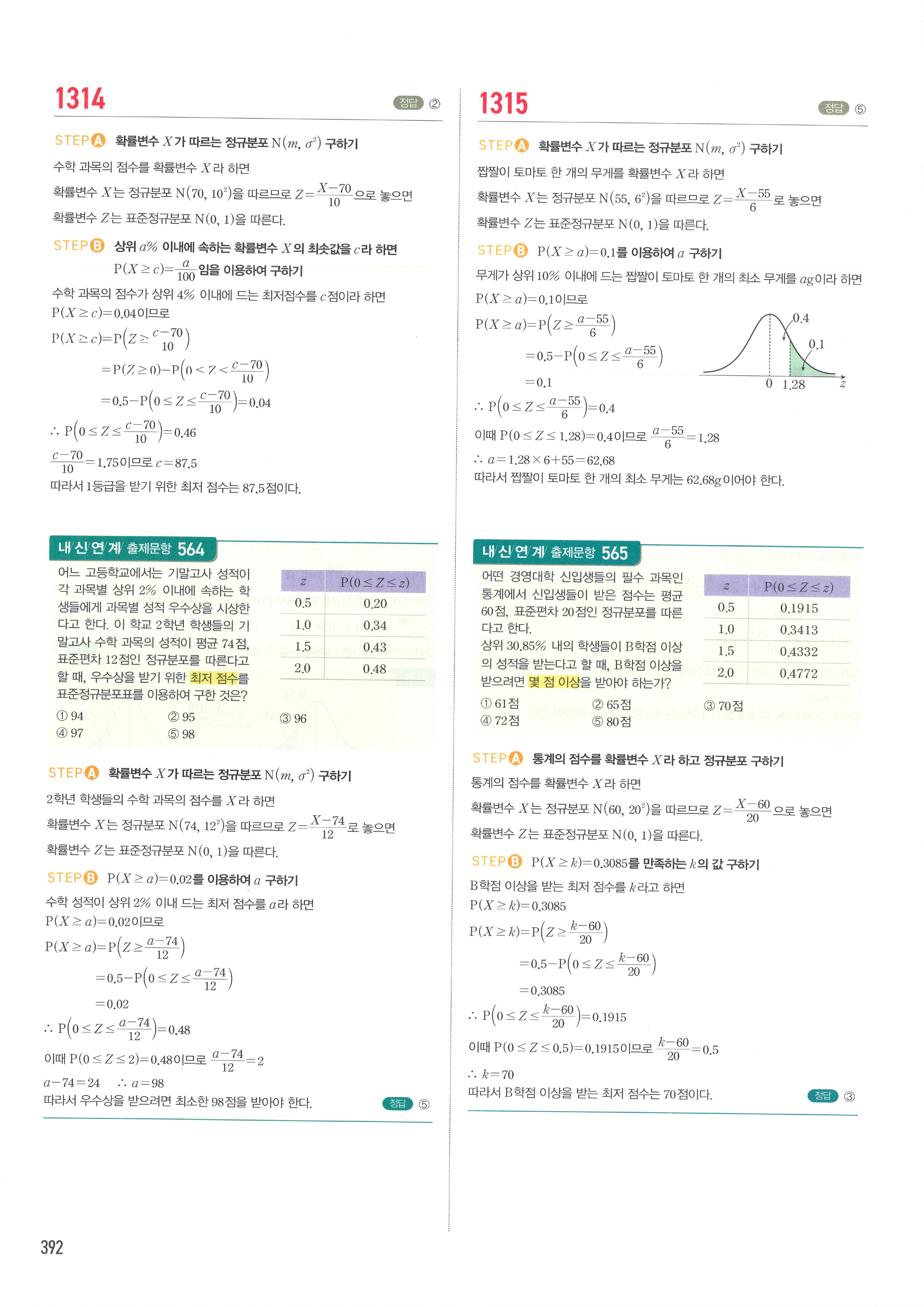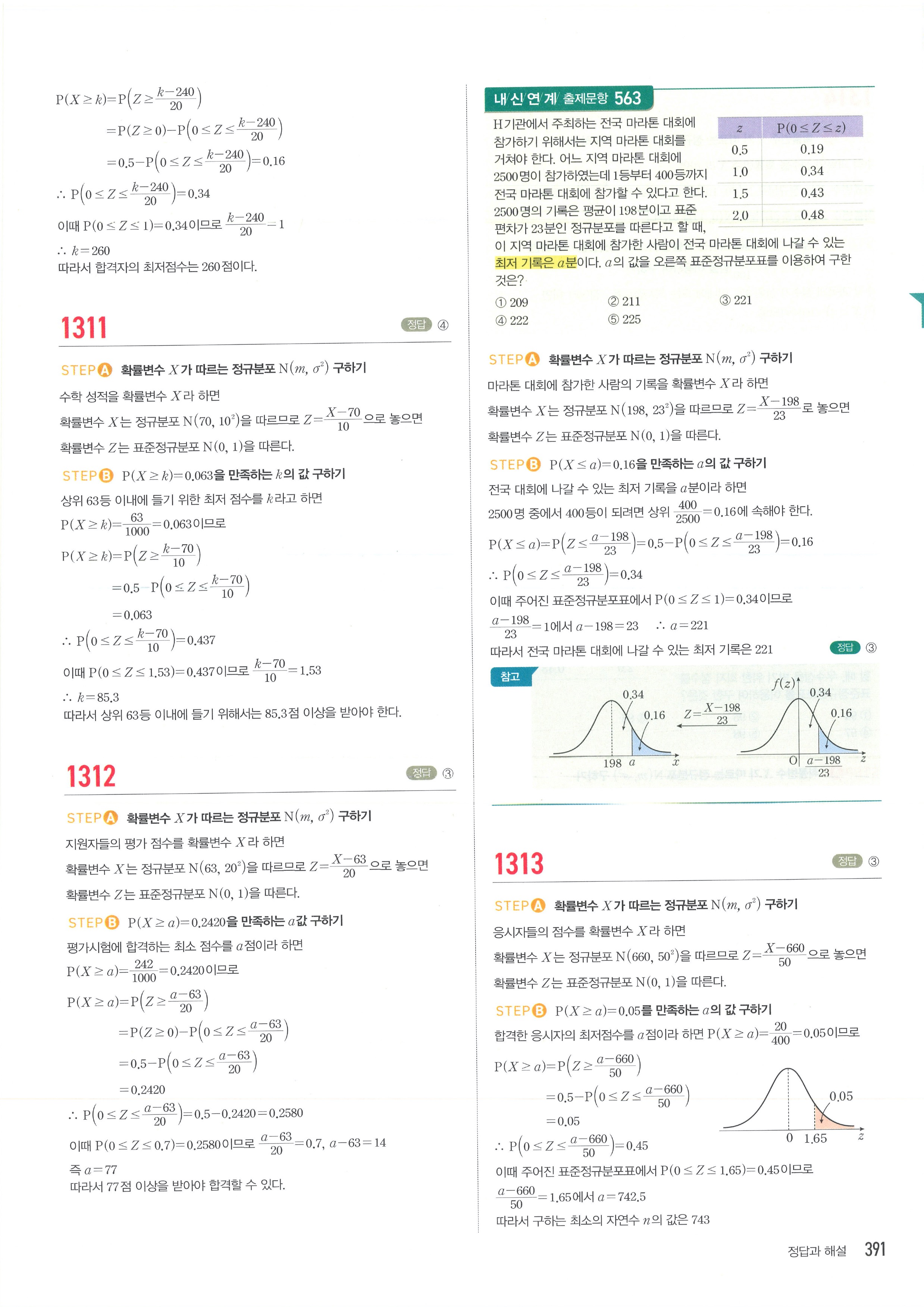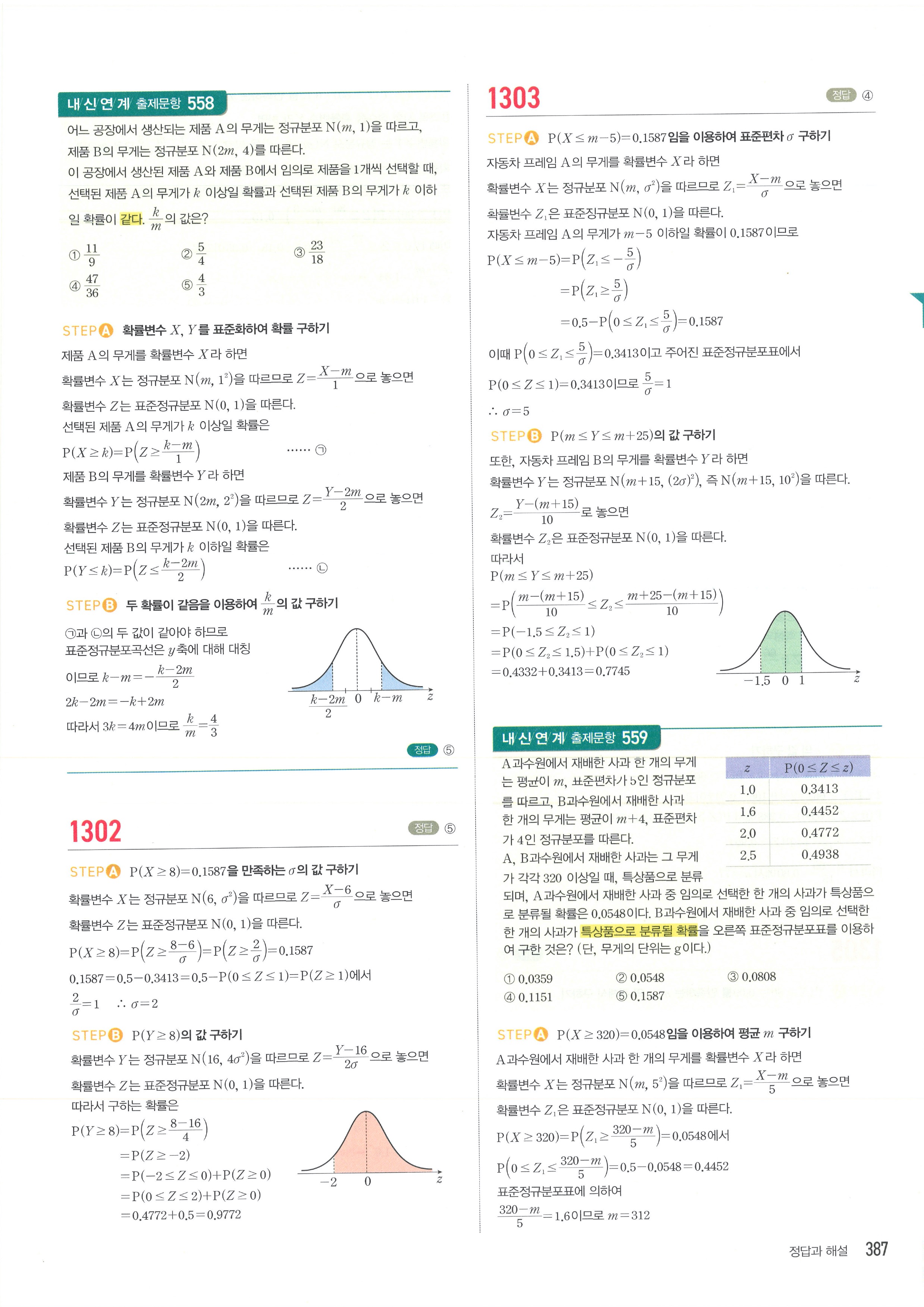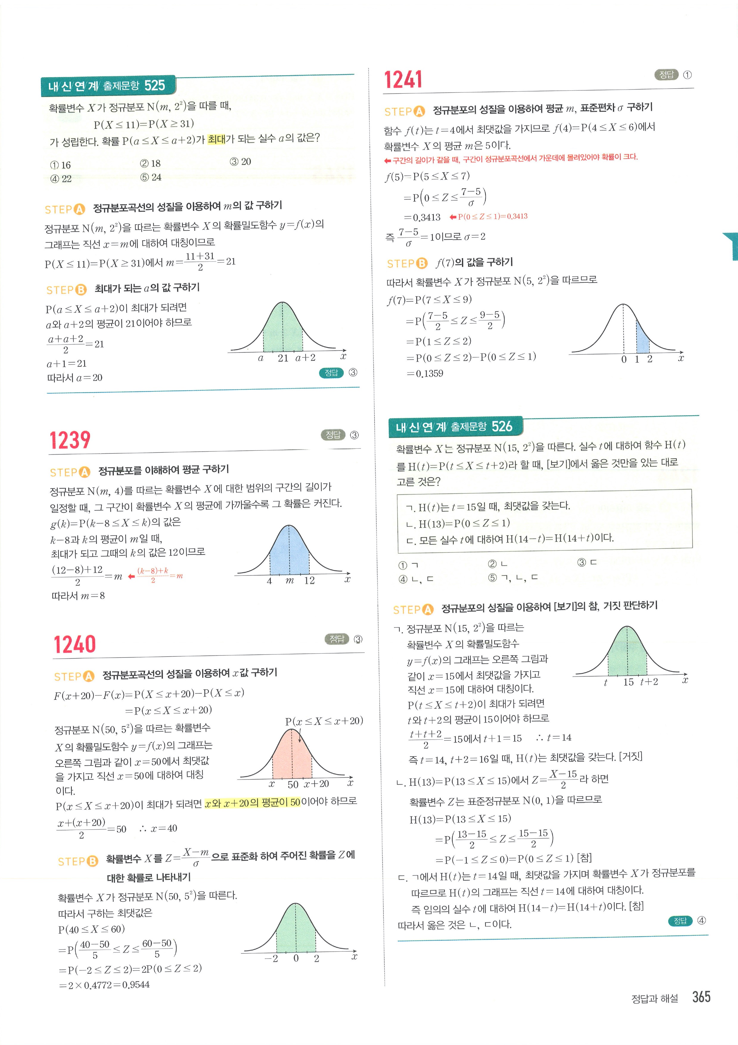 마플시너지 확률과통계 단원별 답지 3-03정규분포