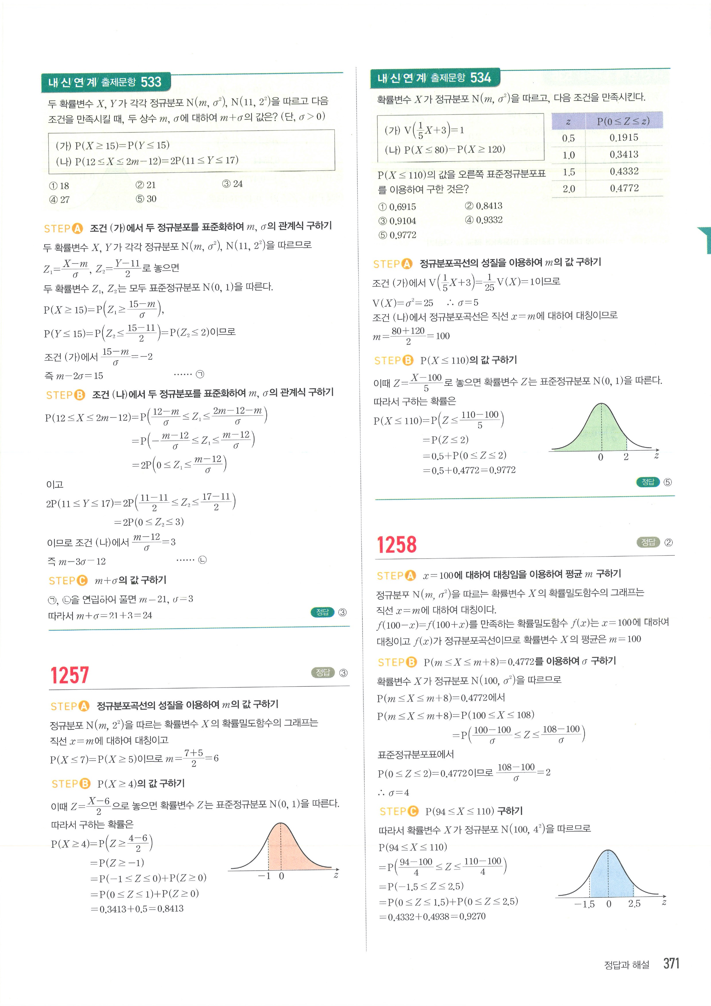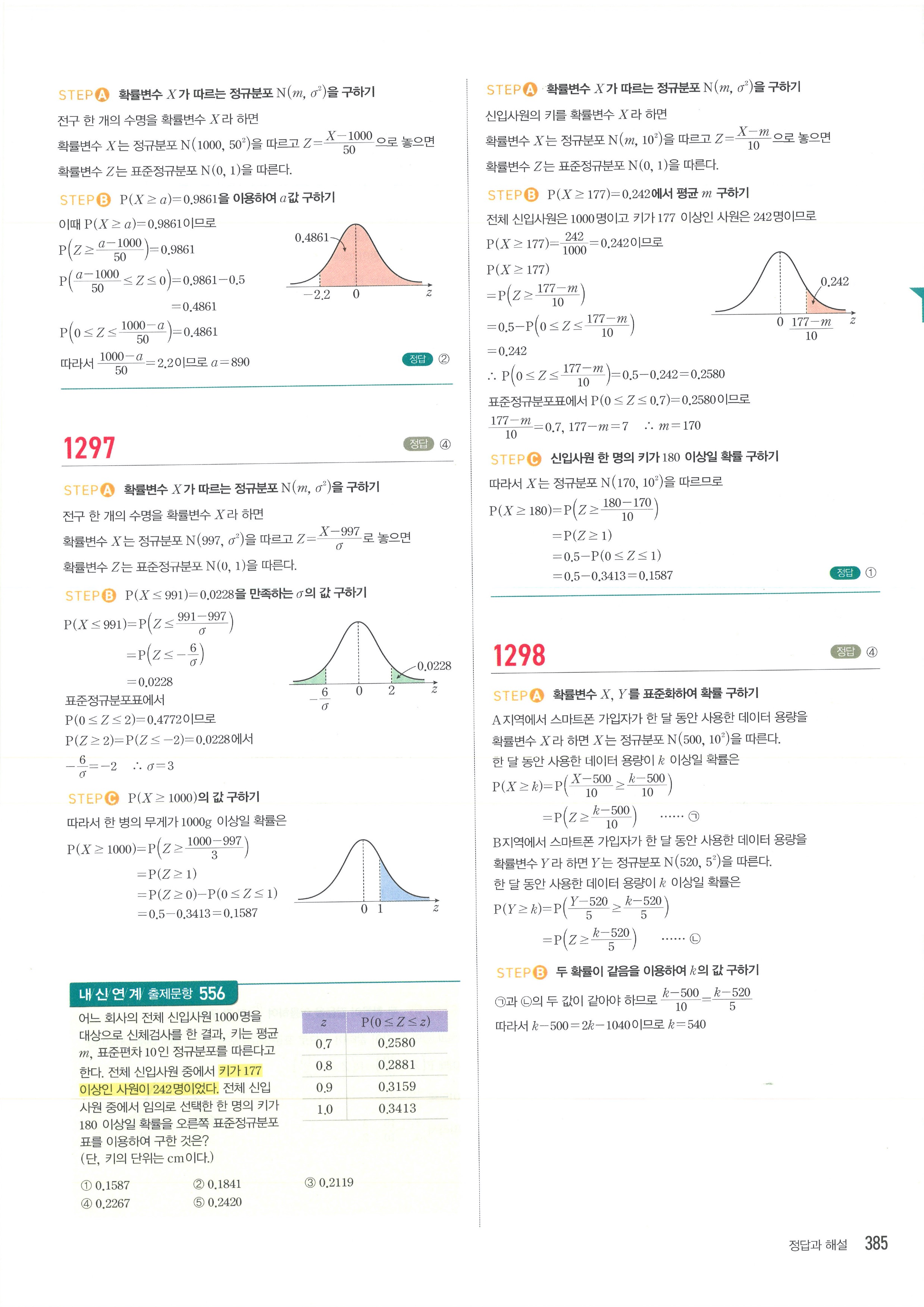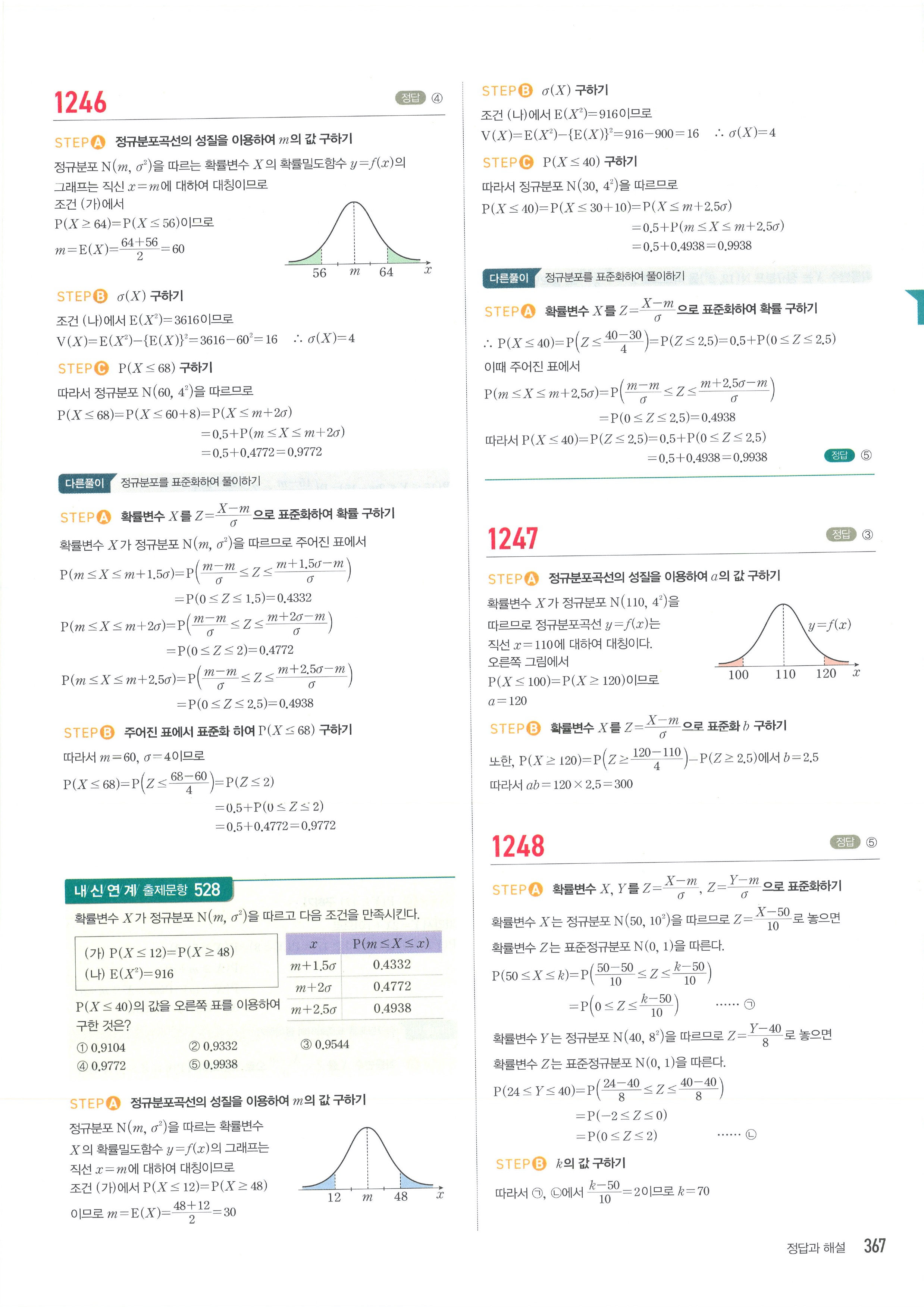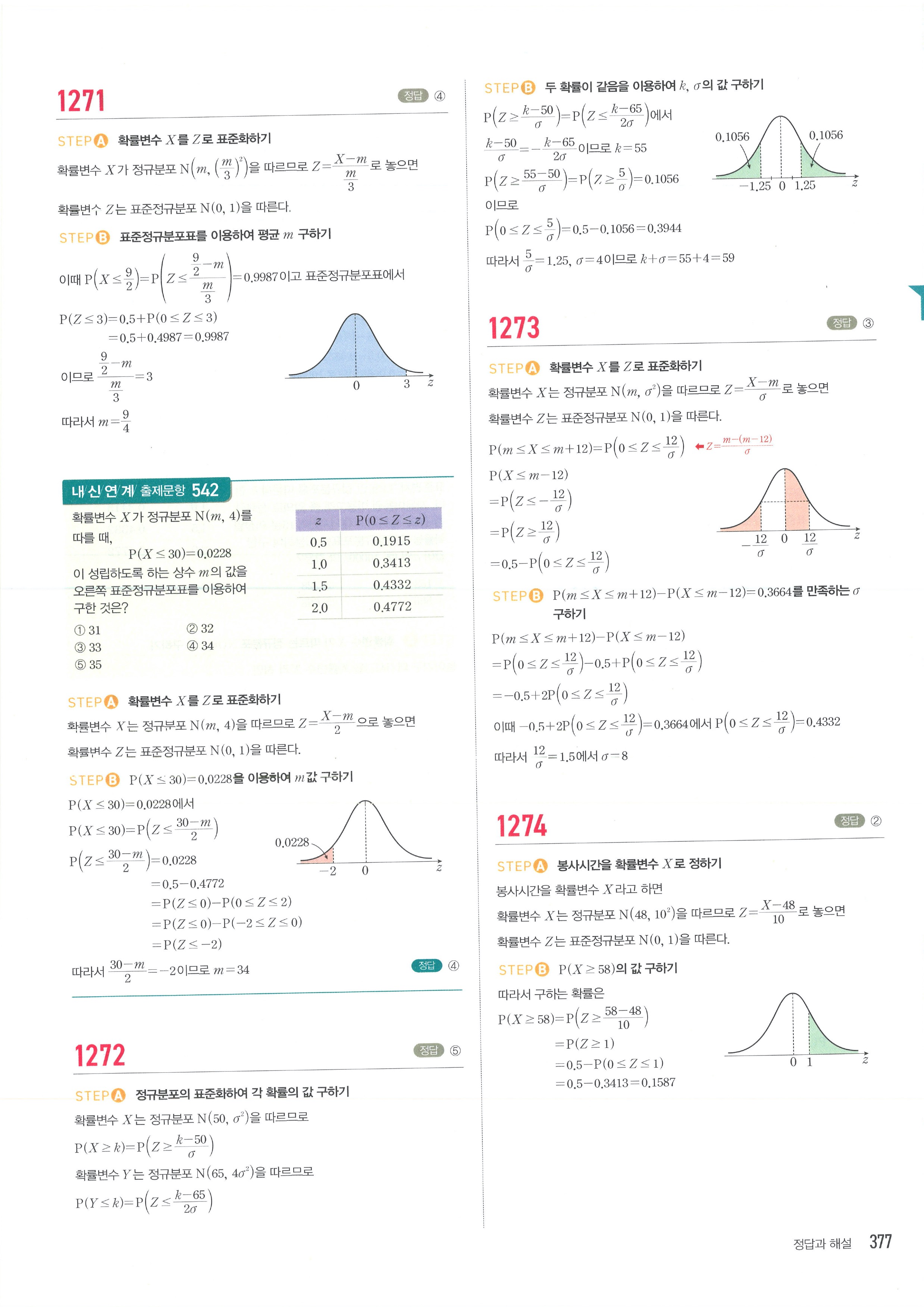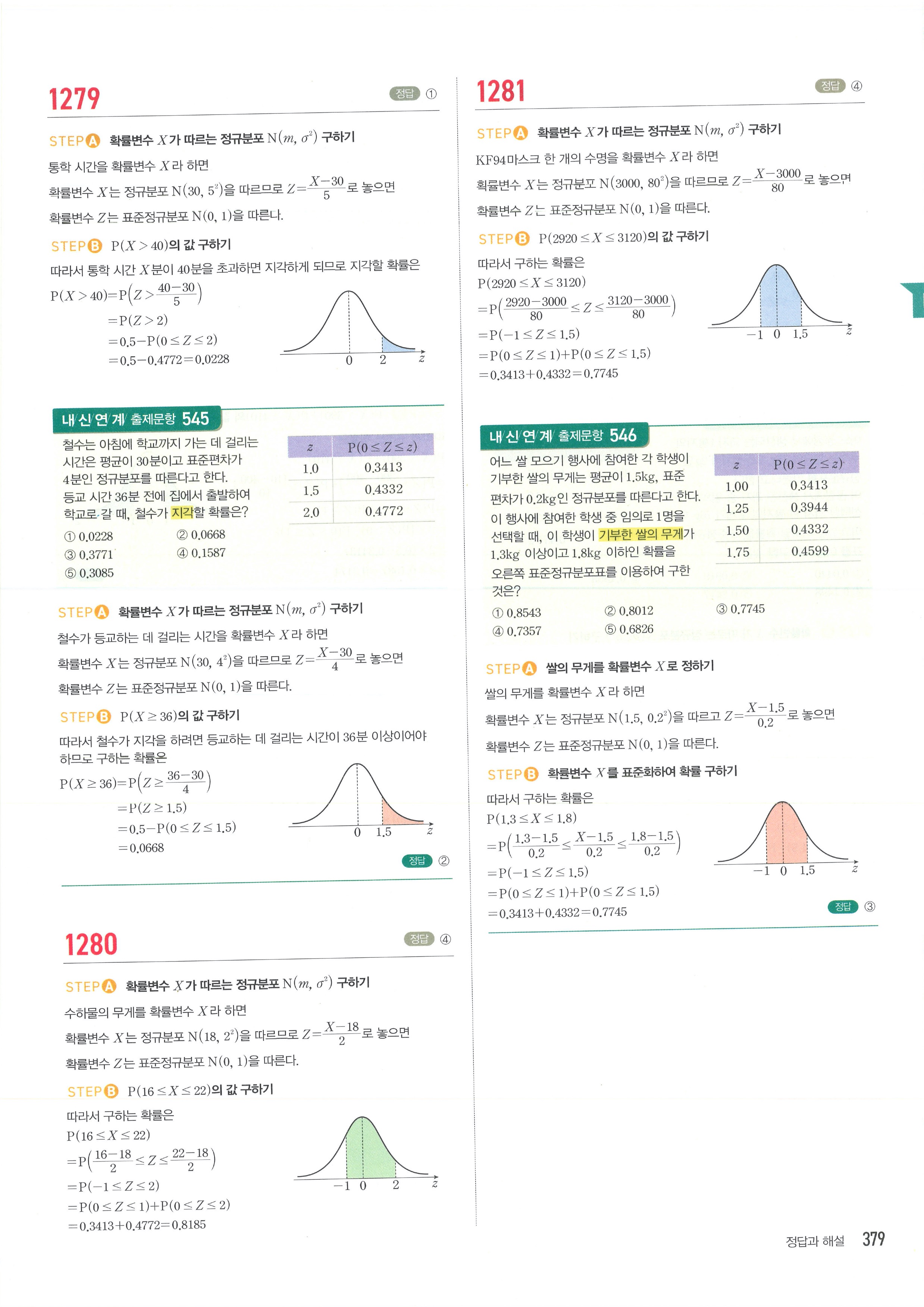 마플시너지 확률과통계 단원별 답지 3-03정규분포