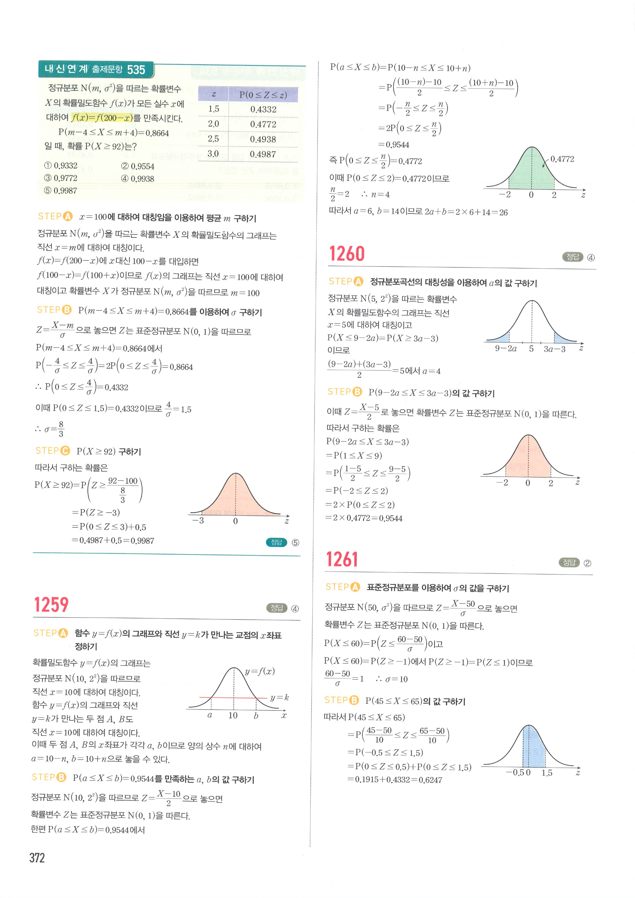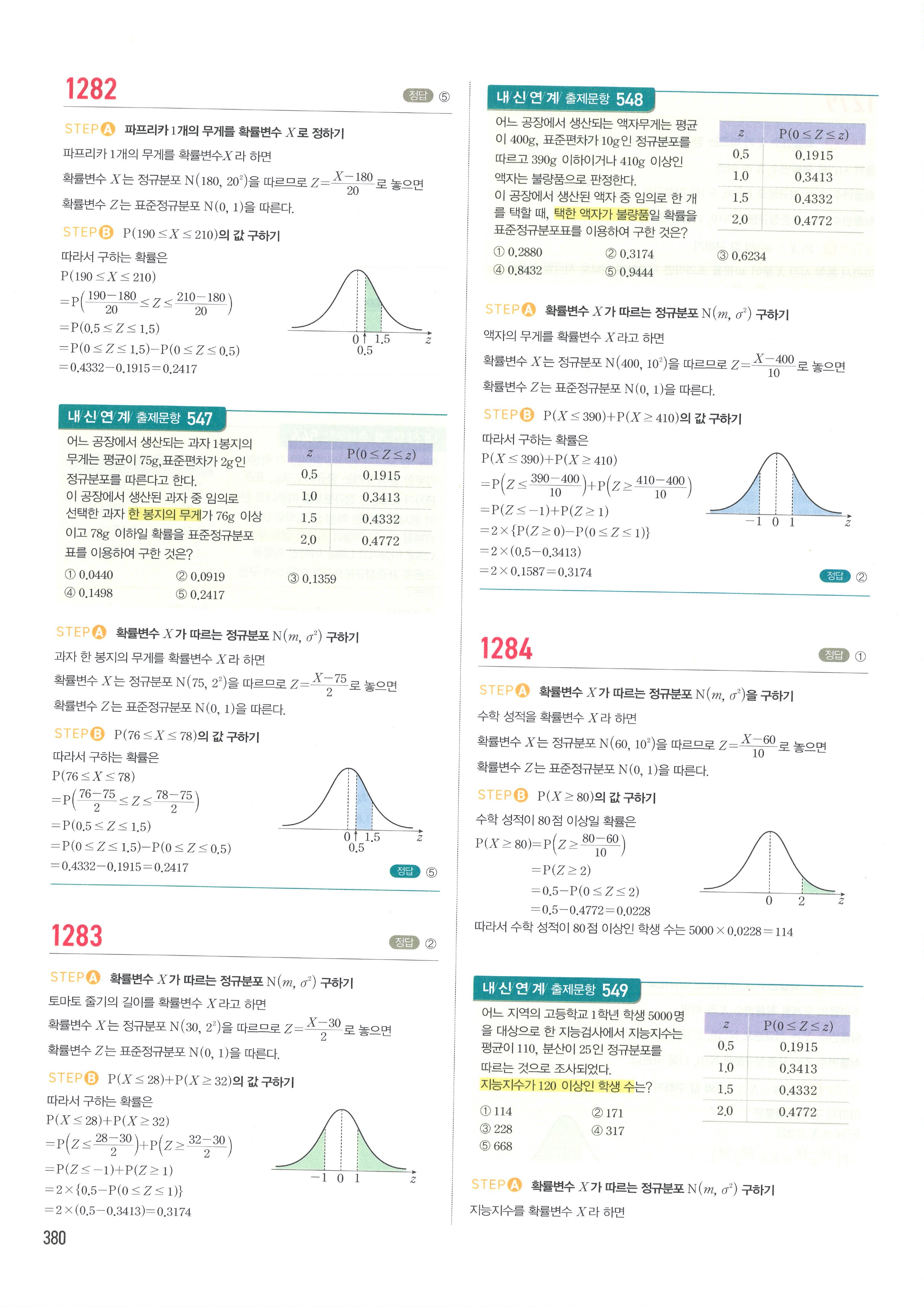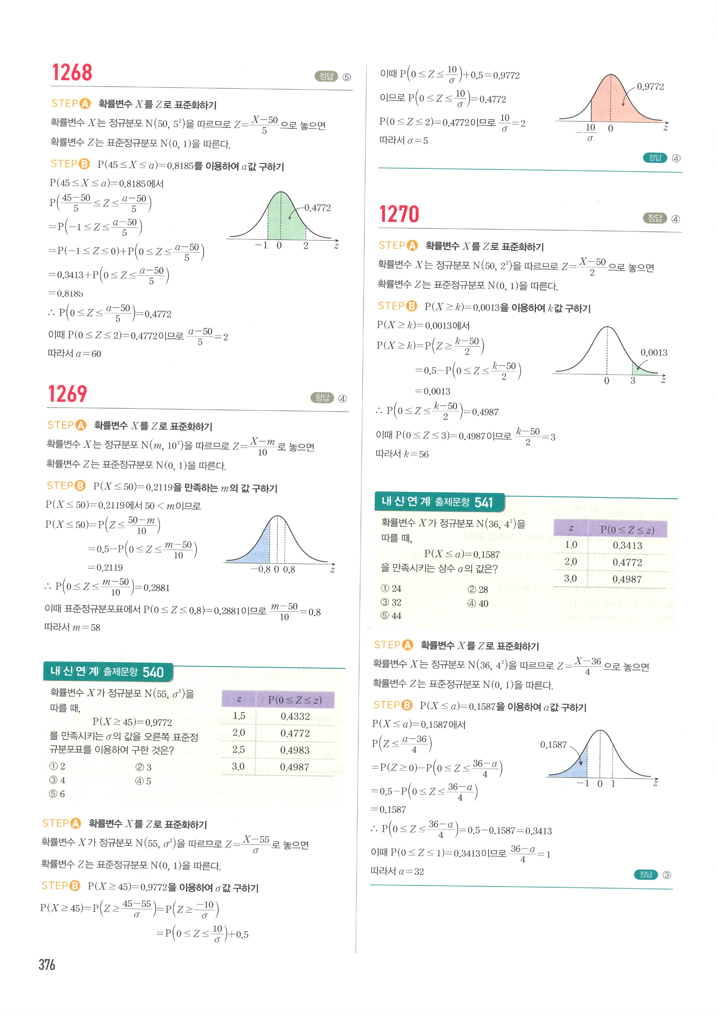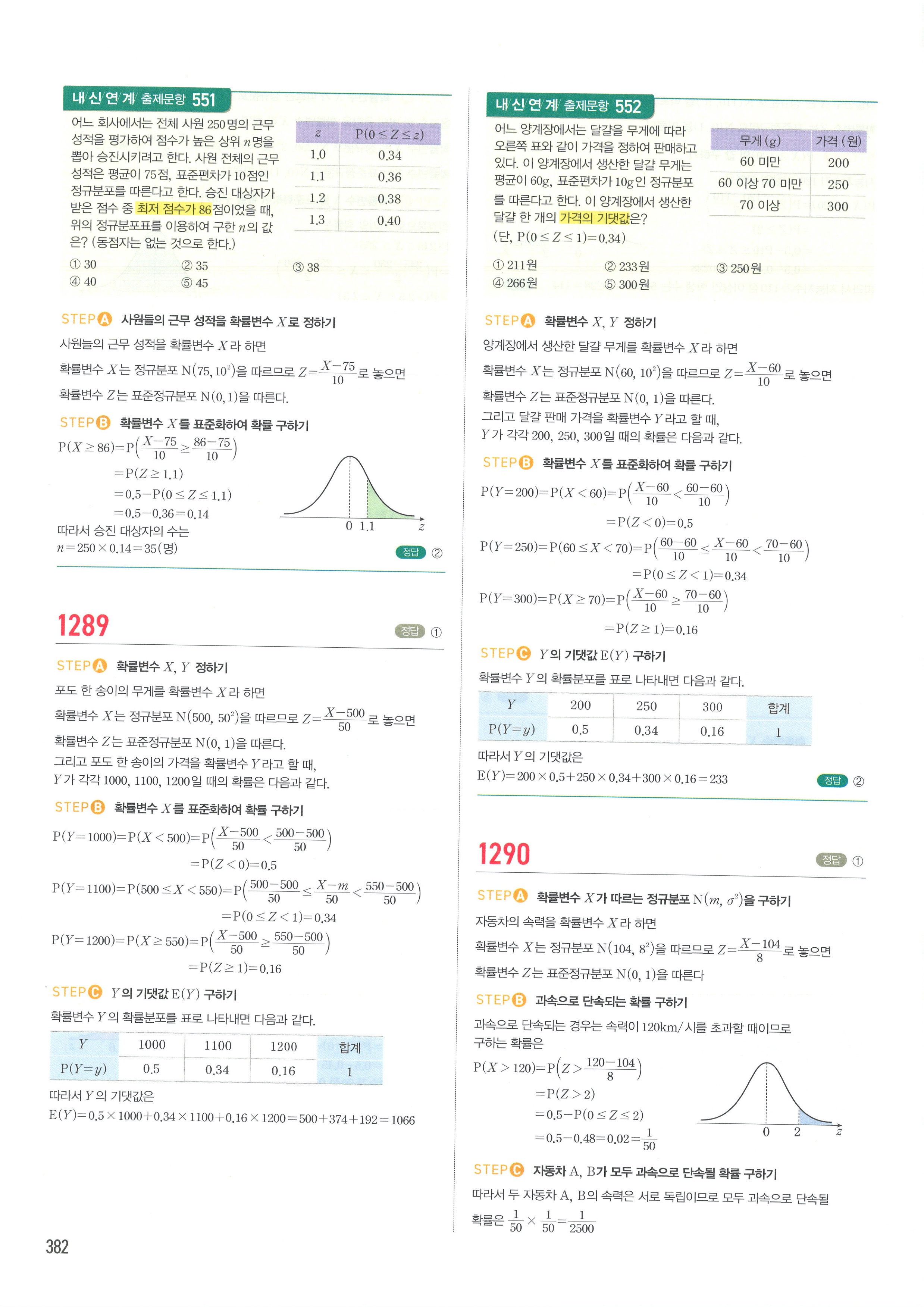 마플시너지 확률과통계 단원별 답지 3-03정규분포