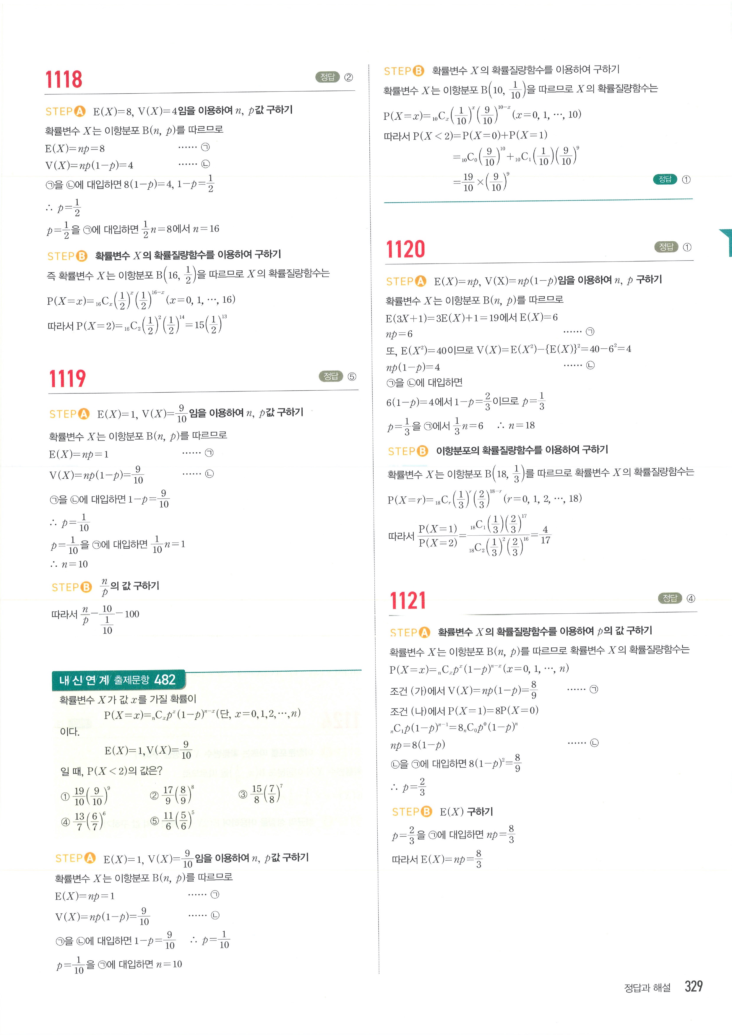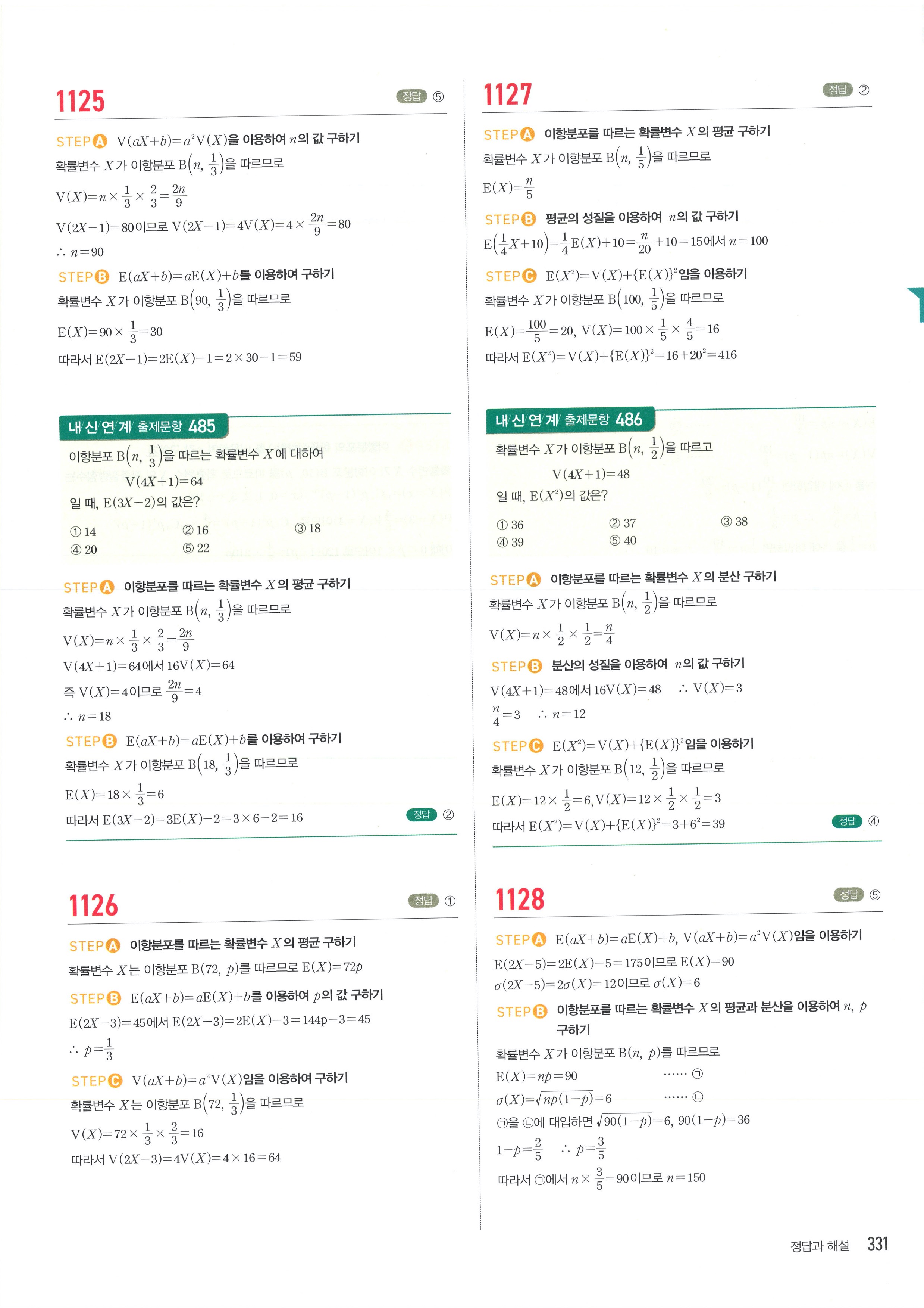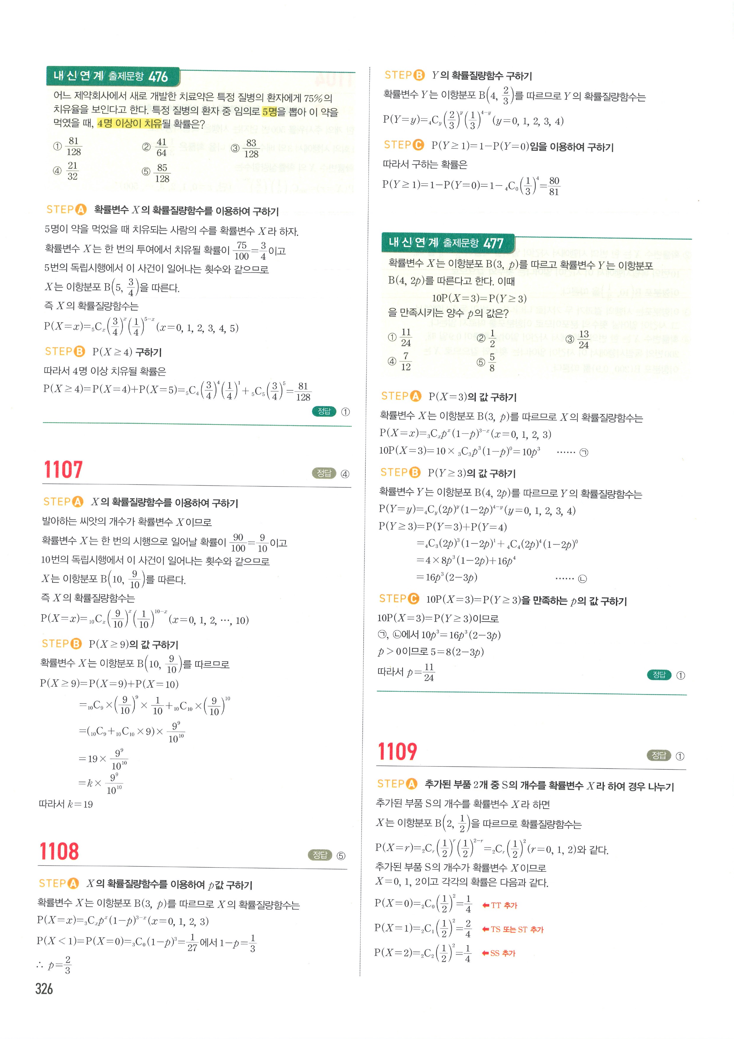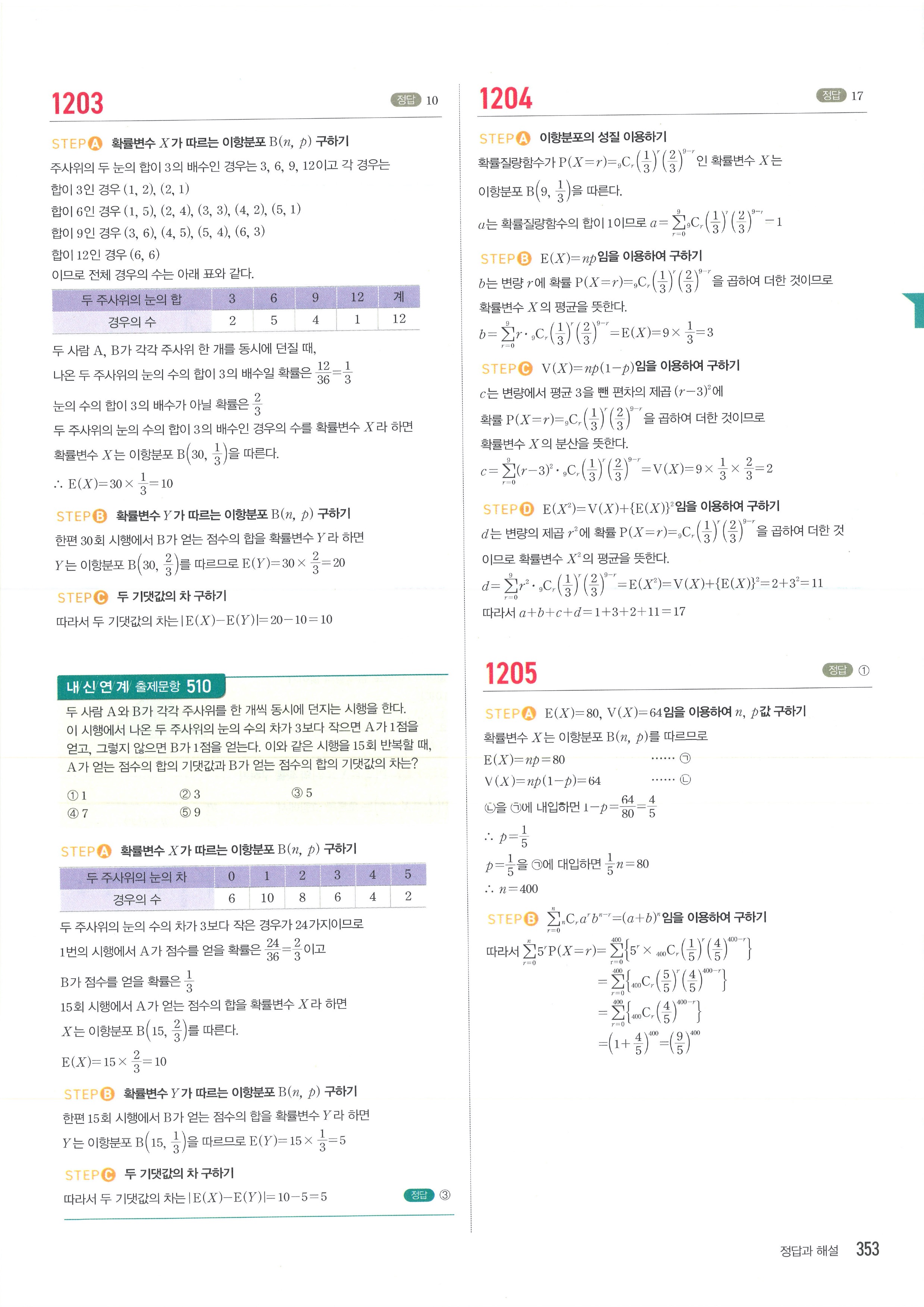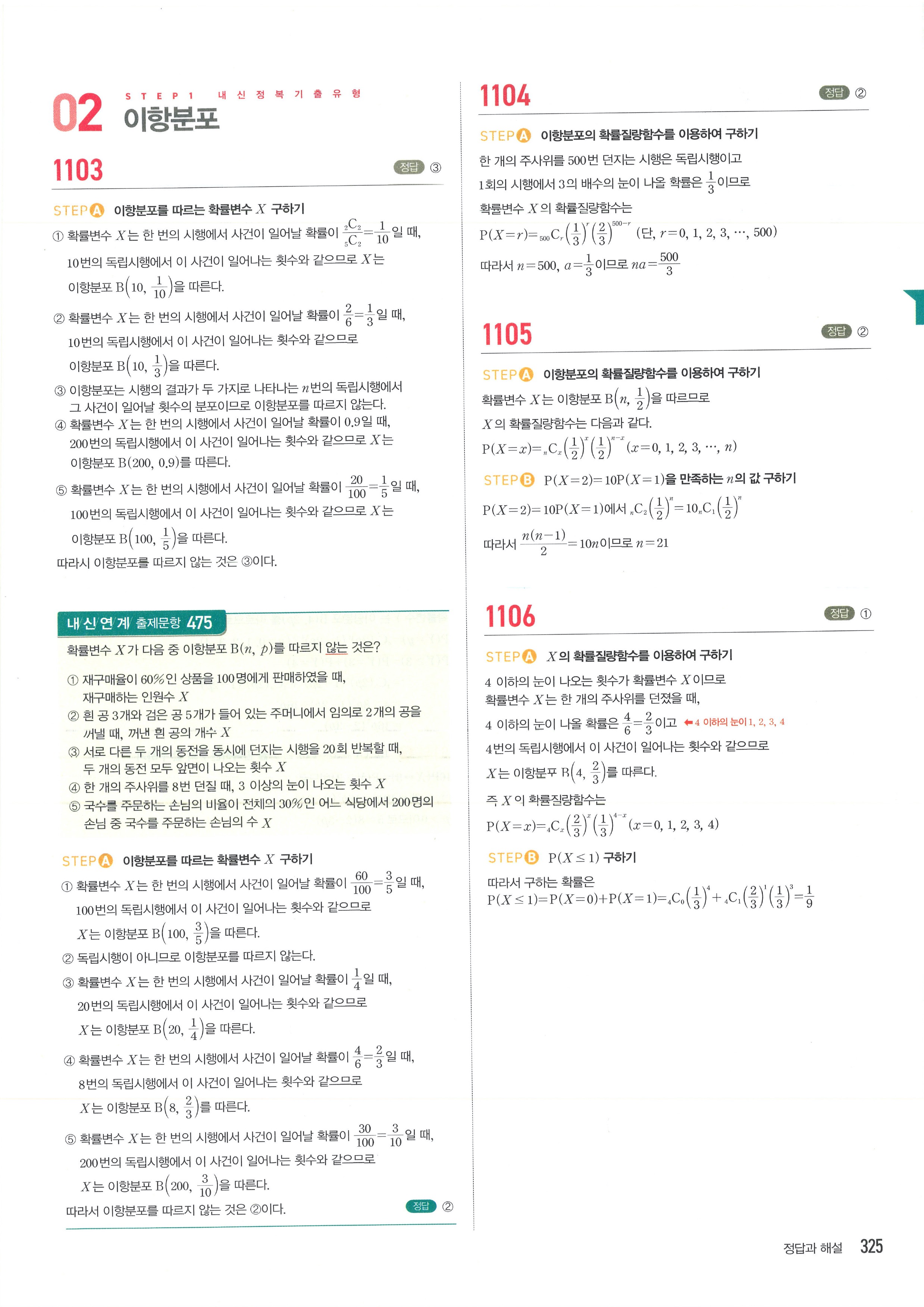 마플시너지 확률과통계 단원별 답지 3-02이항분포