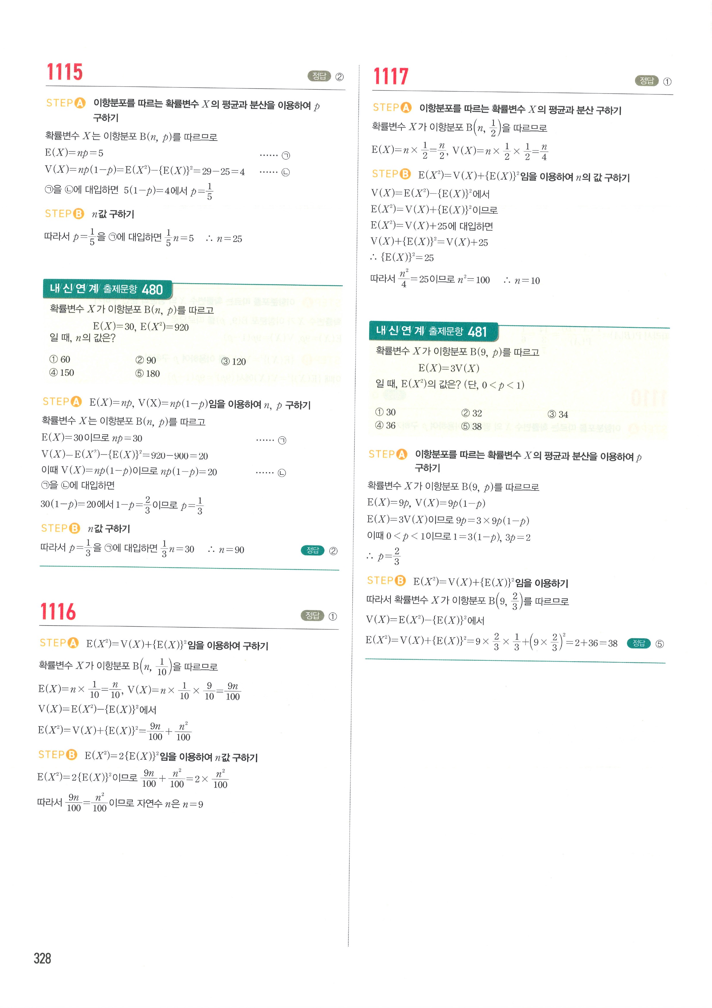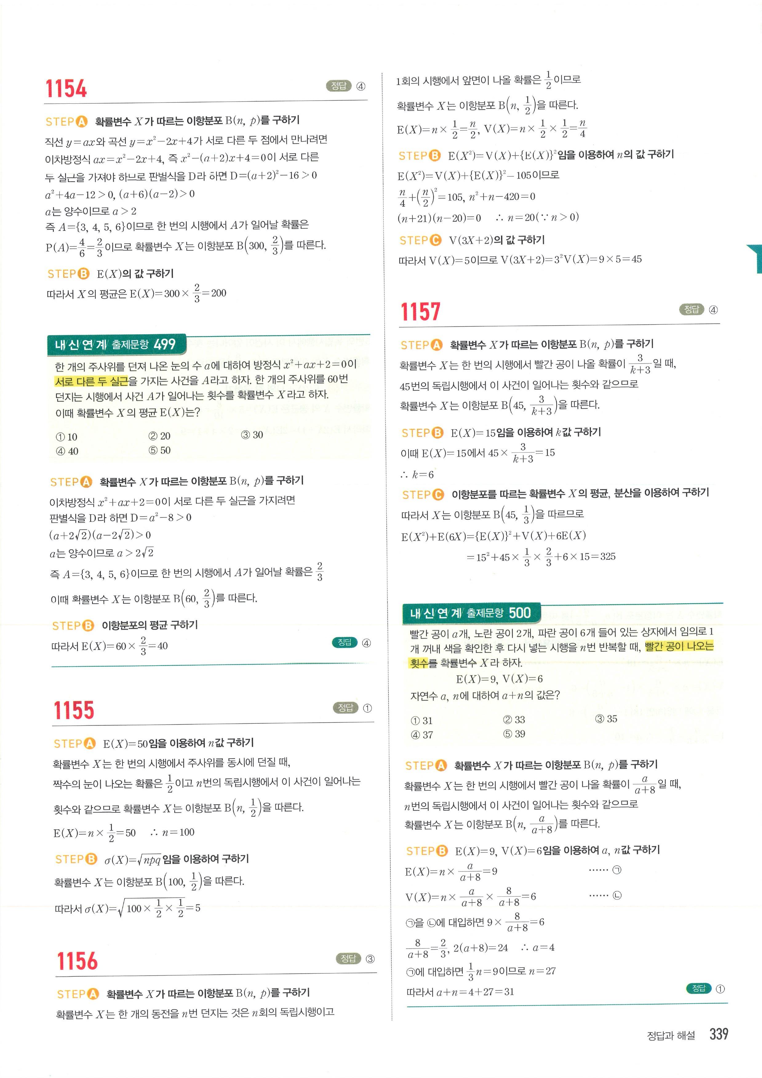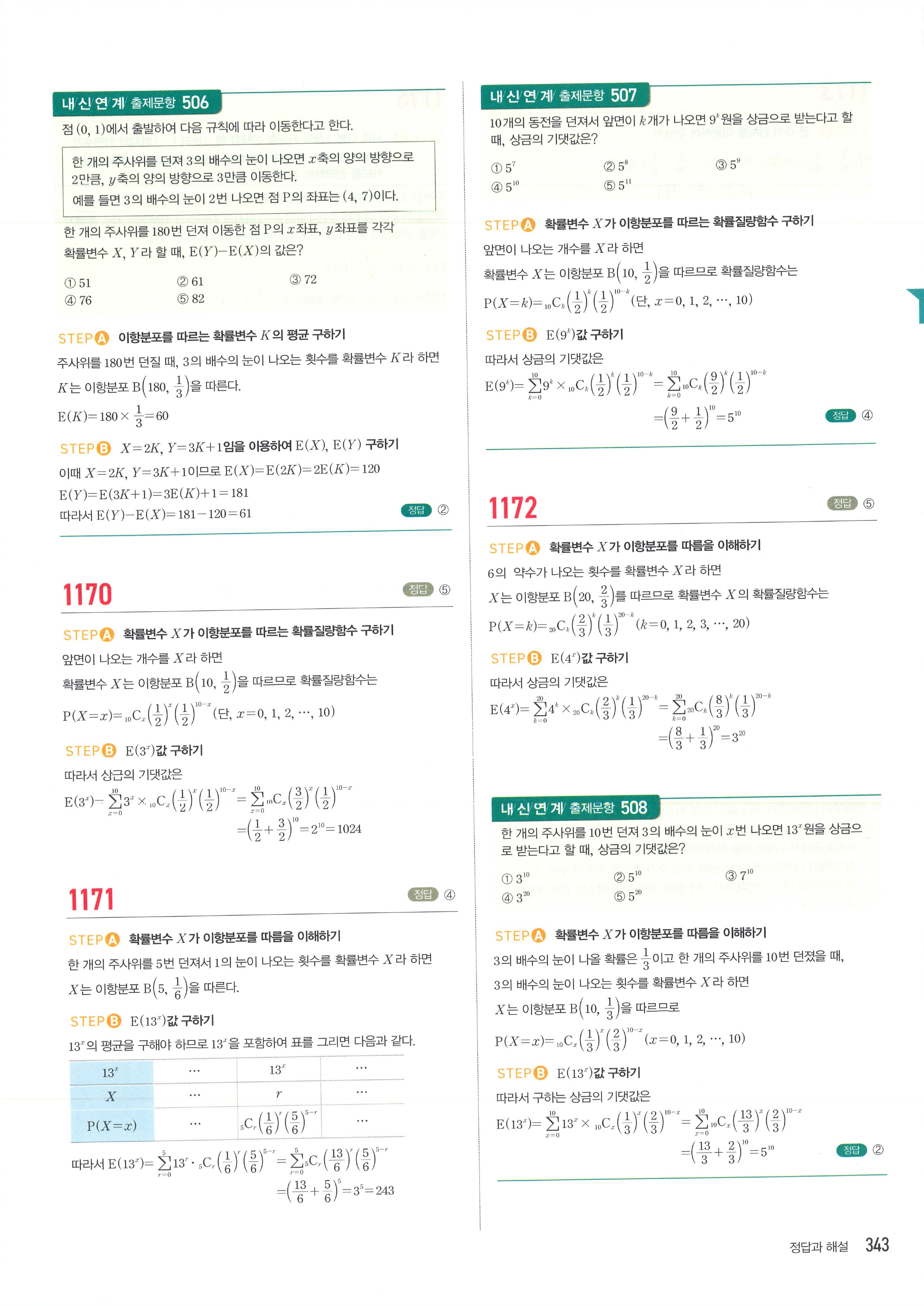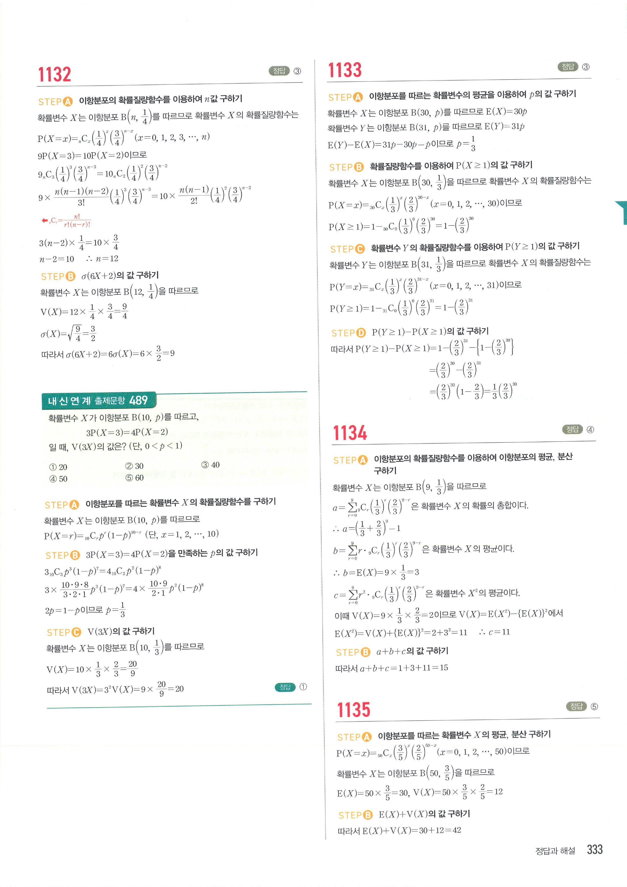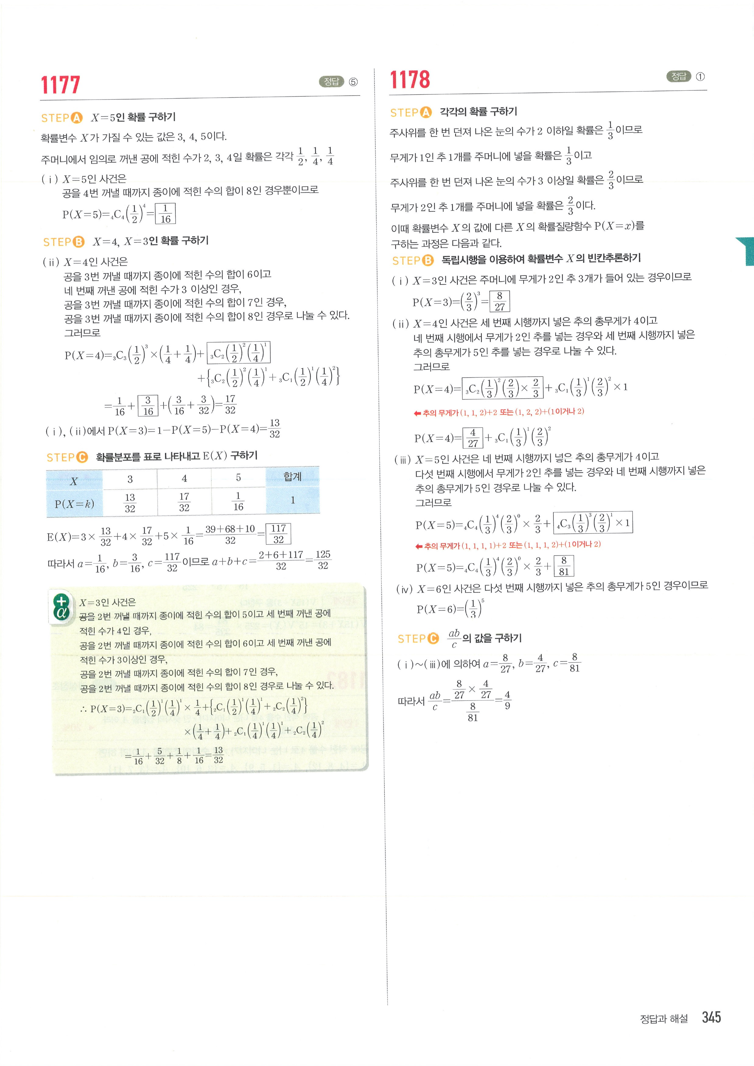 마플시너지 확률과통계 단원별 답지 3-02이항분포