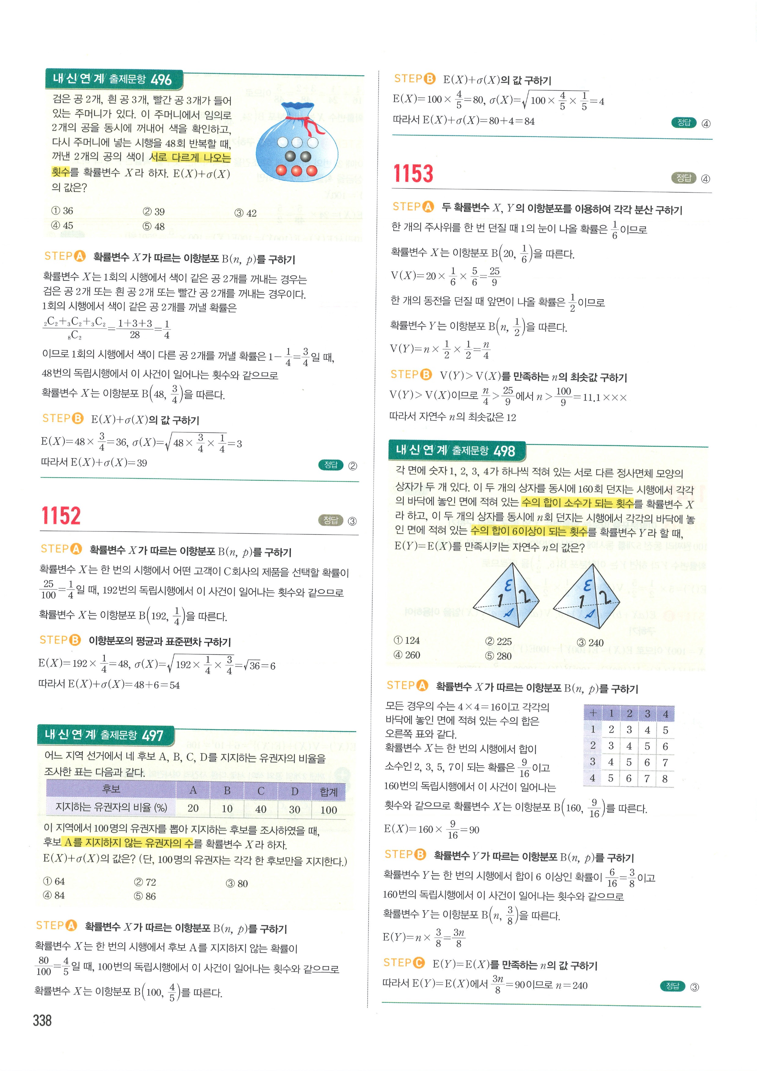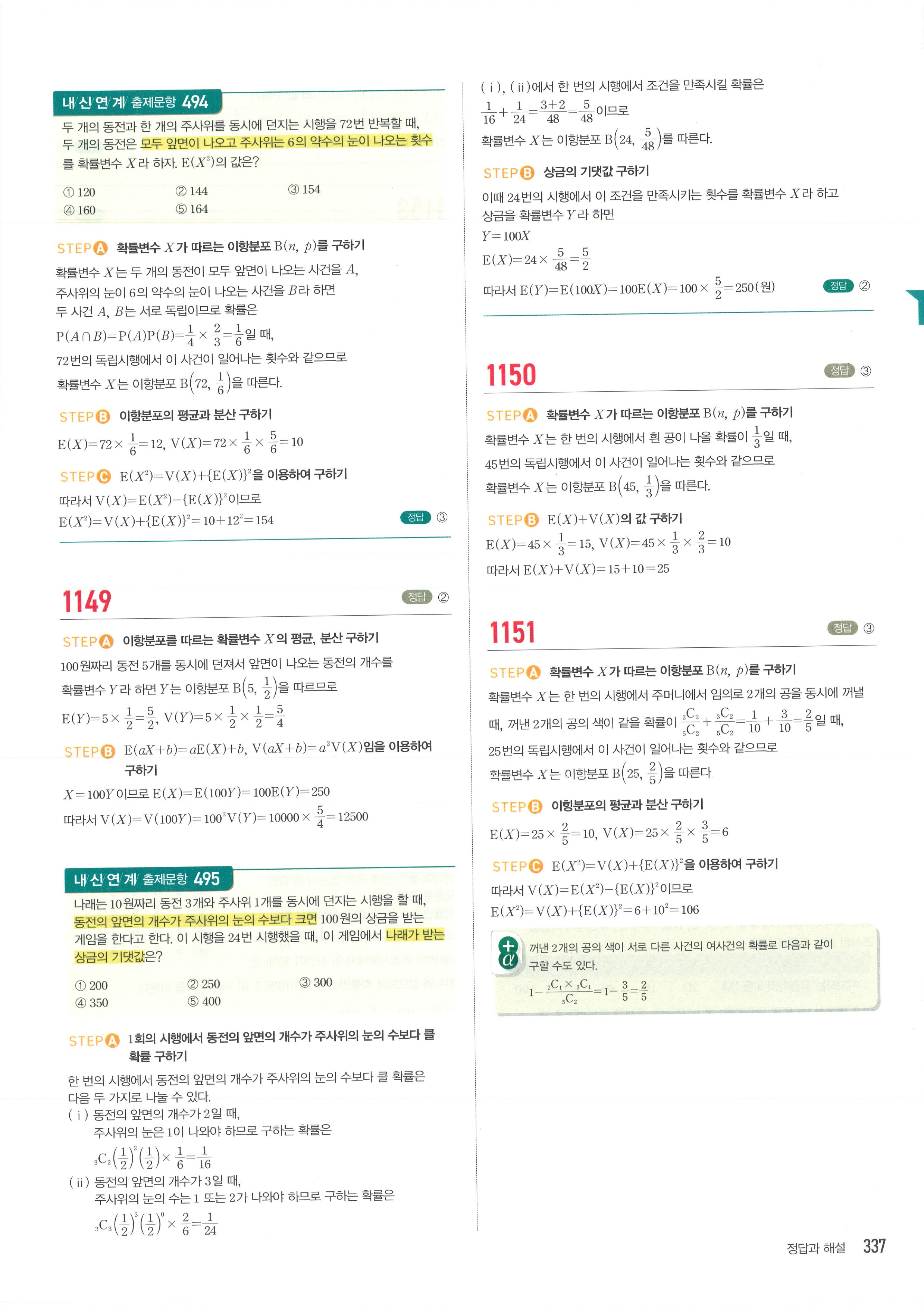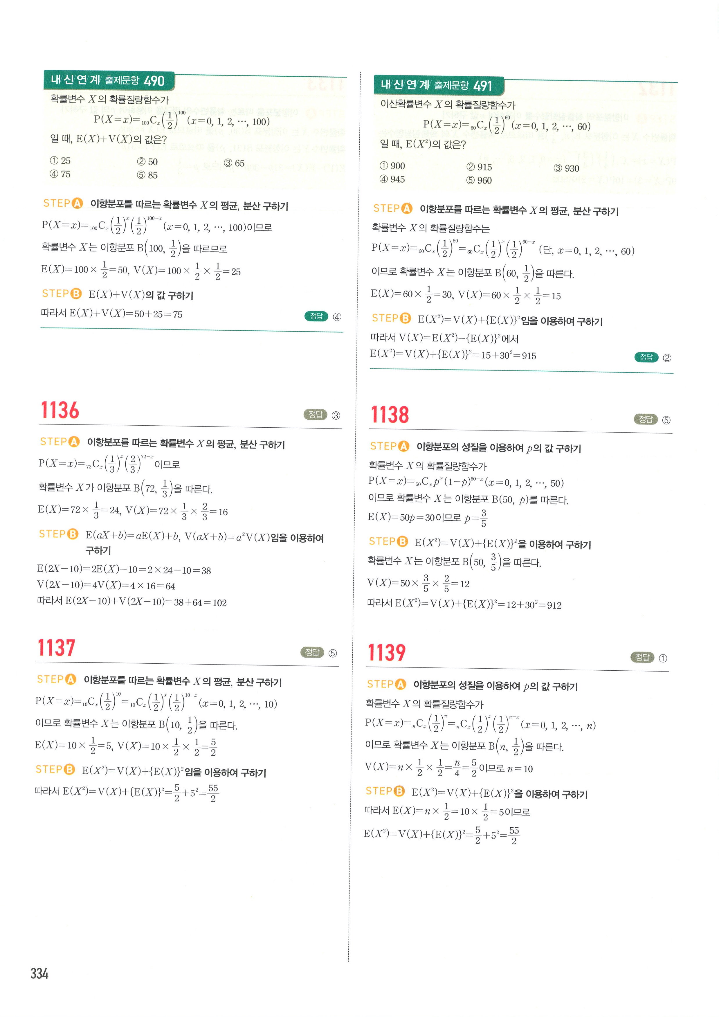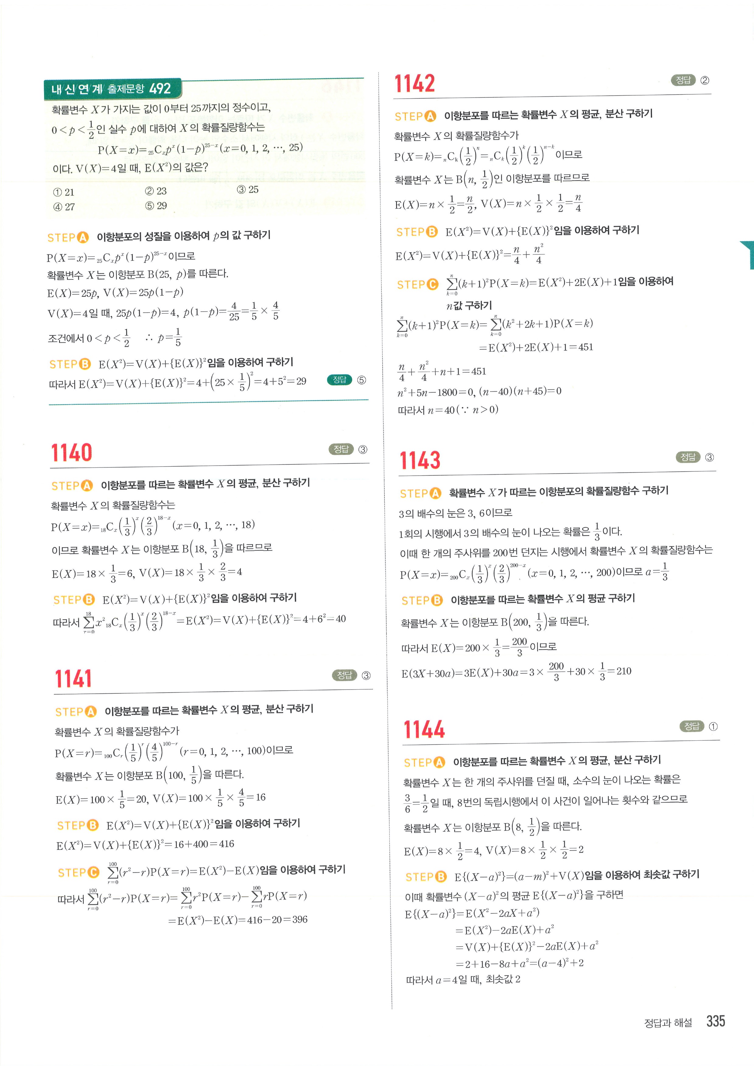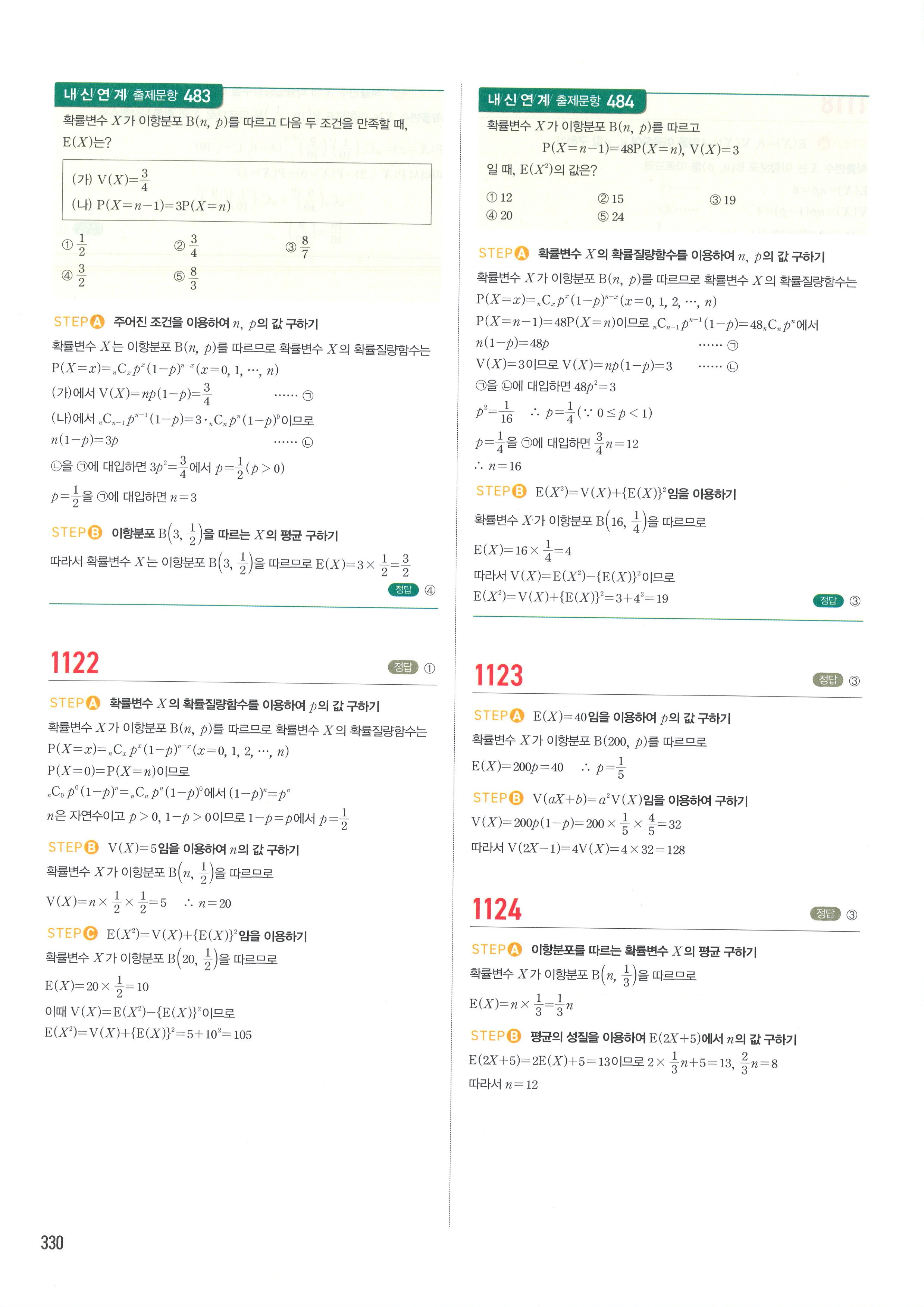 마플시너지 확률과통계 단원별 답지 3-02이항분포