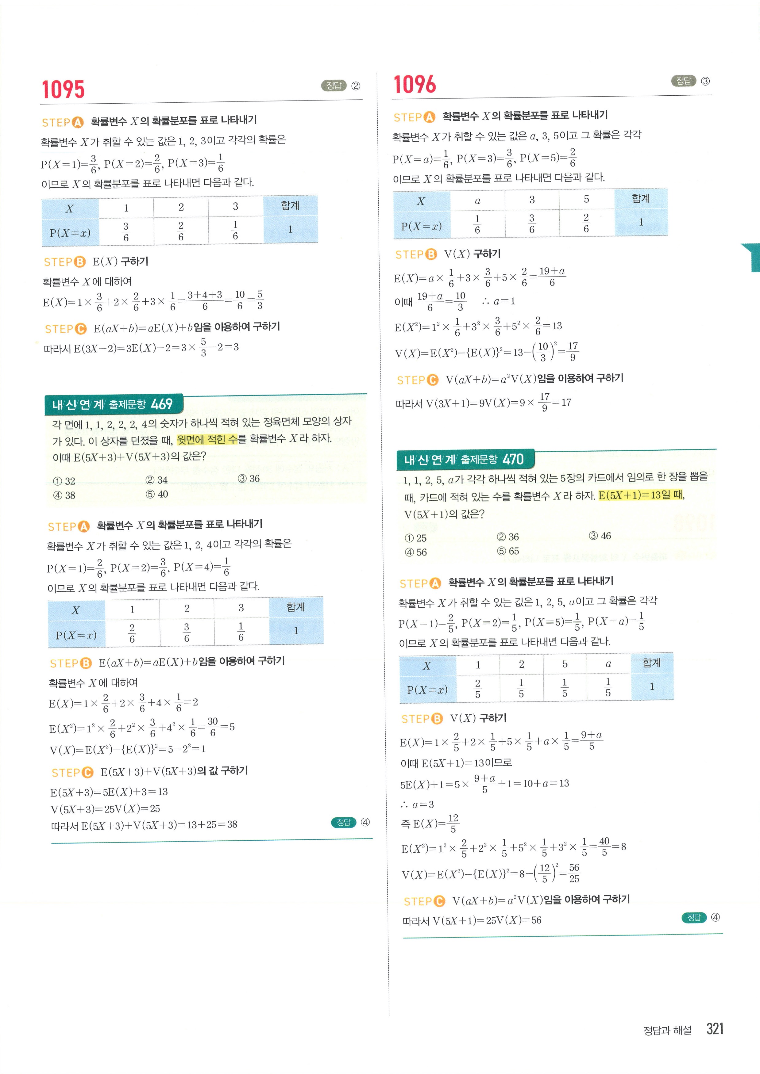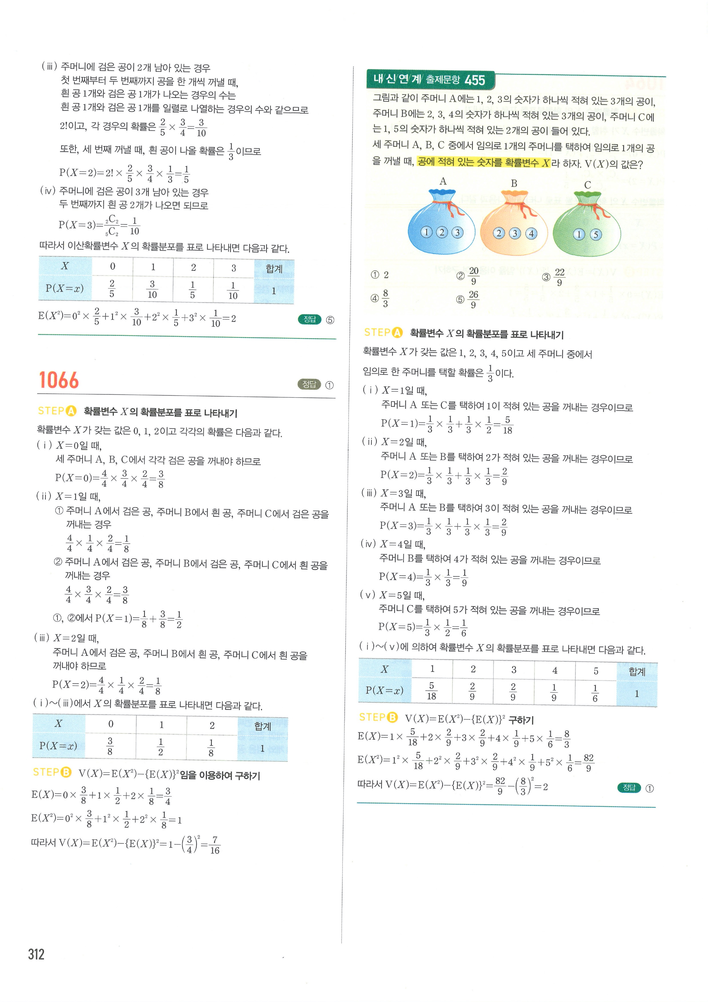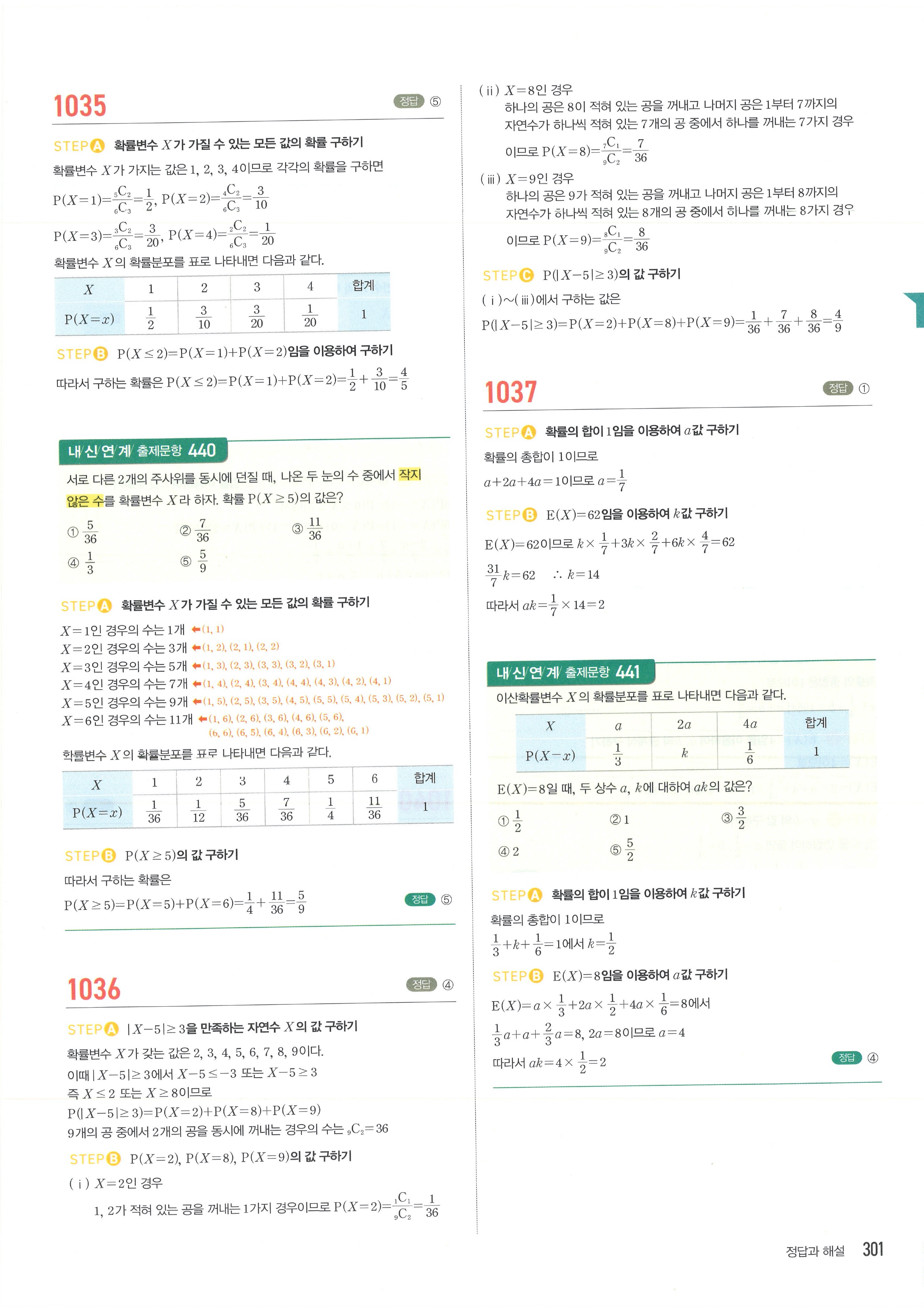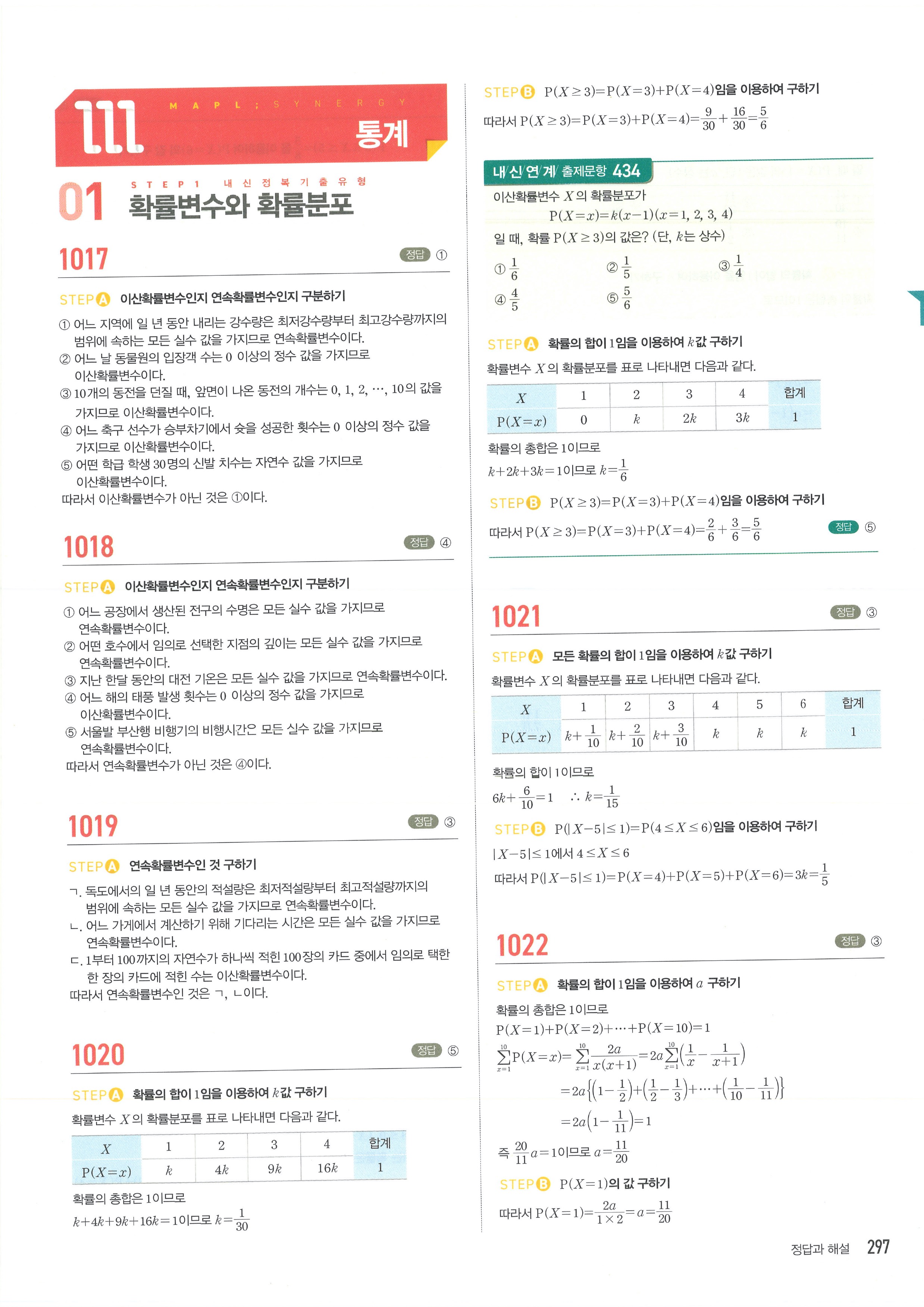 마플시너지 확률과통계 단원별 답지 3-01확률변수와확률분포