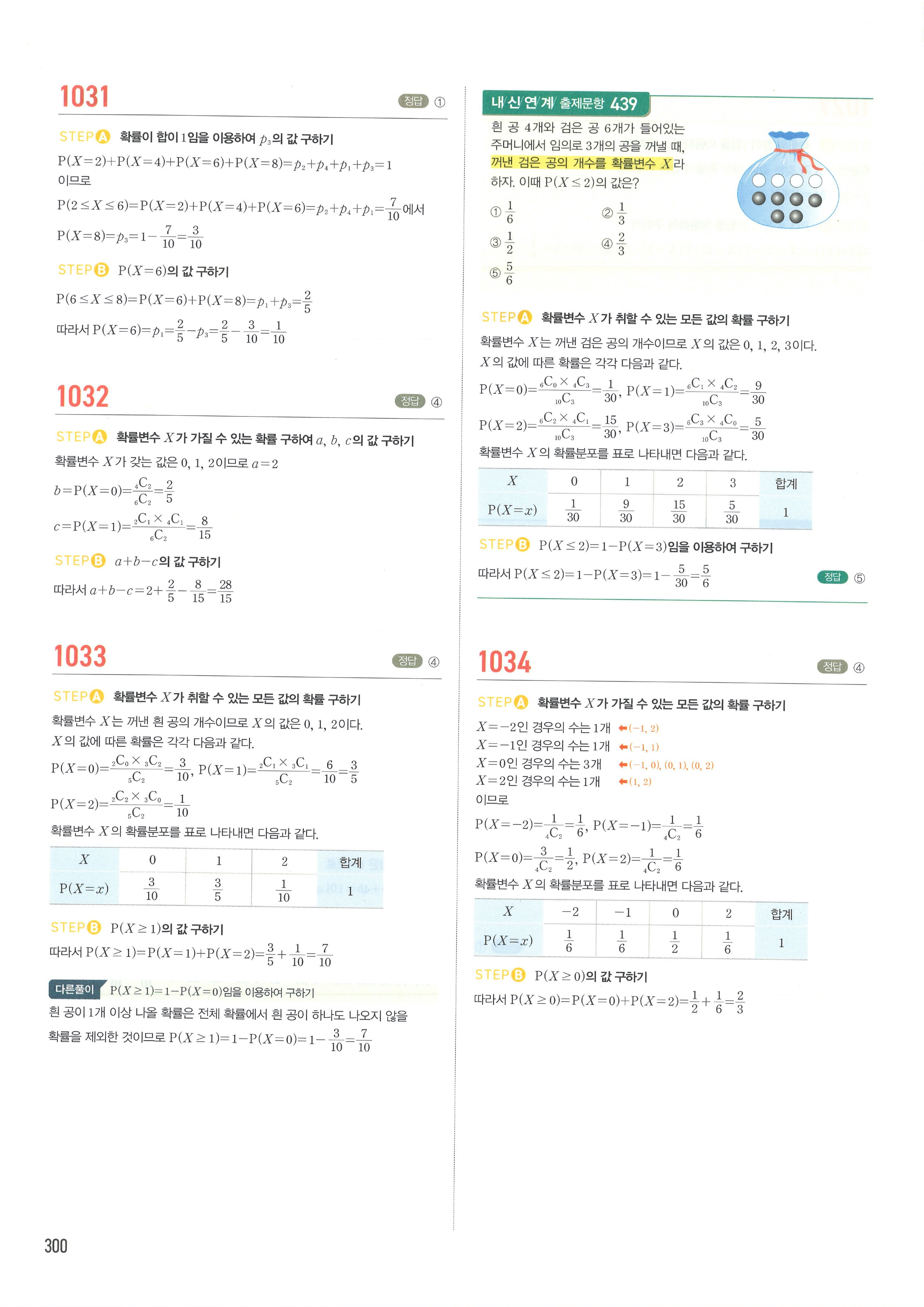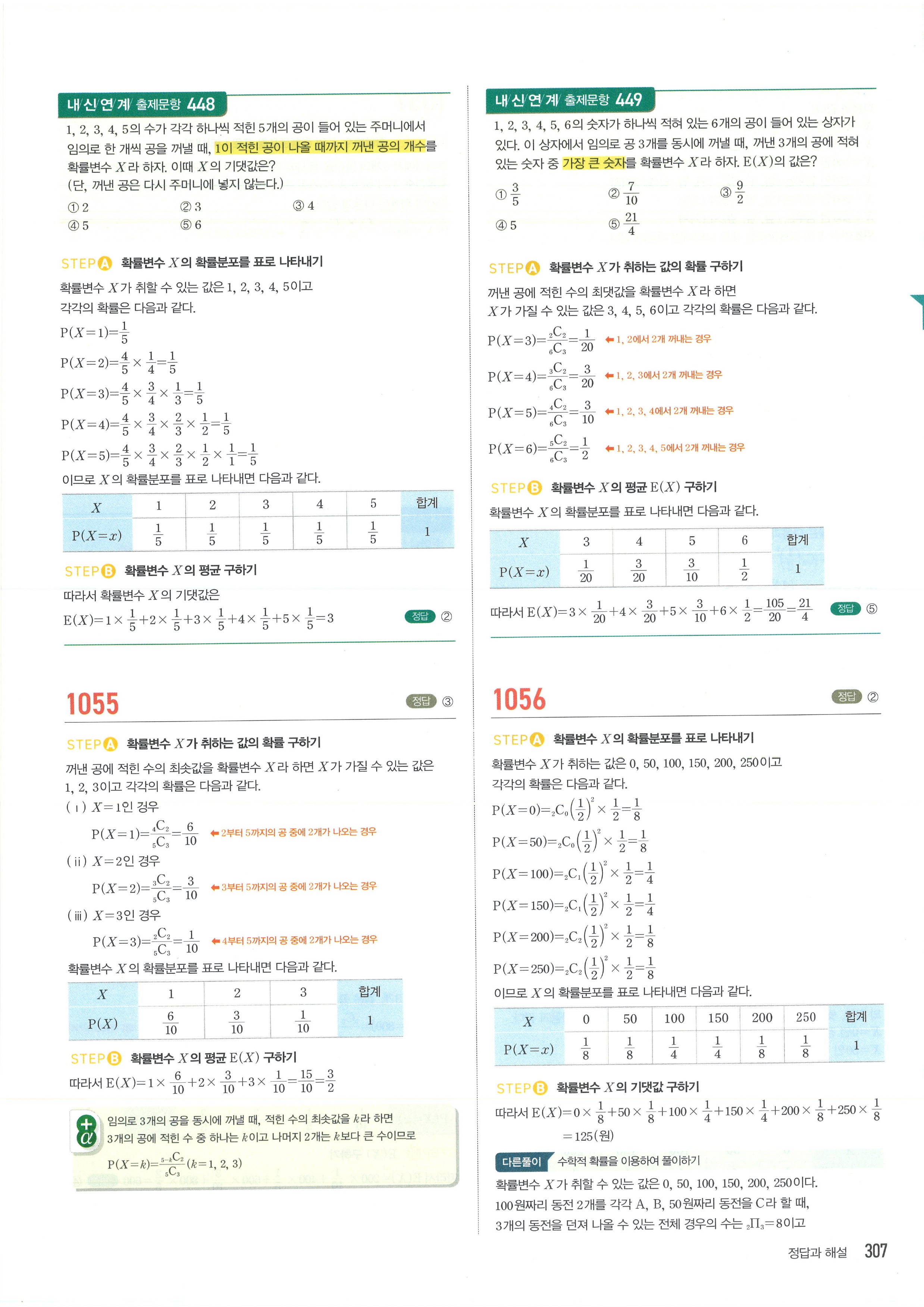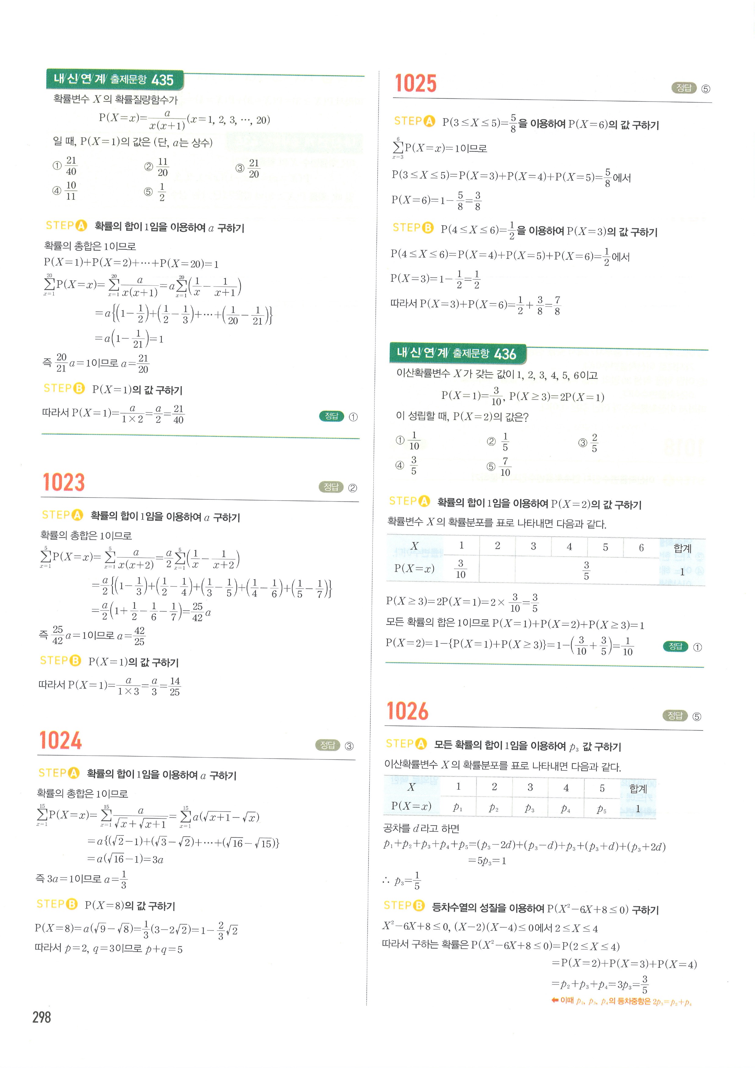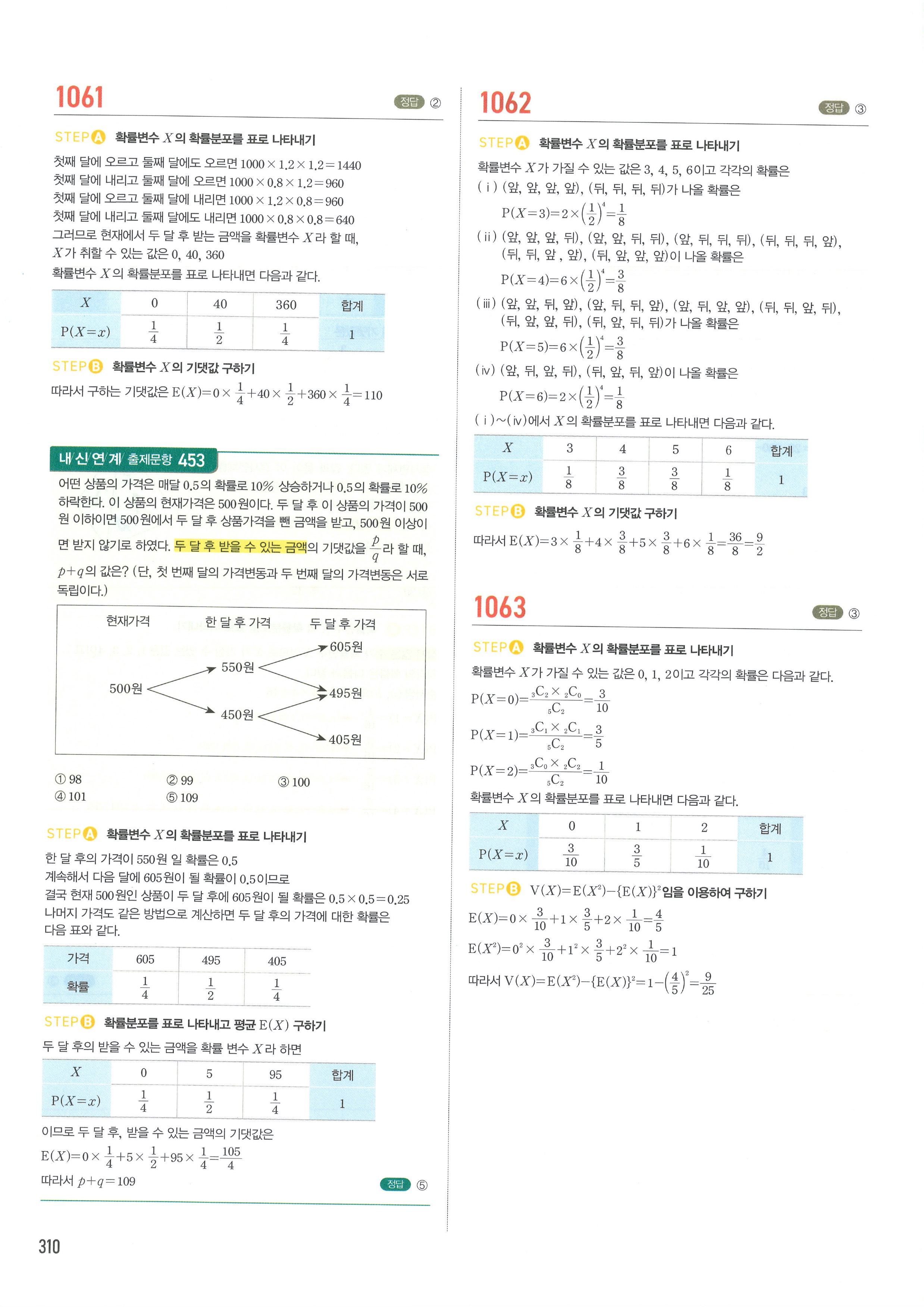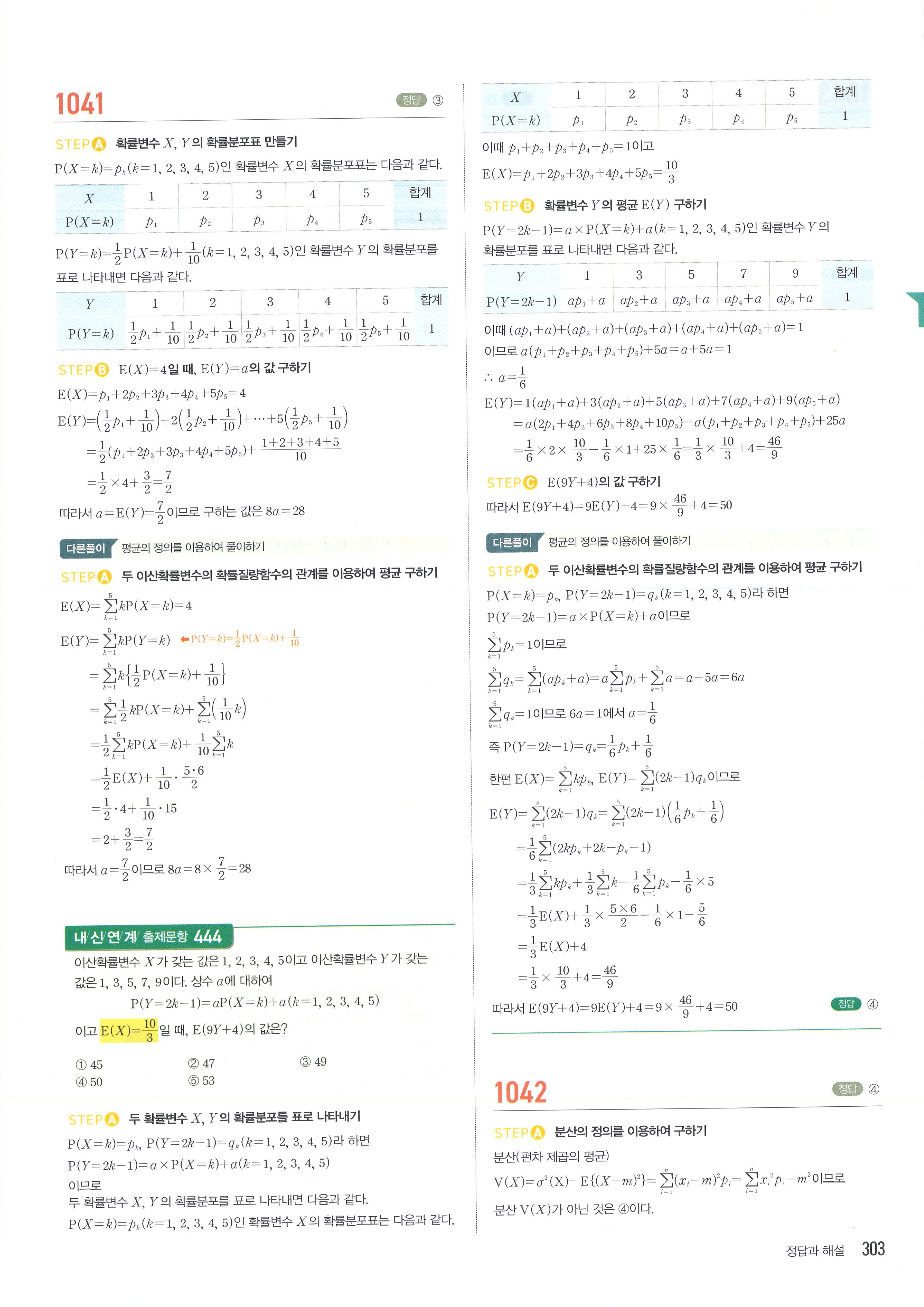 마플시너지 확률과통계 단원별 답지 3-01확률변수와확률분포