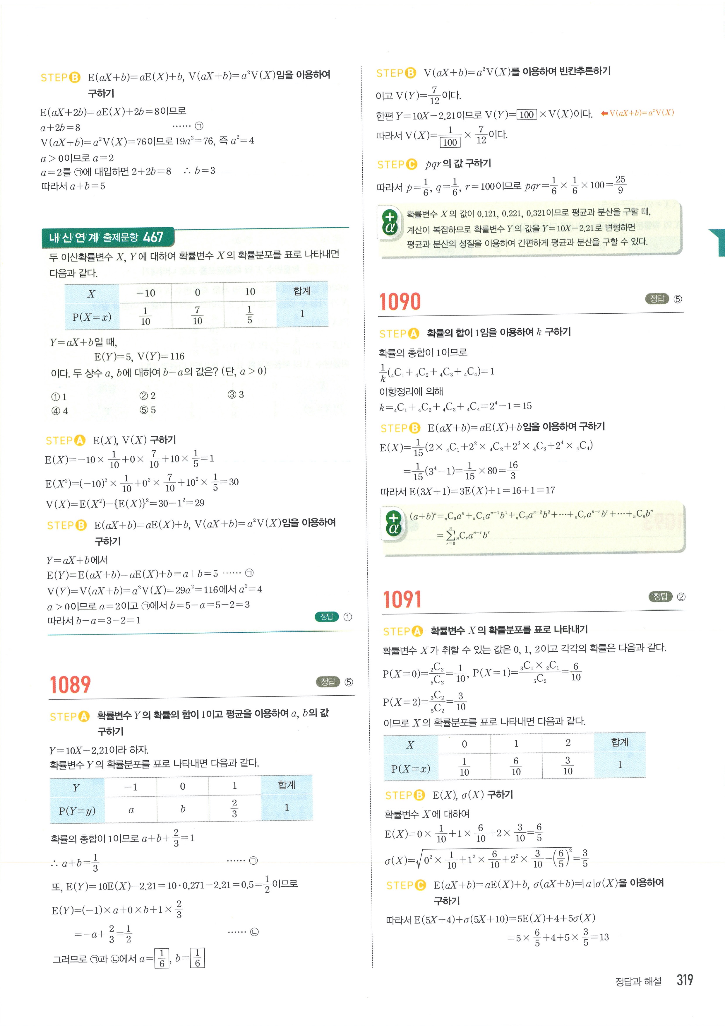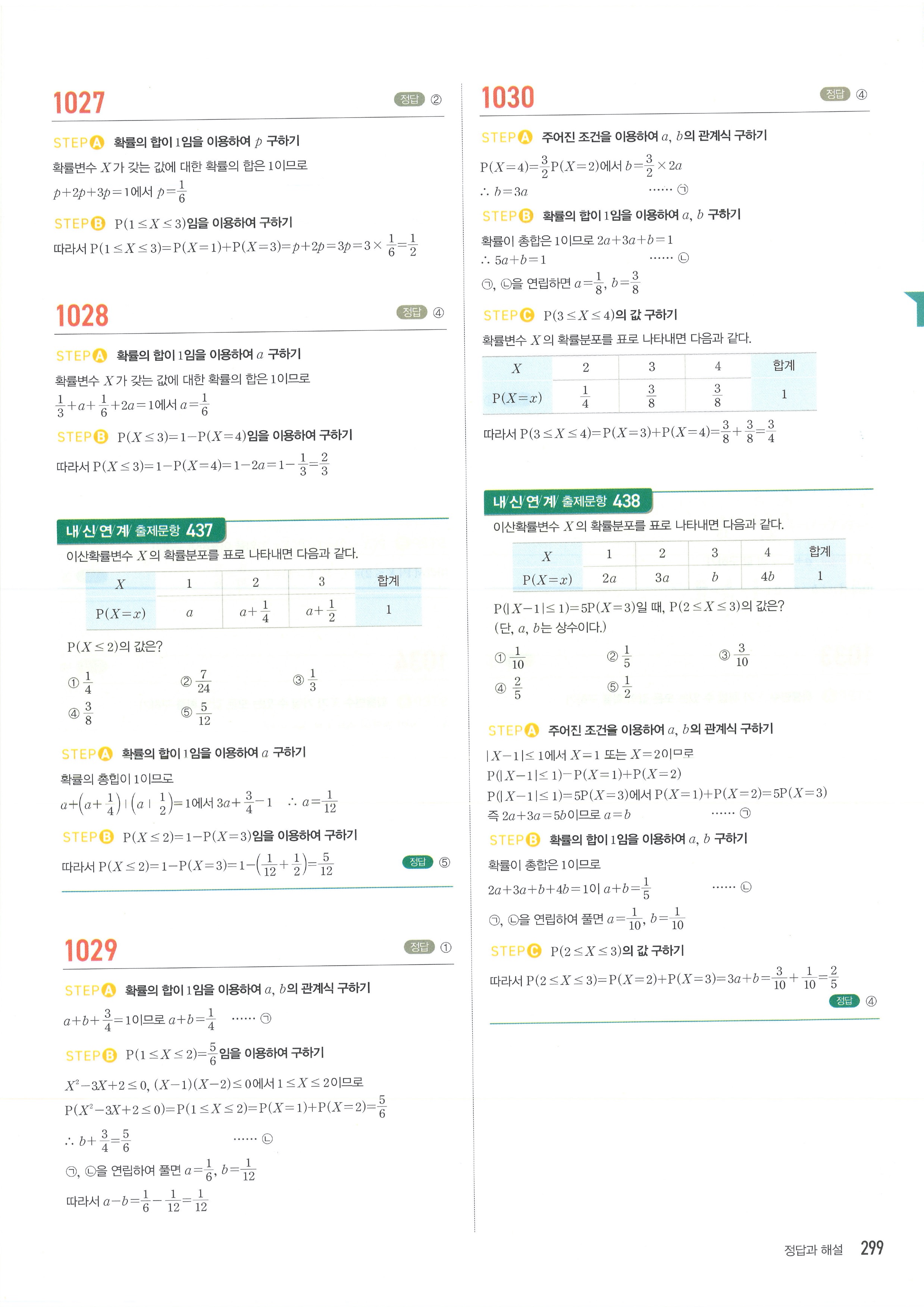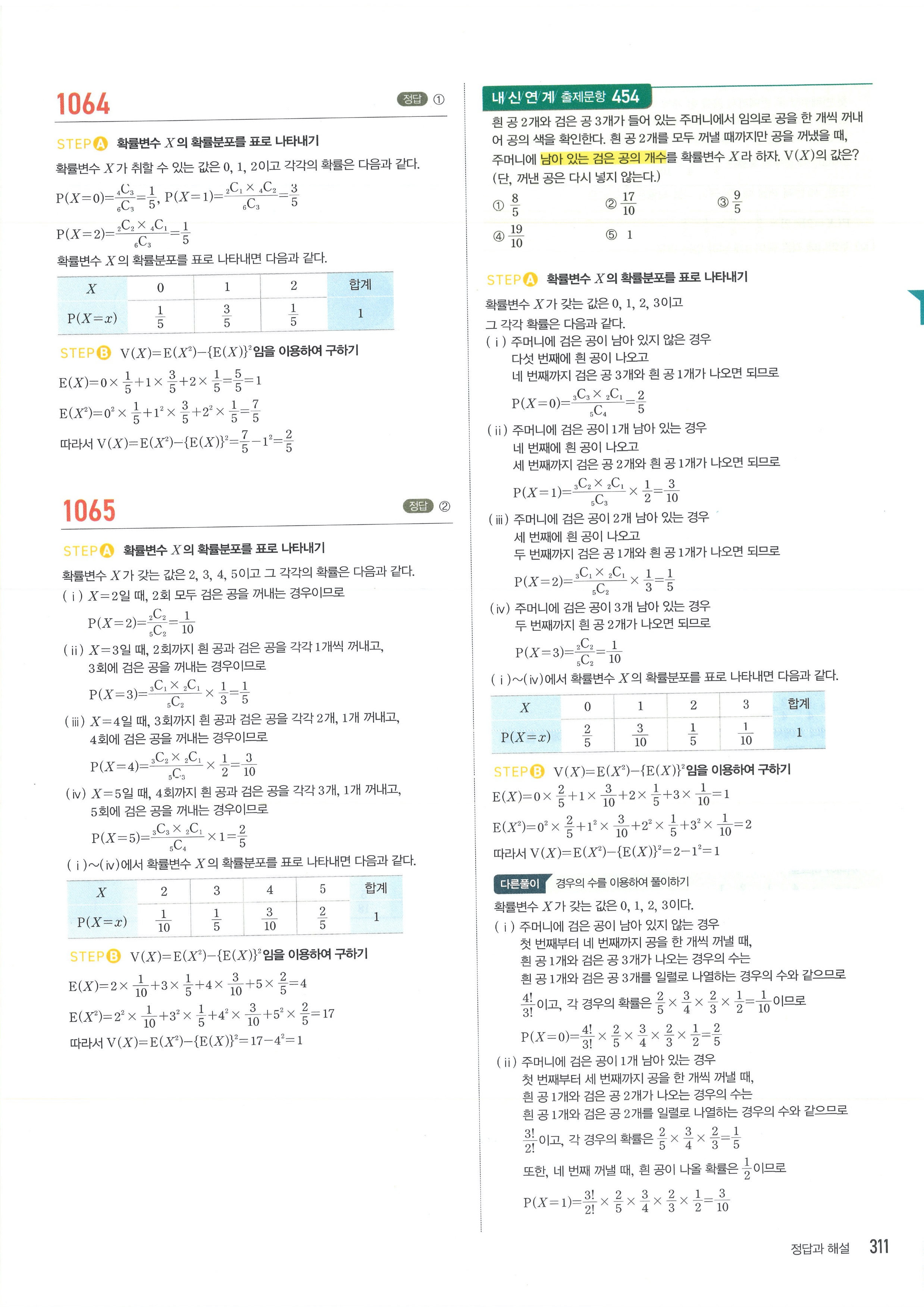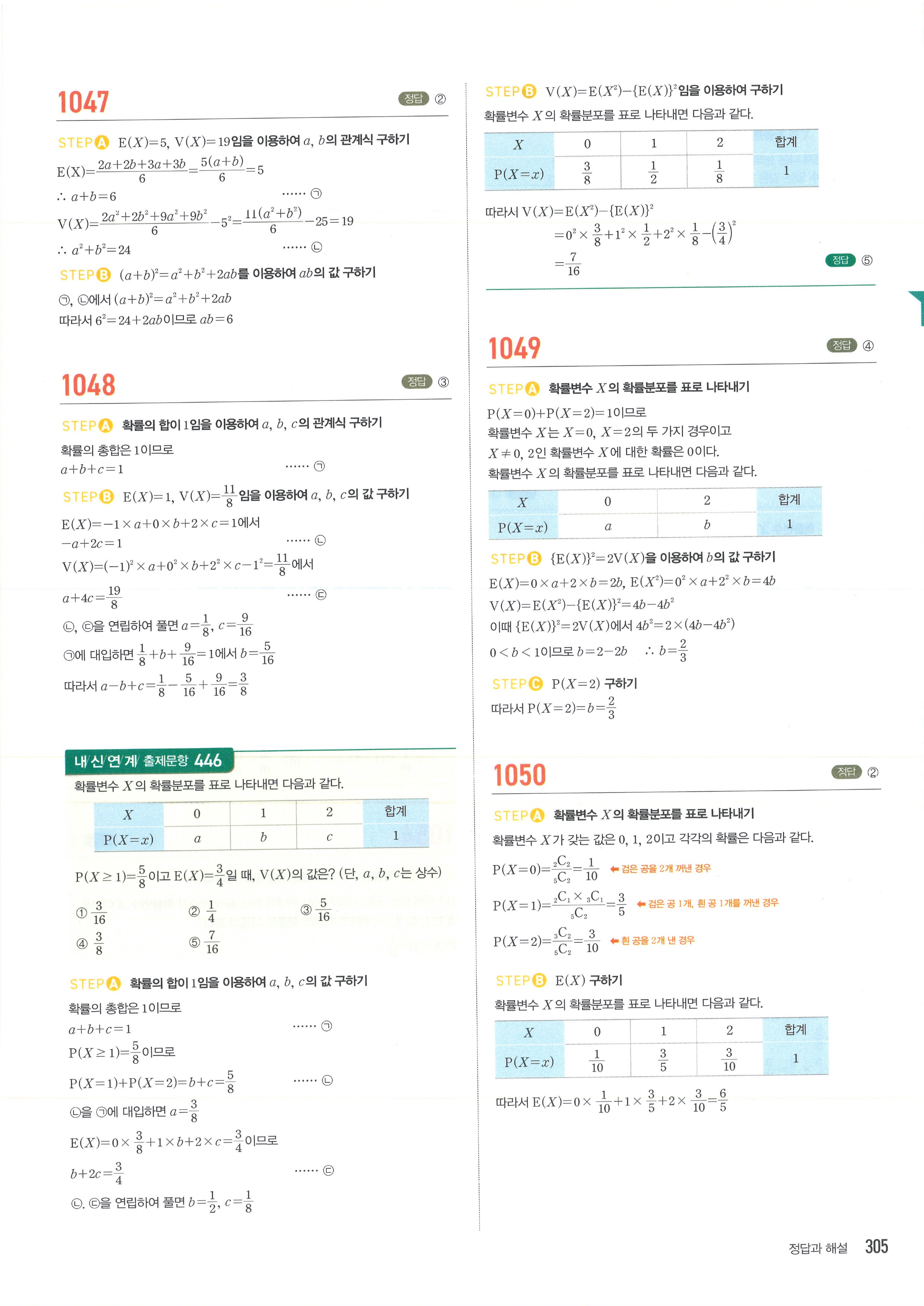 마플시너지 확률과통계 단원별 답지 3-01확률변수와확률분포