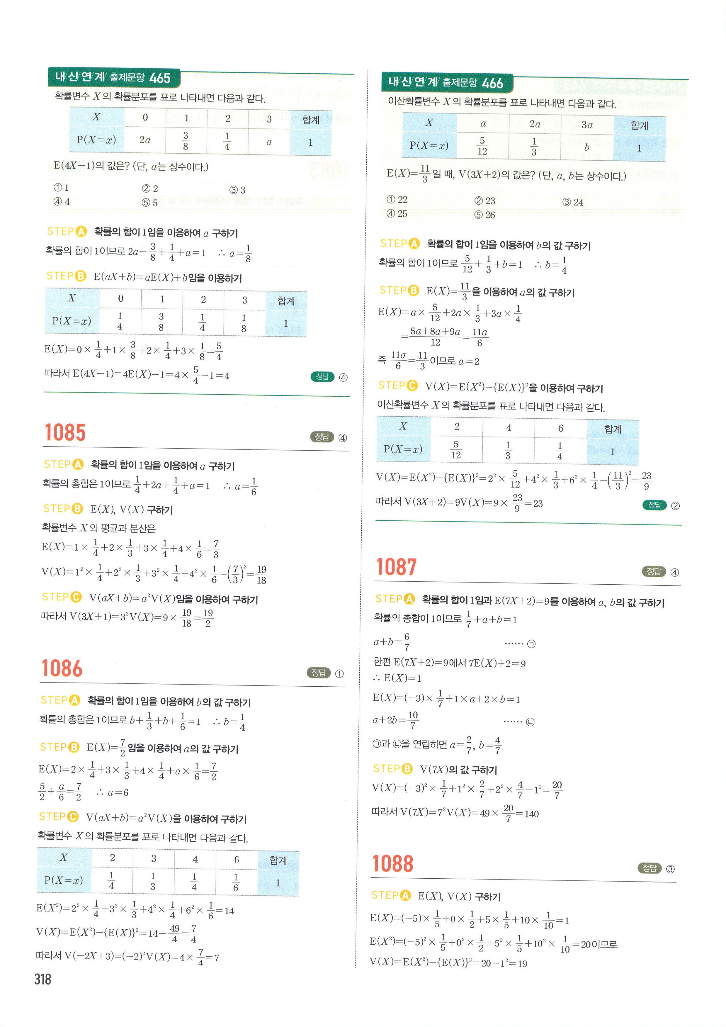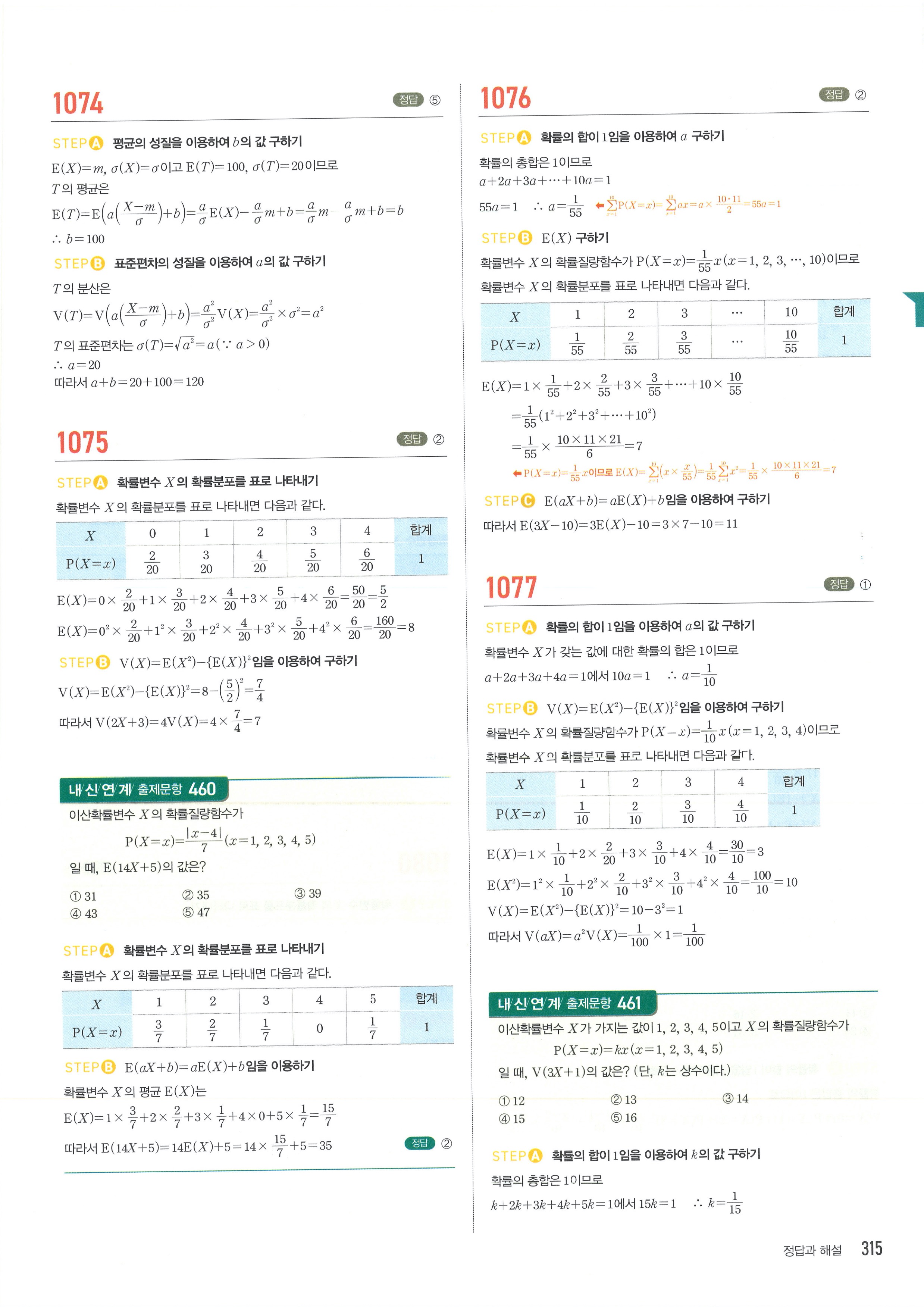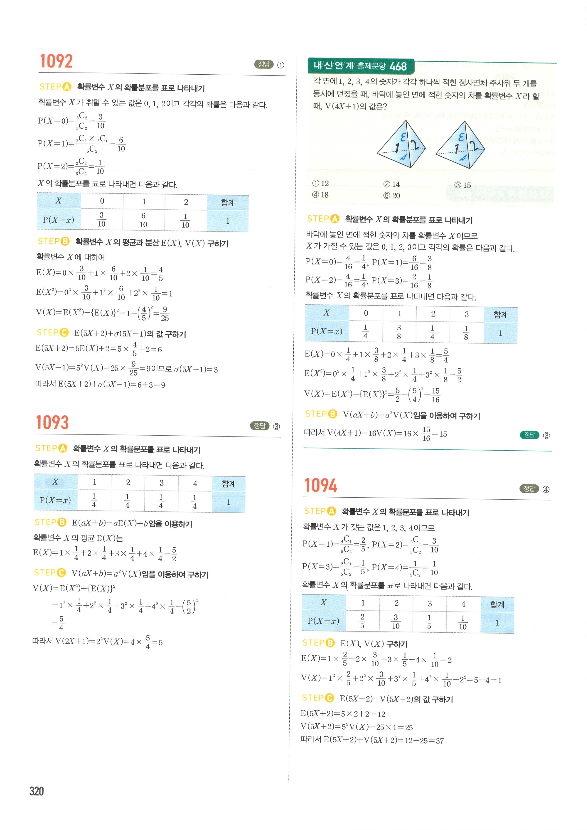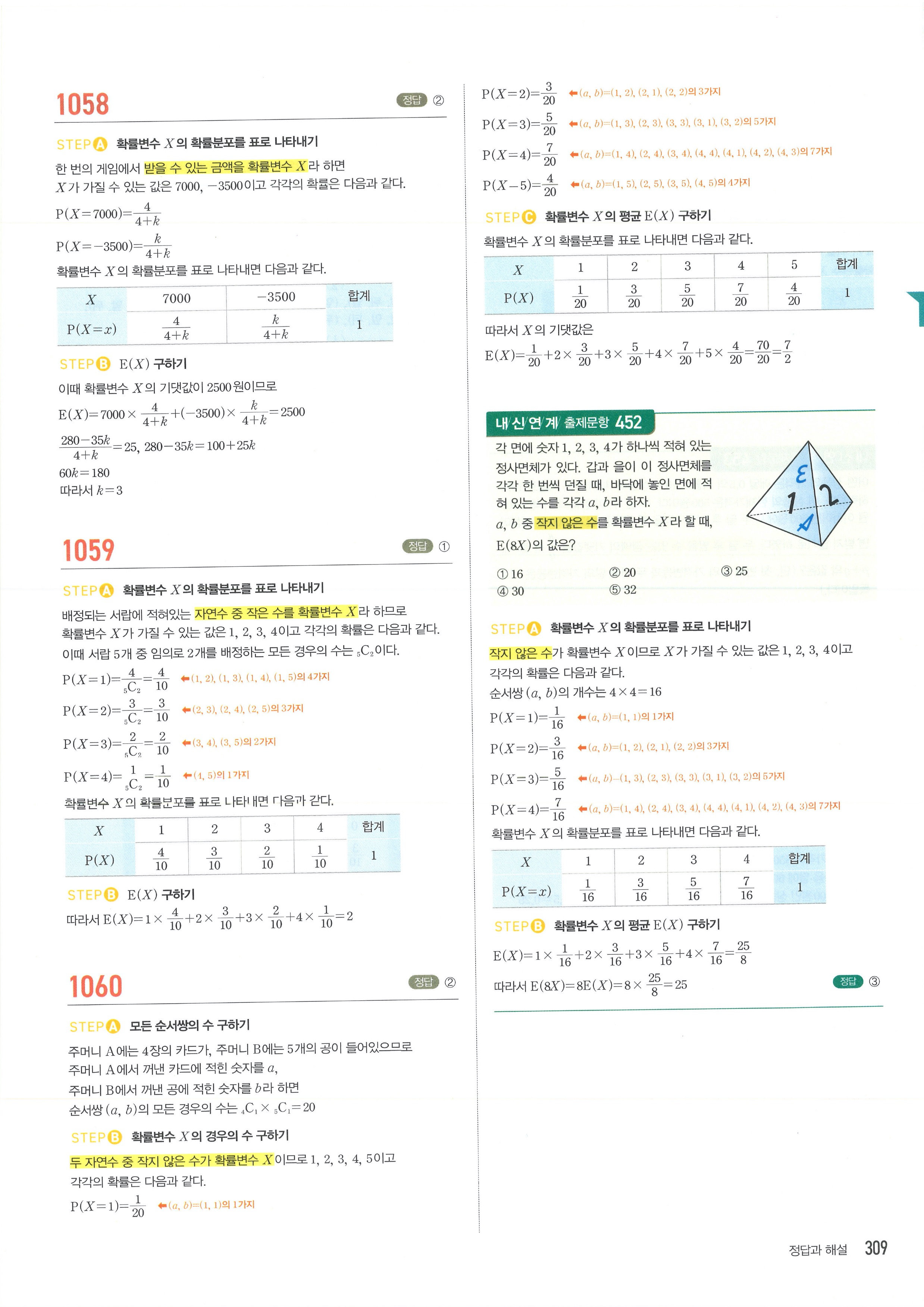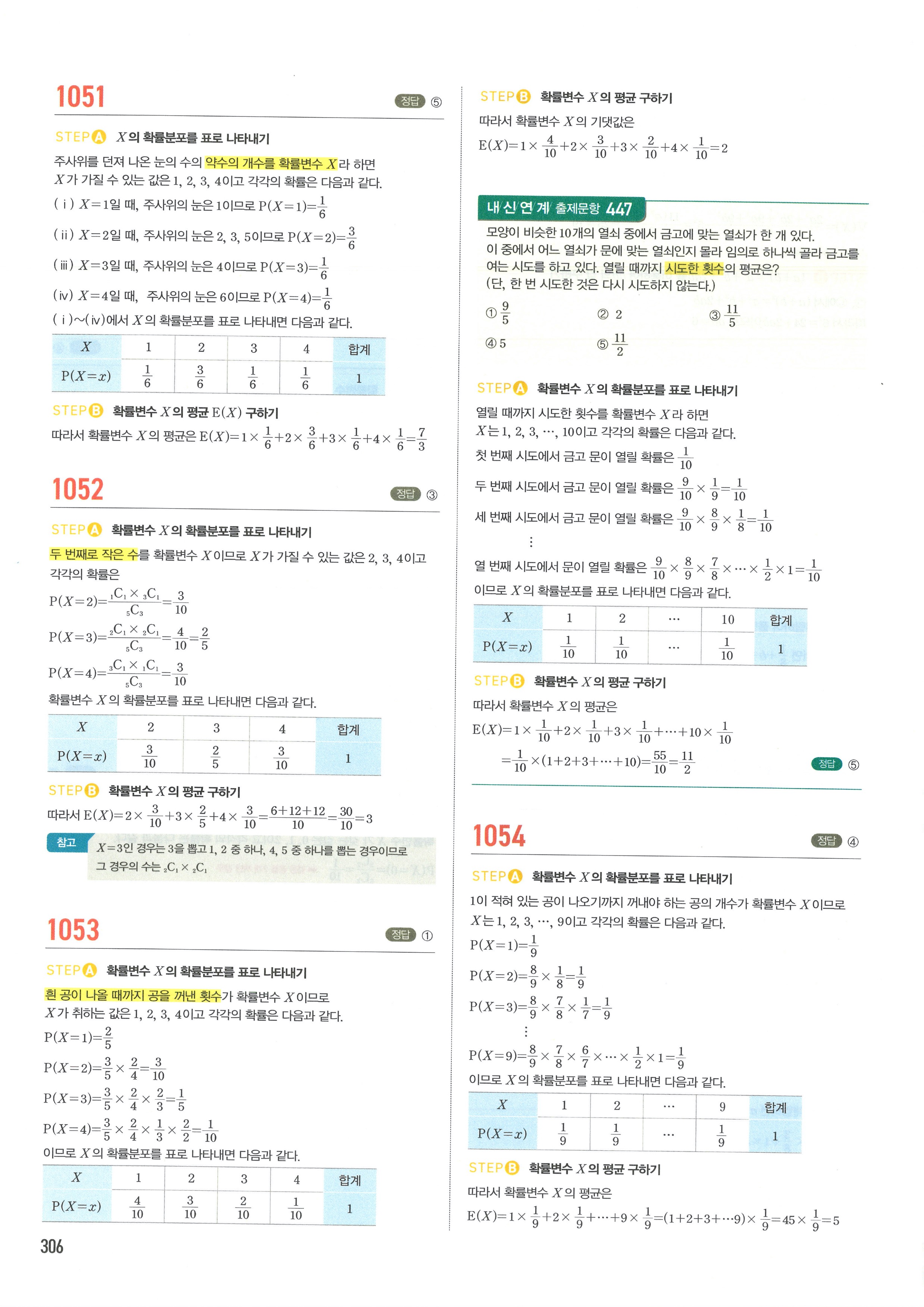 마플시너지 확률과통계 단원별 답지 3-01확률변수와확률분포