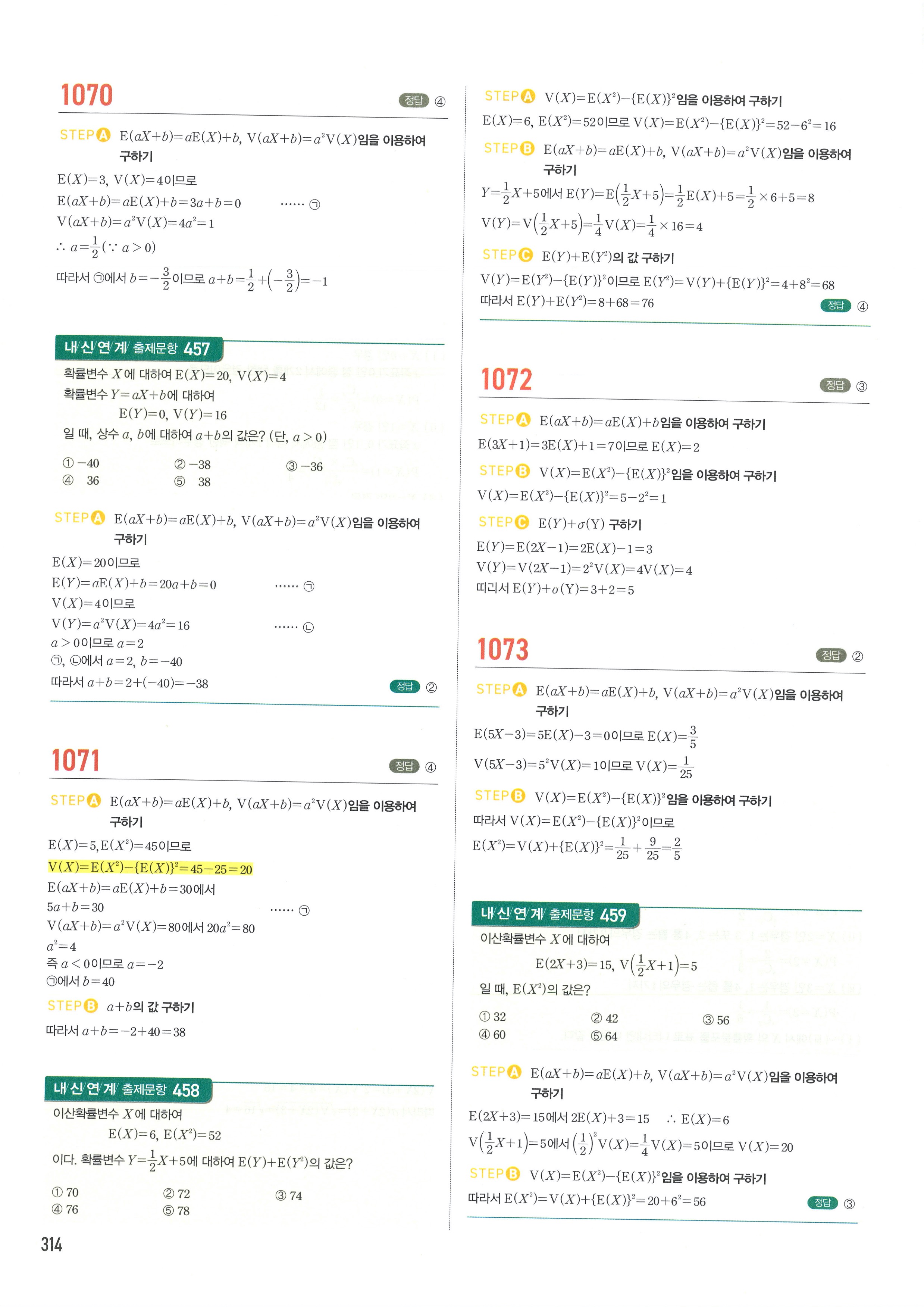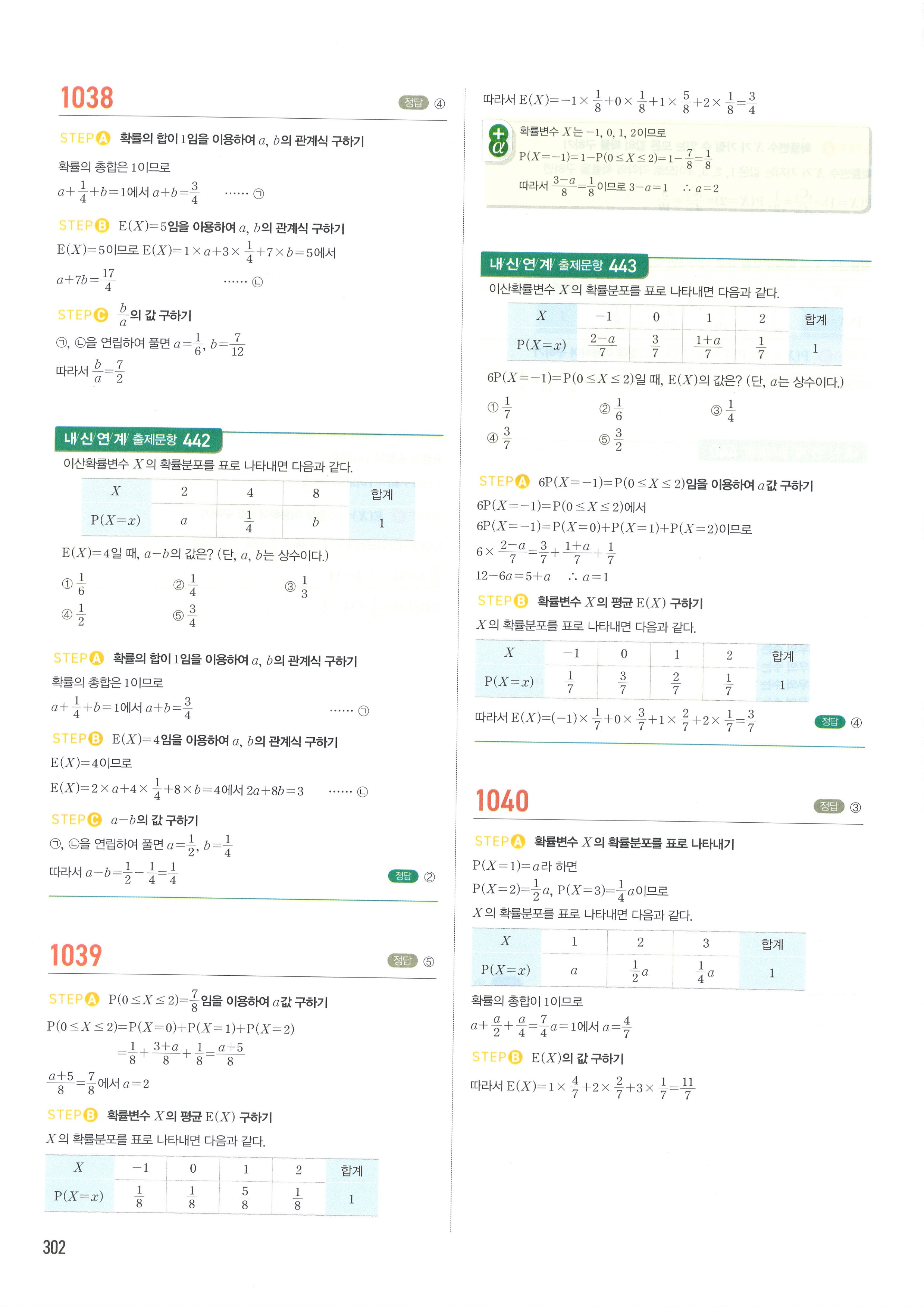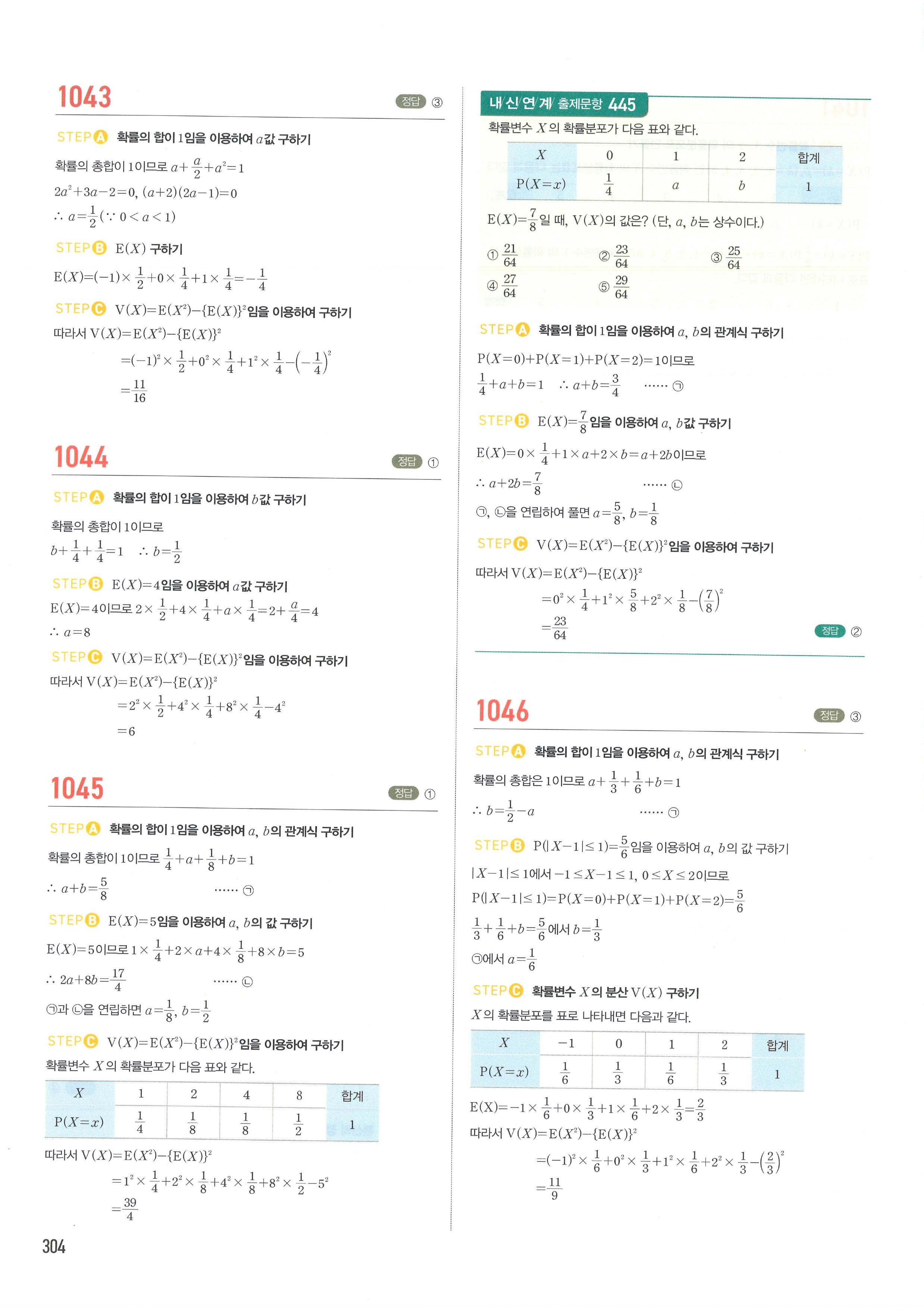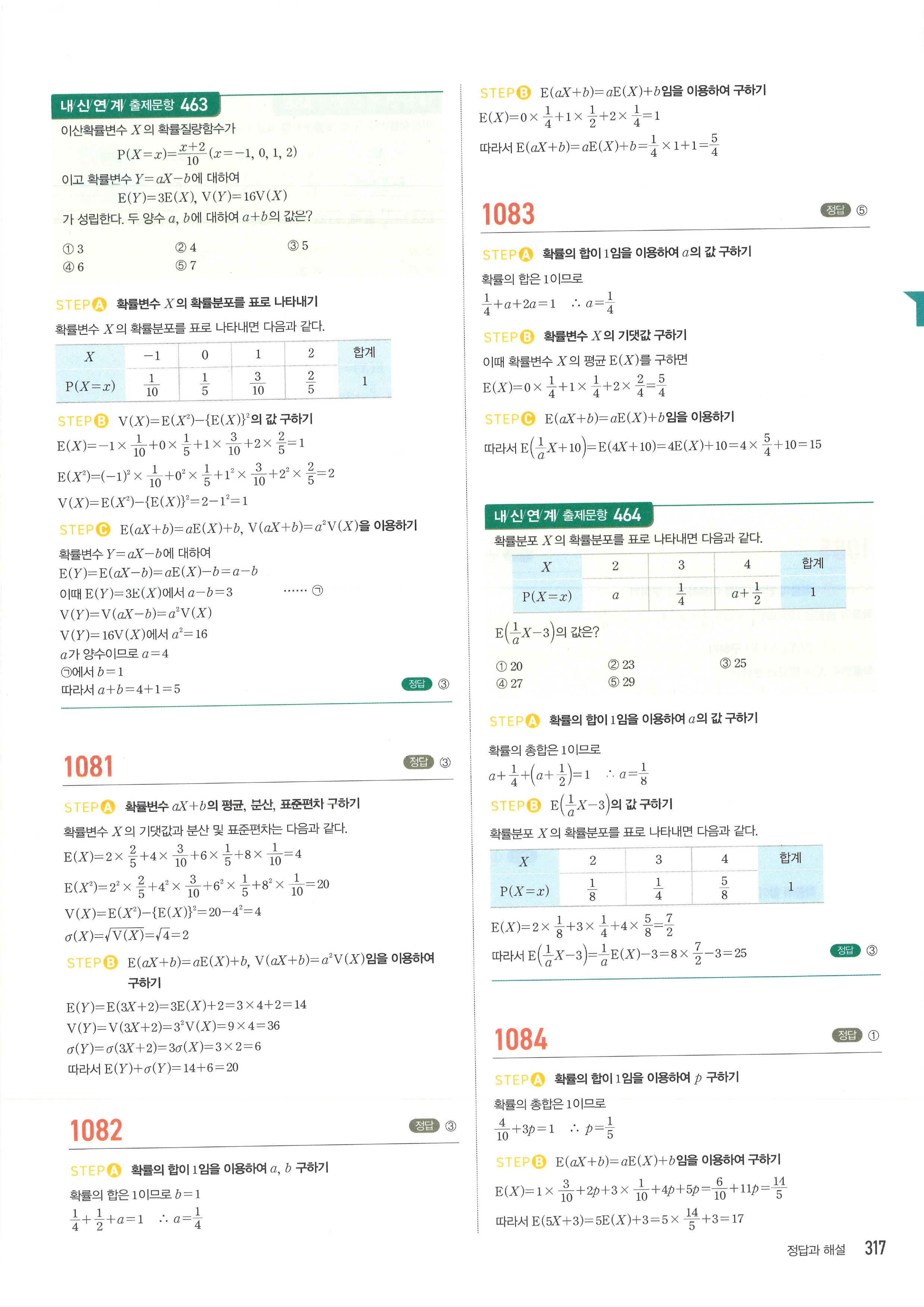 마플시너지 확률과통계 단원별 답지 3-01확률변수와확률분포