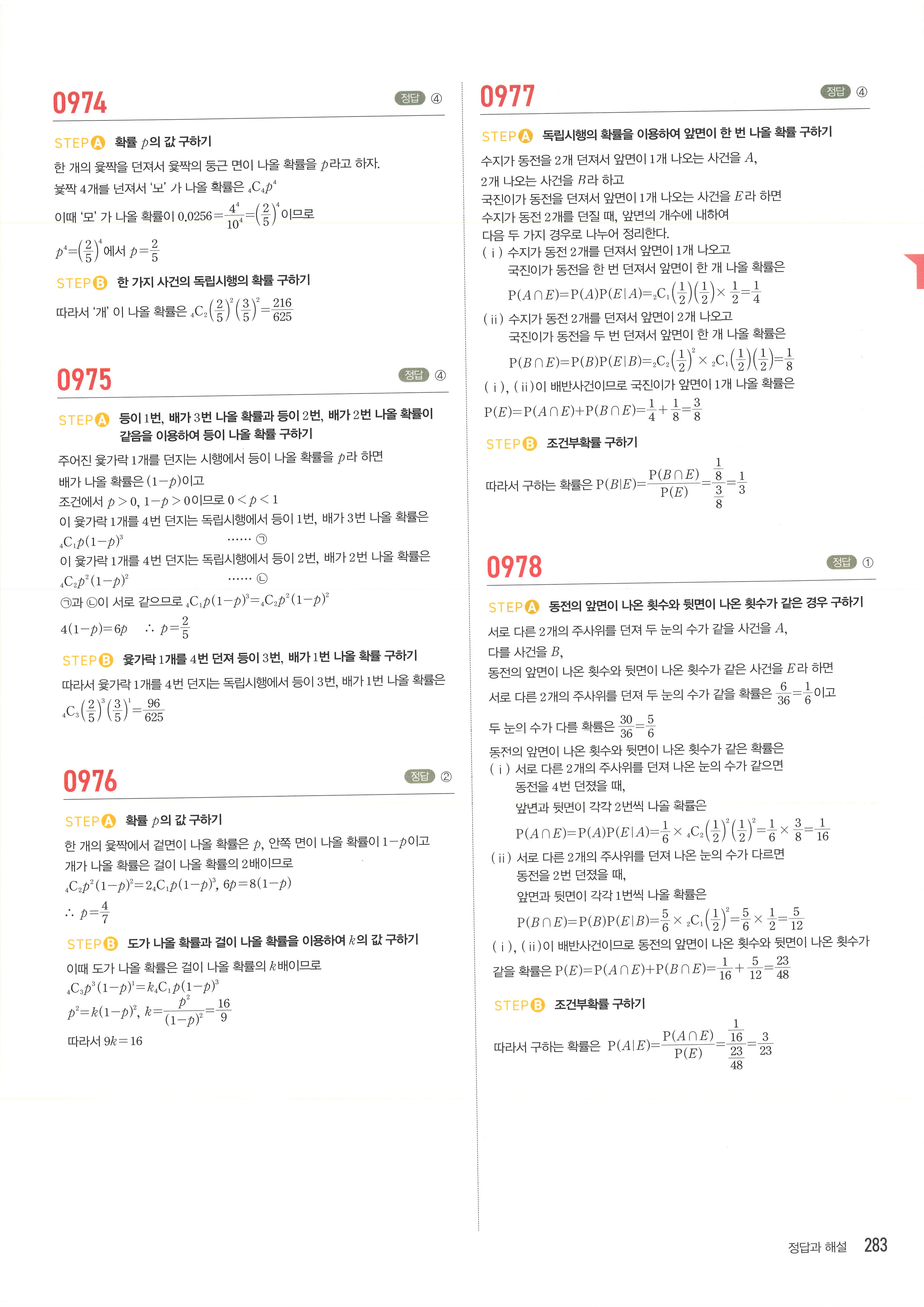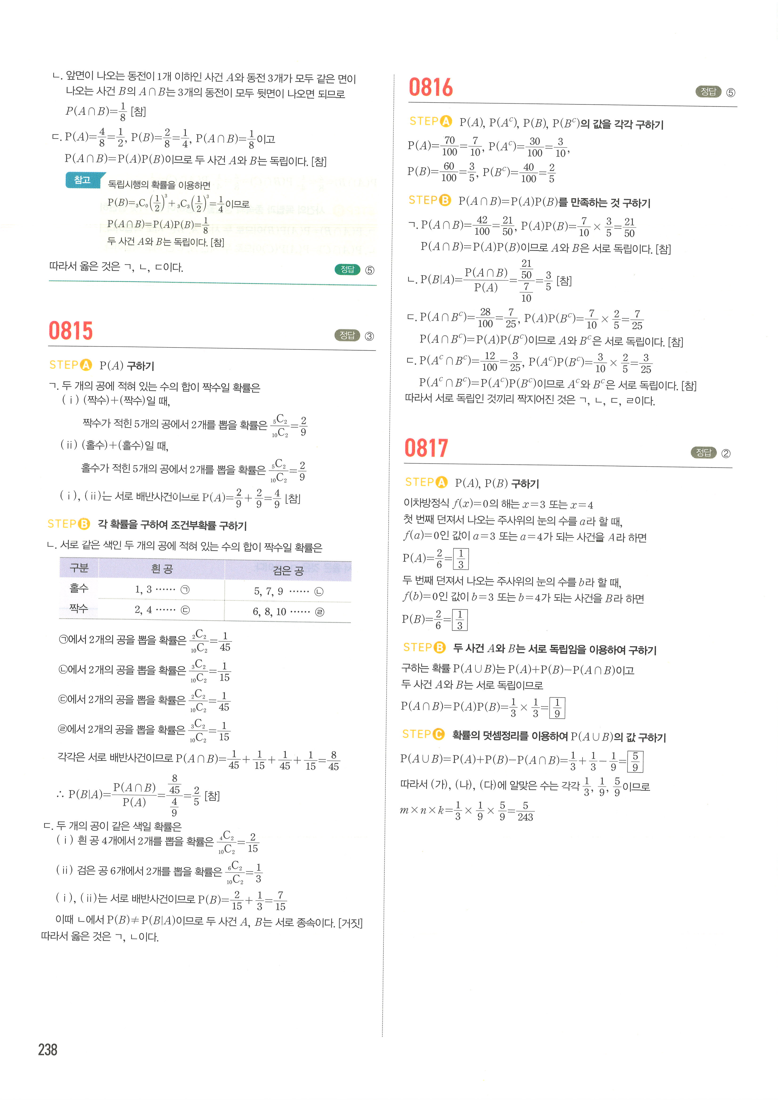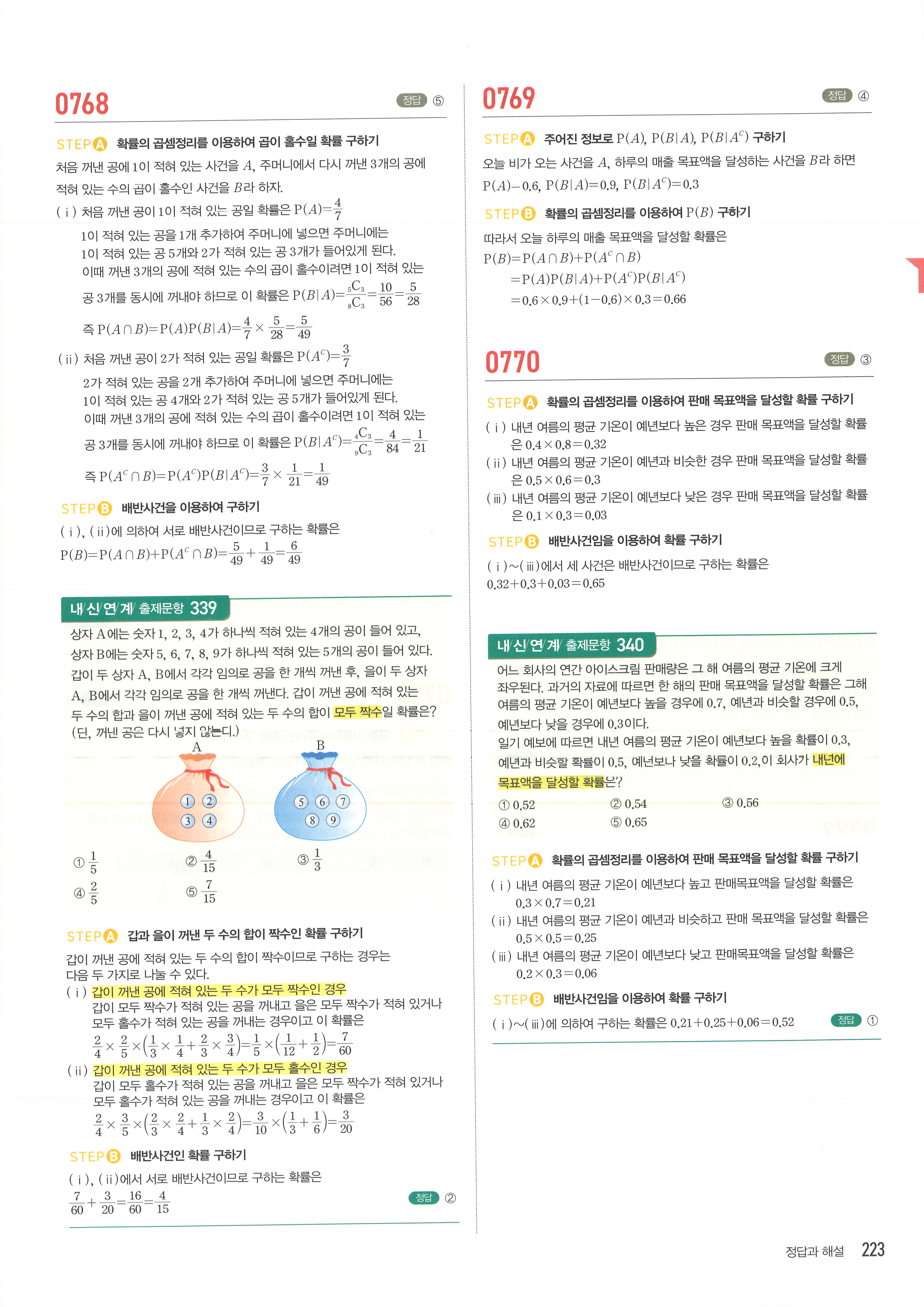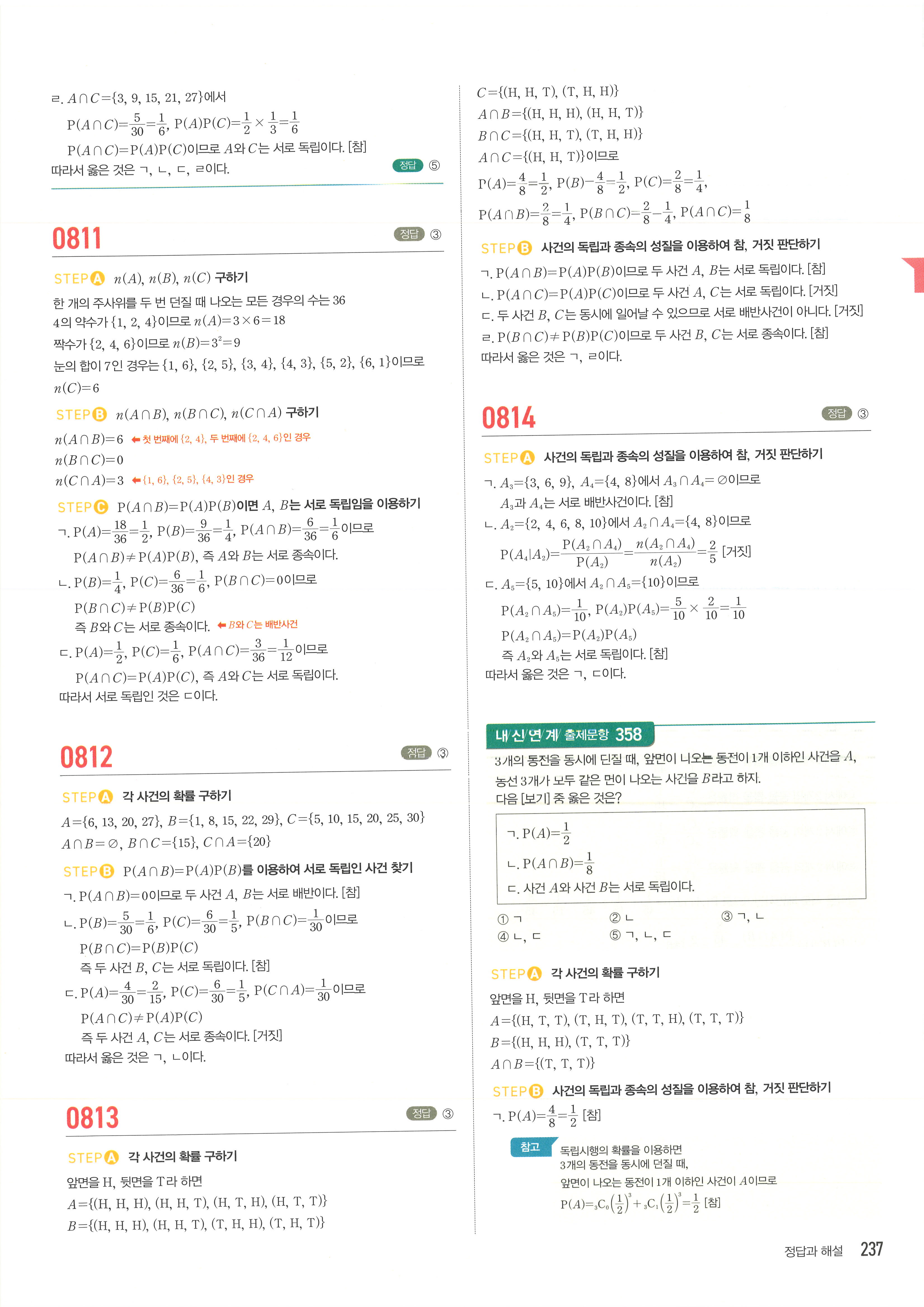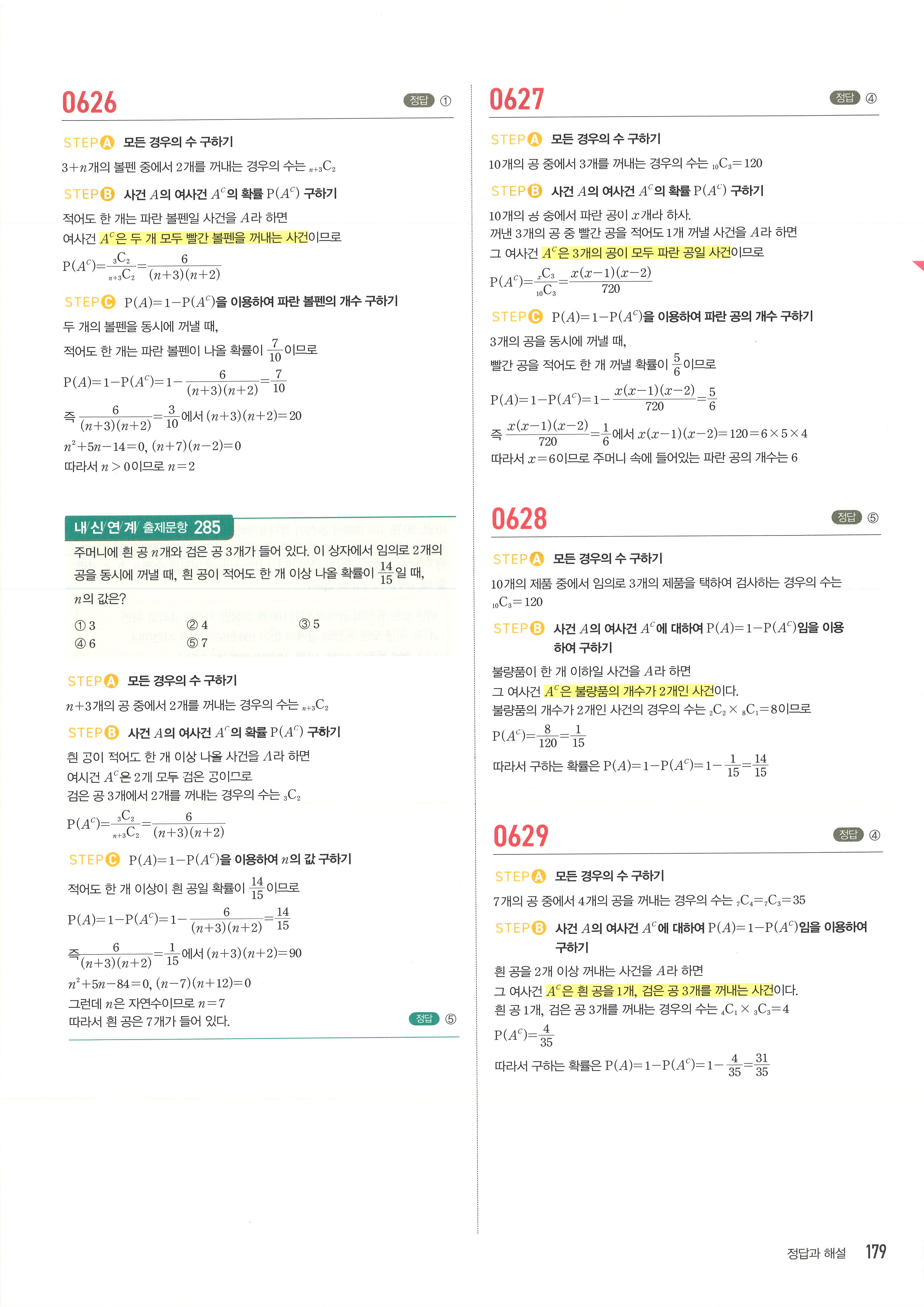 답지의 풀이 과정을 보며 확률과 통계의 중요한 개념을 다시 복습하세요. 개념을 명확히 이해하면 시험에서 비슷한 유형의 문제도 쉽게 해결할 수 있습니다.