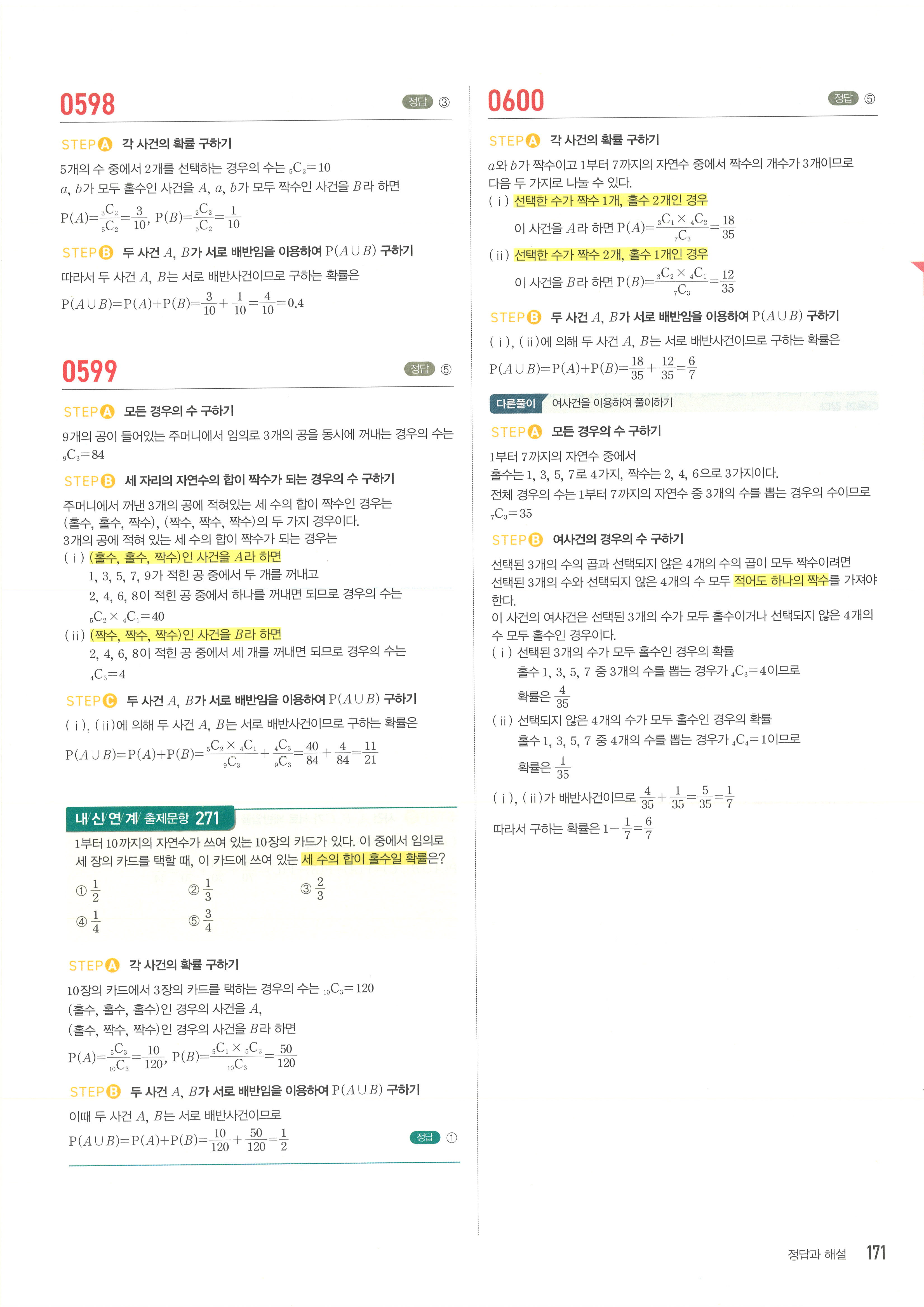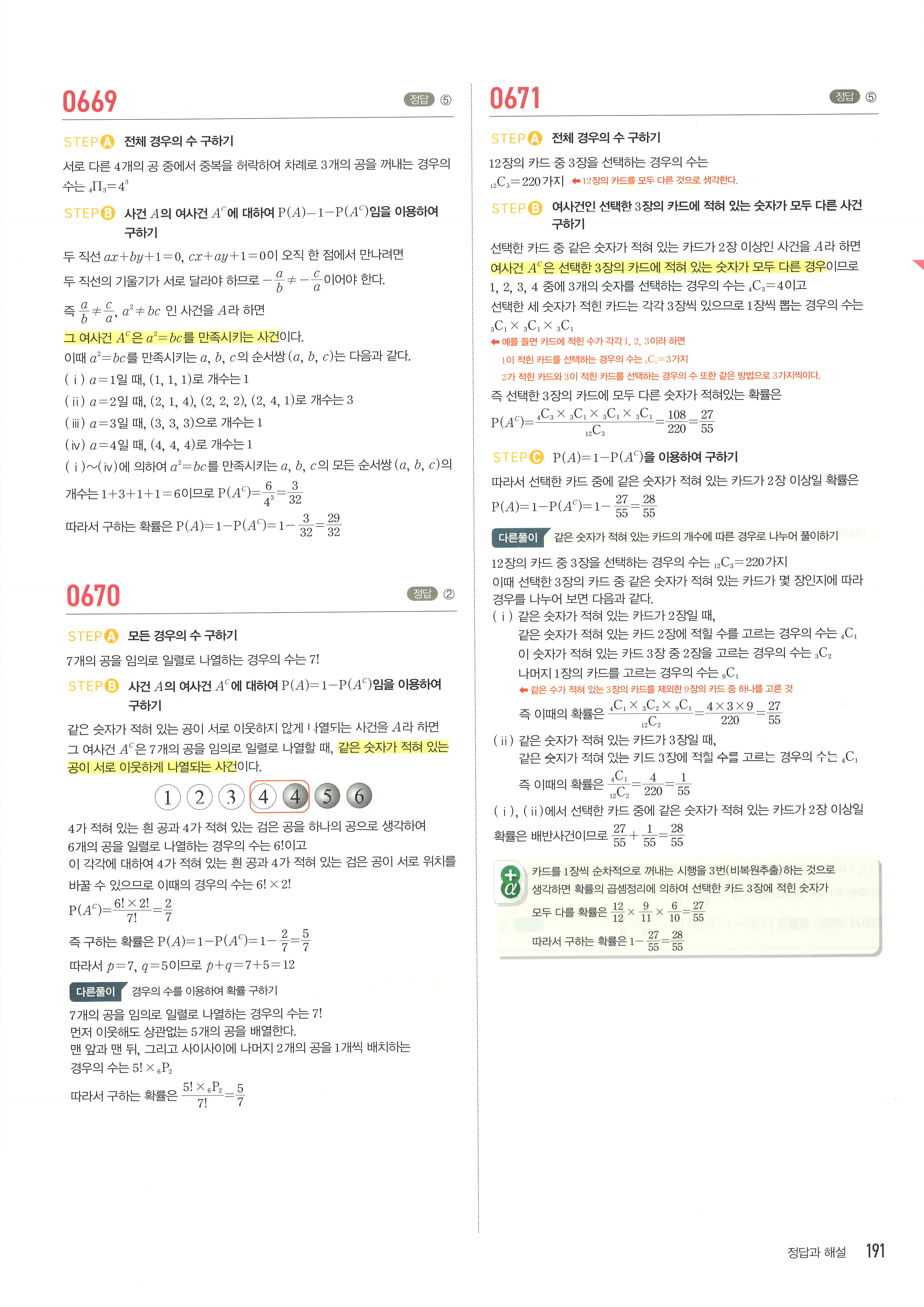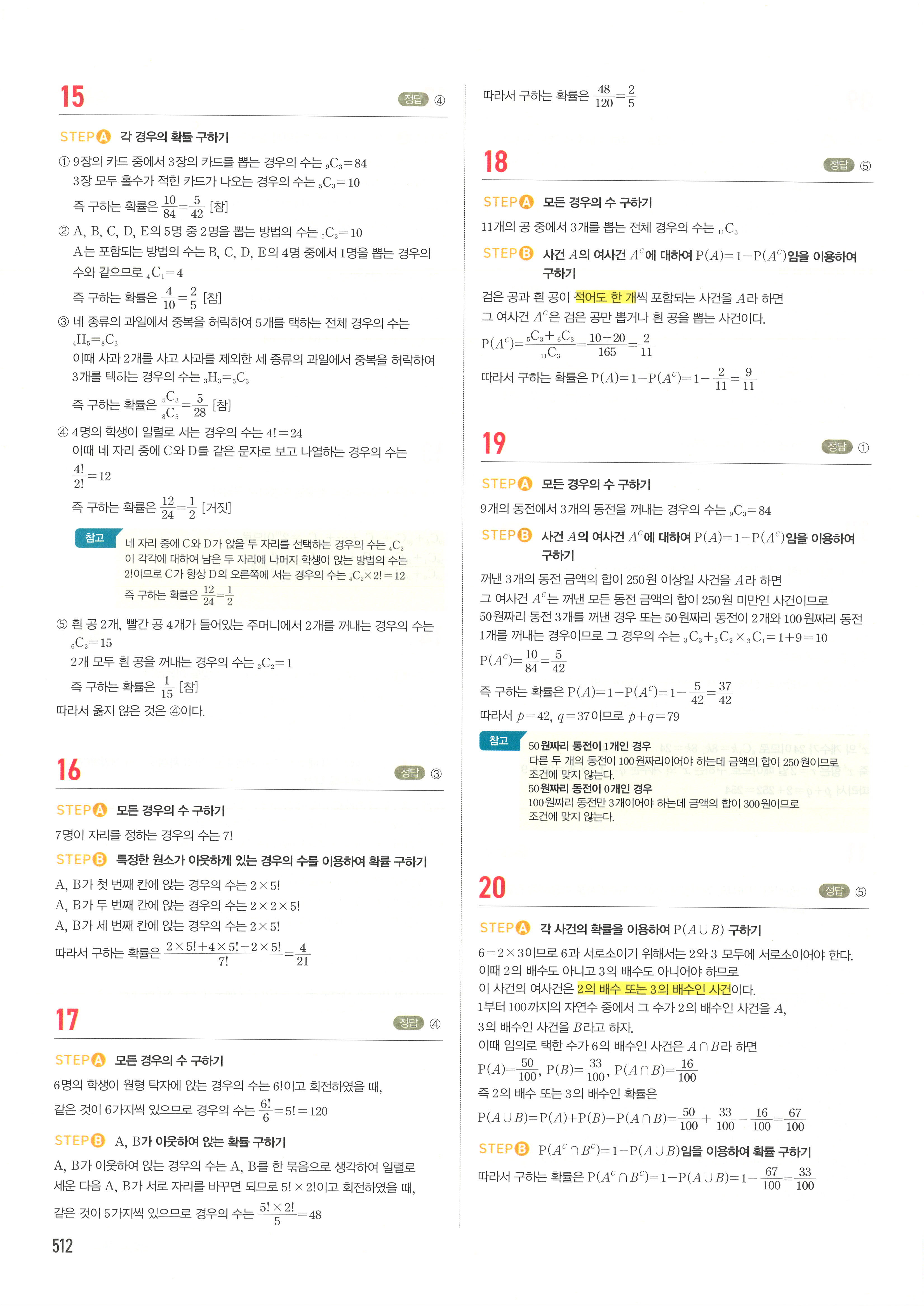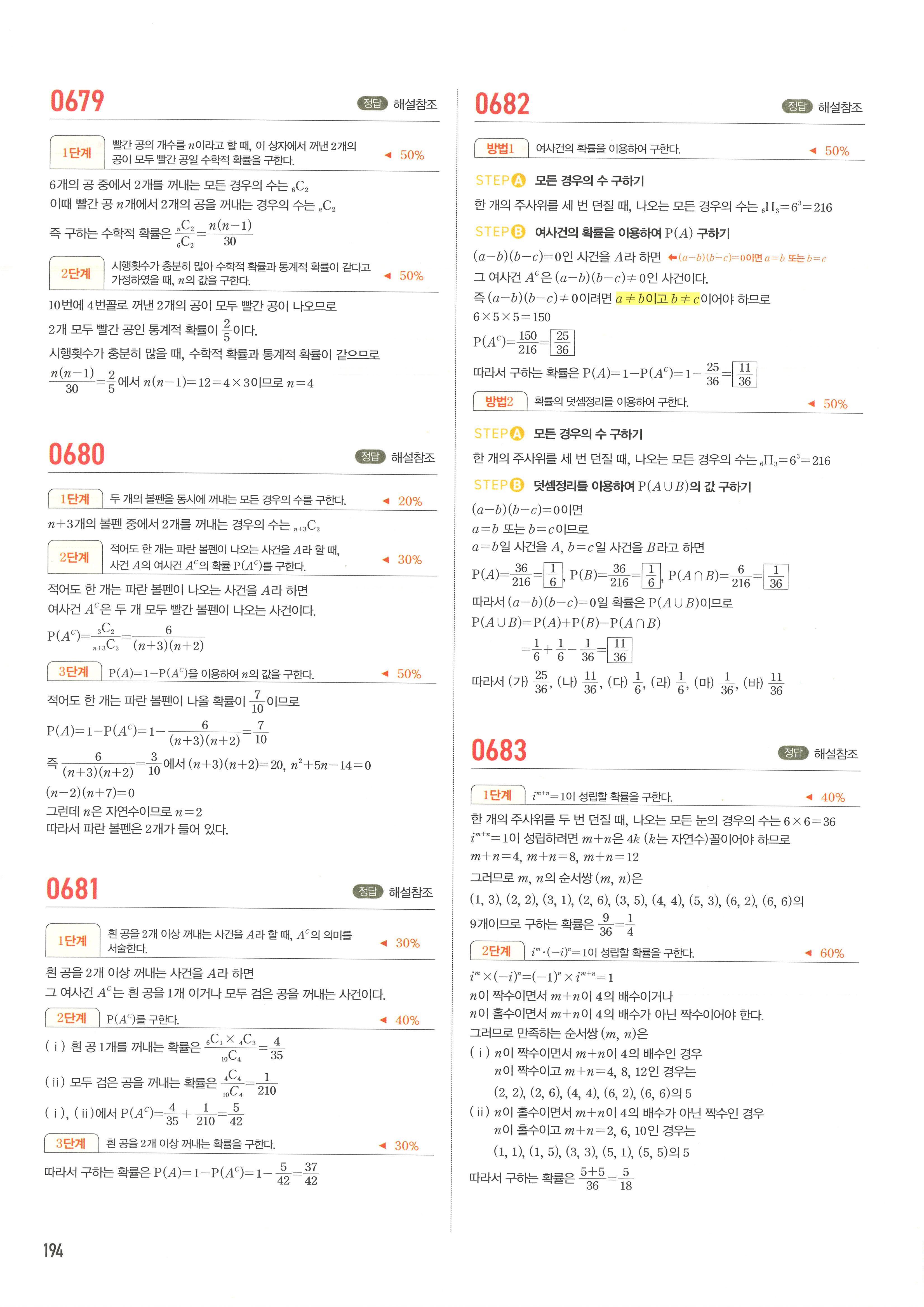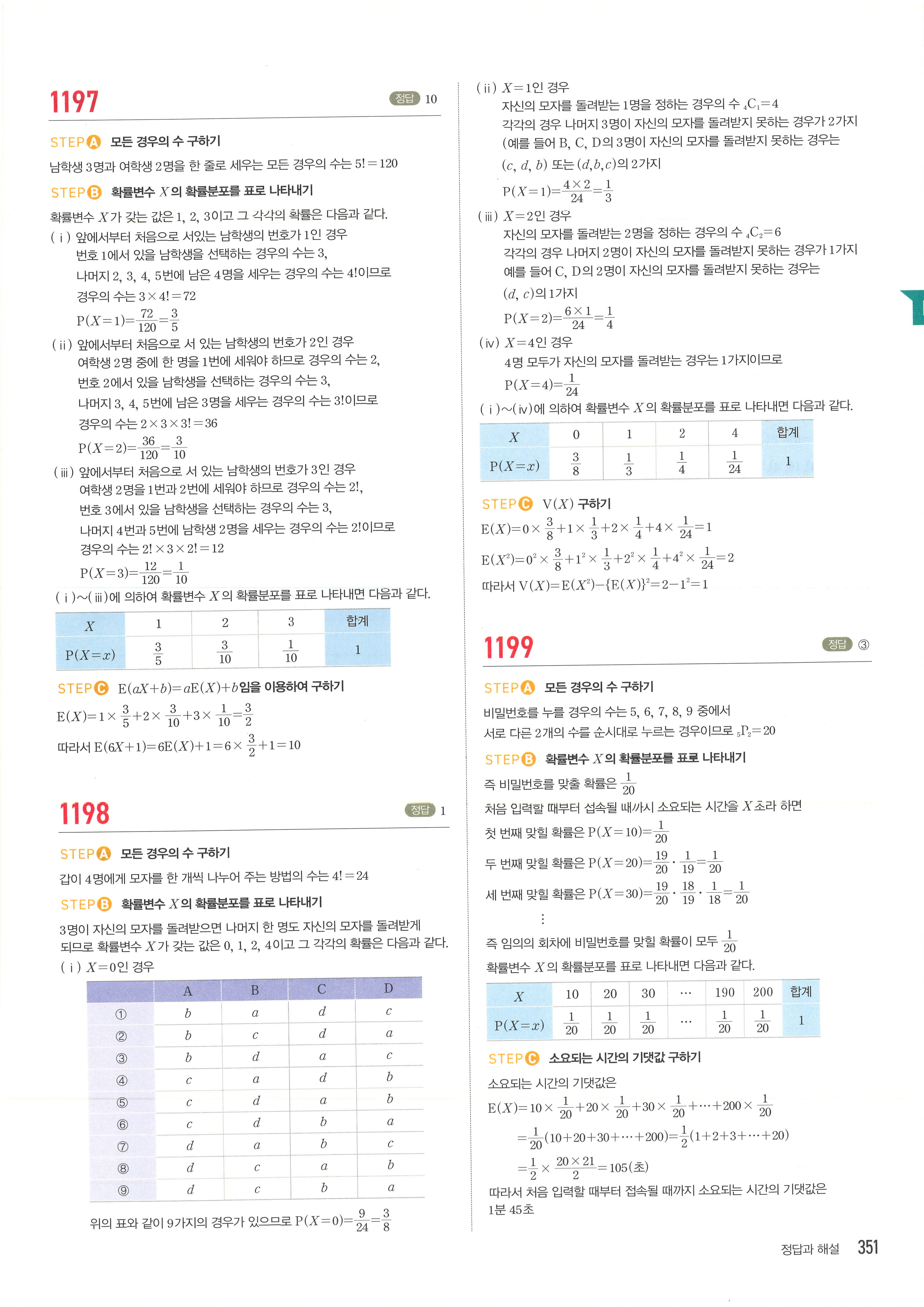 답지의 풀이 과정을 보며 확률과 통계의 중요한 개념을 다시 복습하세요. 개념을 명확히 이해하면 시험에서 비슷한 유형의 문제도 쉽게 해결할 수 있습니다.