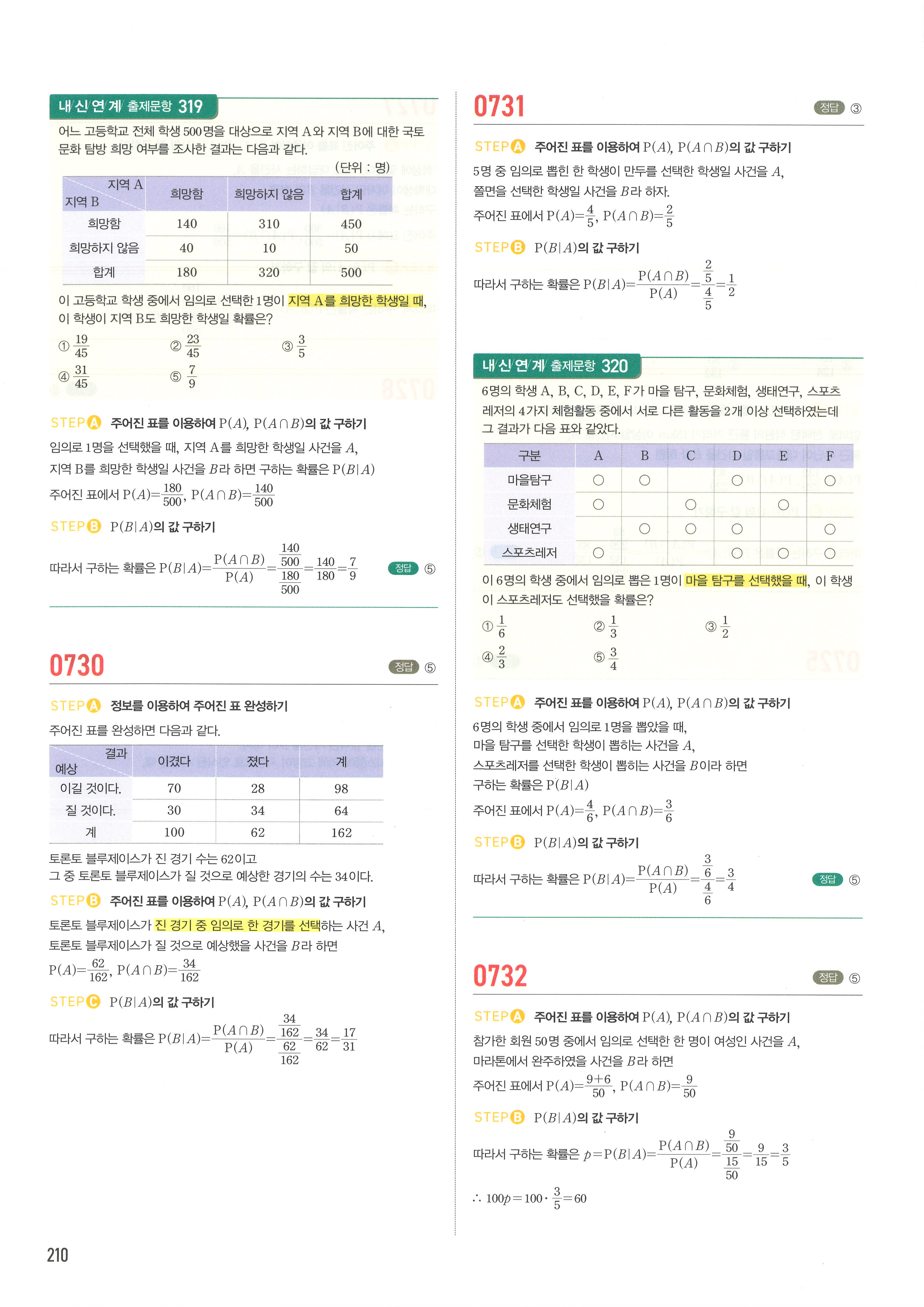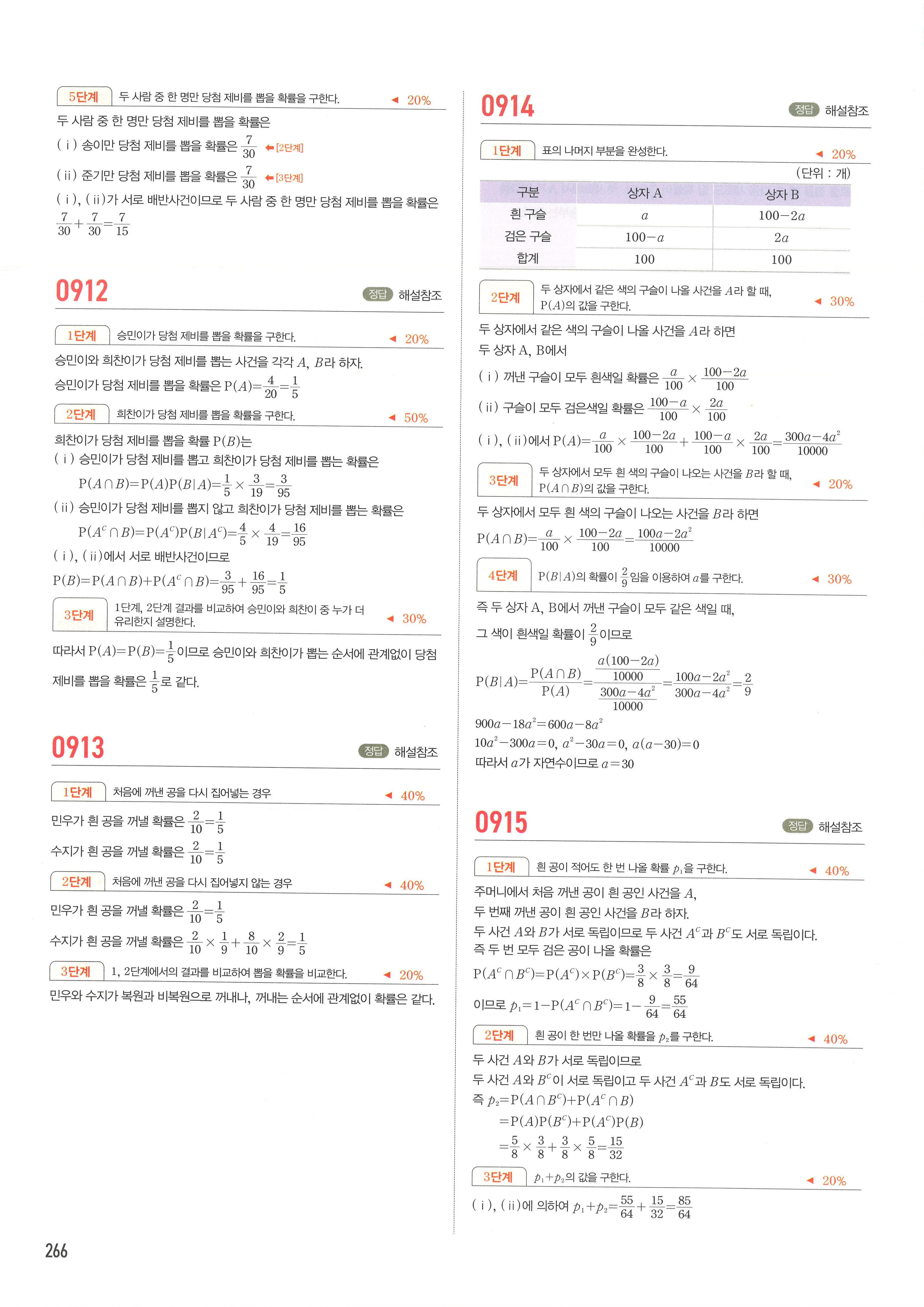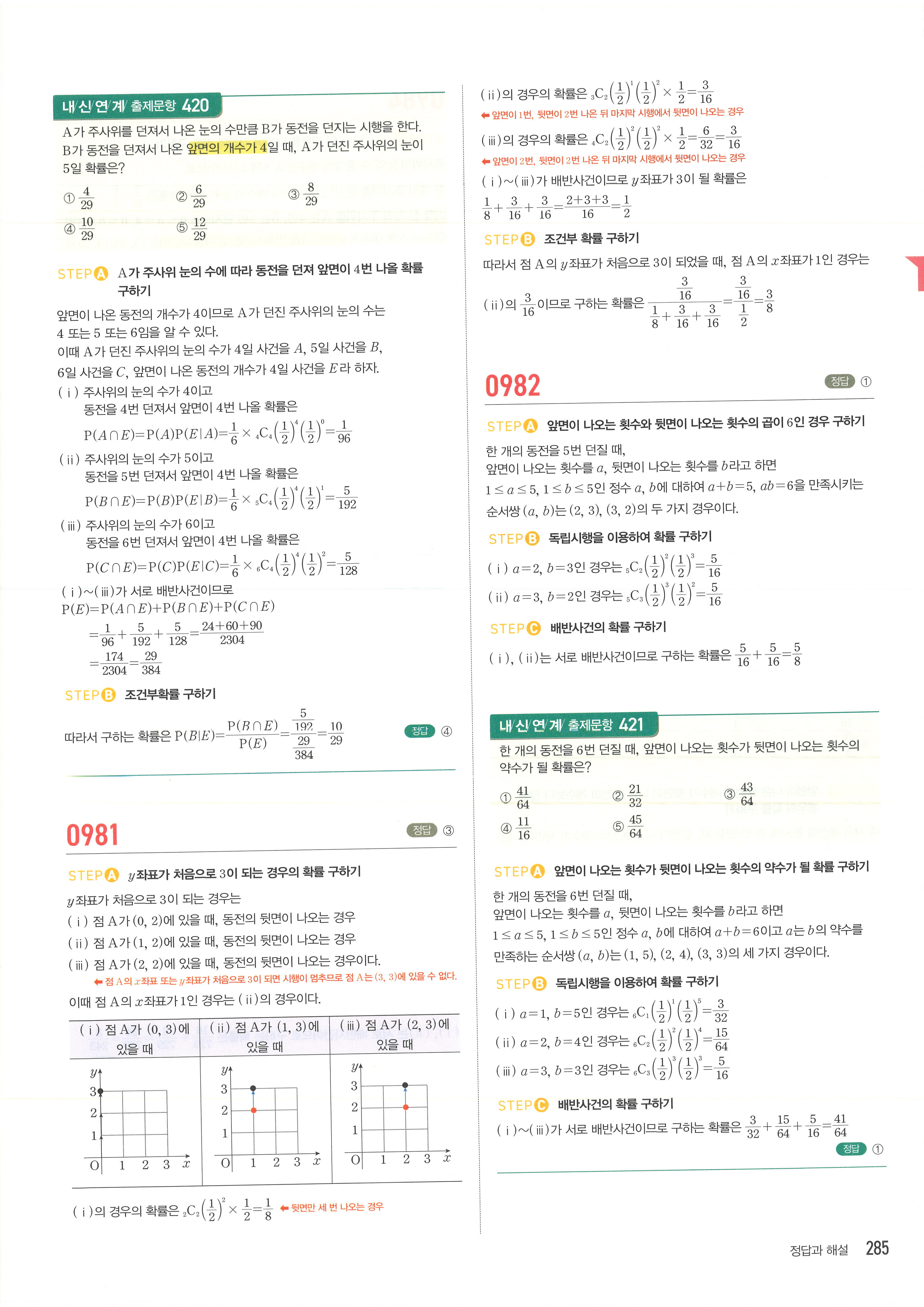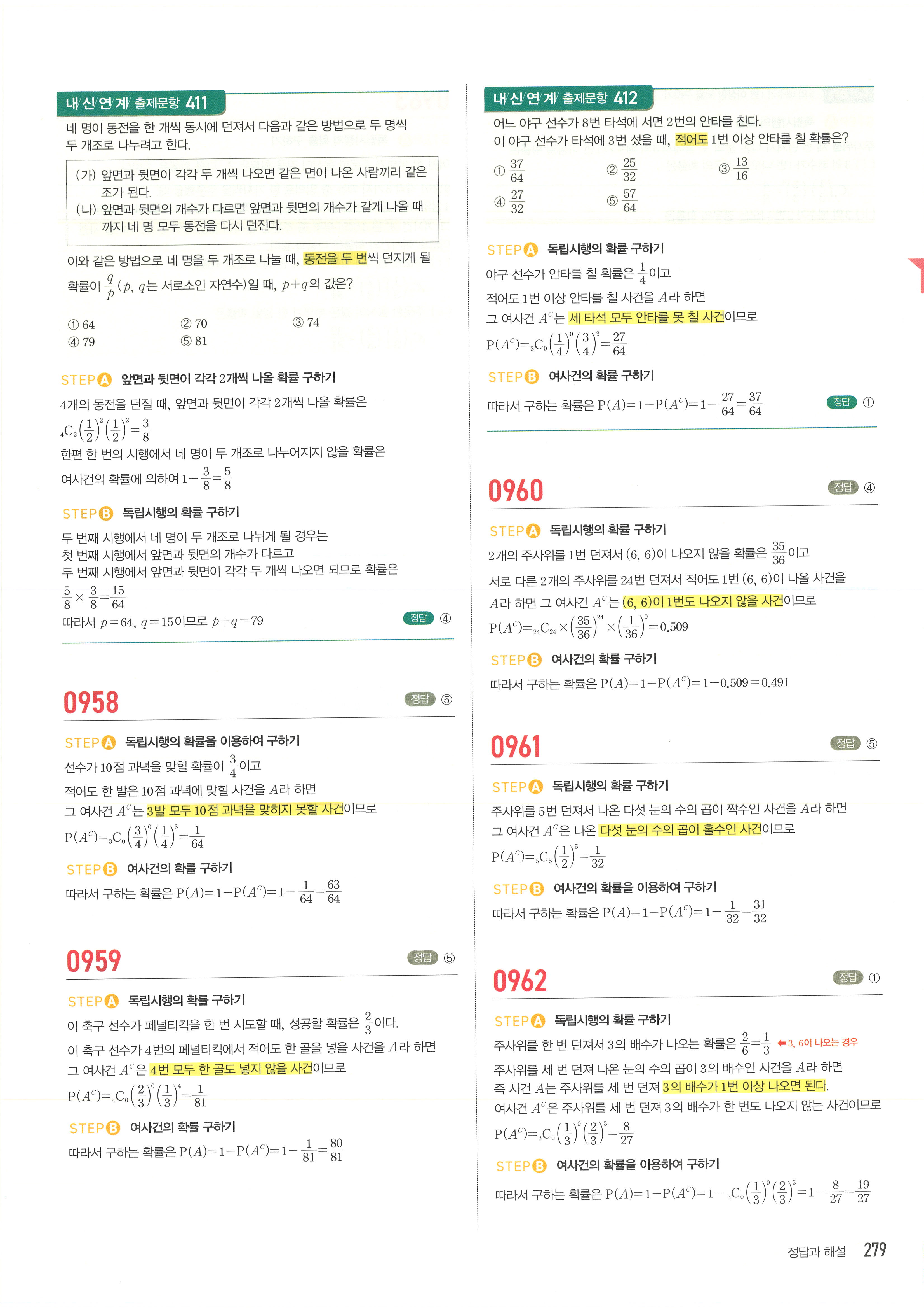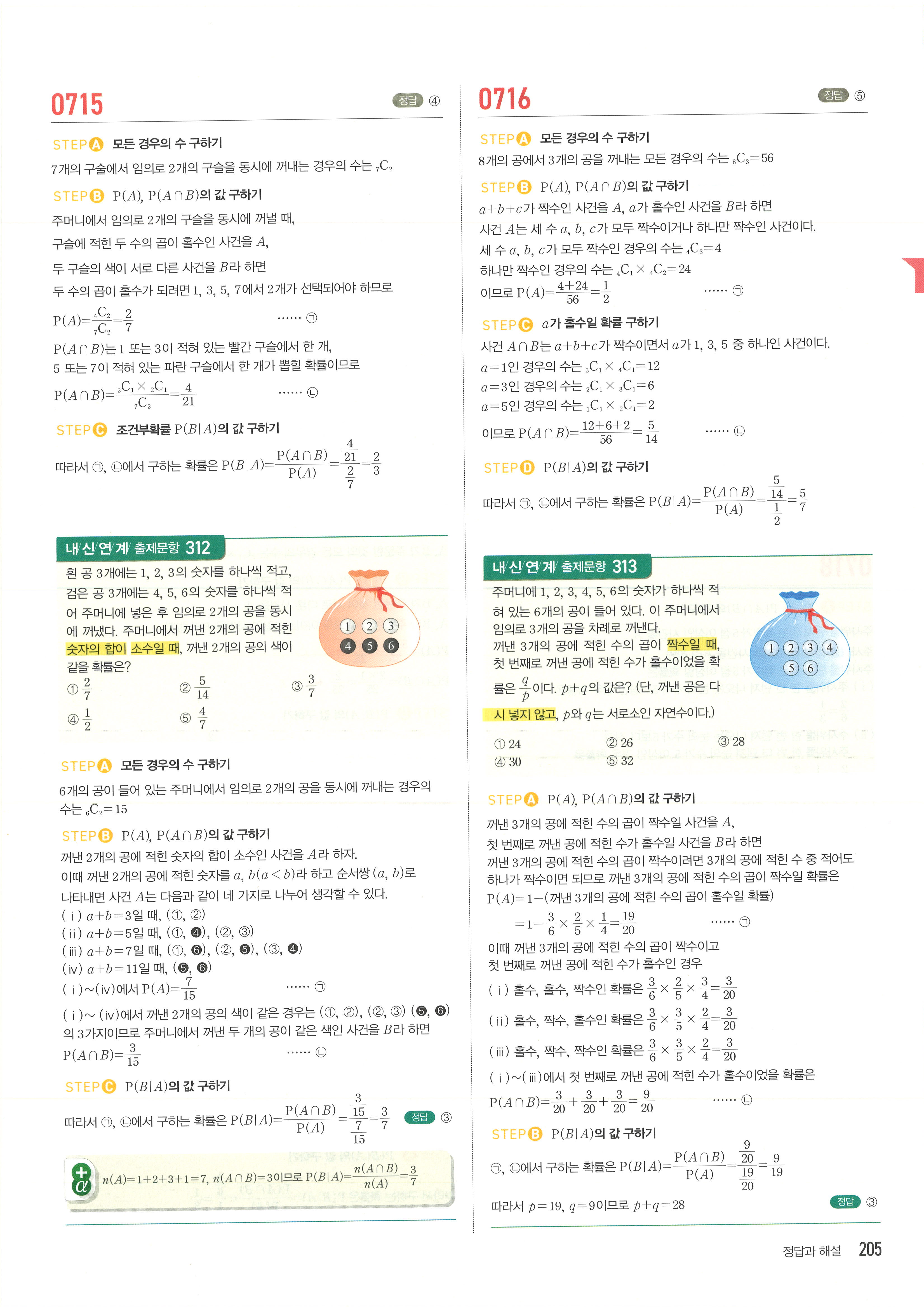 답지의 풀이 과정을 보며 확률과 통계의 중요한 개념을 다시 복습하세요. 개념을 명확히 이해하면 시험에서 비슷한 유형의 문제도 쉽게 해결할 수 있습니다.