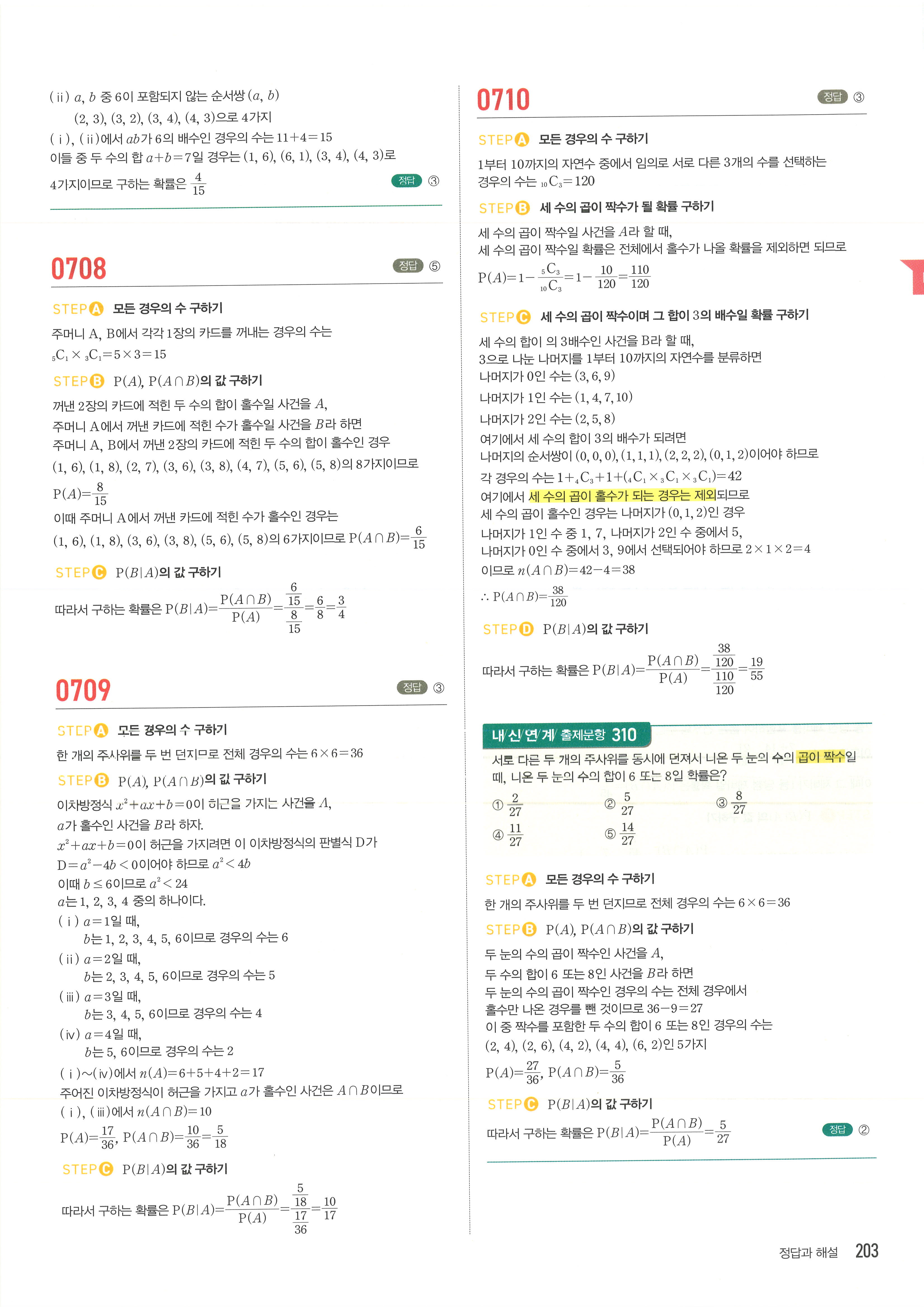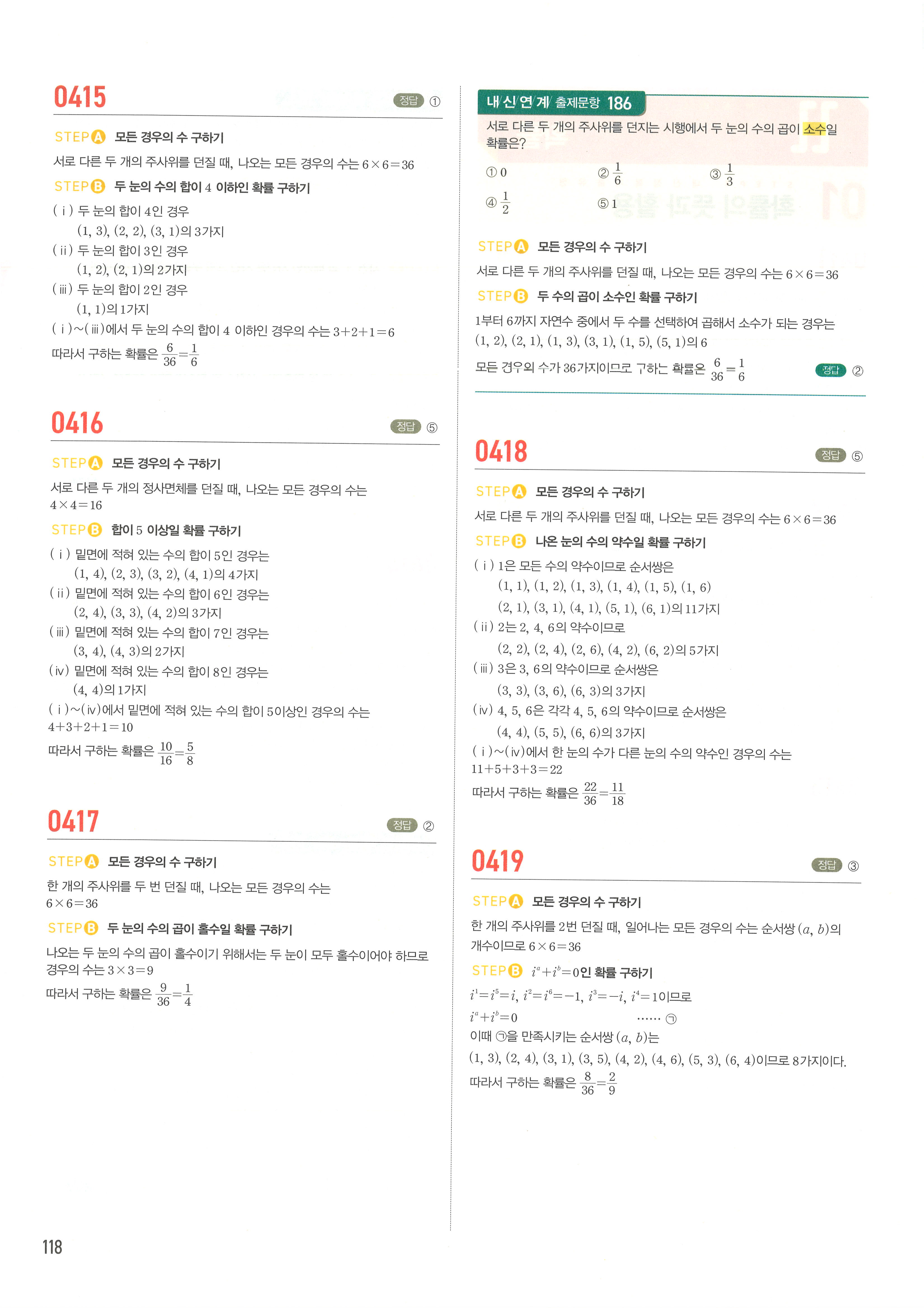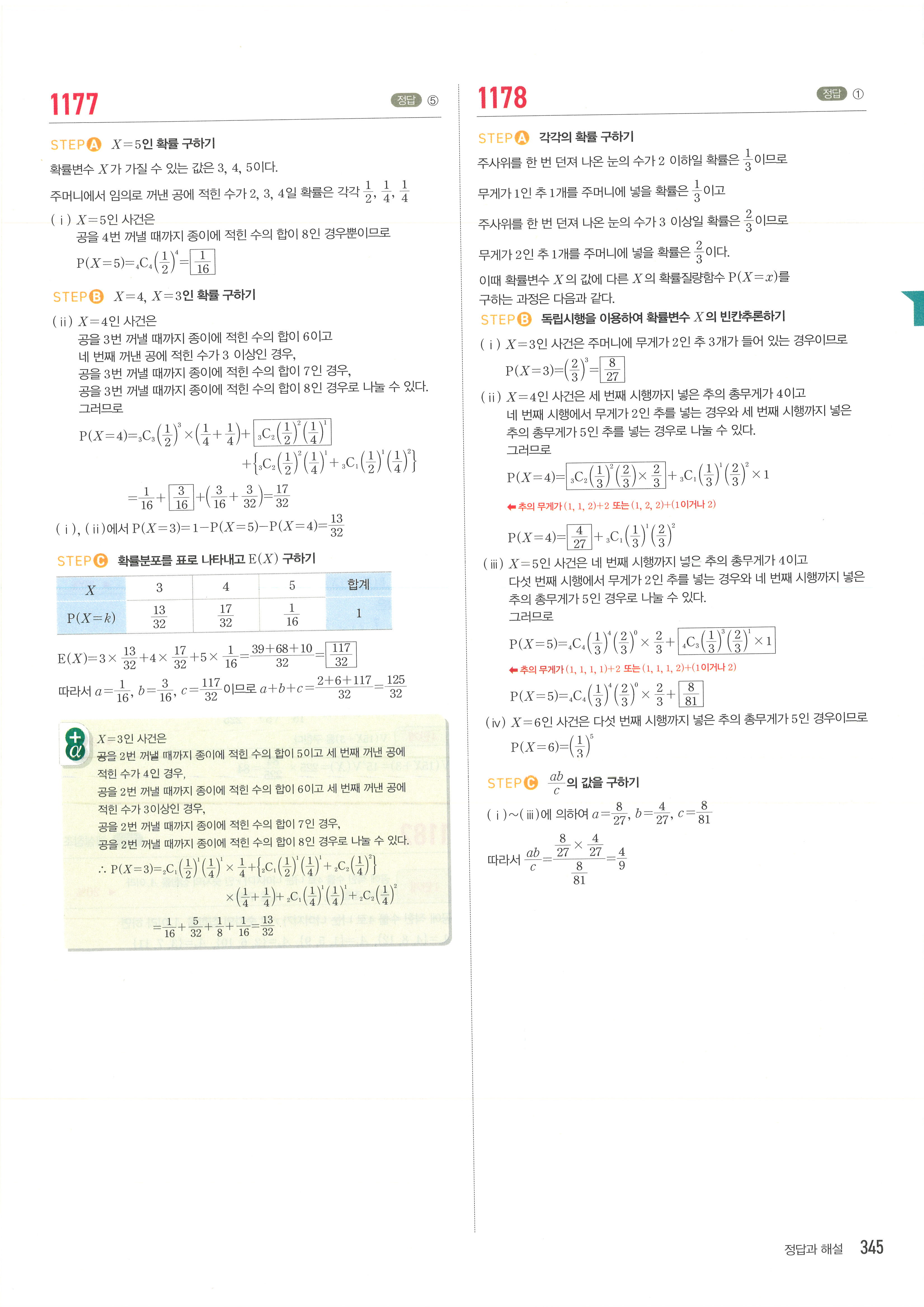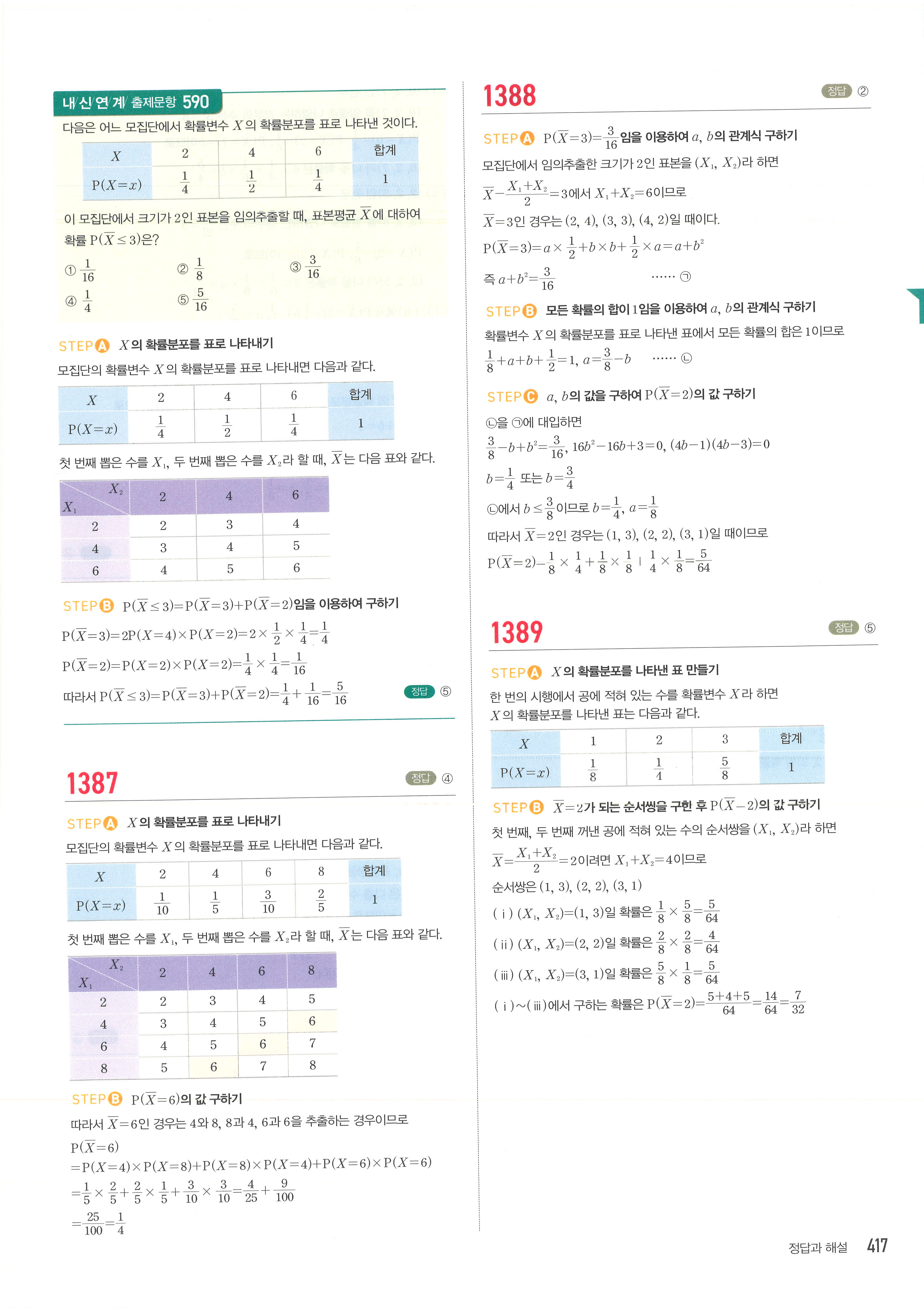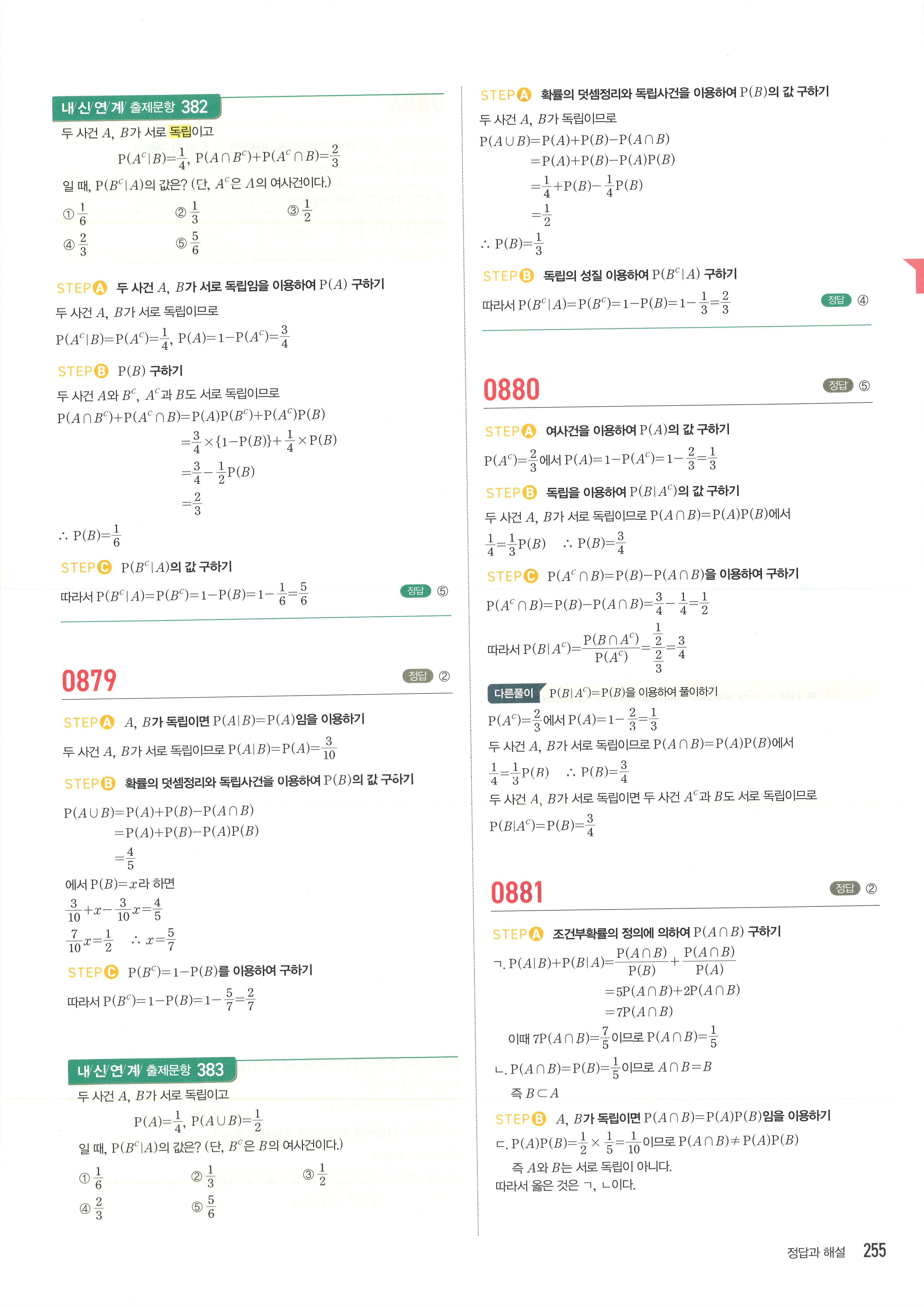 답지의 풀이 과정을 보며 확률과 통계의 중요한 개념을 다시 복습하세요. 개념을 명확히 이해하면 시험에서 비슷한 유형의 문제도 쉽게 해결할 수 있습니다.