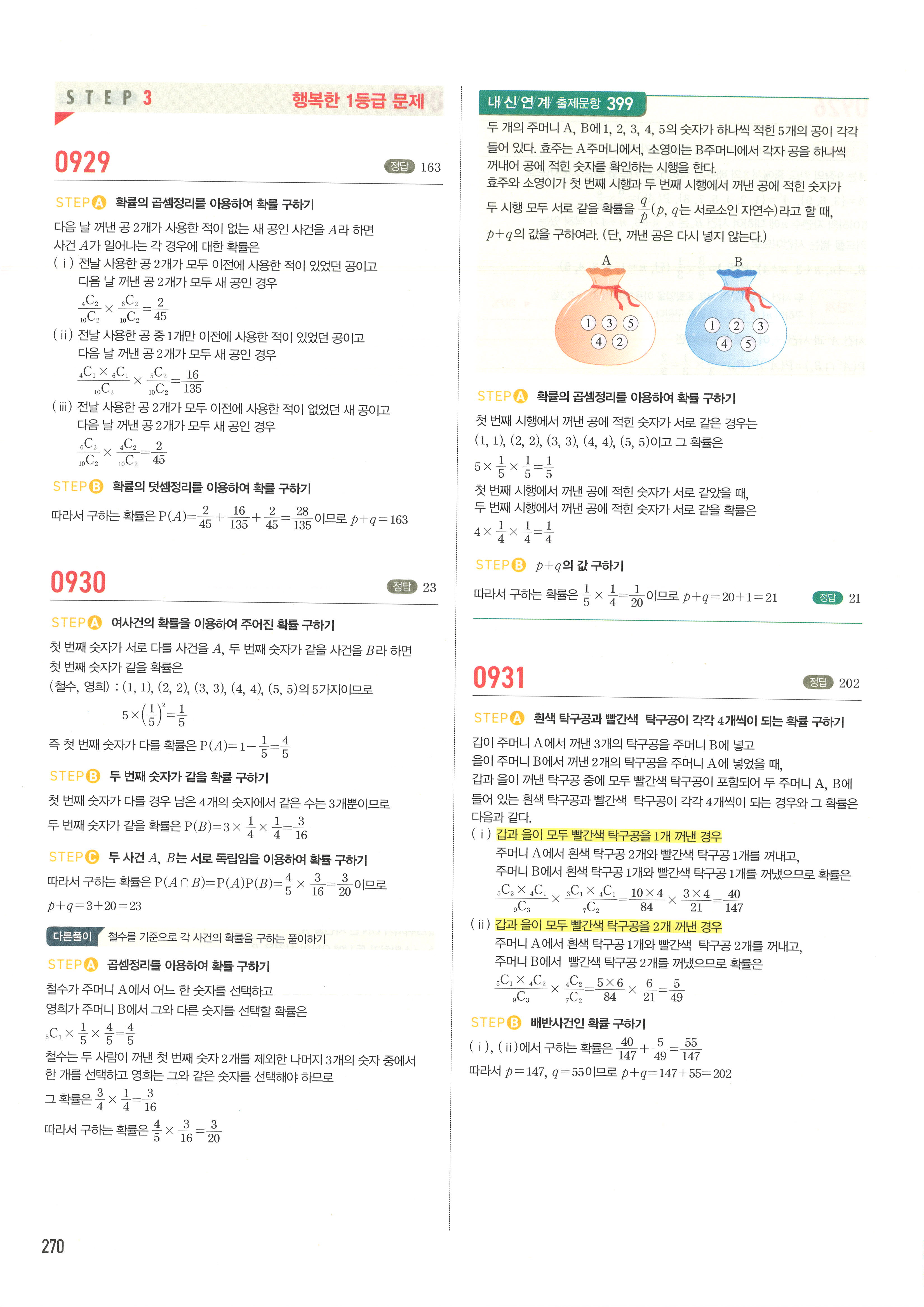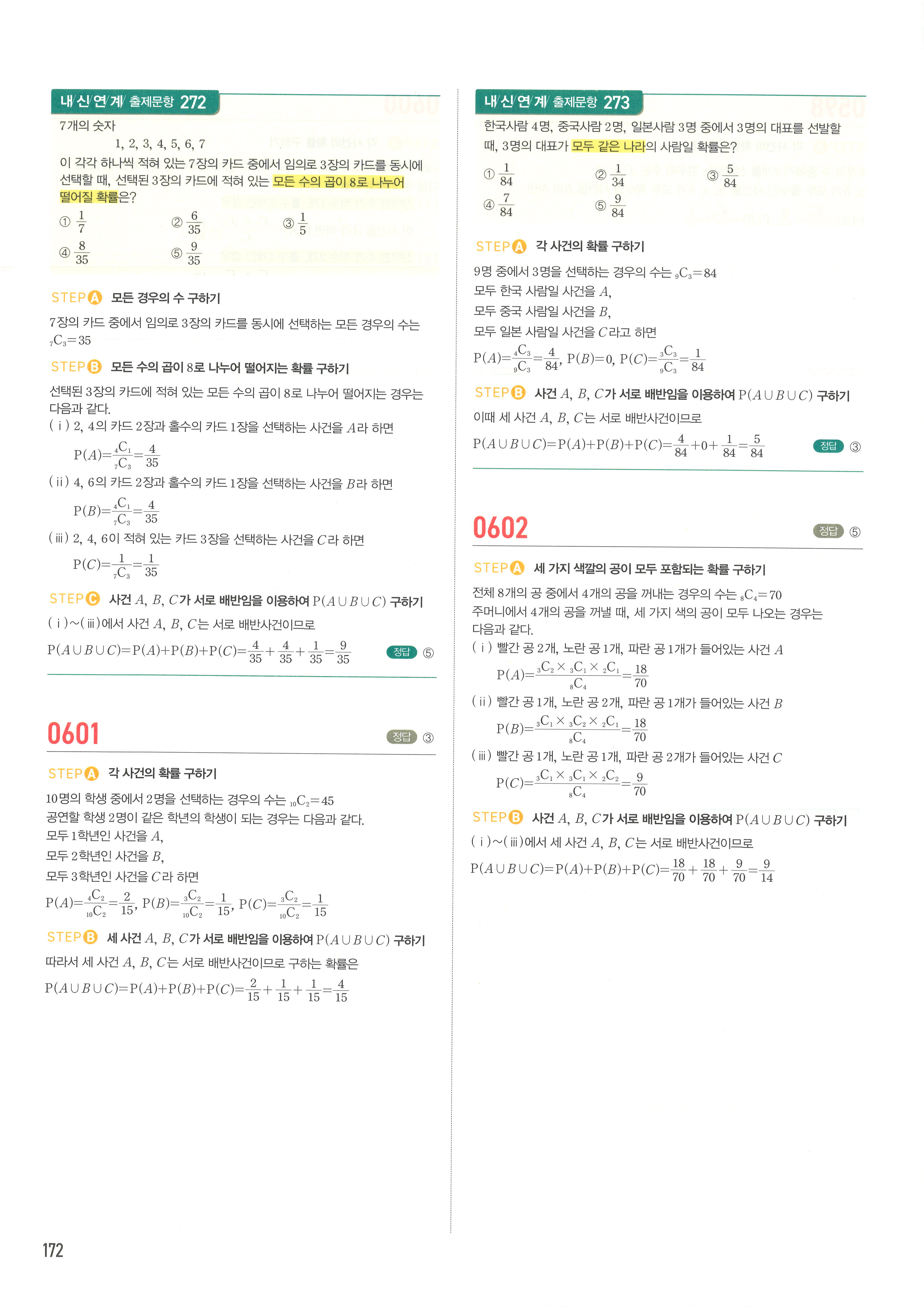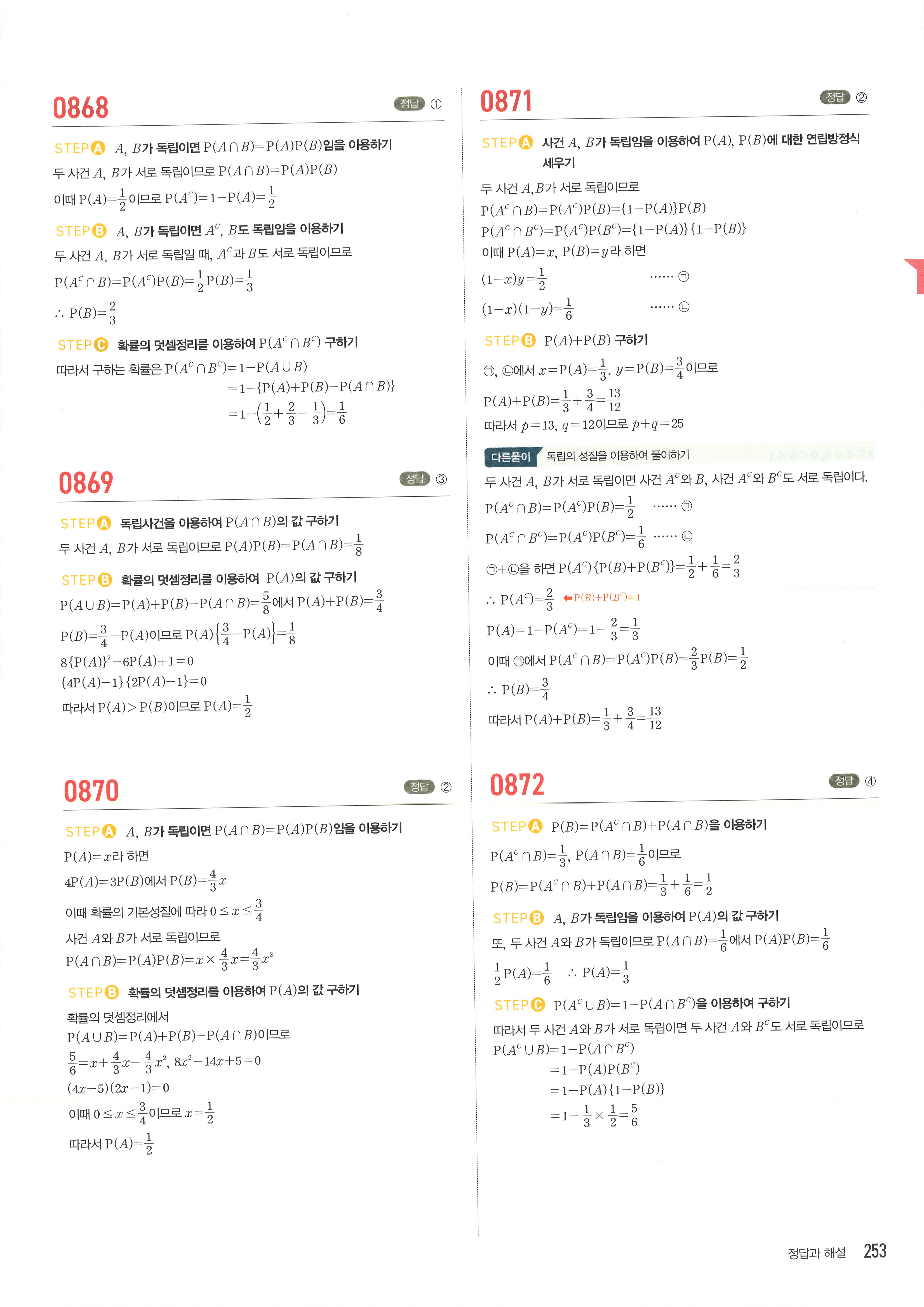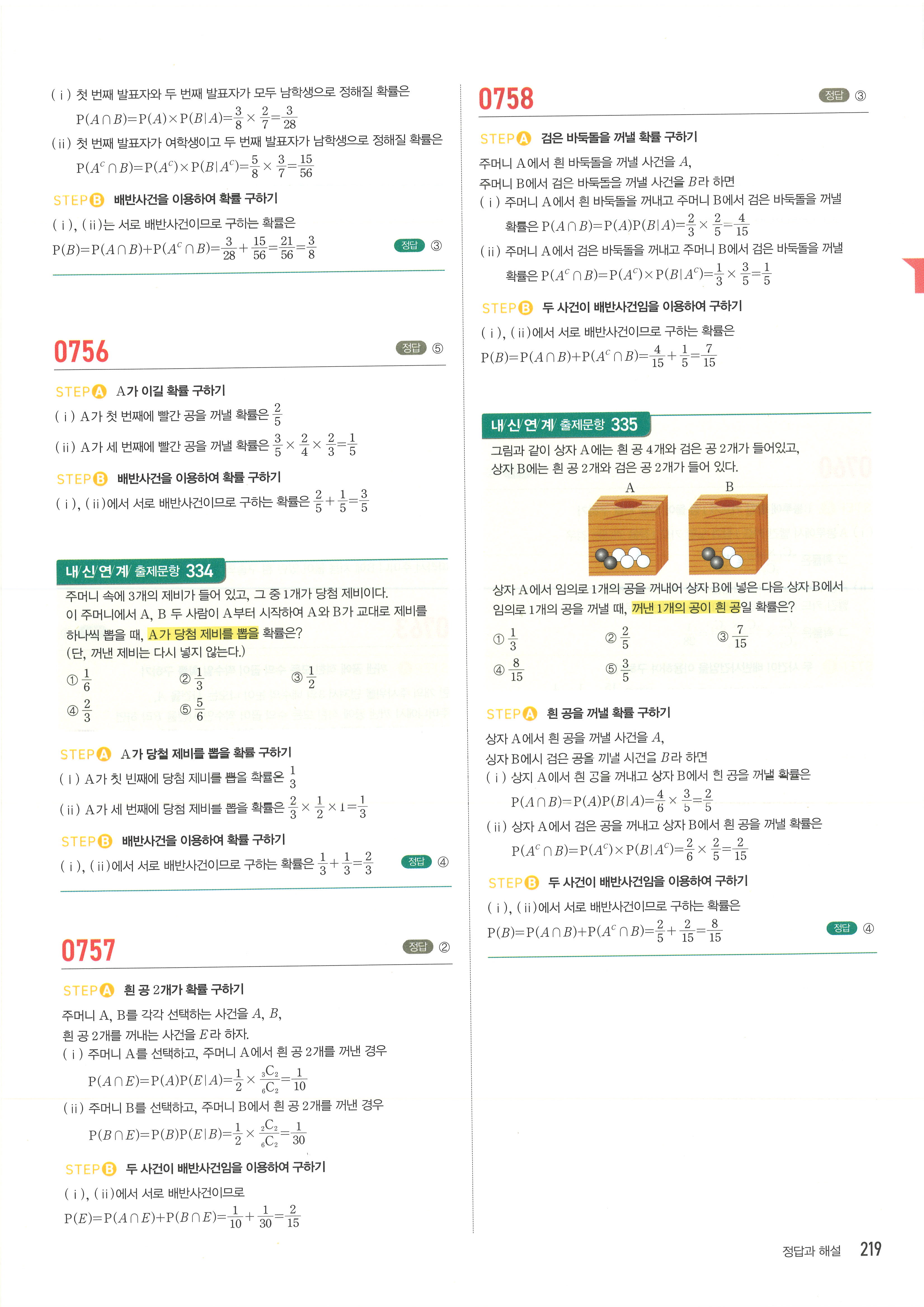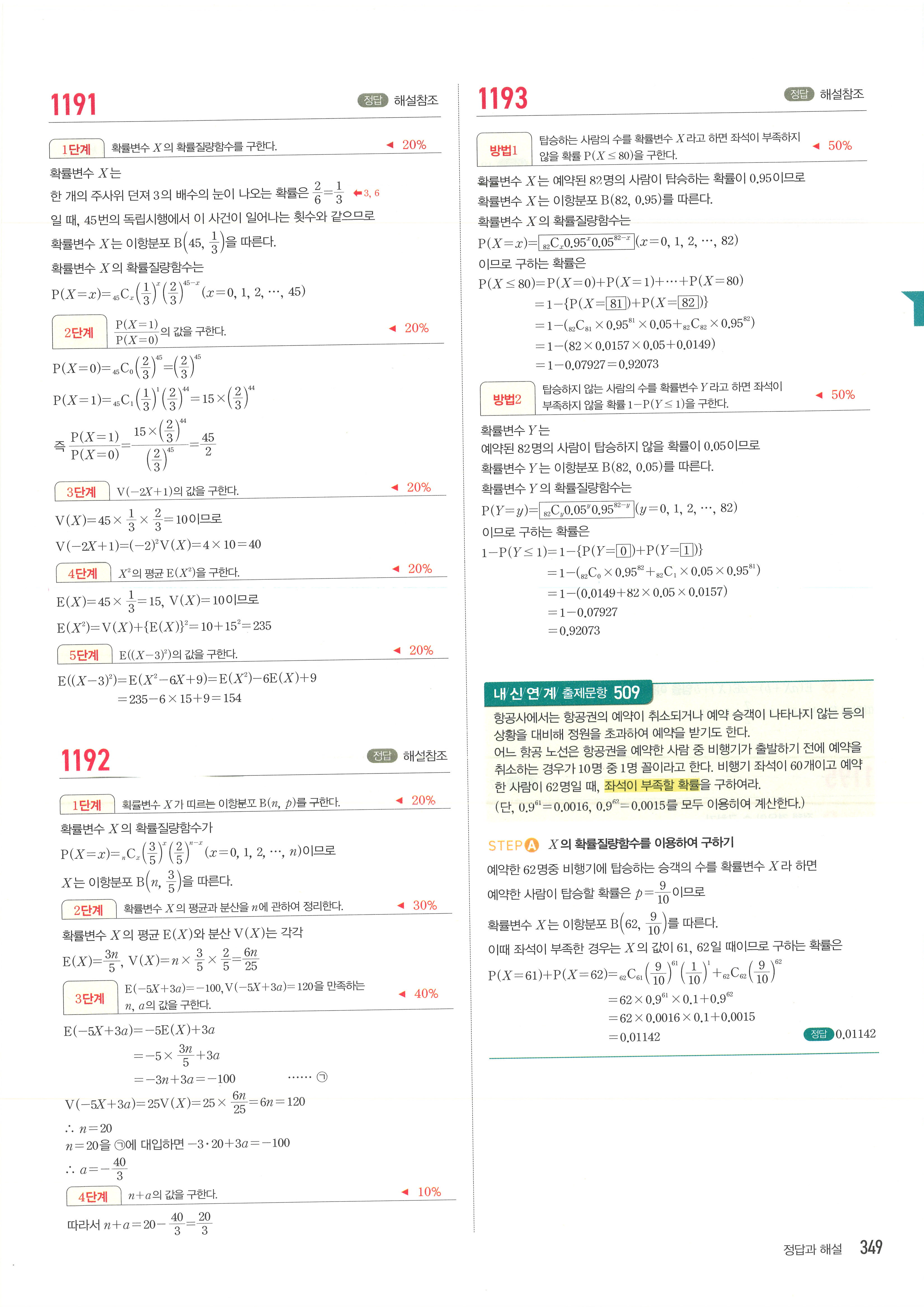 답지의 풀이 과정을 보며 확률과 통계의 중요한 개념을 다시 복습하세요. 개념을 명확히 이해하면 시험에서 비슷한 유형의 문제도 쉽게 해결할 수 있습니다.