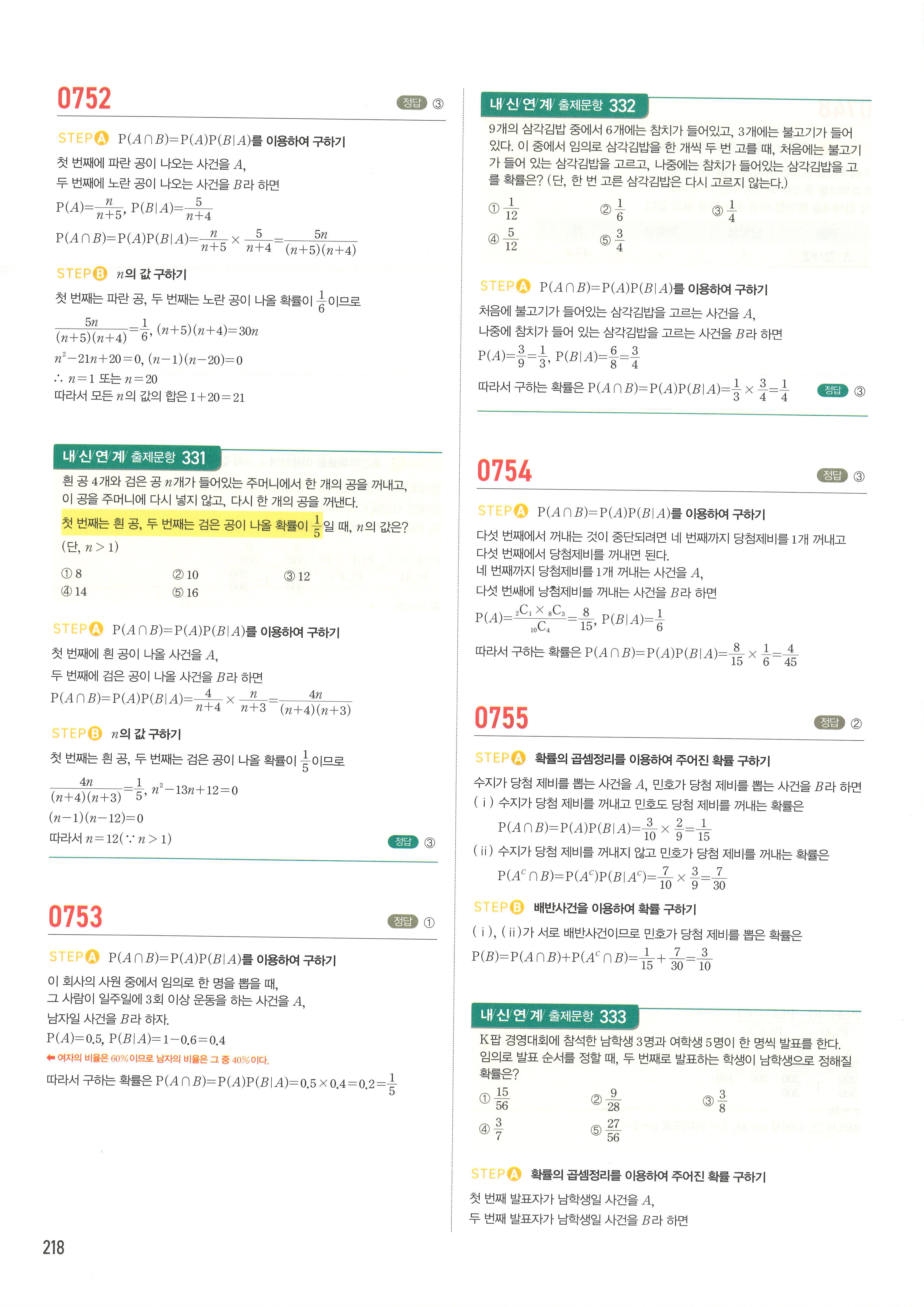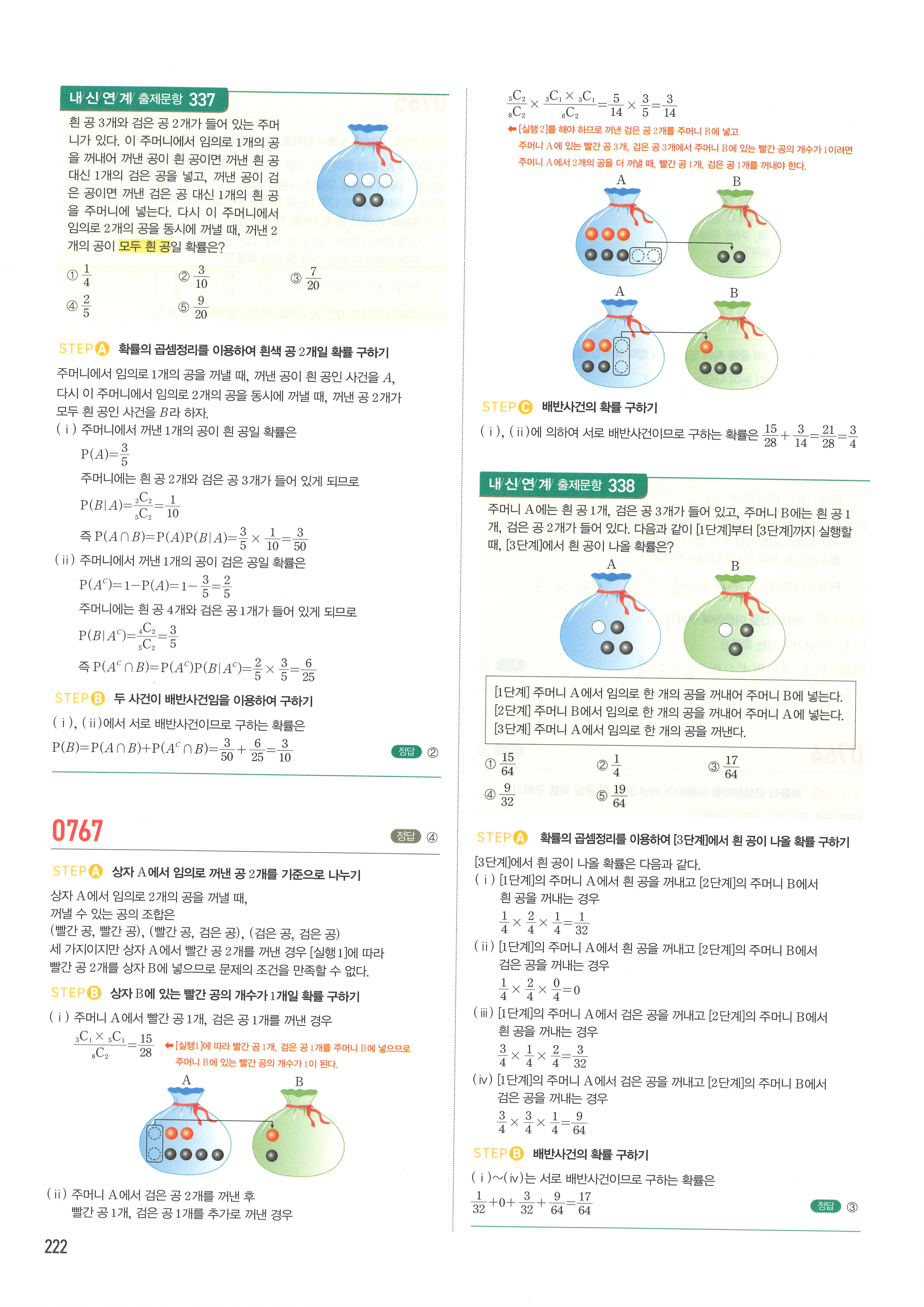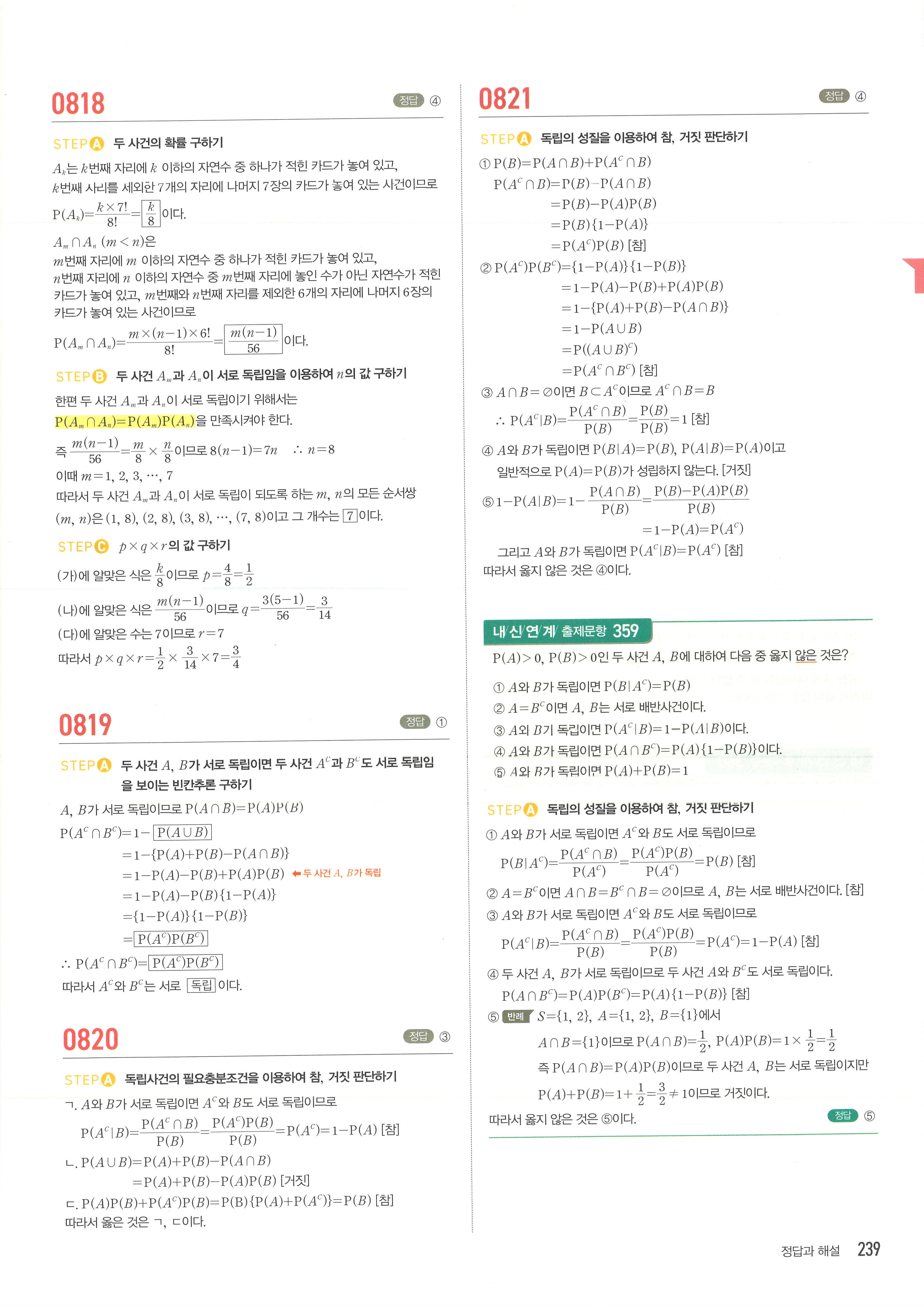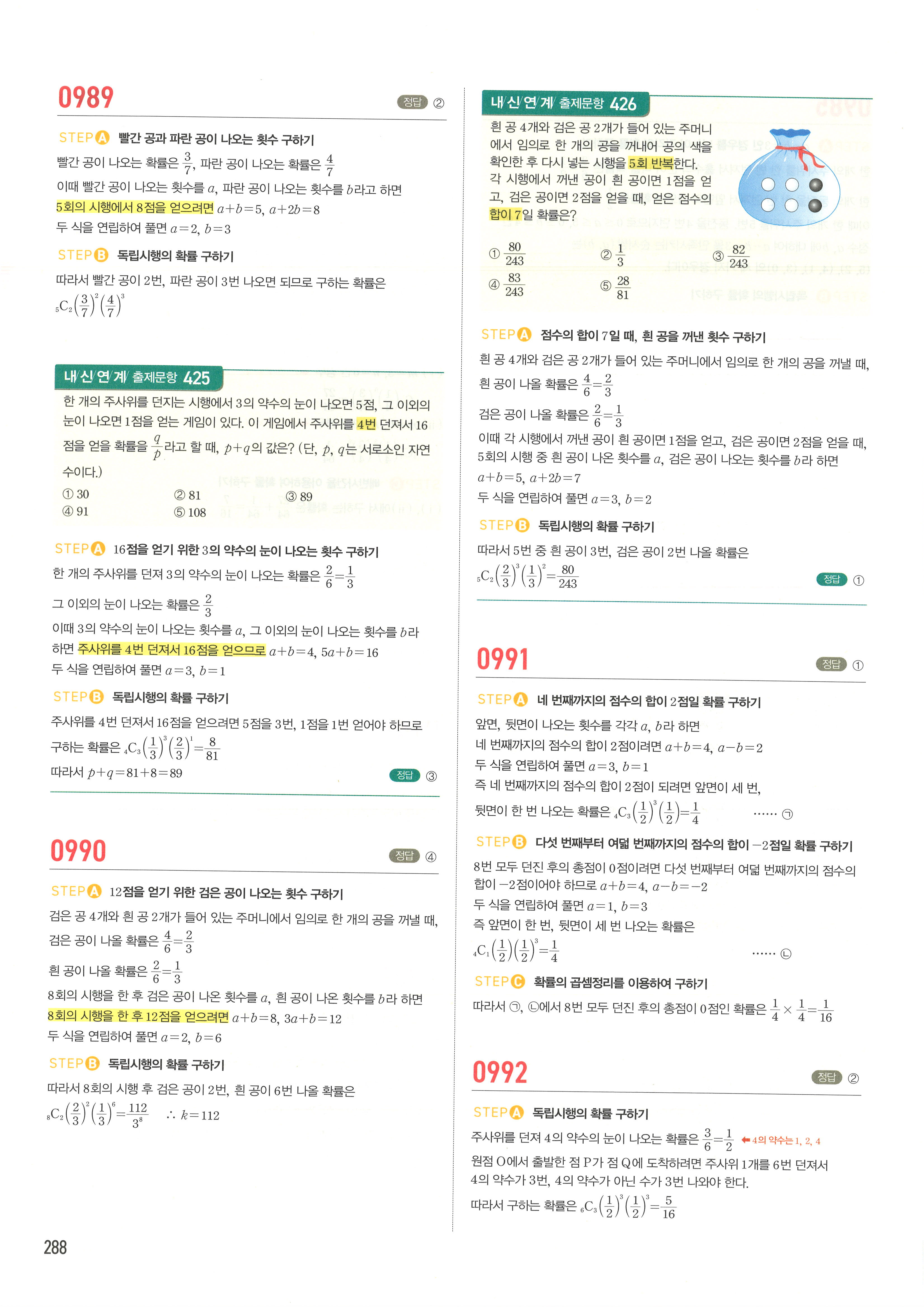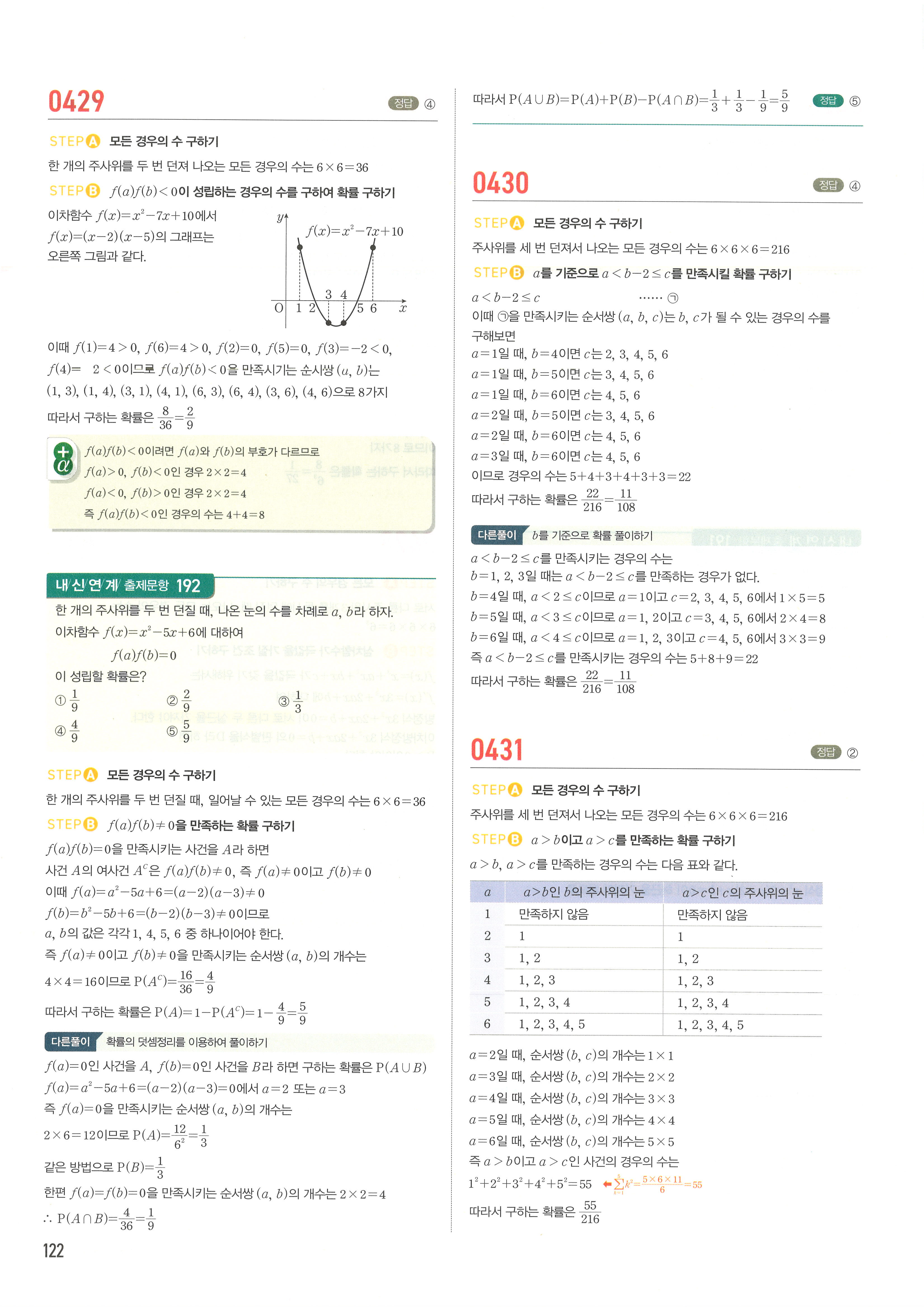 답지의 풀이 과정을 보며 확률과 통계의 중요한 개념을 다시 복습하세요. 개념을 명확히 이해하면 시험에서 비슷한 유형의 문제도 쉽게 해결할 수 있습니다.