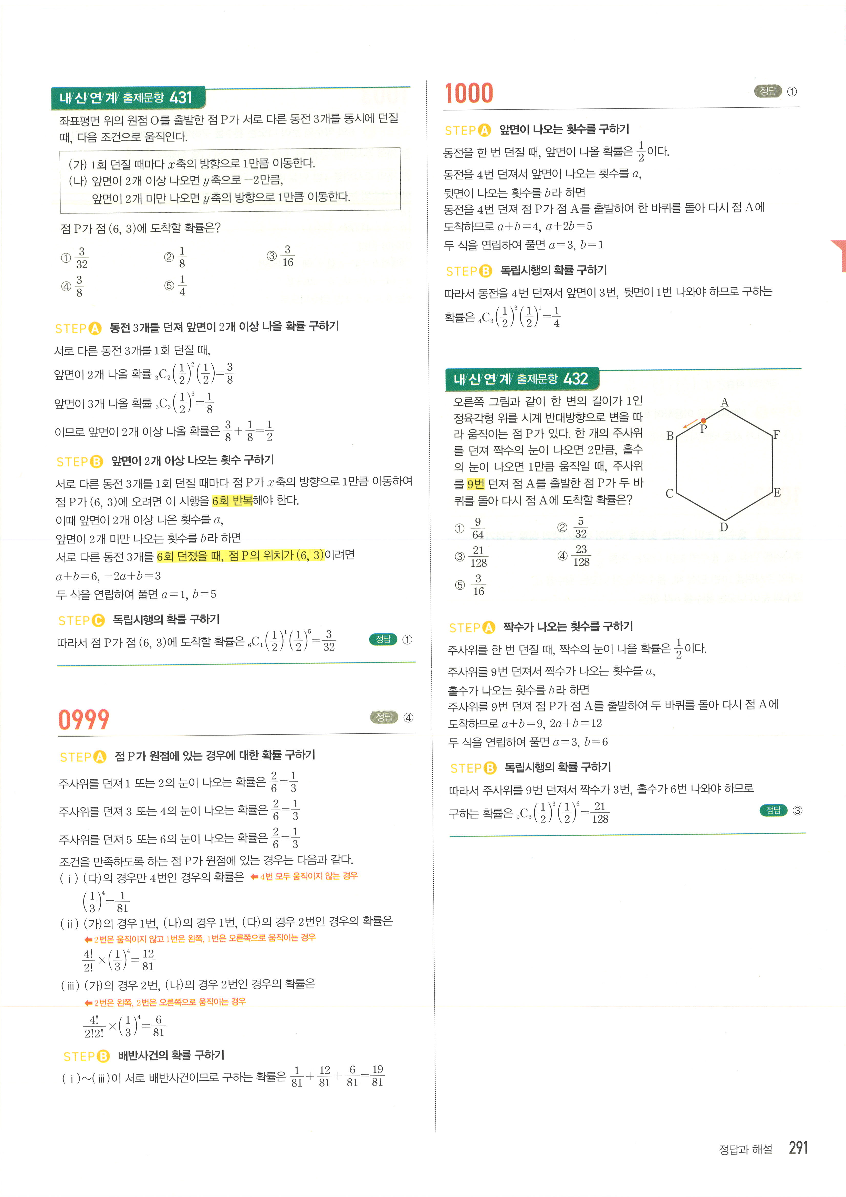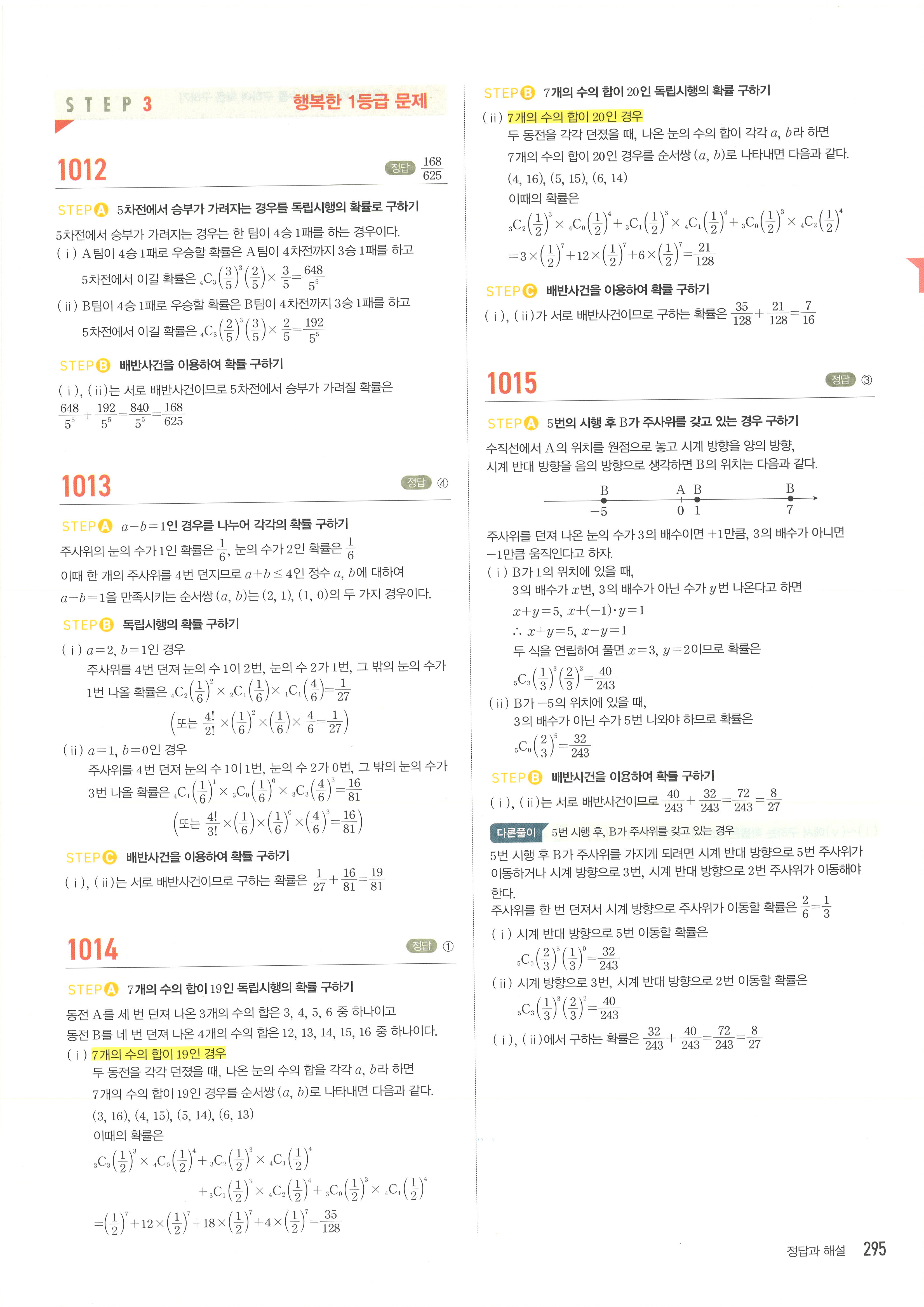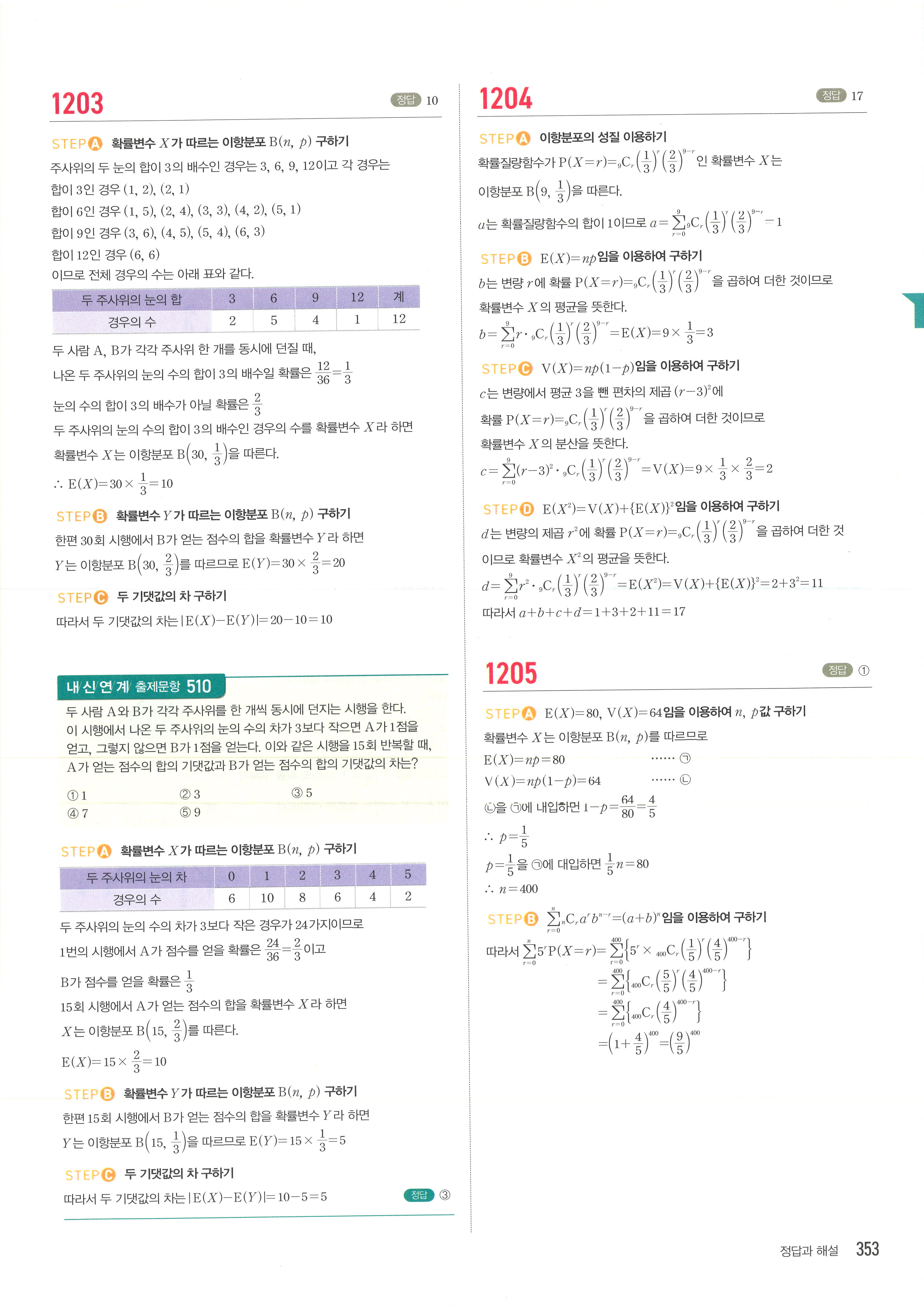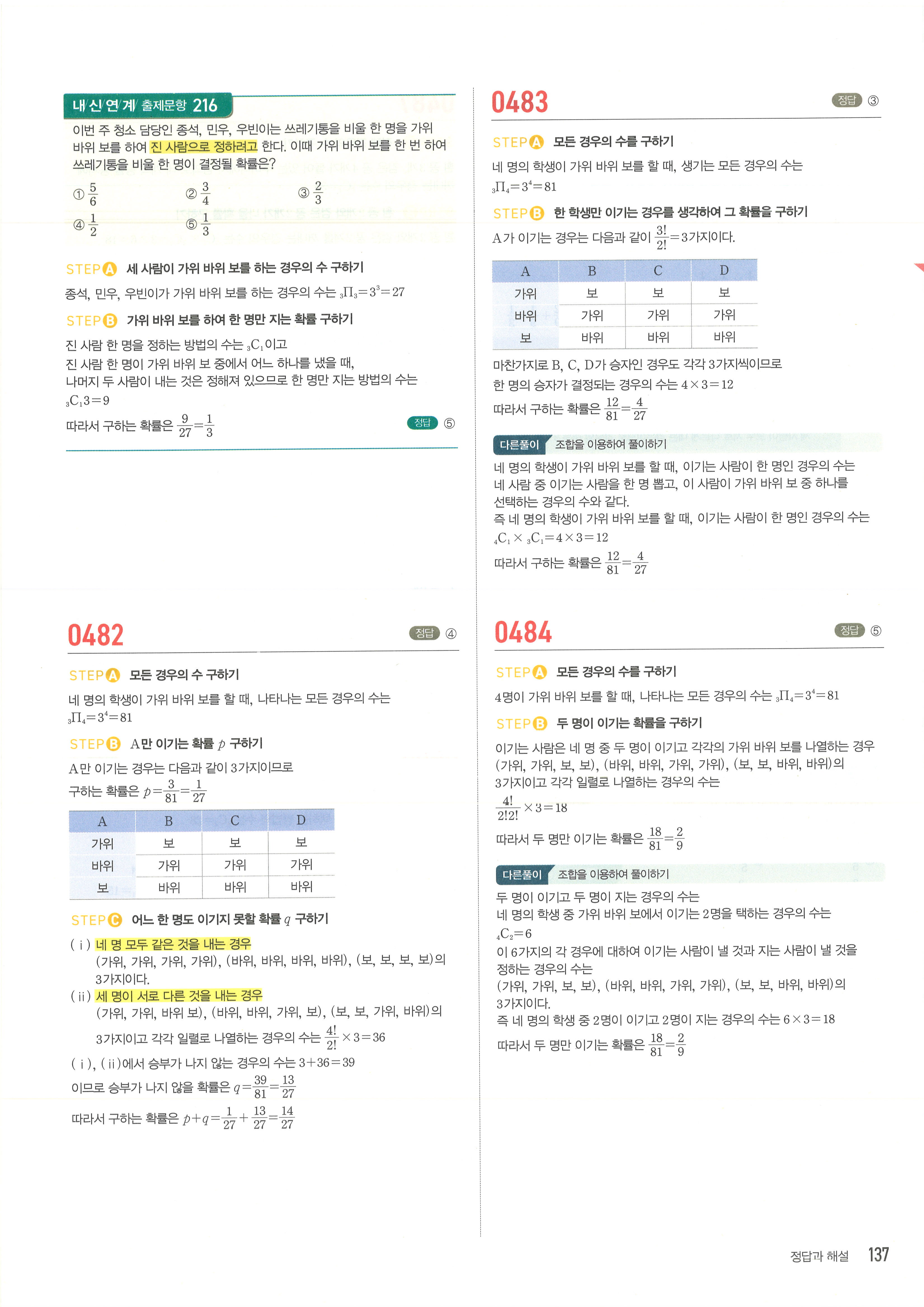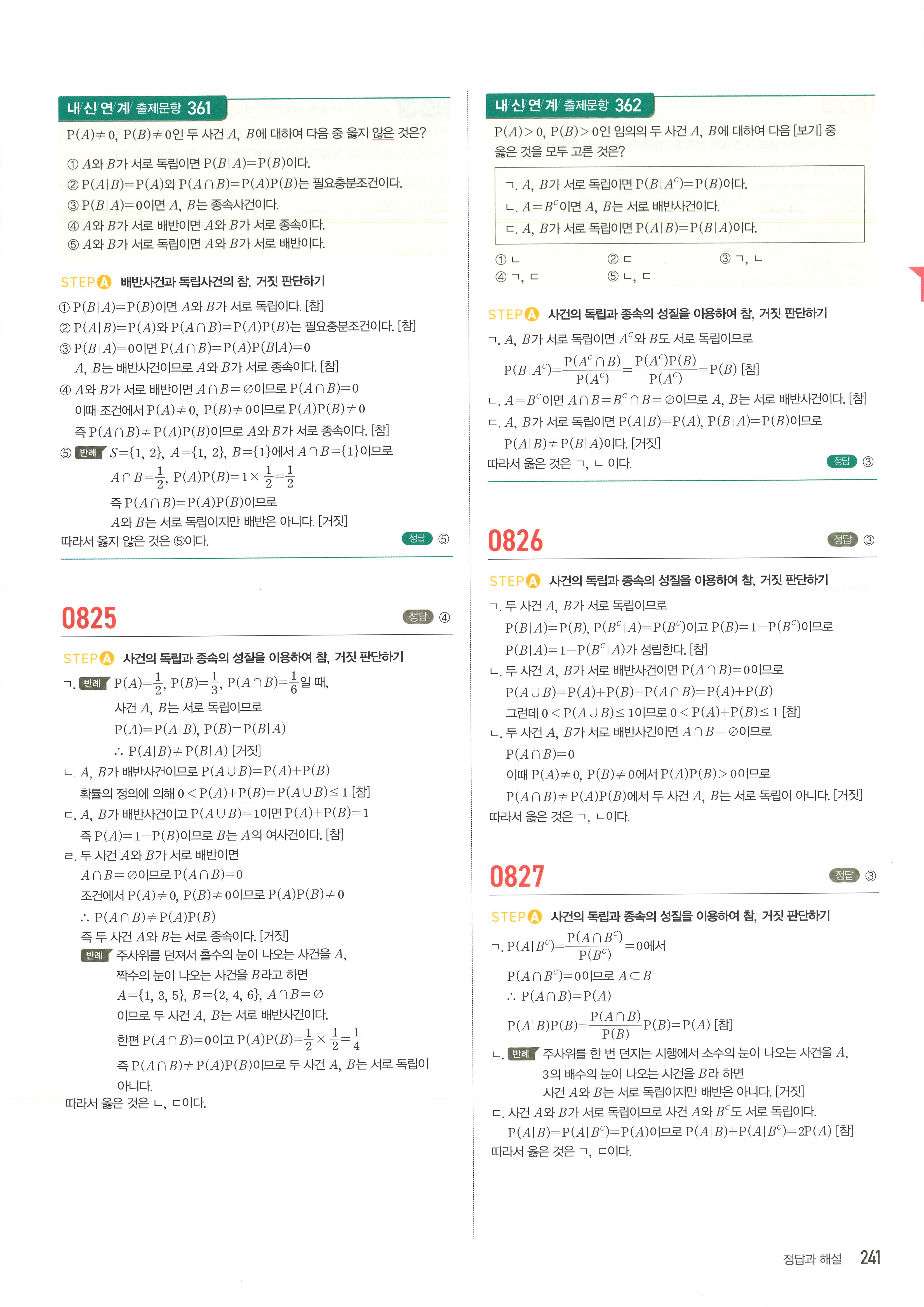 답지의 풀이 과정을 보며 확률과 통계의 중요한 개념을 다시 복습하세요. 개념을 명확히 이해하면 시험에서 비슷한 유형의 문제도 쉽게 해결할 수 있습니다.