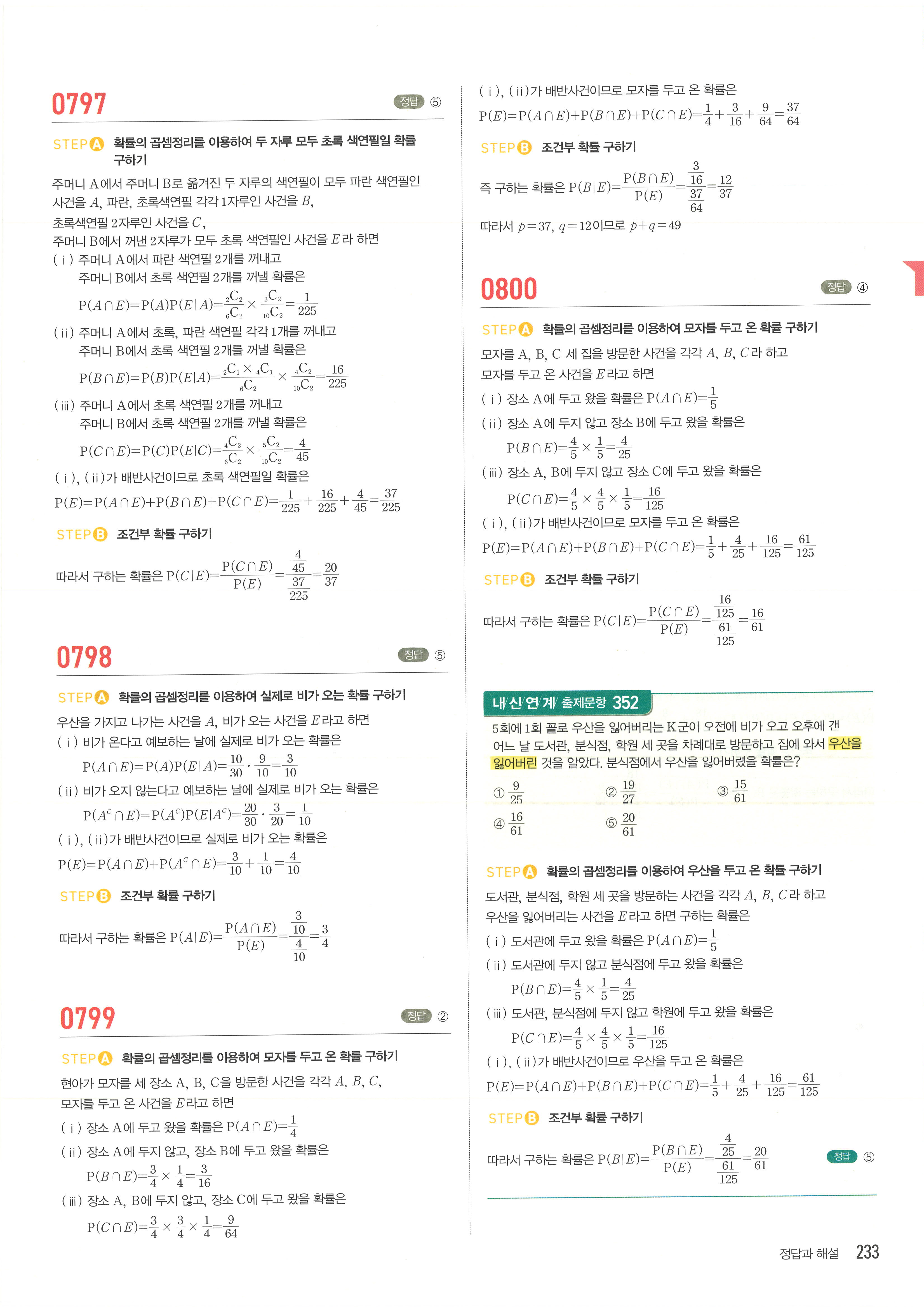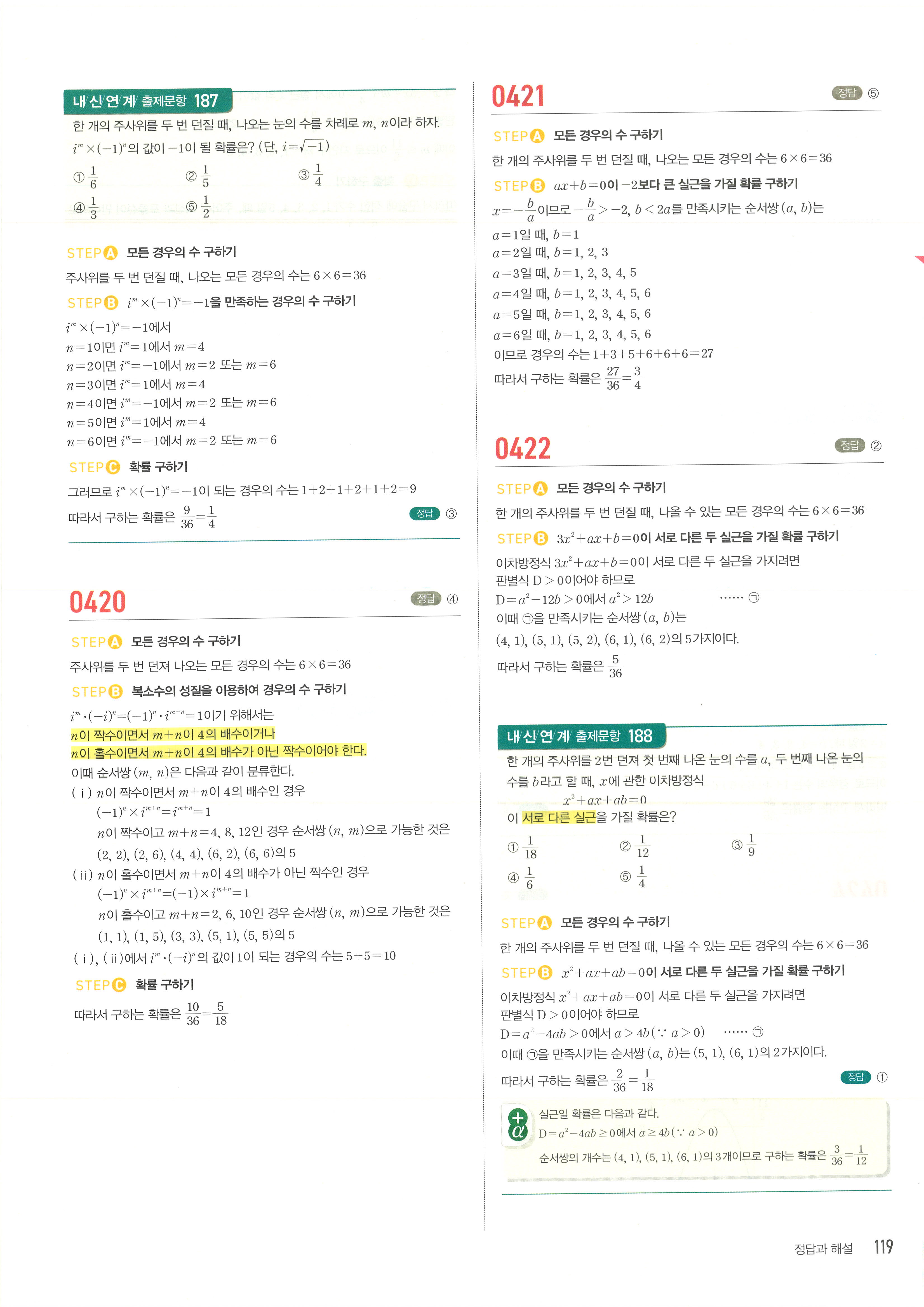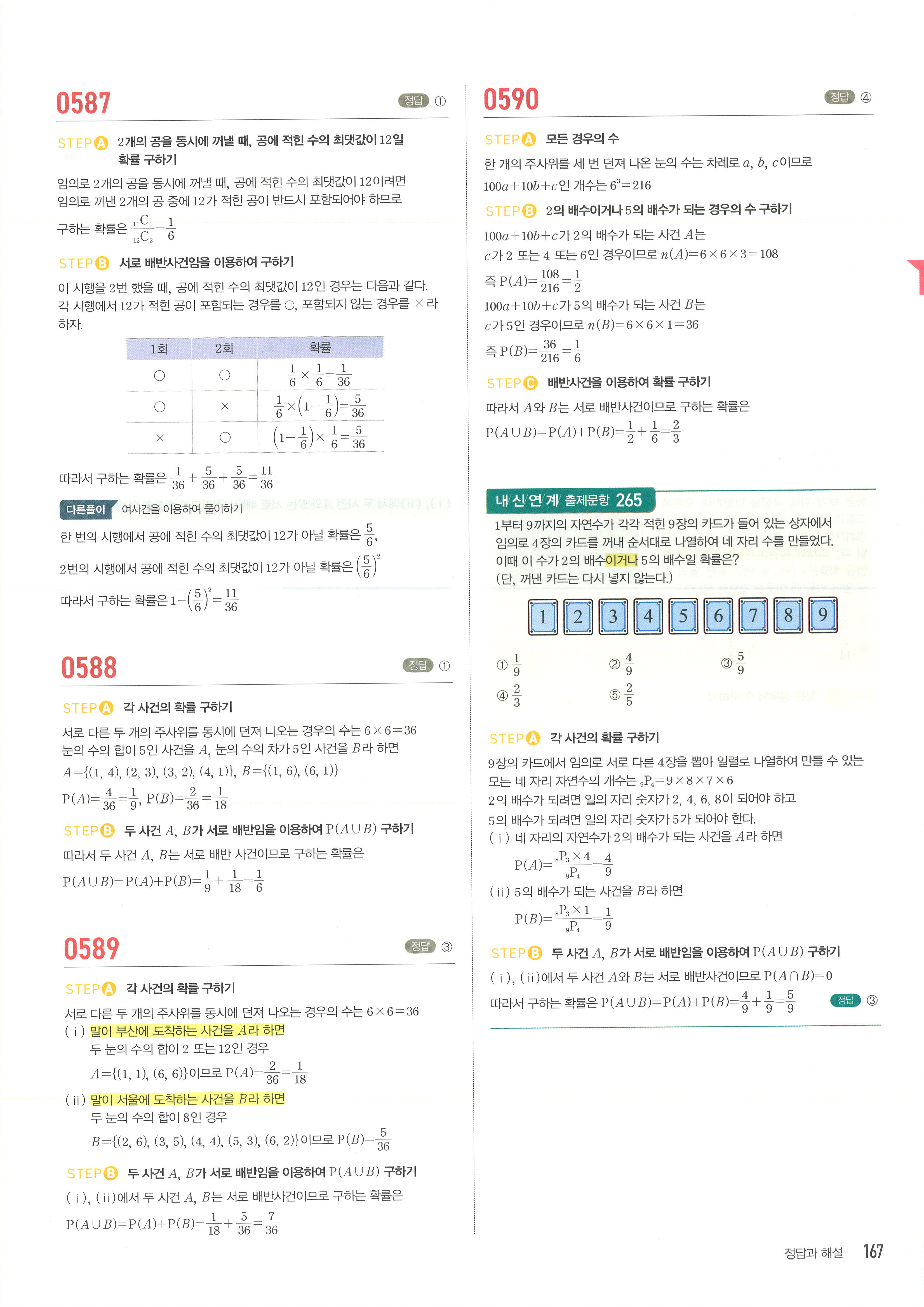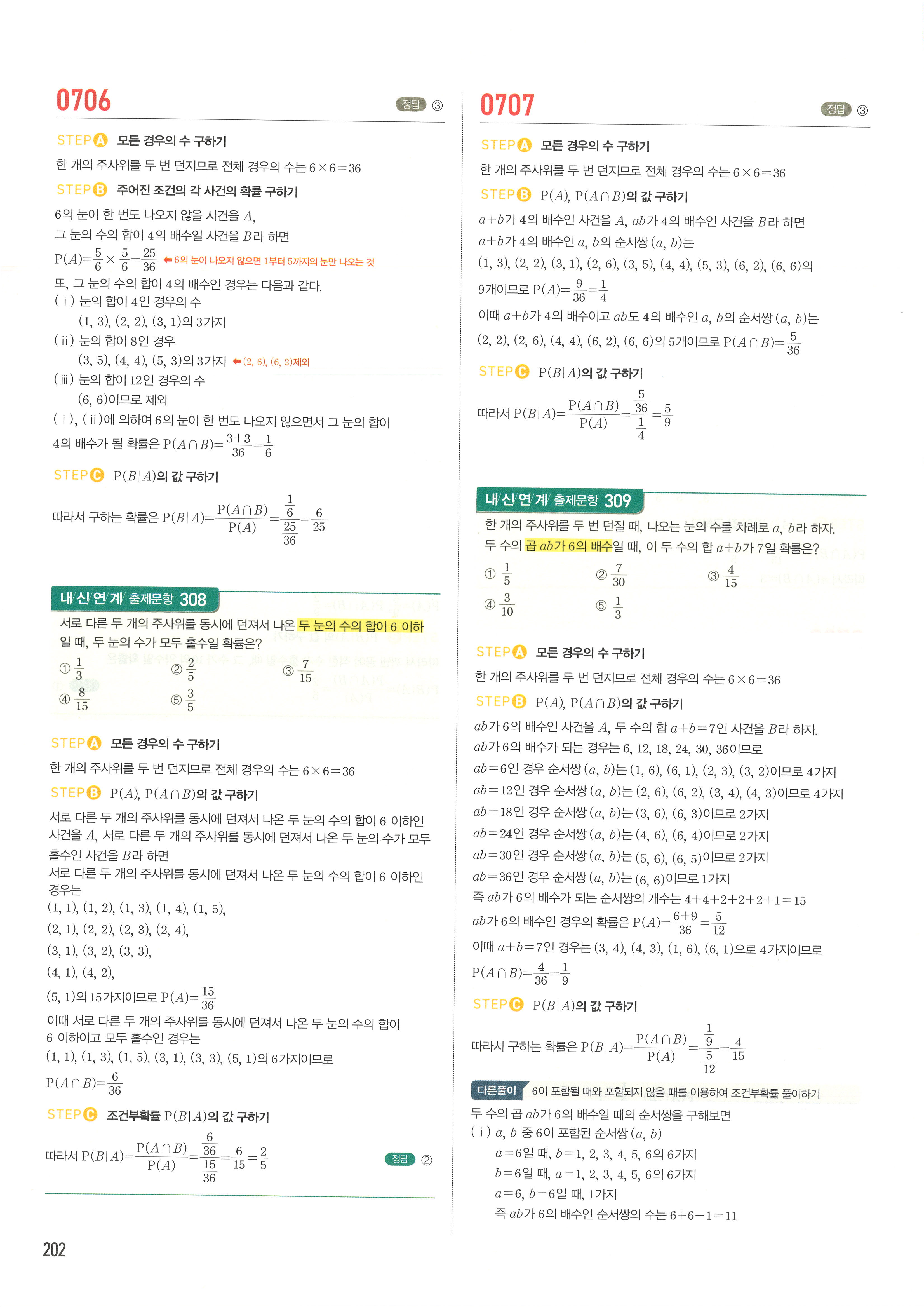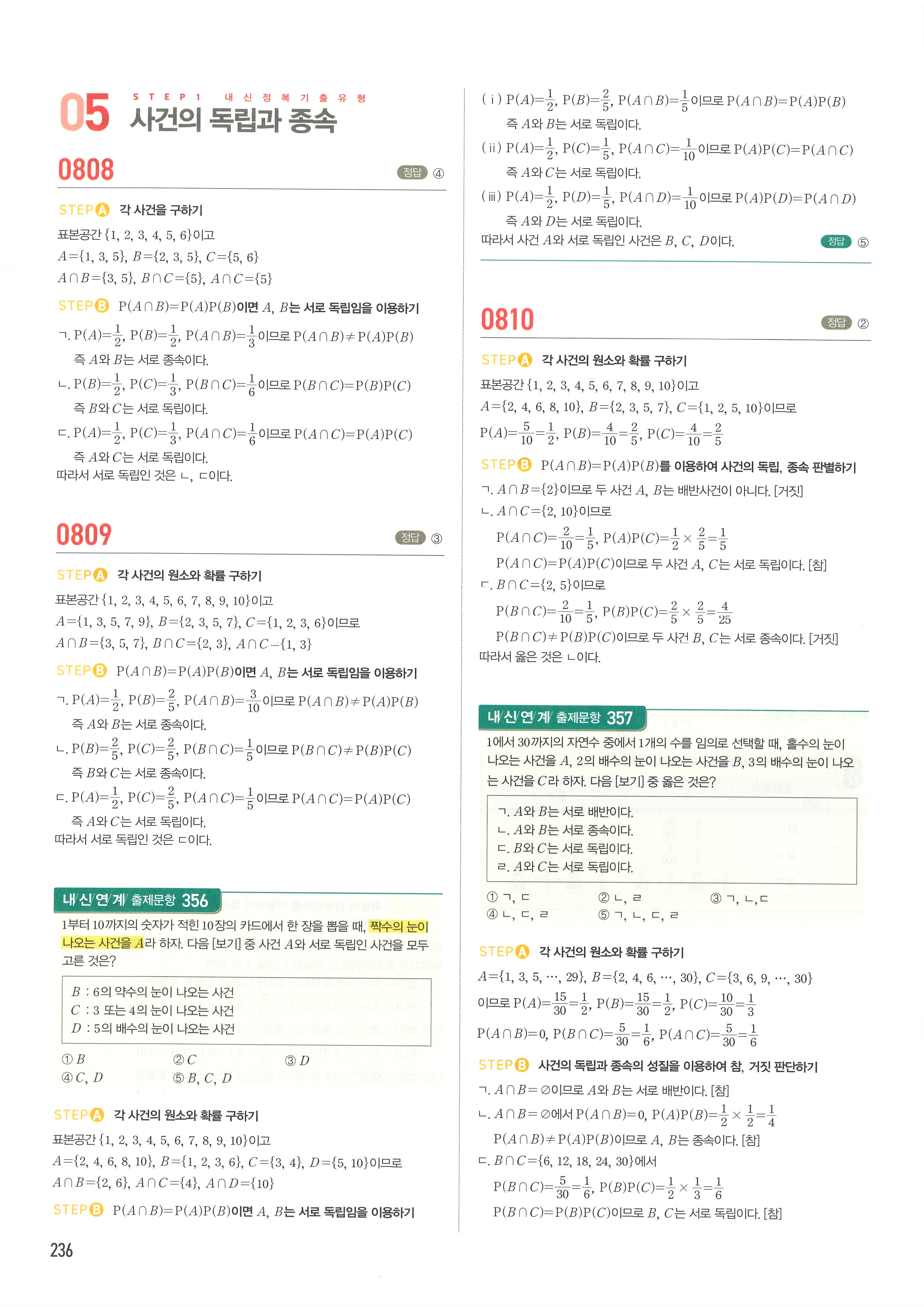 답지의 풀이 과정을 보며 확률과 통계의 중요한 개념을 다시 복습하세요. 개념을 명확히 이해하면 시험에서 비슷한 유형의 문제도 쉽게 해결할 수 있습니다.