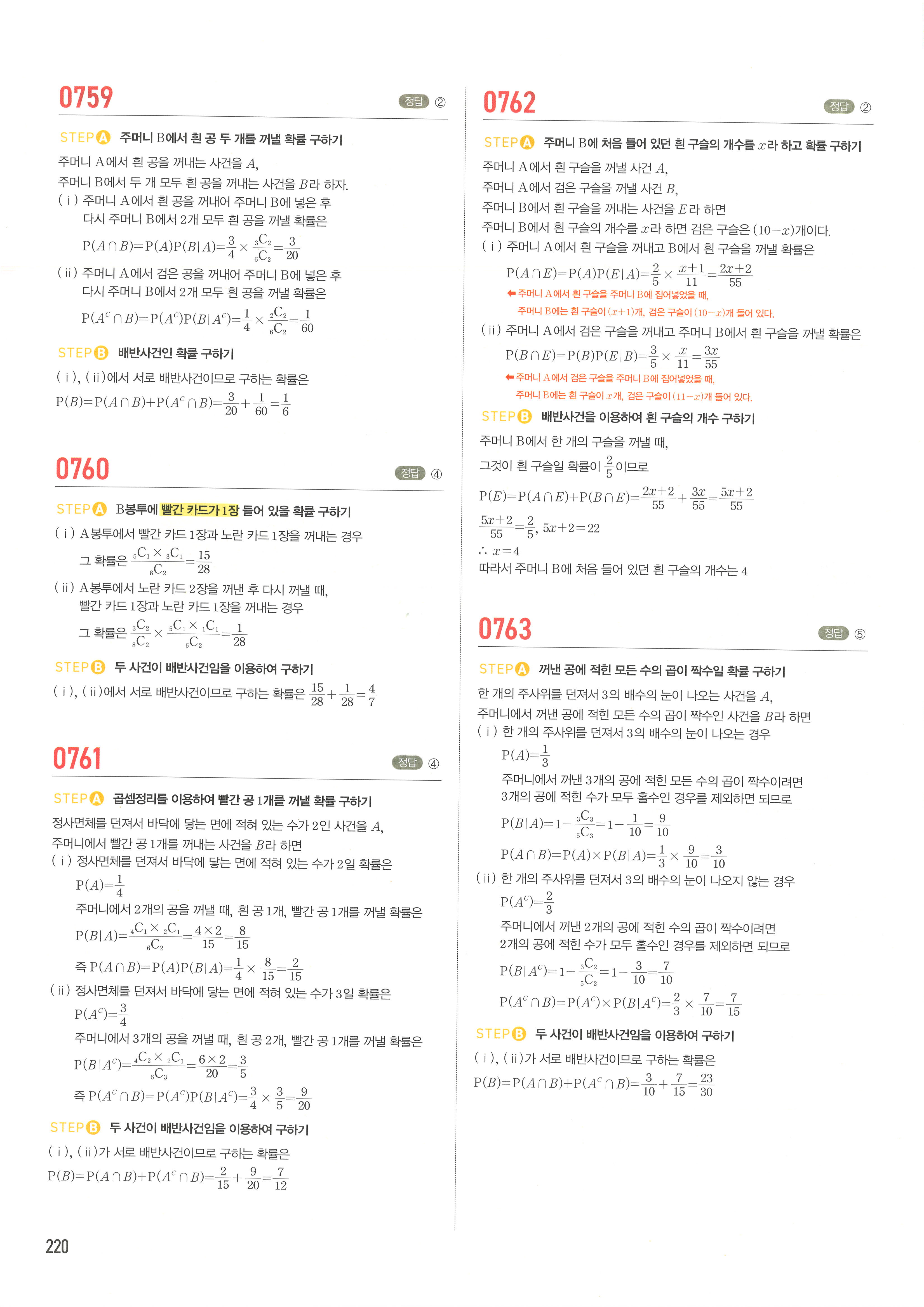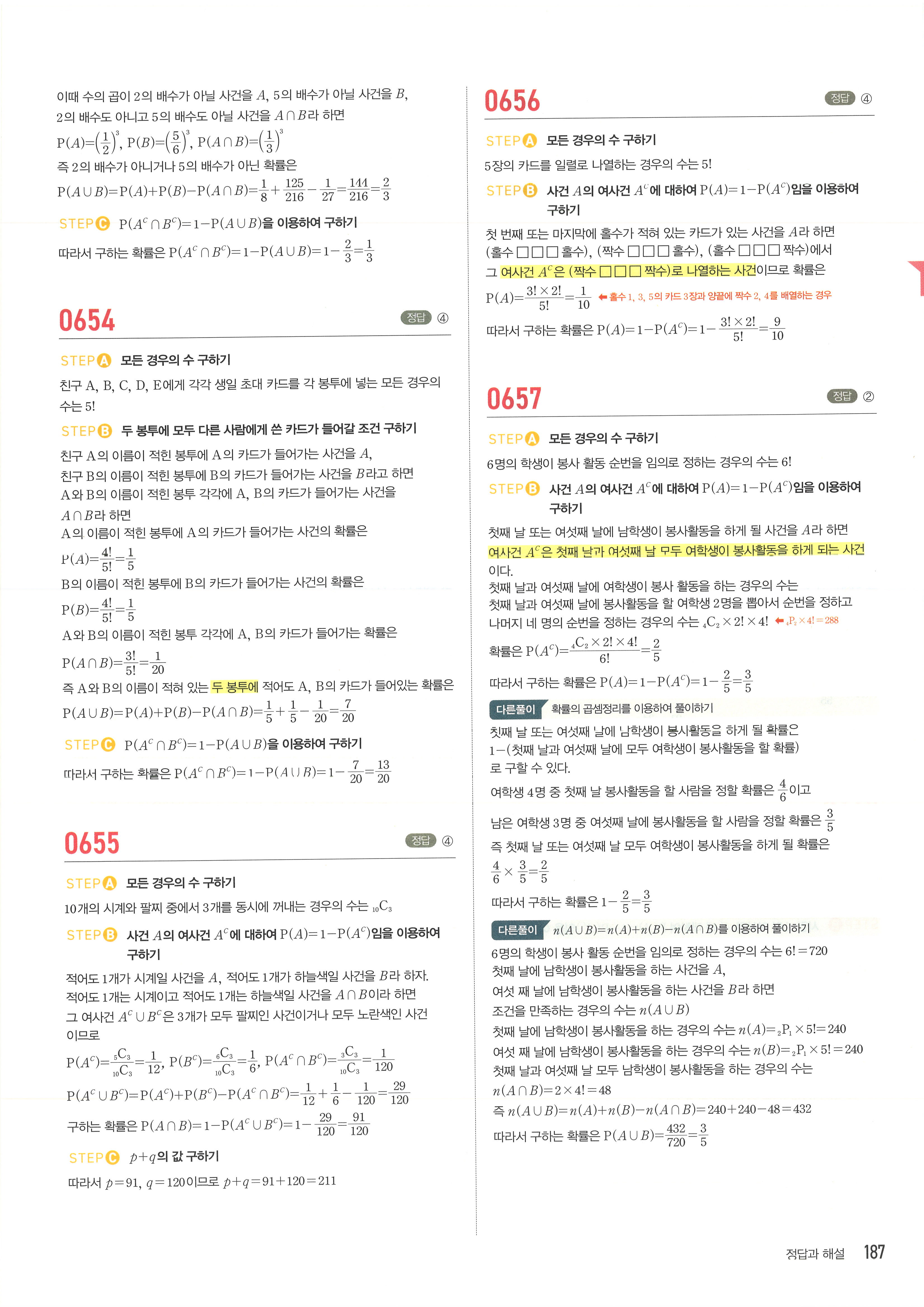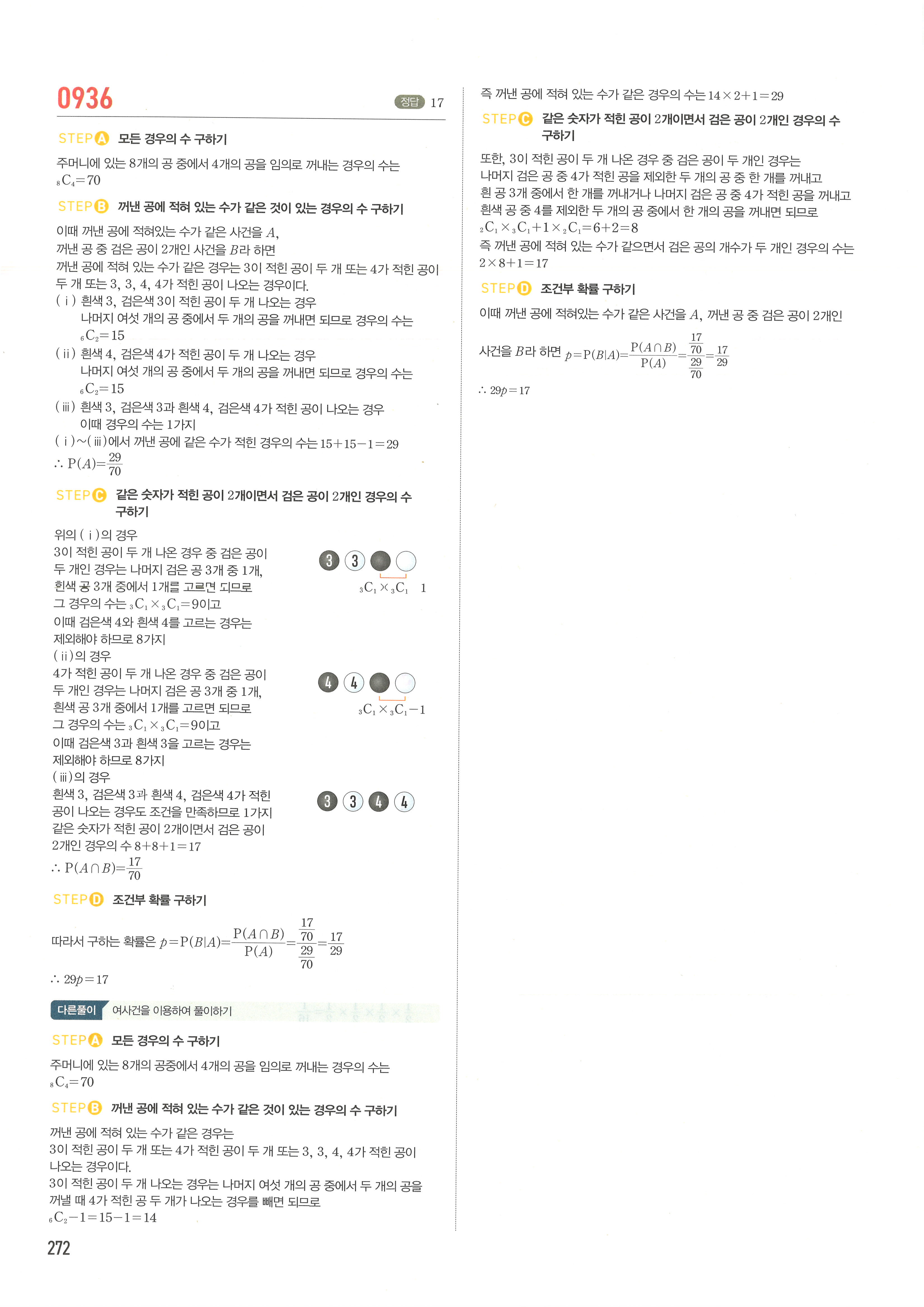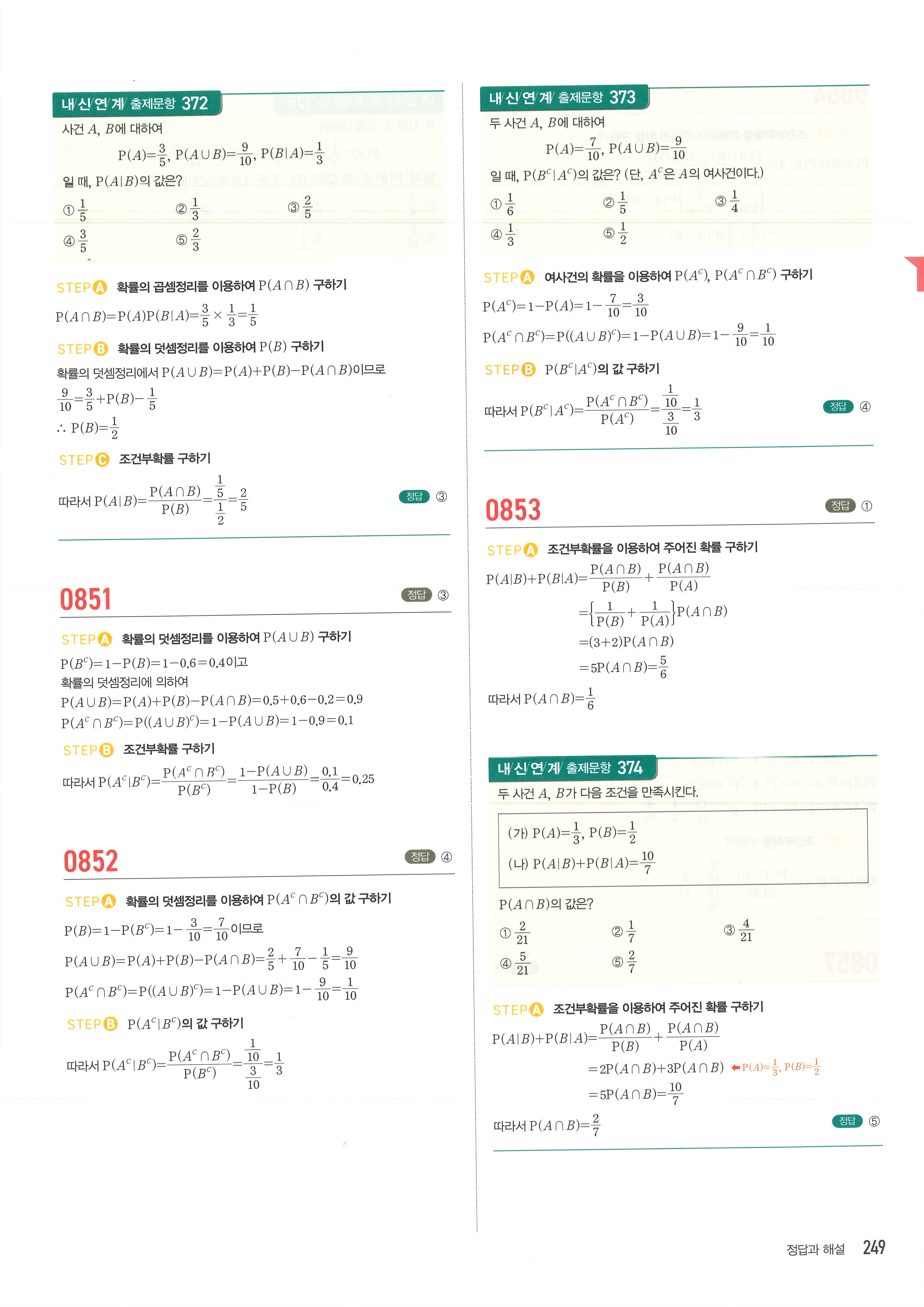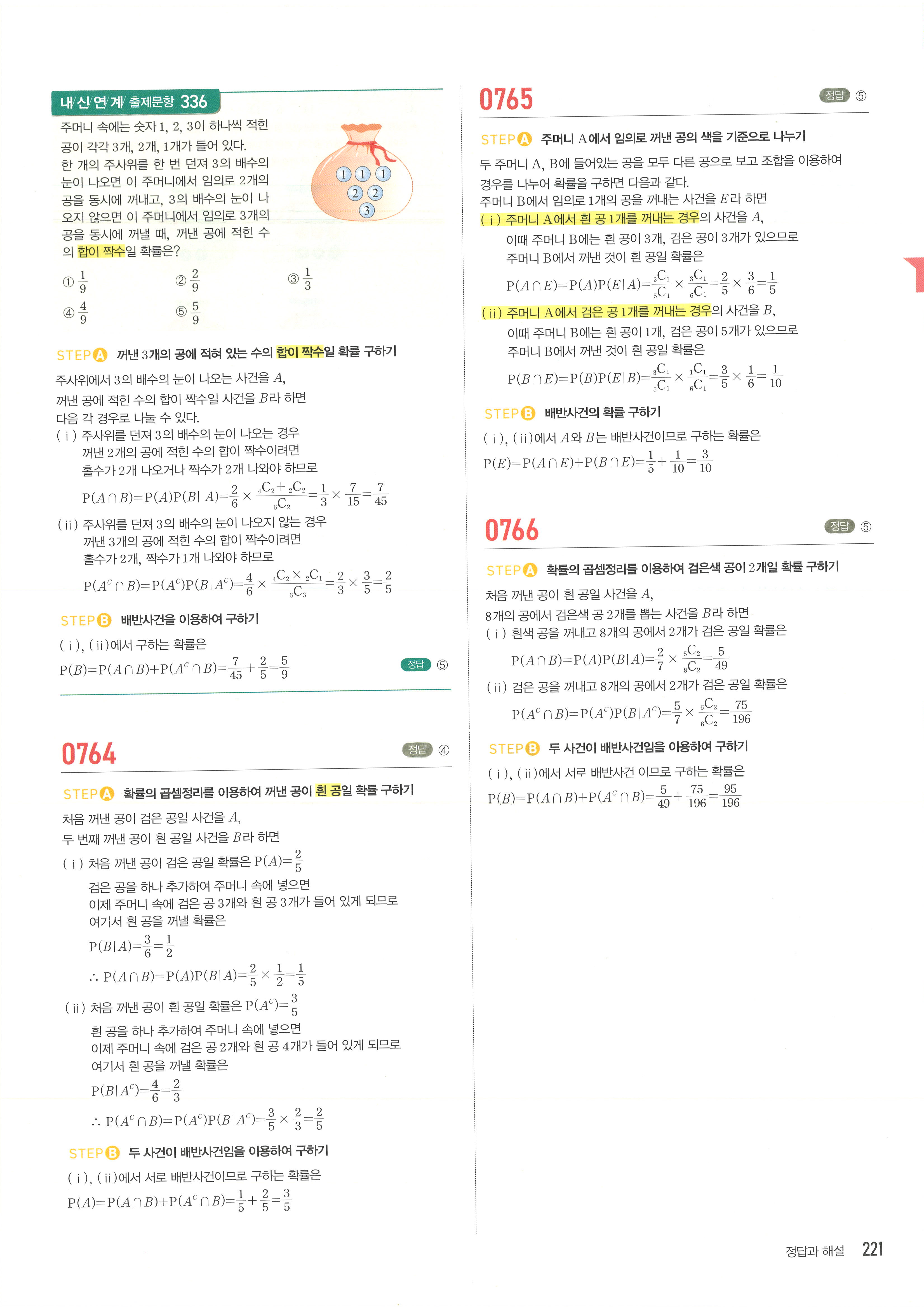 답지의 풀이 과정을 보며 확률과 통계의 중요한 개념을 다시 복습하세요. 개념을 명확히 이해하면 시험에서 비슷한 유형의 문제도 쉽게 해결할 수 있습니다.