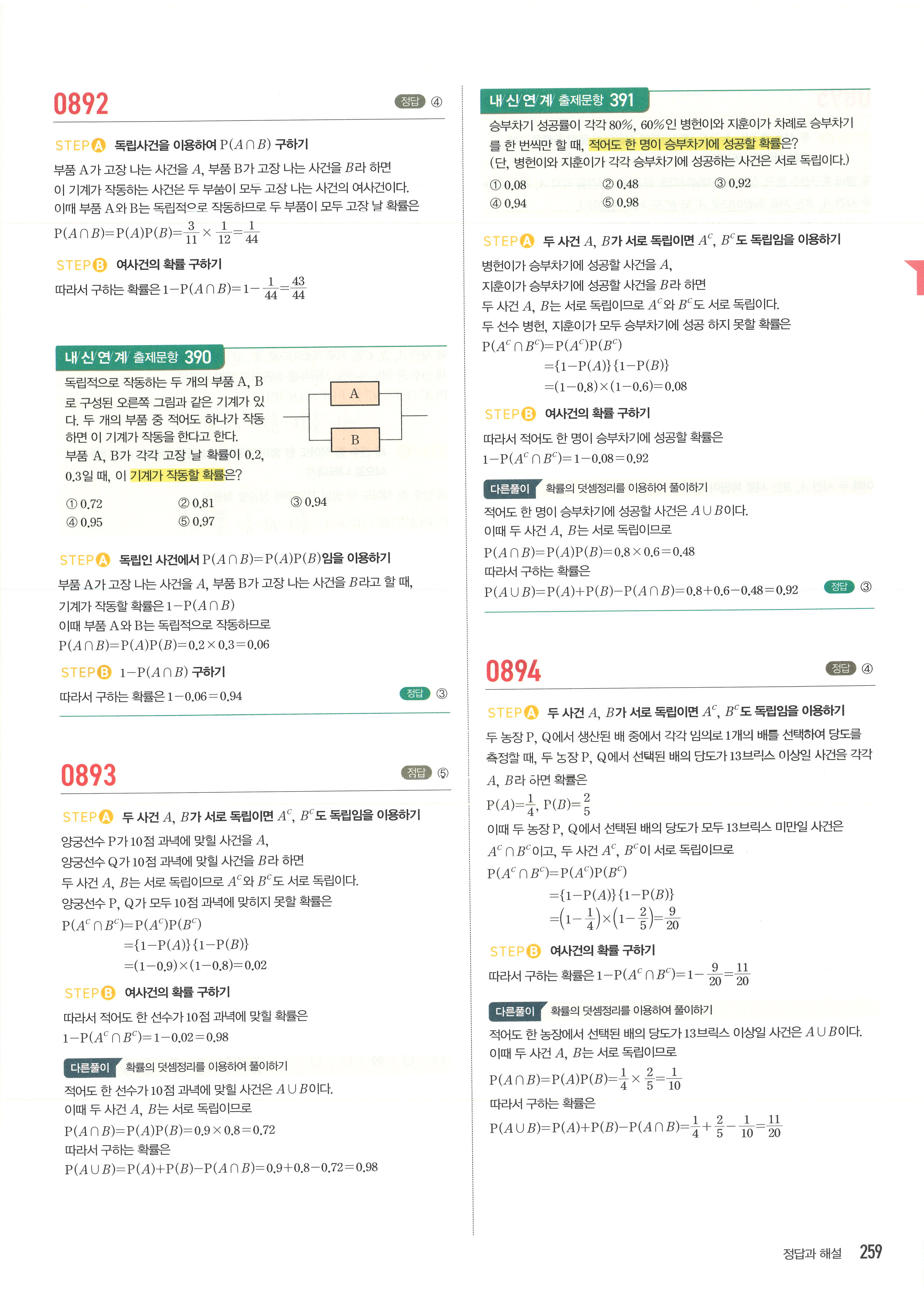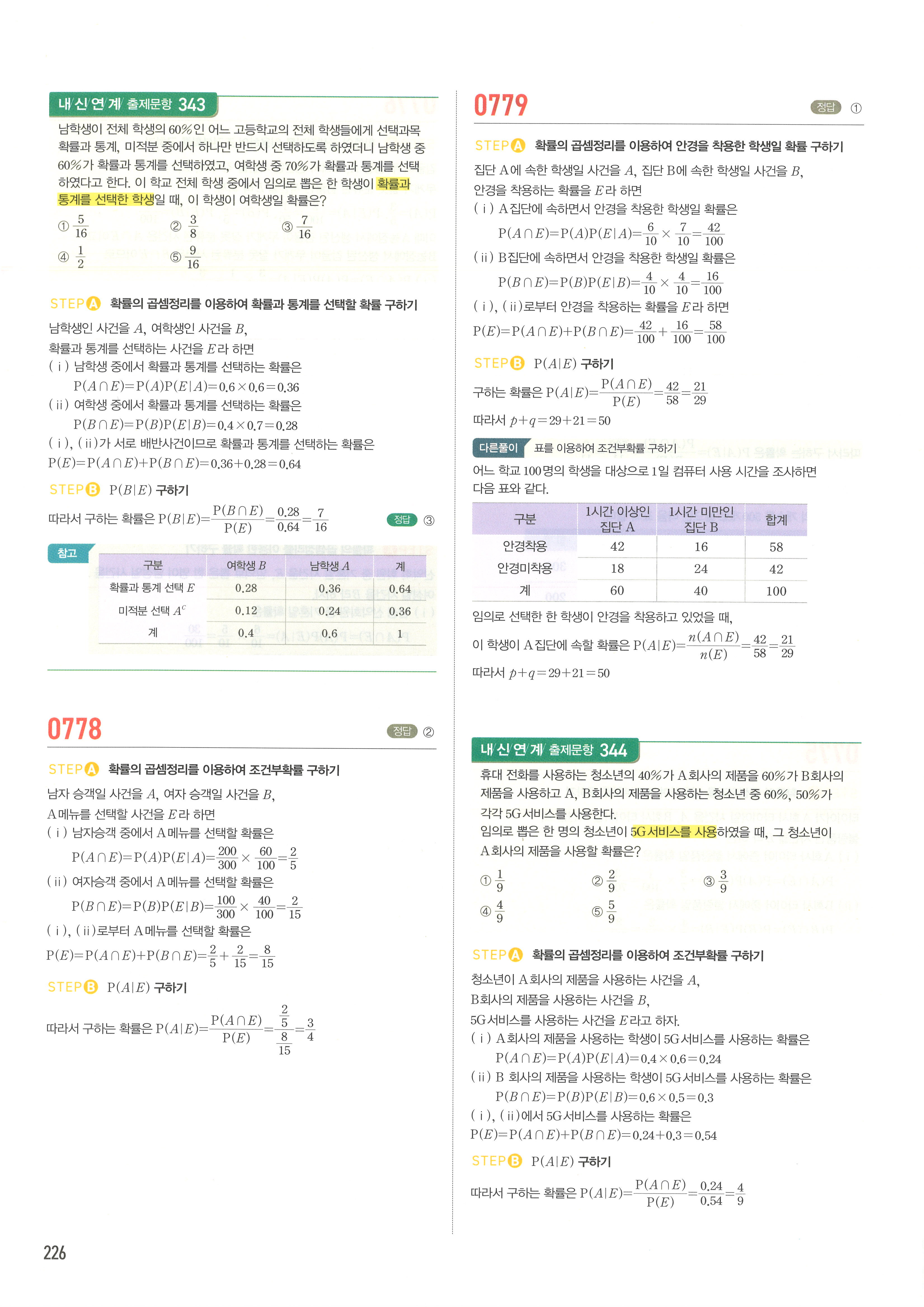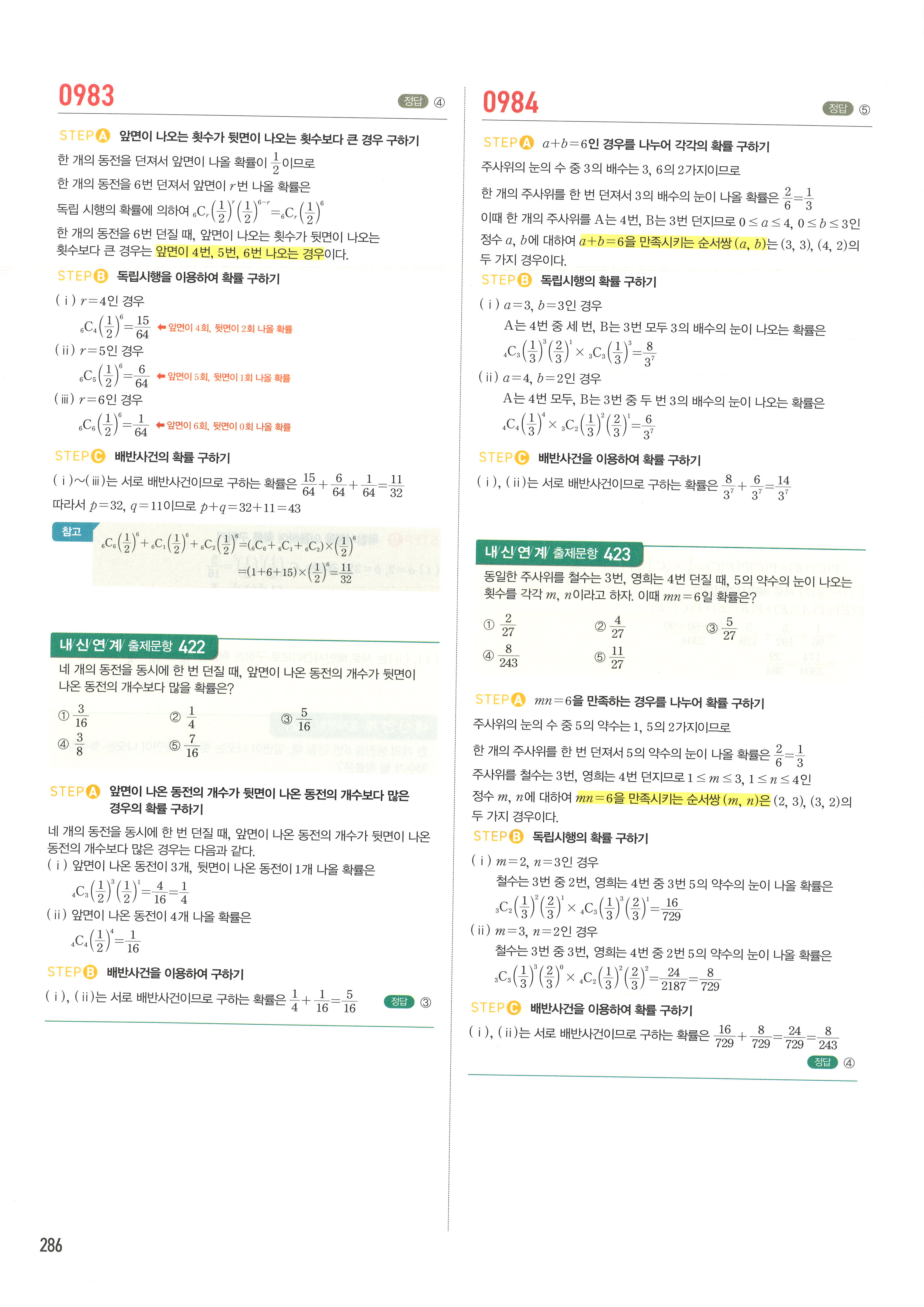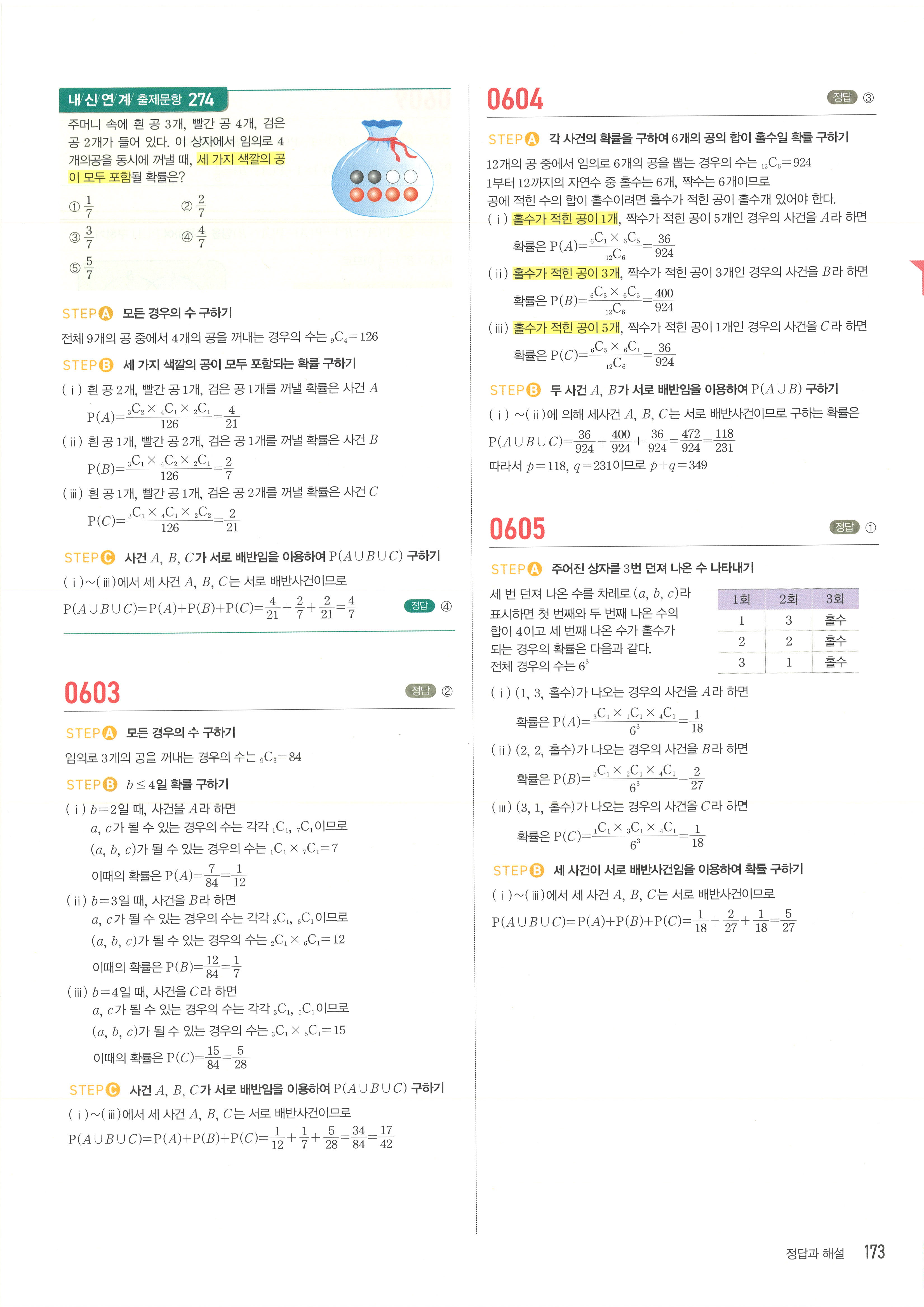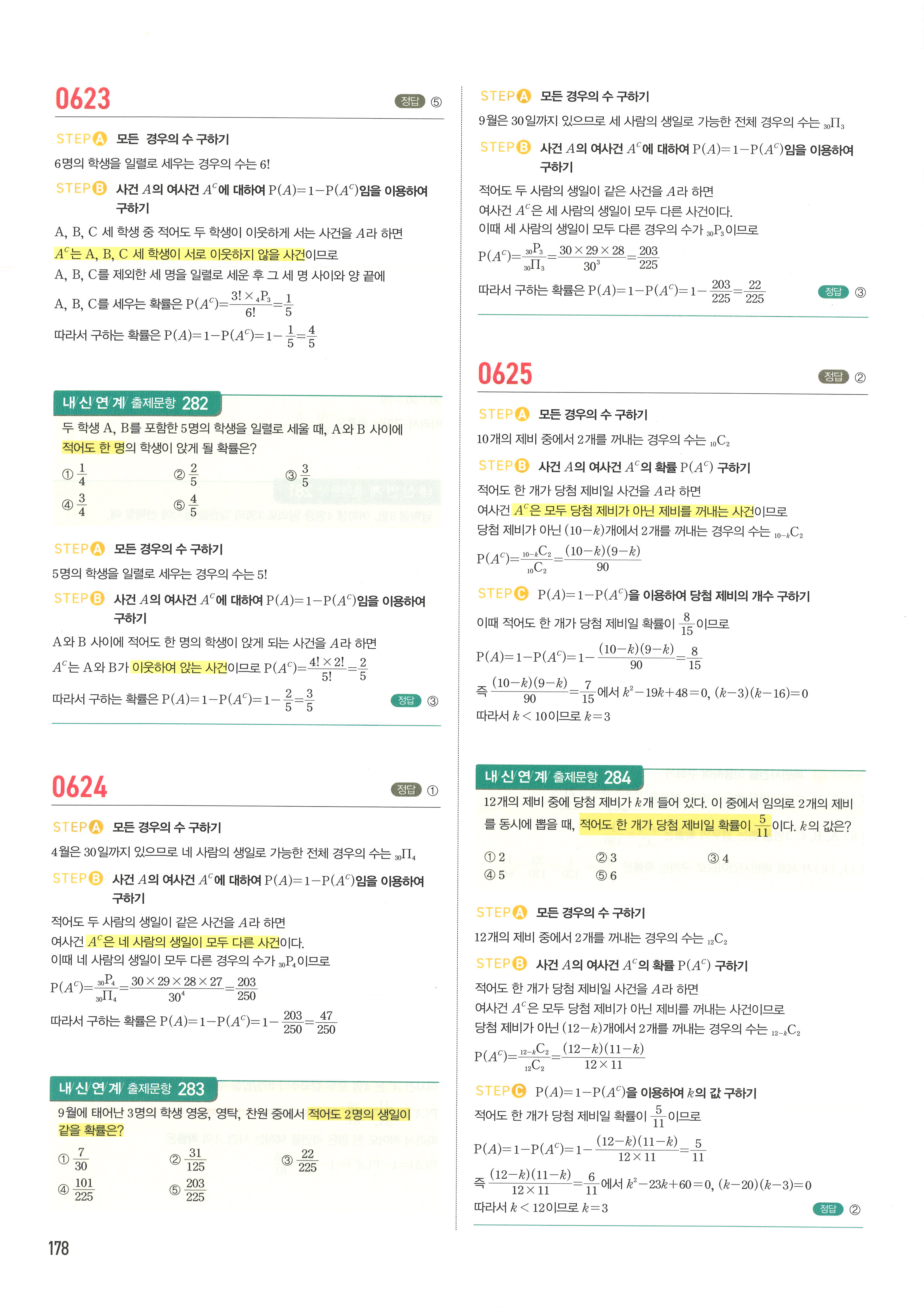 답지의 풀이 과정을 보며 확률과 통계의 중요한 개념을 다시 복습하세요. 개념을 명확히 이해하면 시험에서 비슷한 유형의 문제도 쉽게 해결할 수 있습니다.