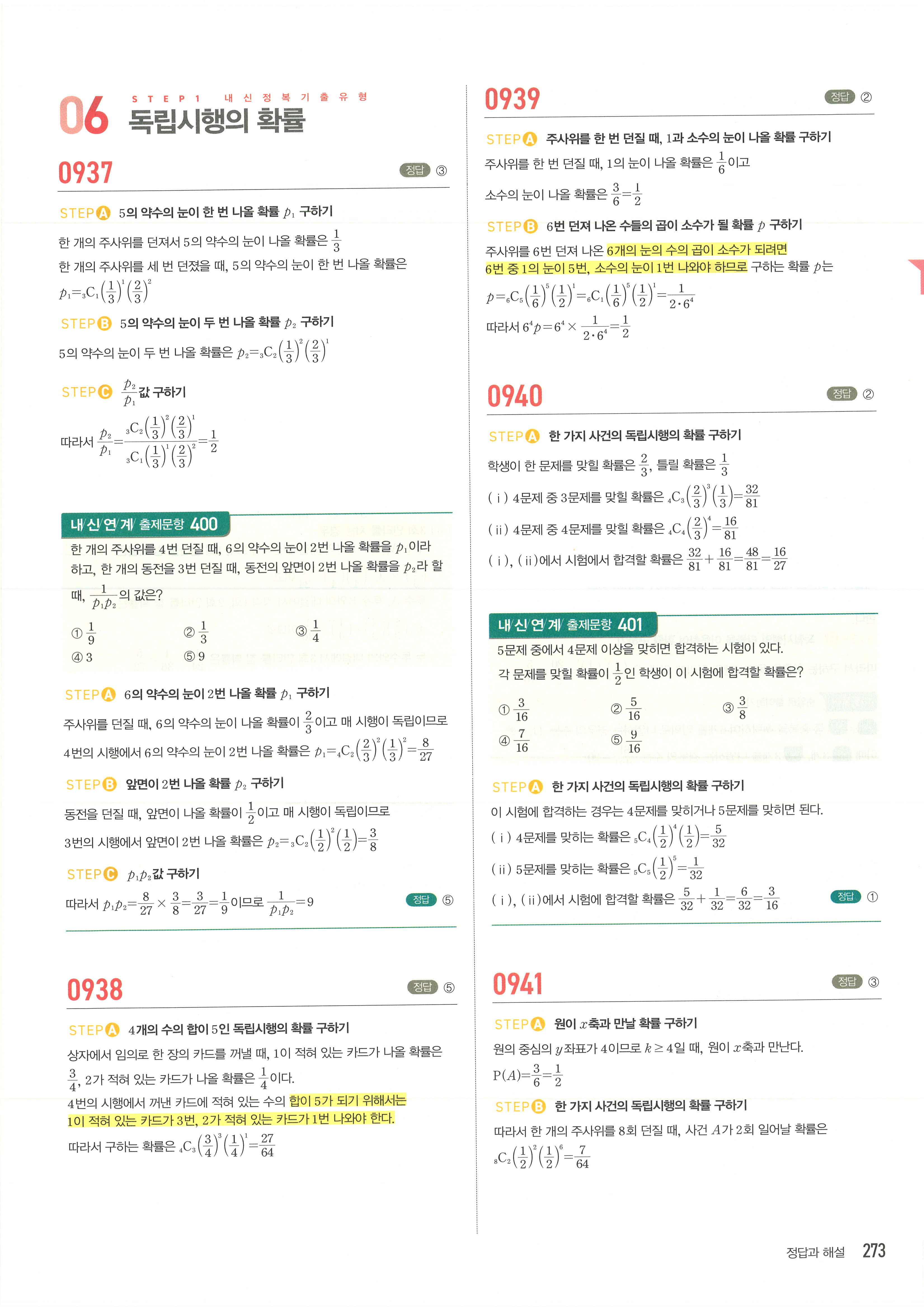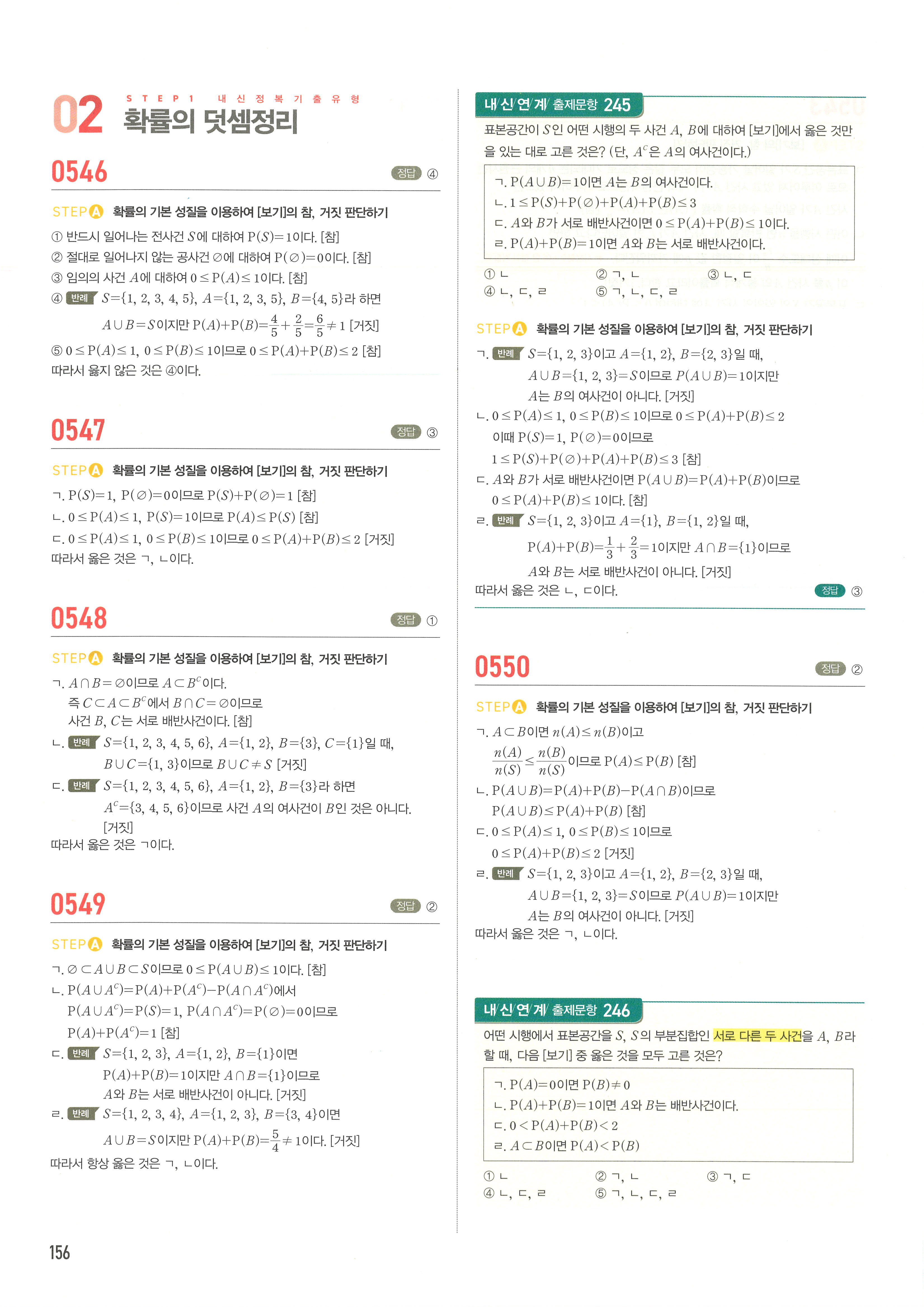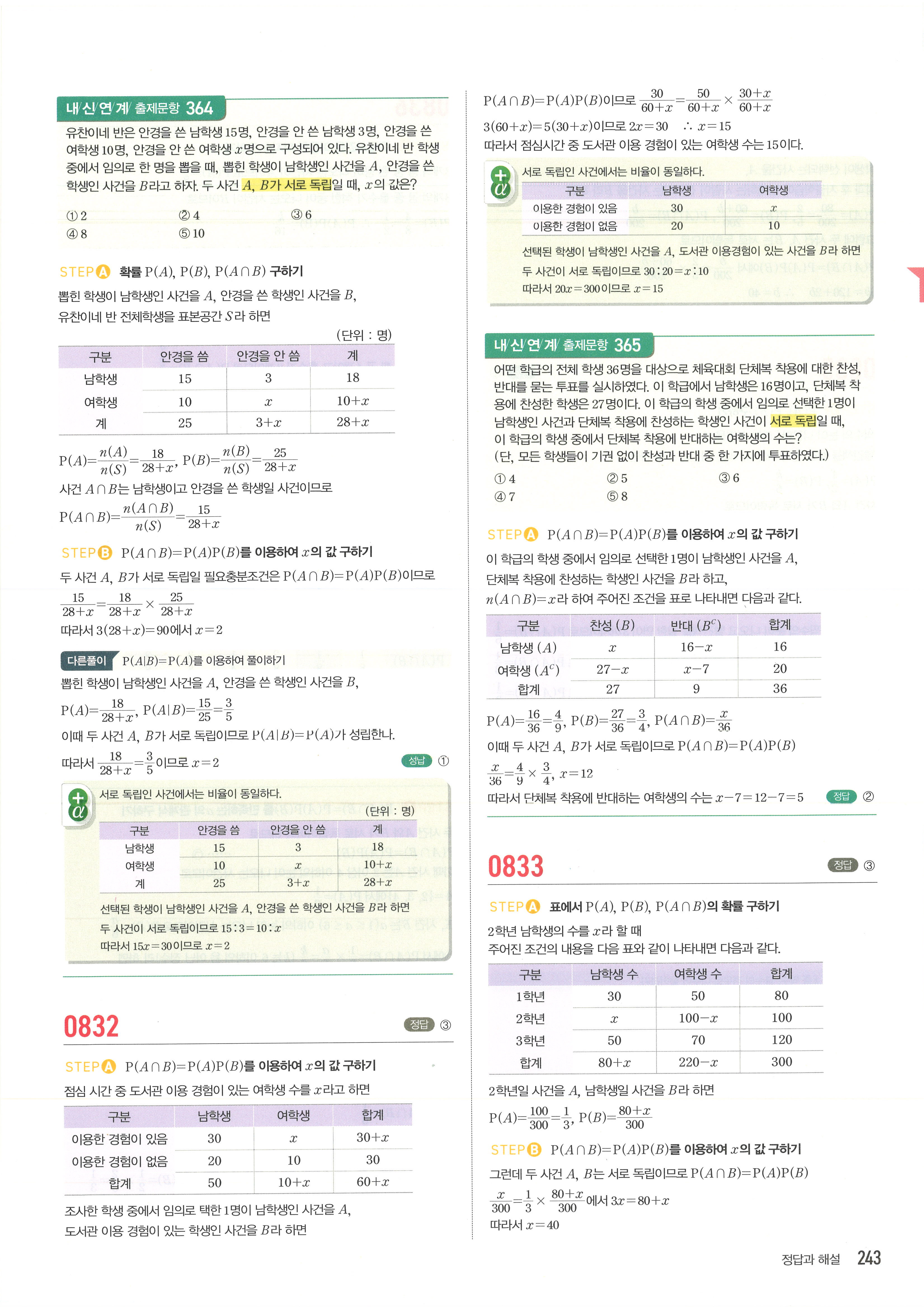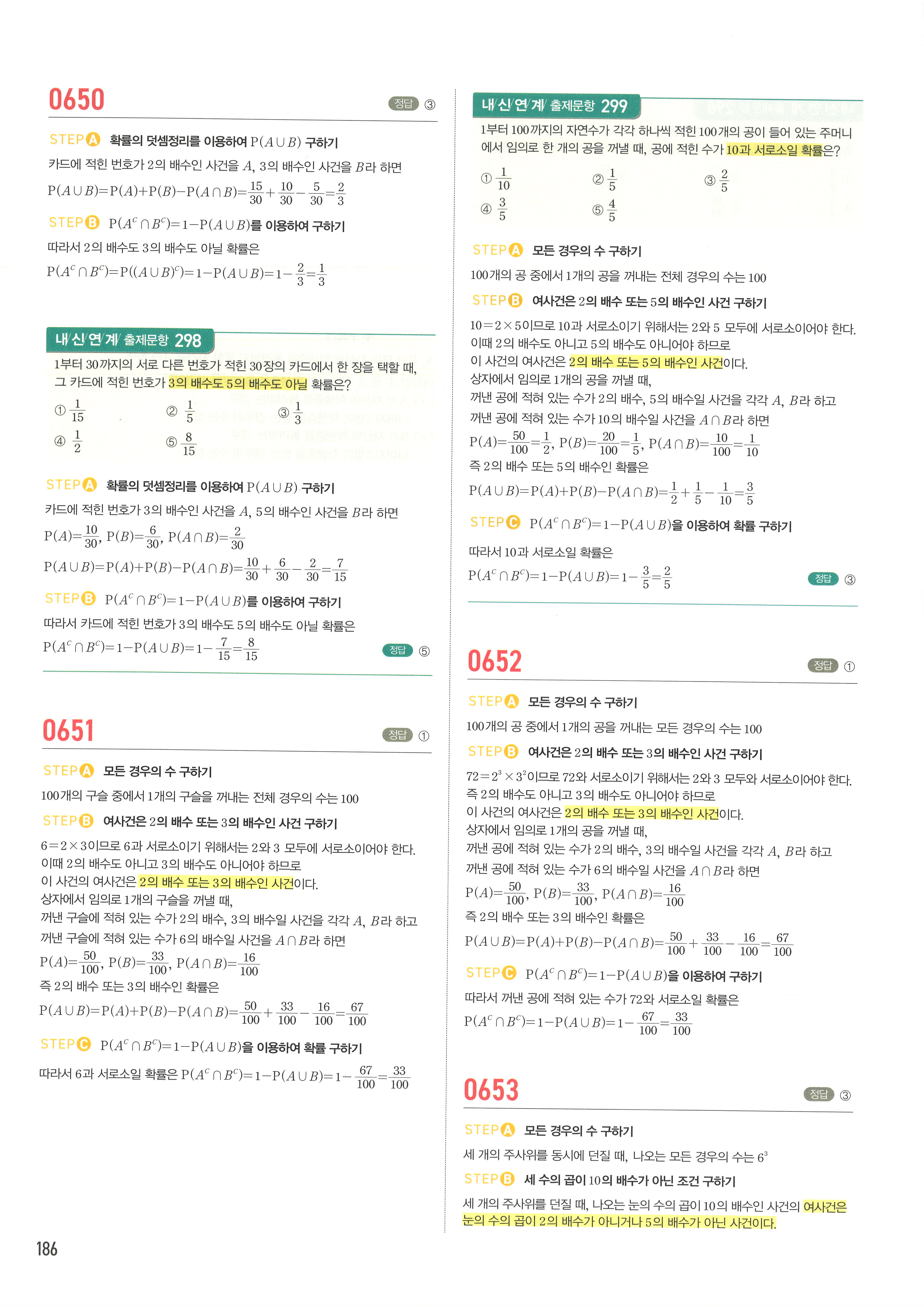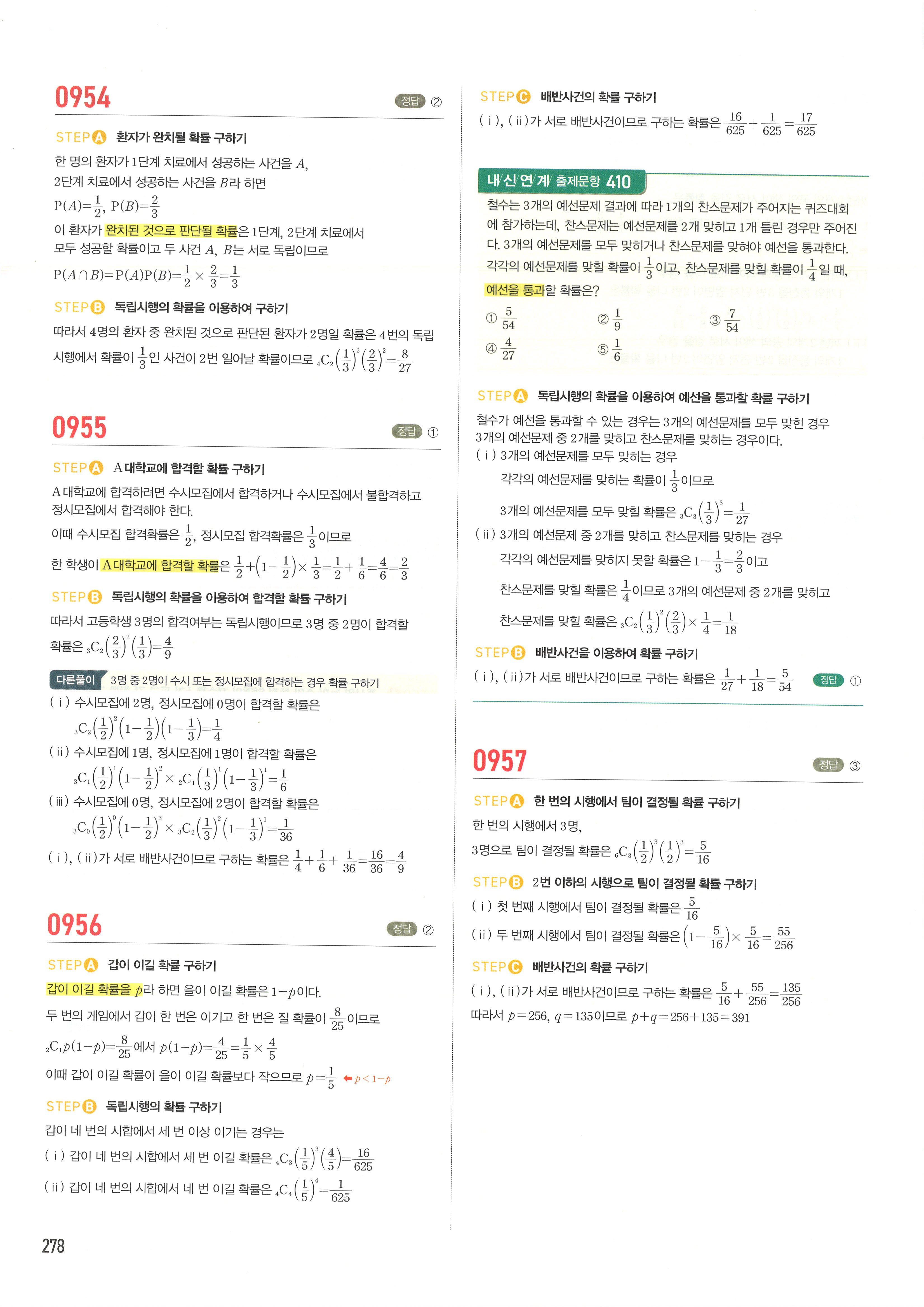 답지의 풀이 과정을 보며 확률과 통계의 중요한 개념을 다시 복습하세요. 개념을 명확히 이해하면 시험에서 비슷한 유형의 문제도 쉽게 해결할 수 있습니다.