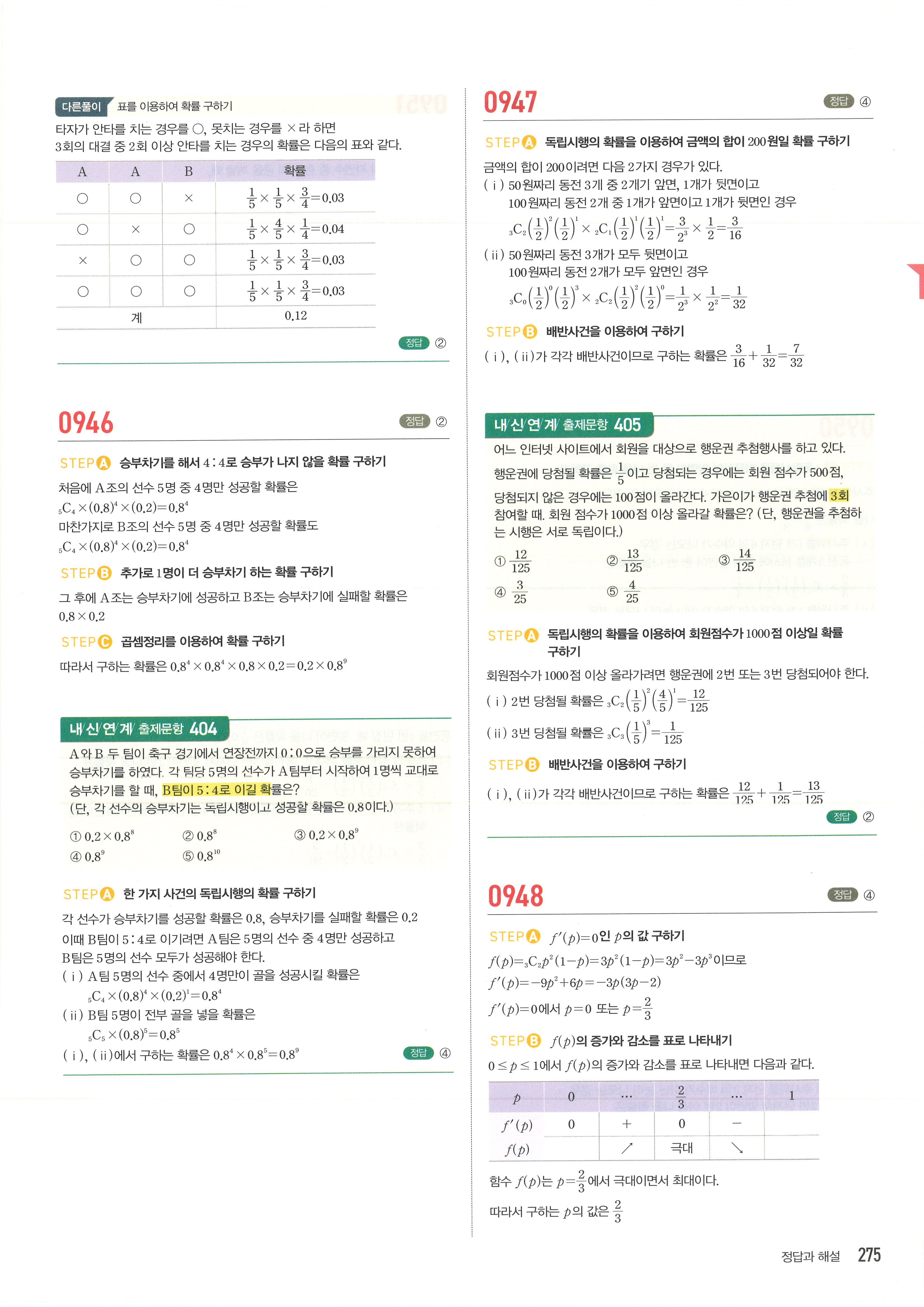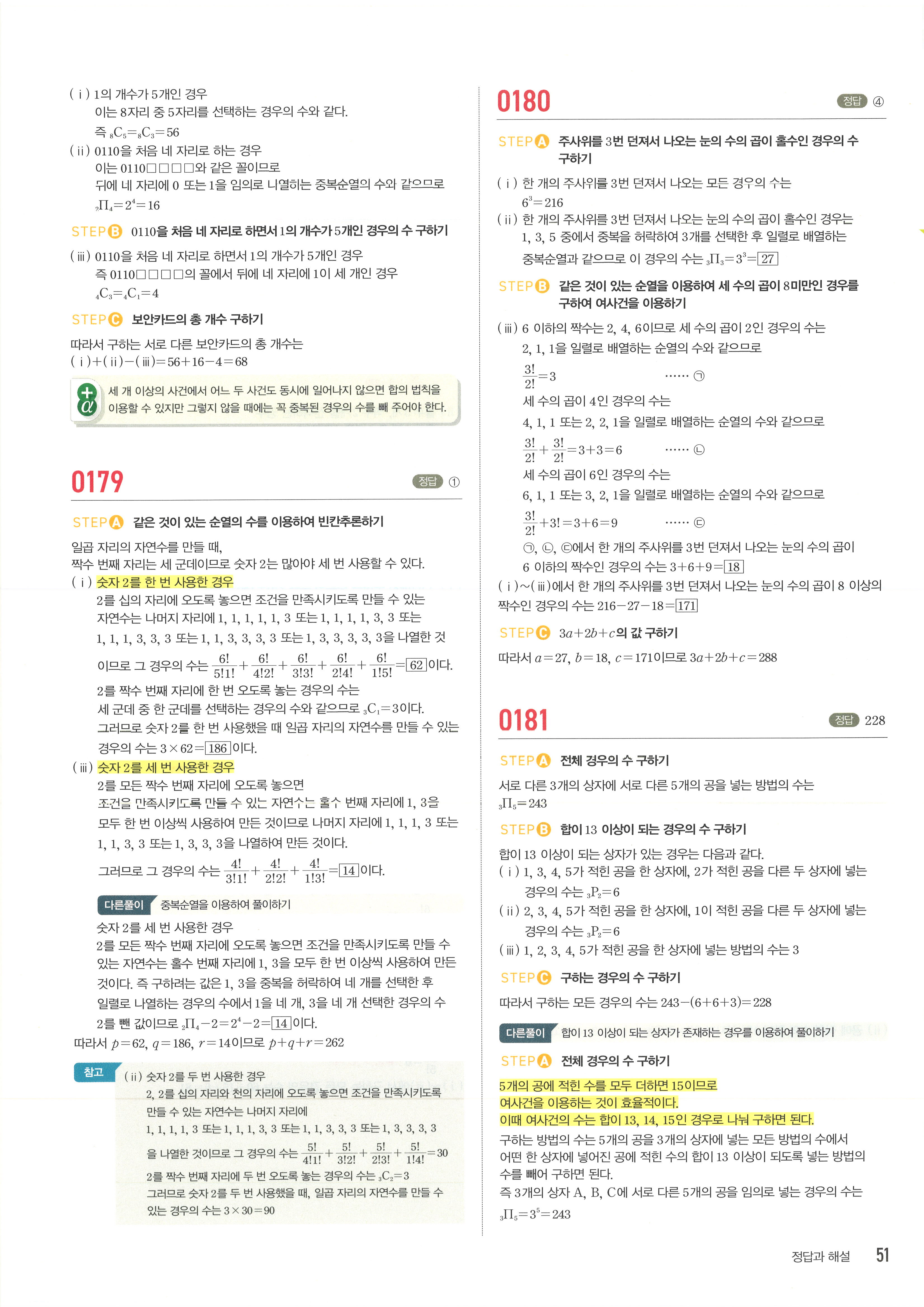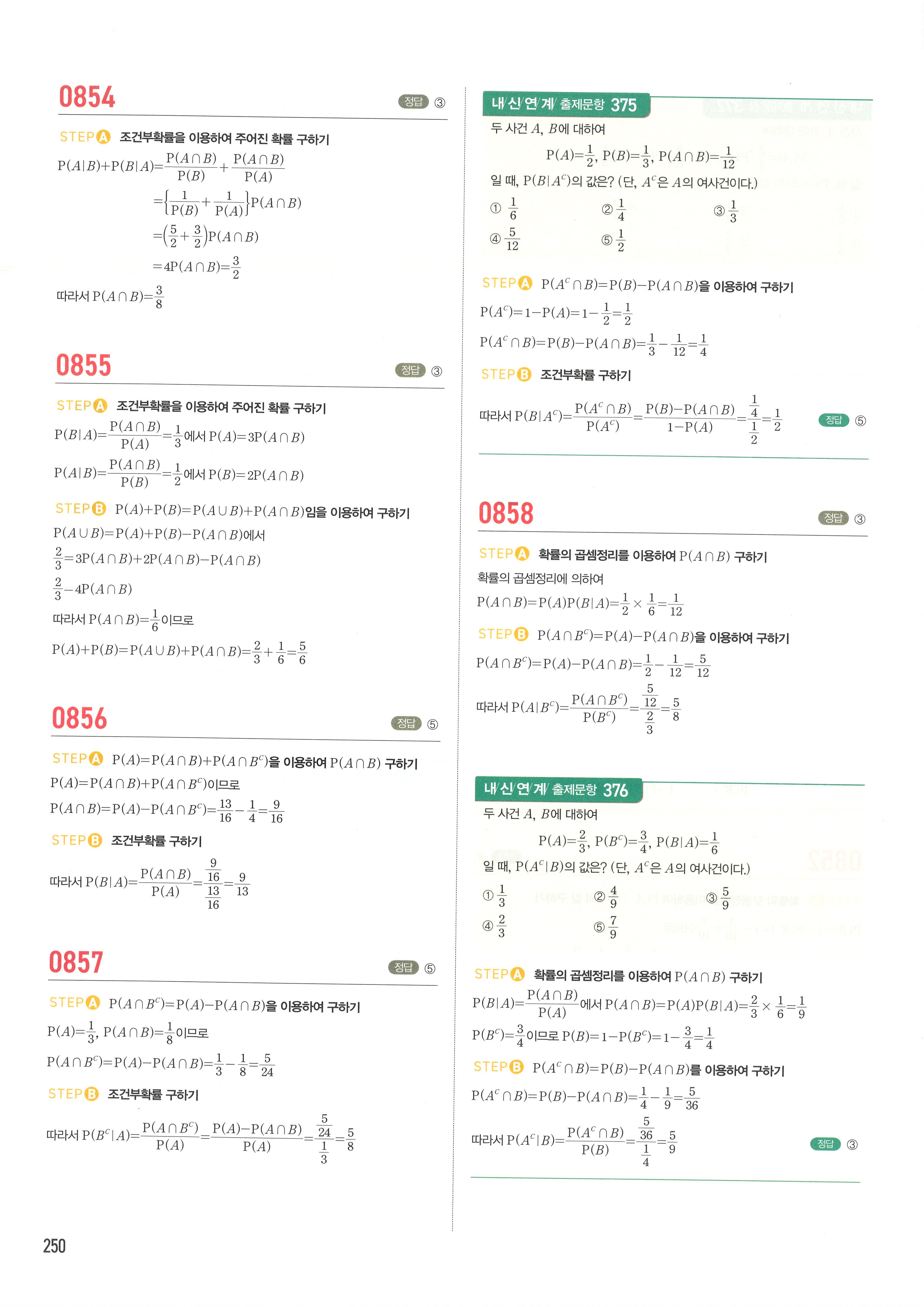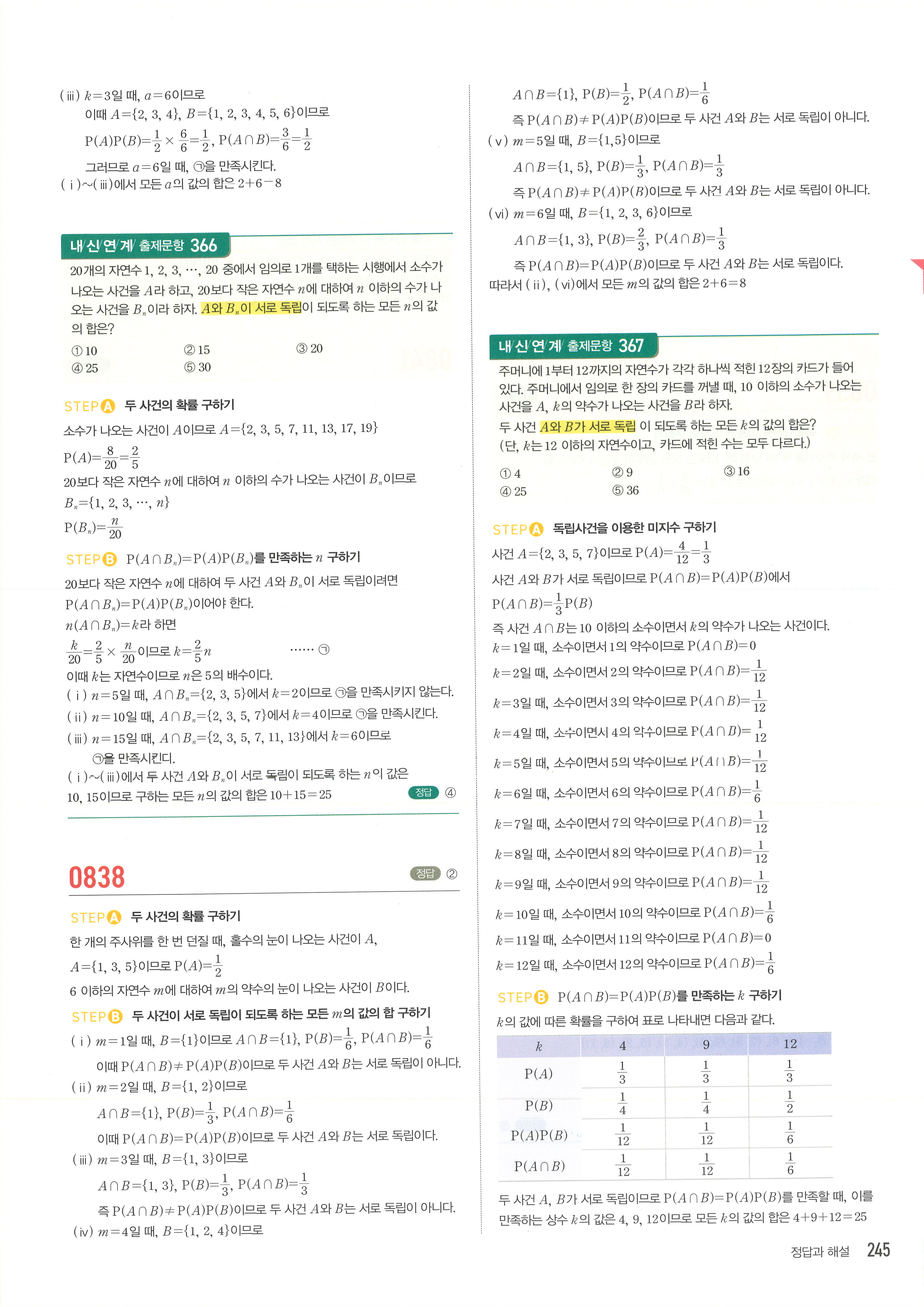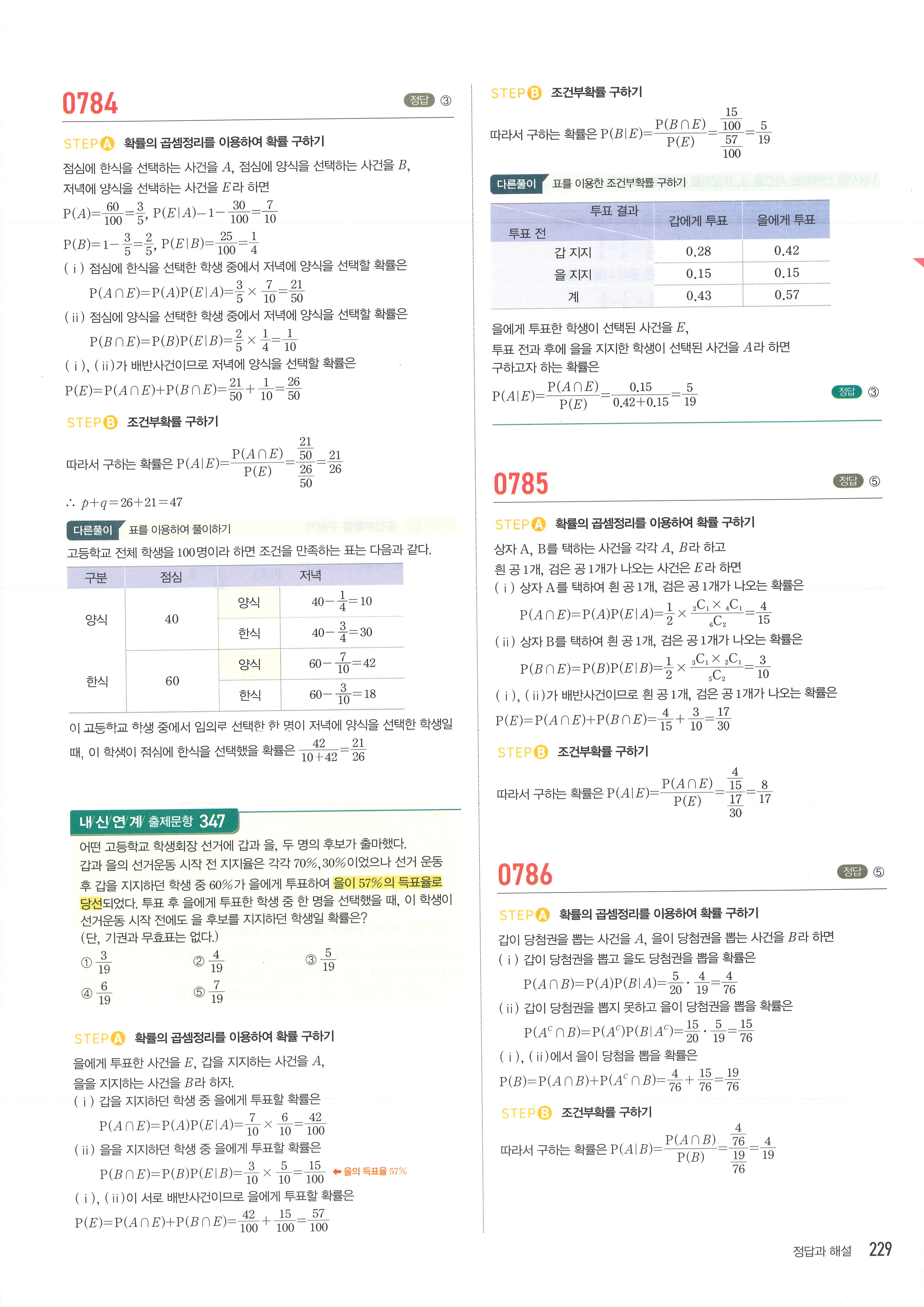 답지의 풀이 과정을 보며 확률과 통계의 중요한 개념을 다시 복습하세요. 개념을 명확히 이해하면 시험에서 비슷한 유형의 문제도 쉽게 해결할 수 있습니다.