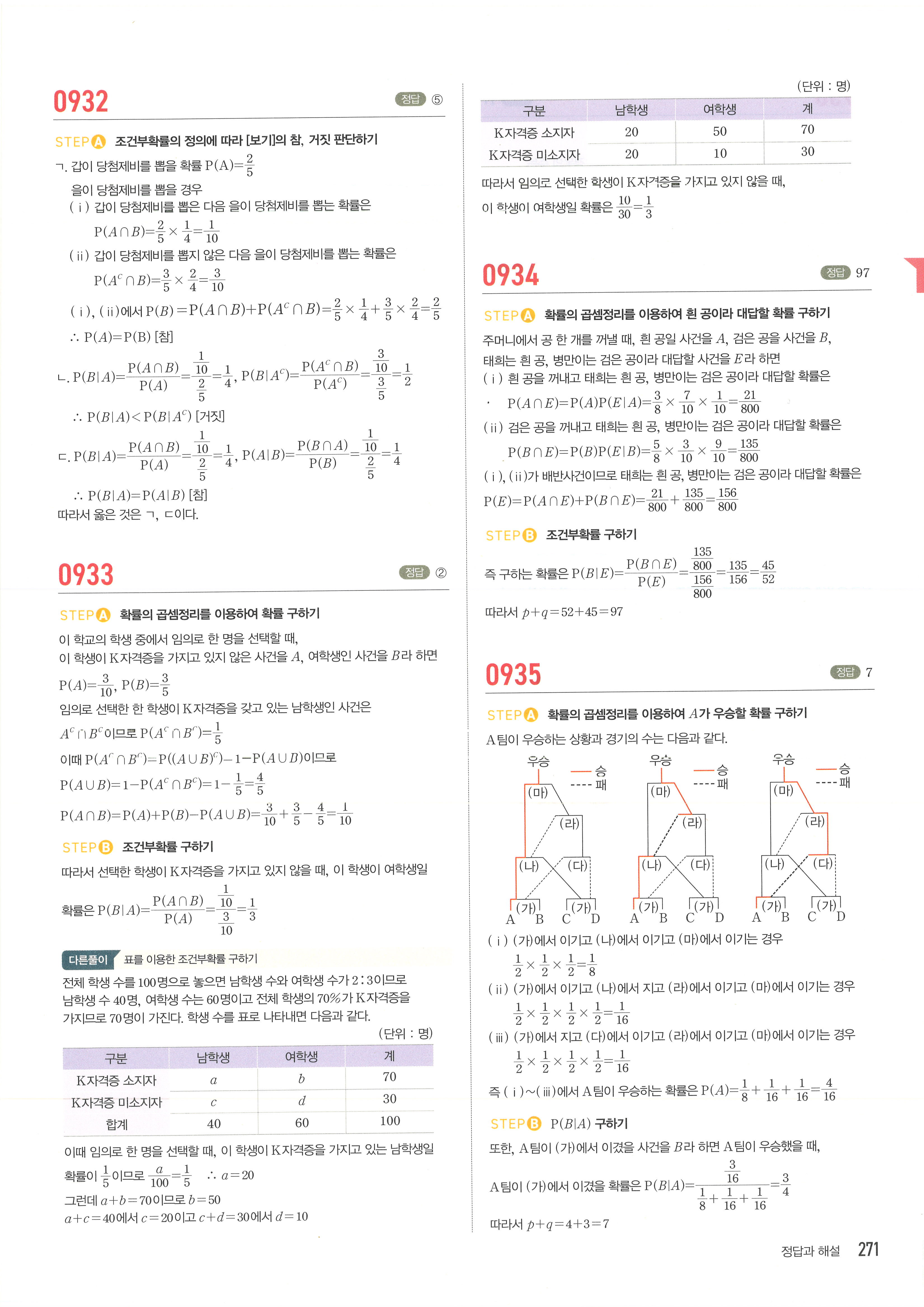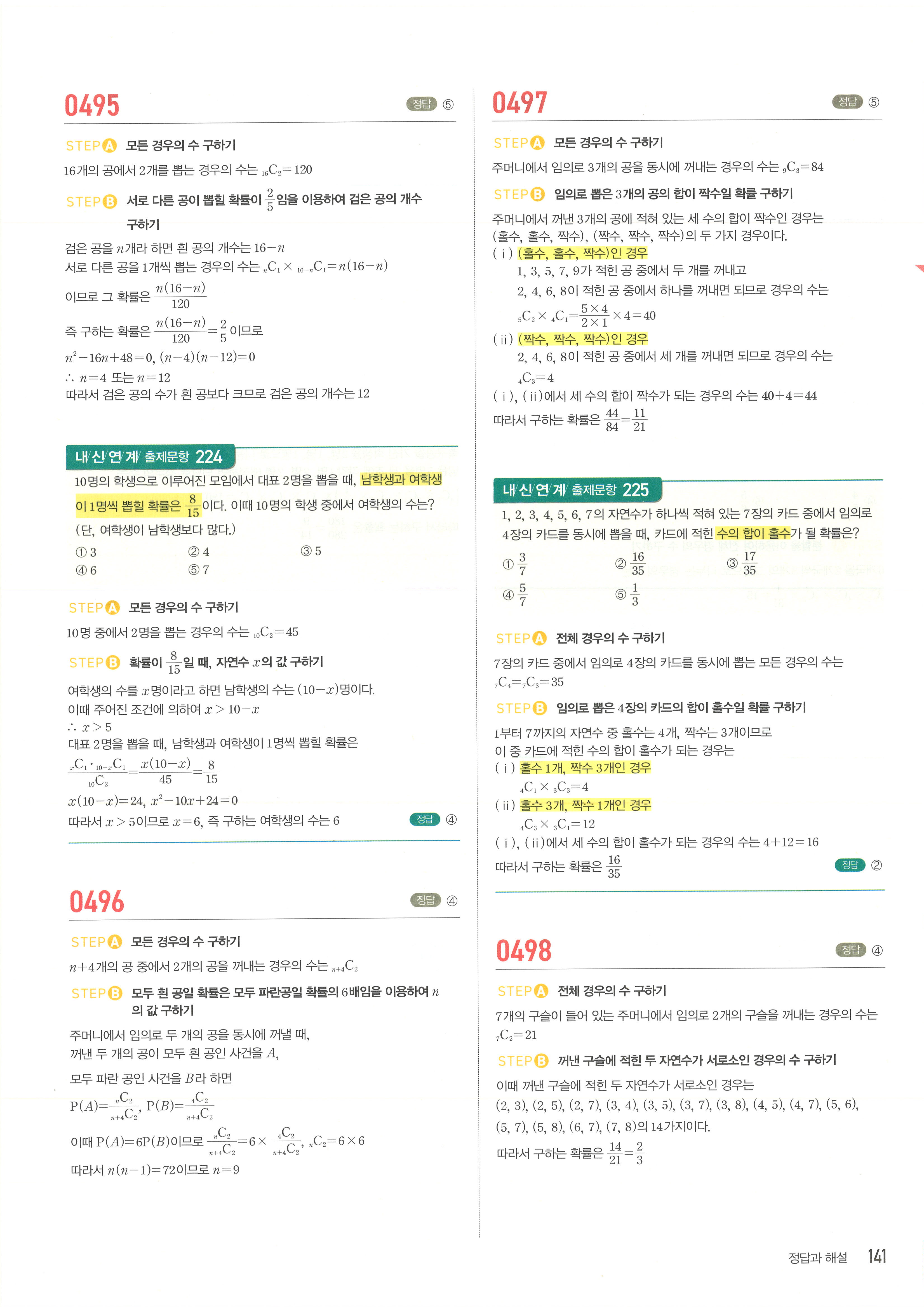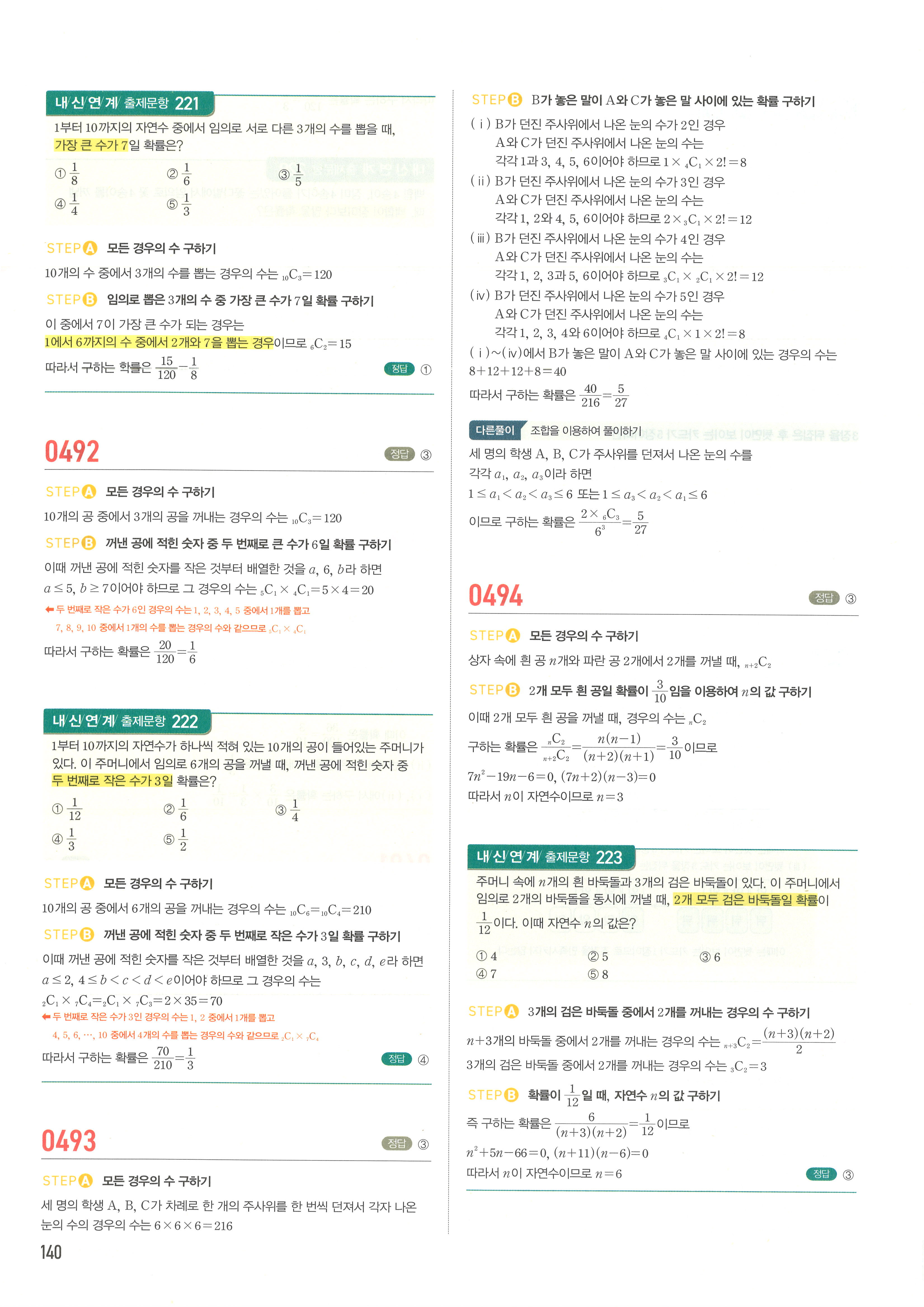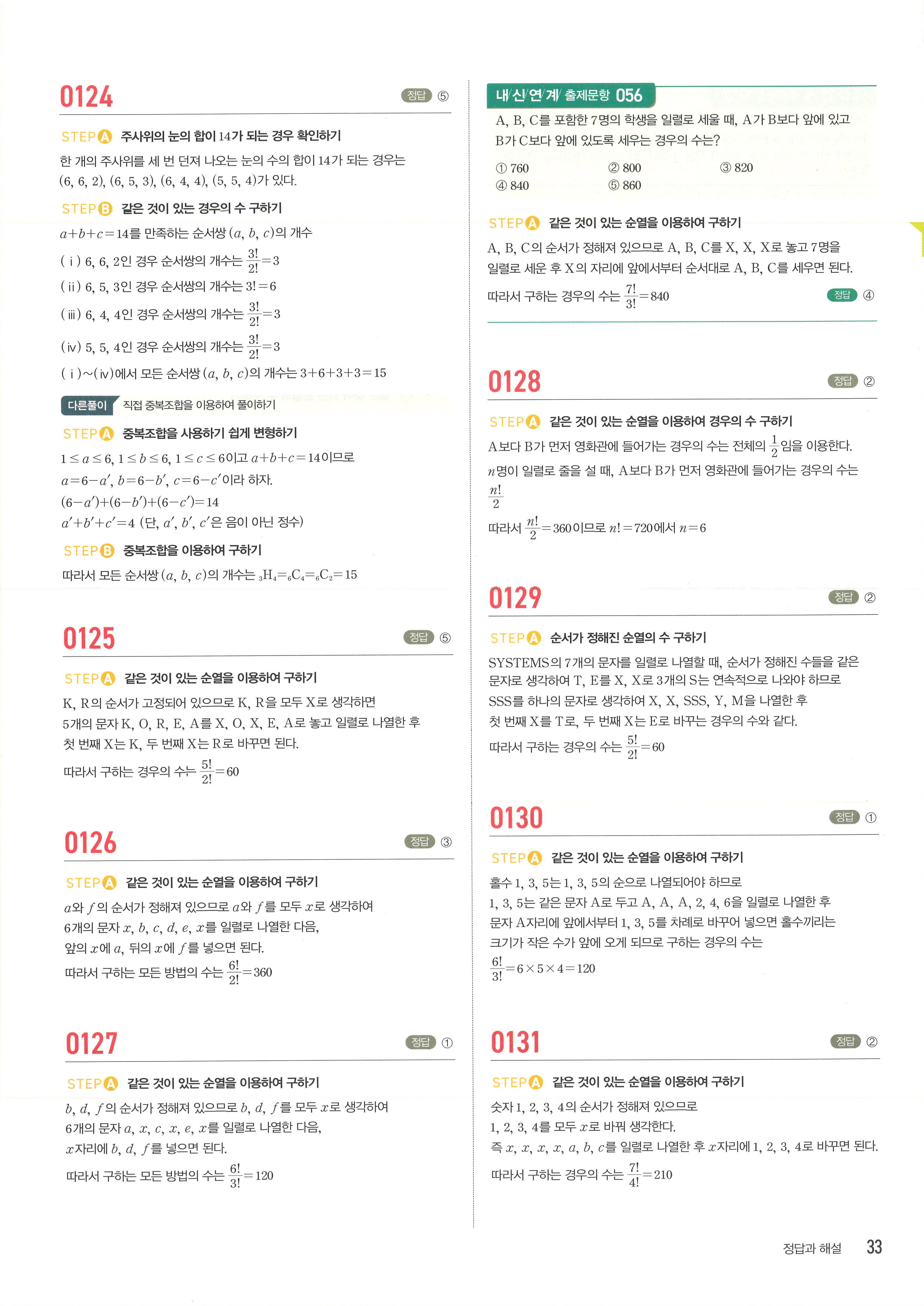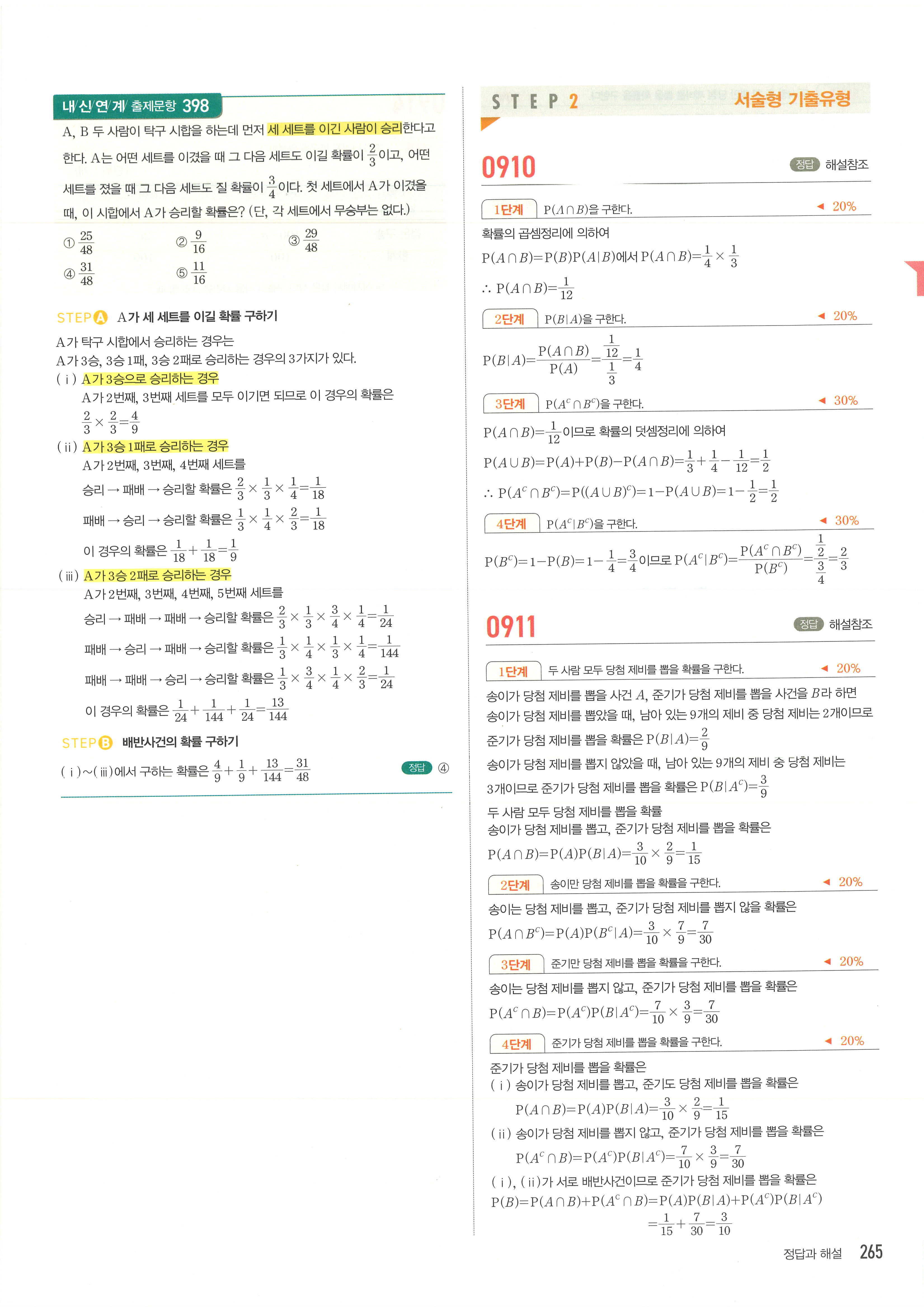 답지의 풀이 과정을 보며 확률과 통계의 중요한 개념을 다시 복습하세요. 개념을 명확히 이해하면 시험에서 비슷한 유형의 문제도 쉽게 해결할 수 있습니다.