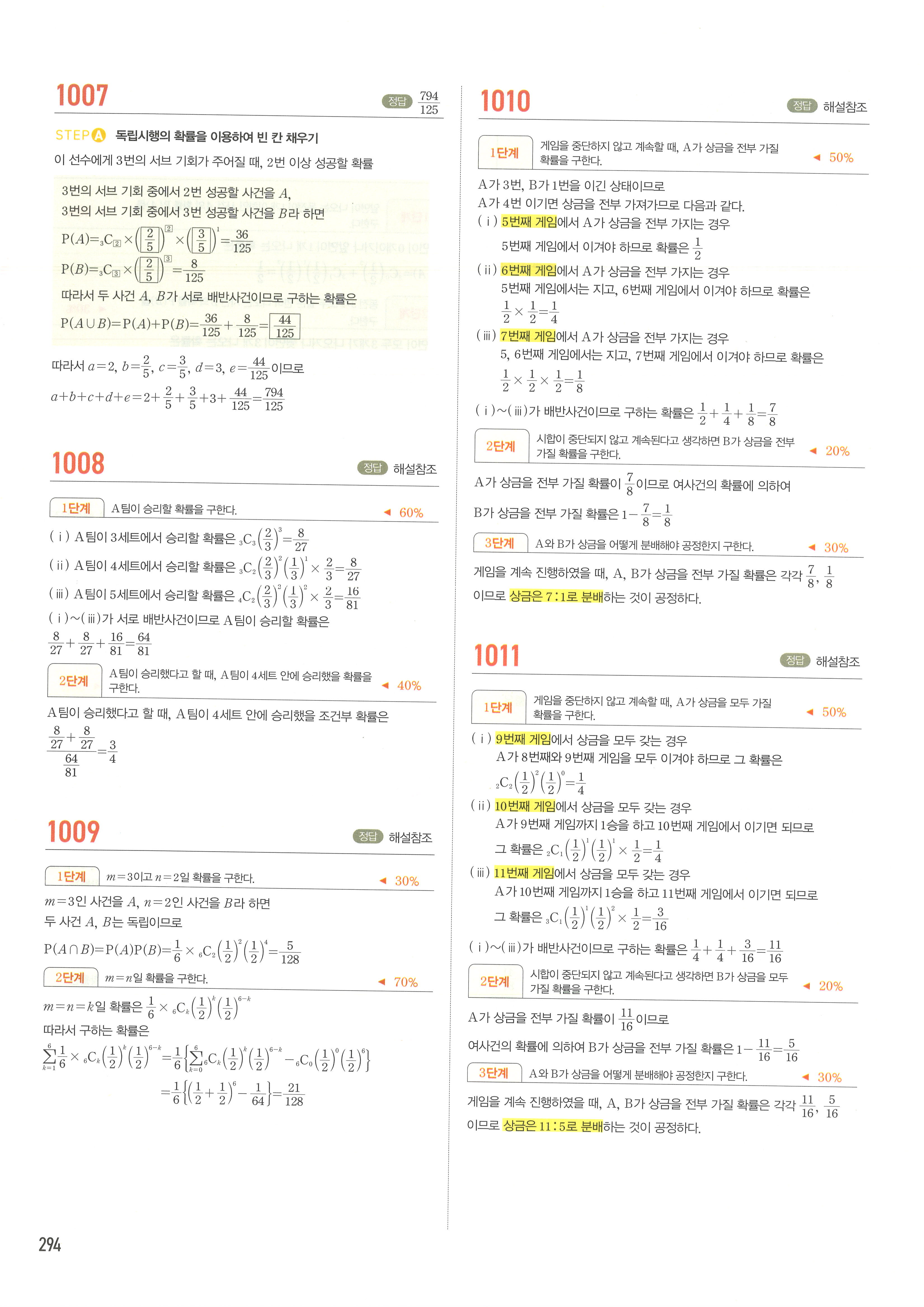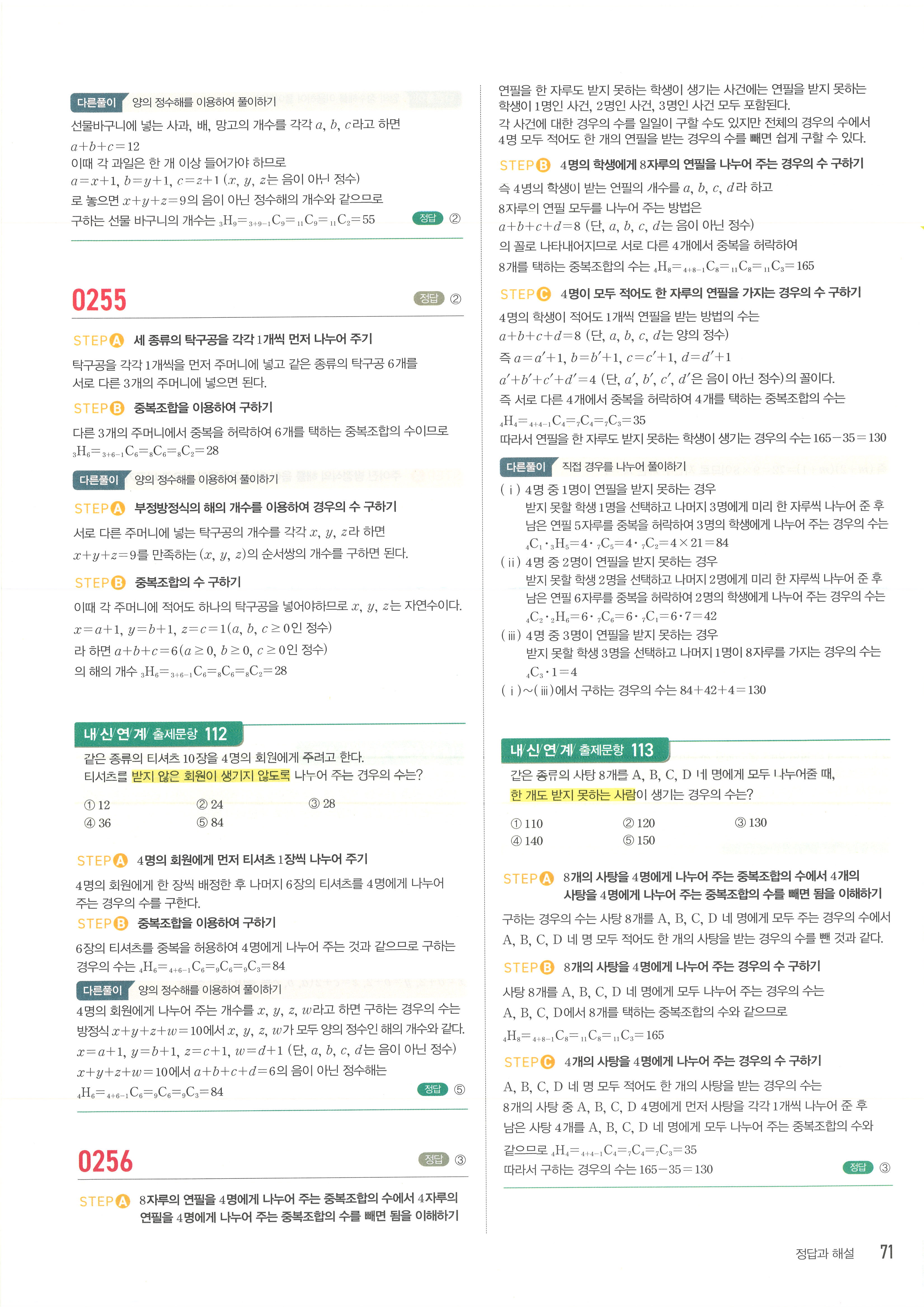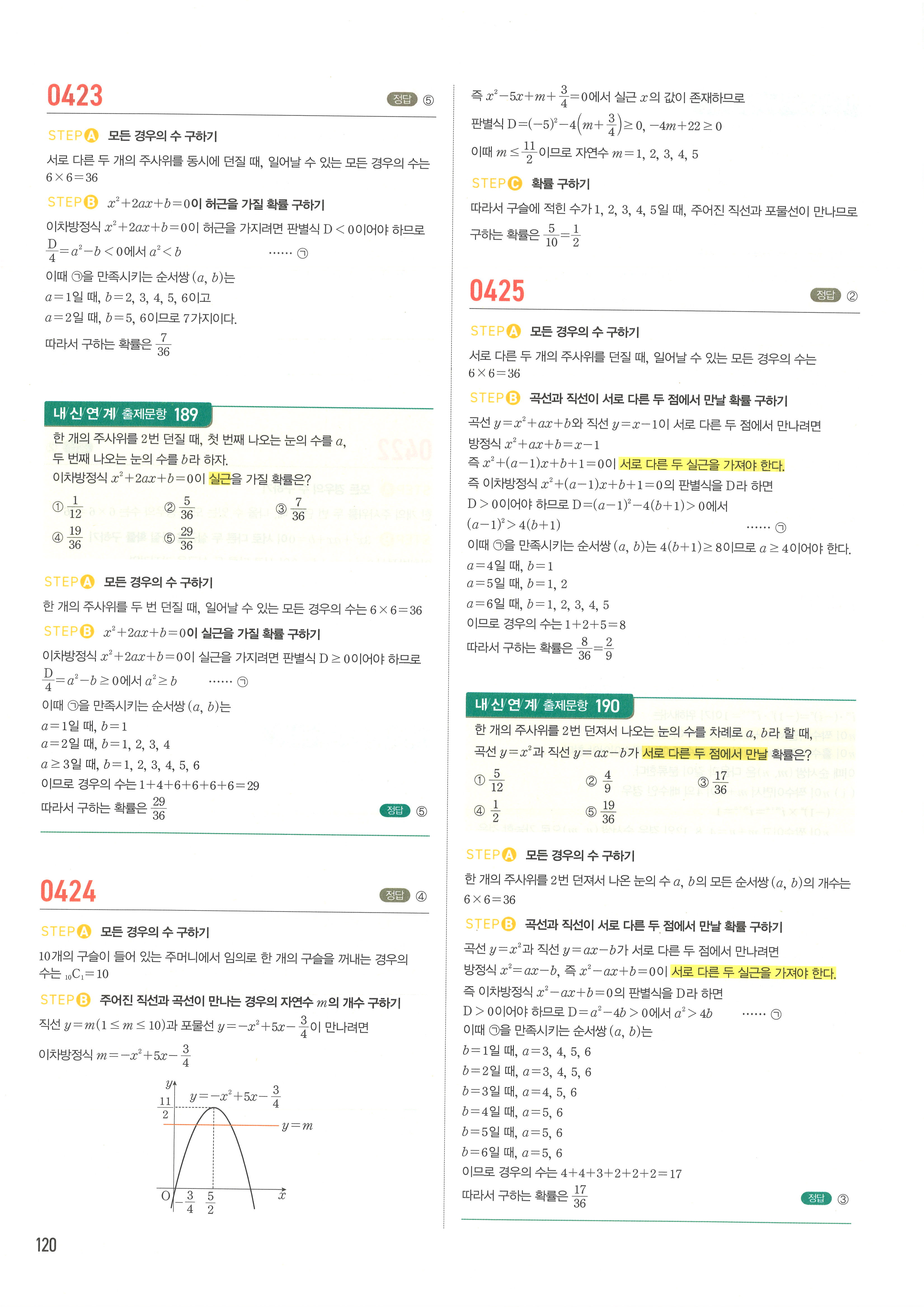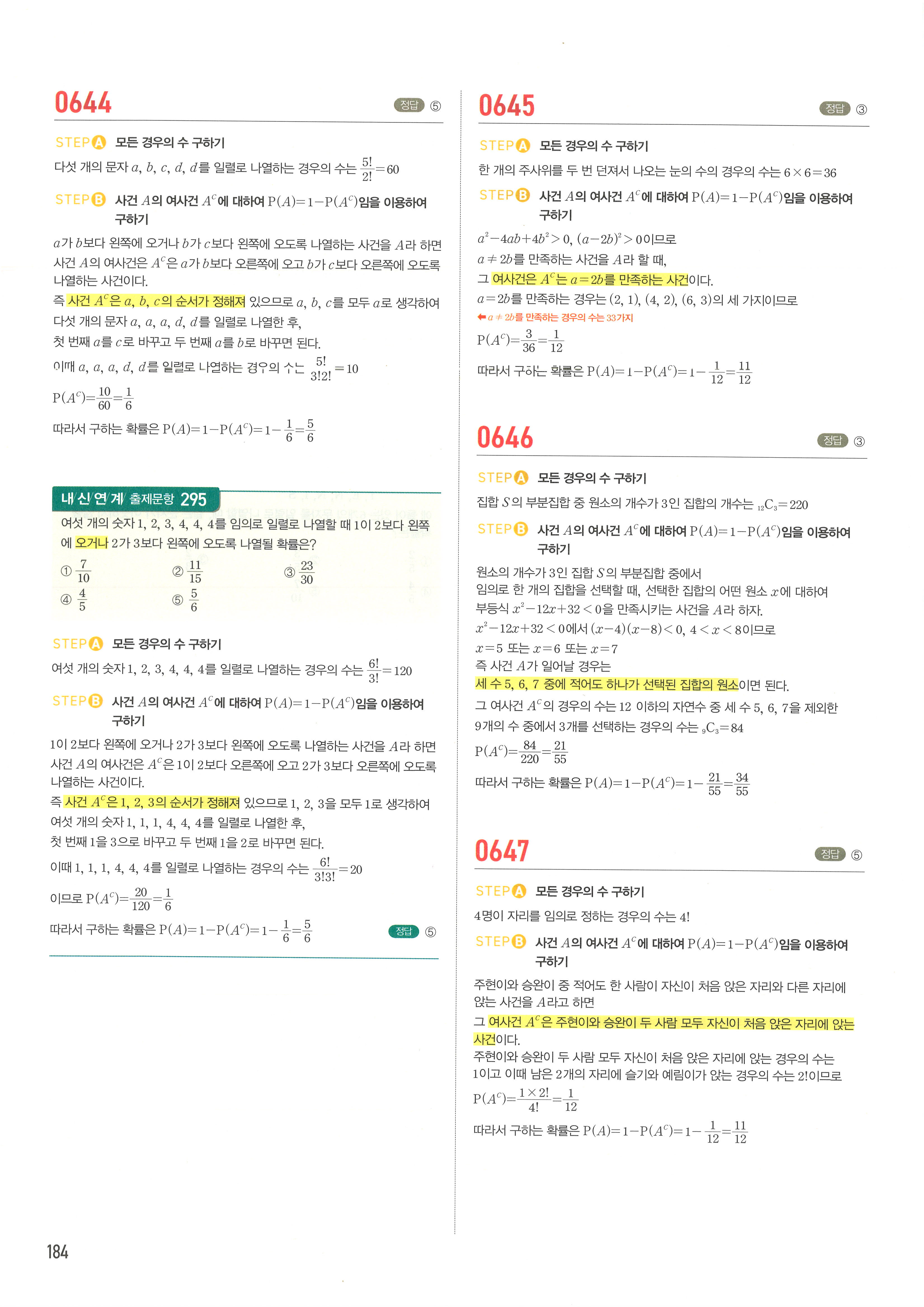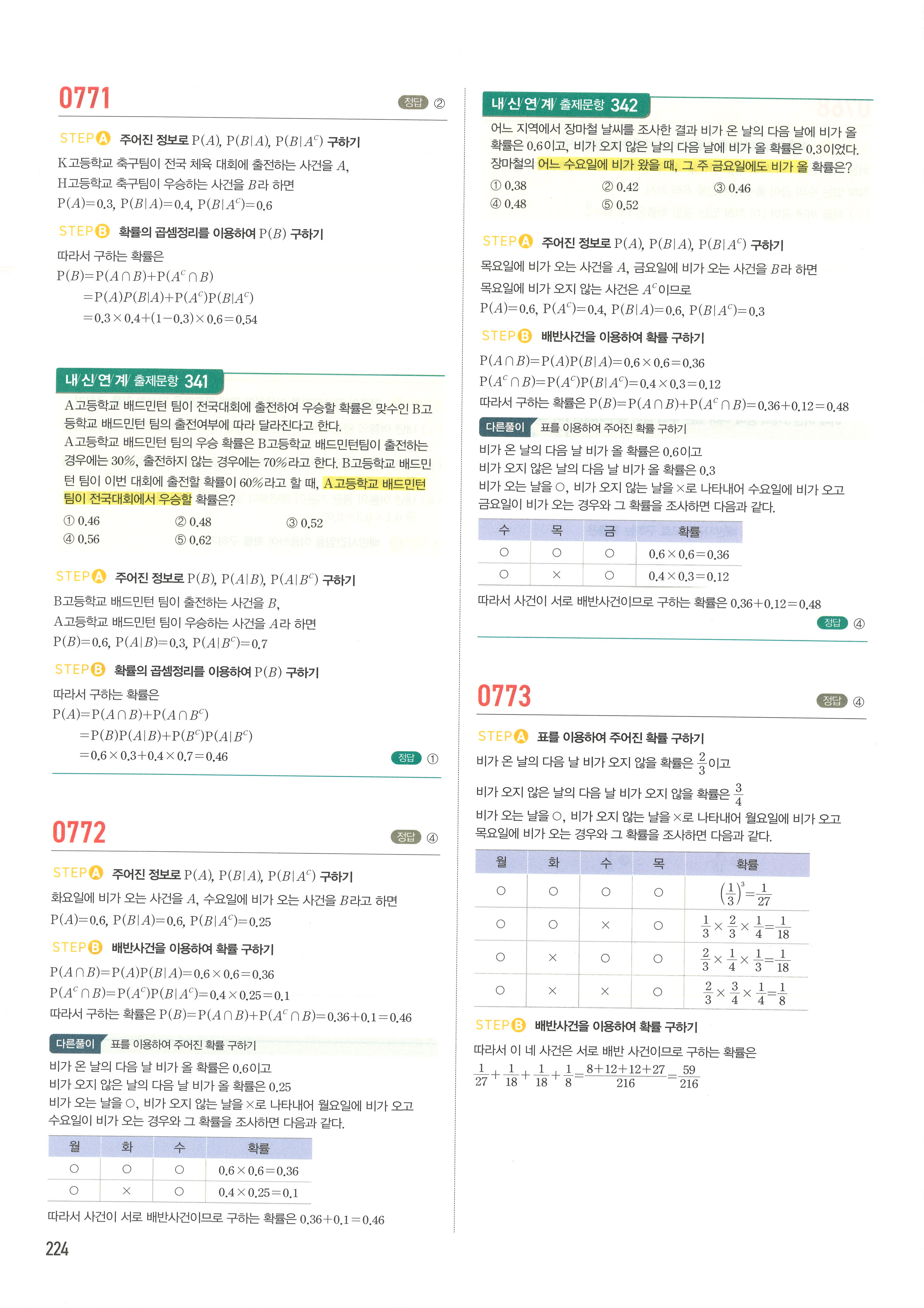답지의 풀이 과정을 보며 확률과 통계의 중요한 개념을 다시 복습하세요. 개념을 명확히 이해하면 시험에서 비슷한 유형의 문제도 쉽게 해결할 수 있습니다.