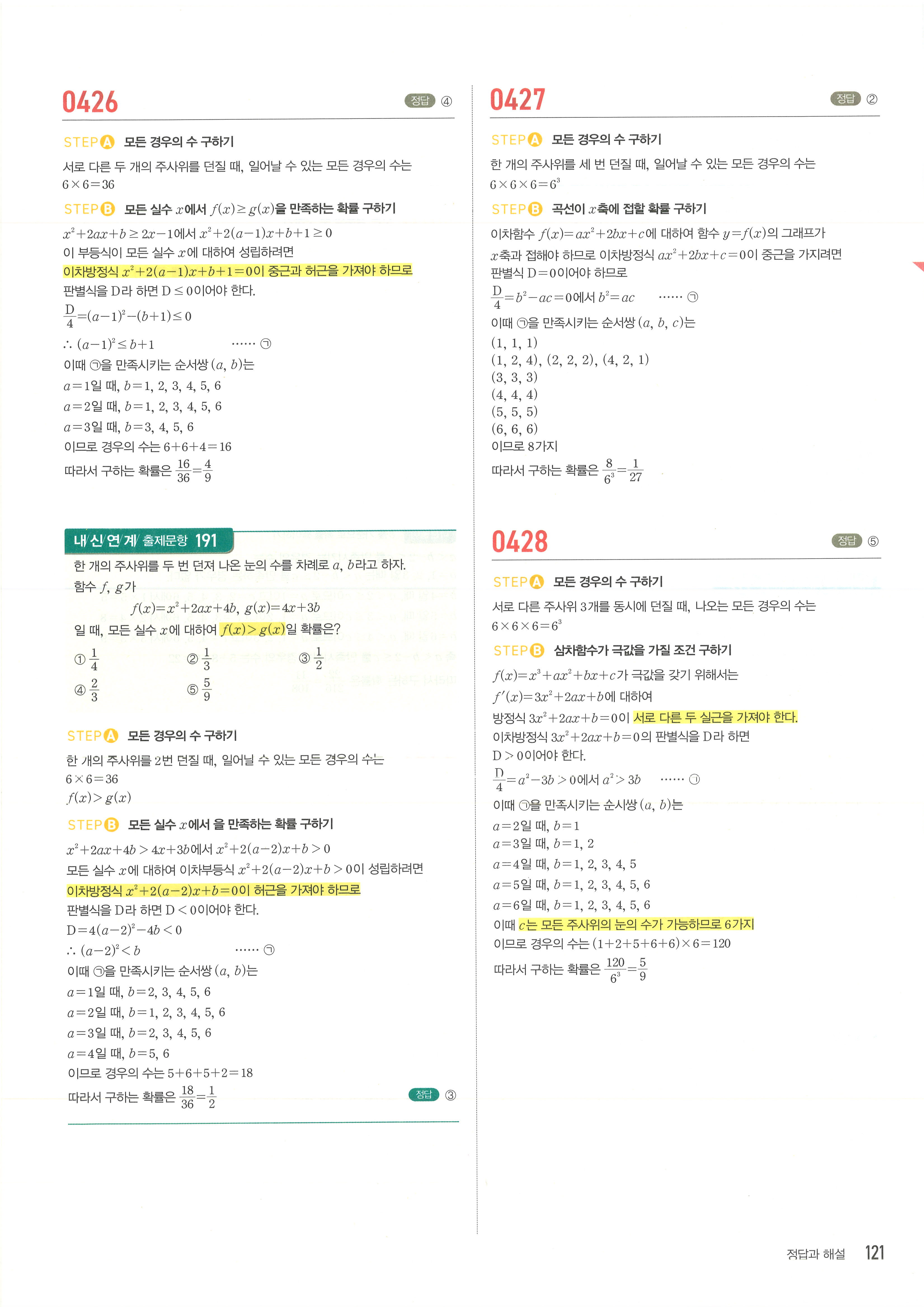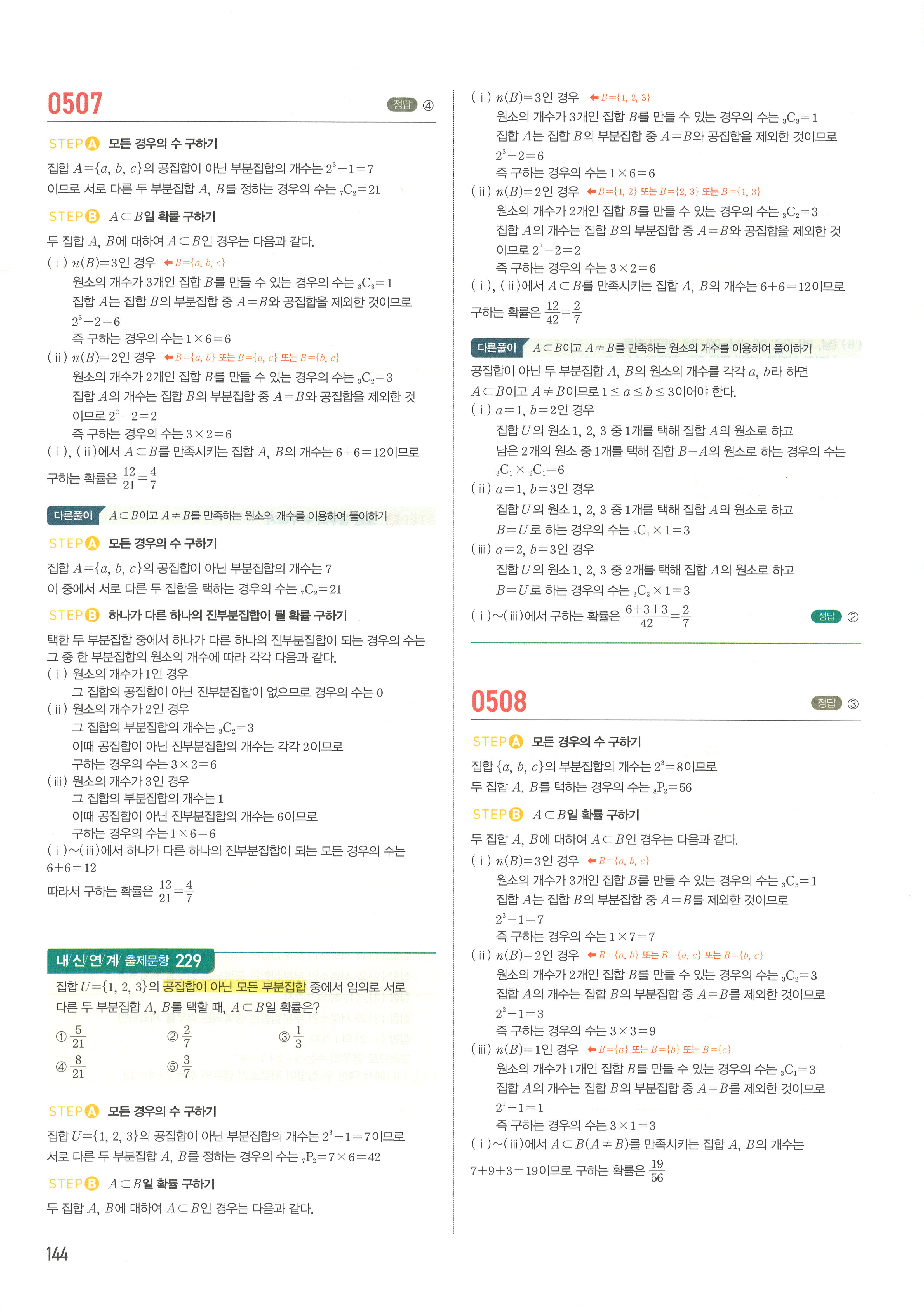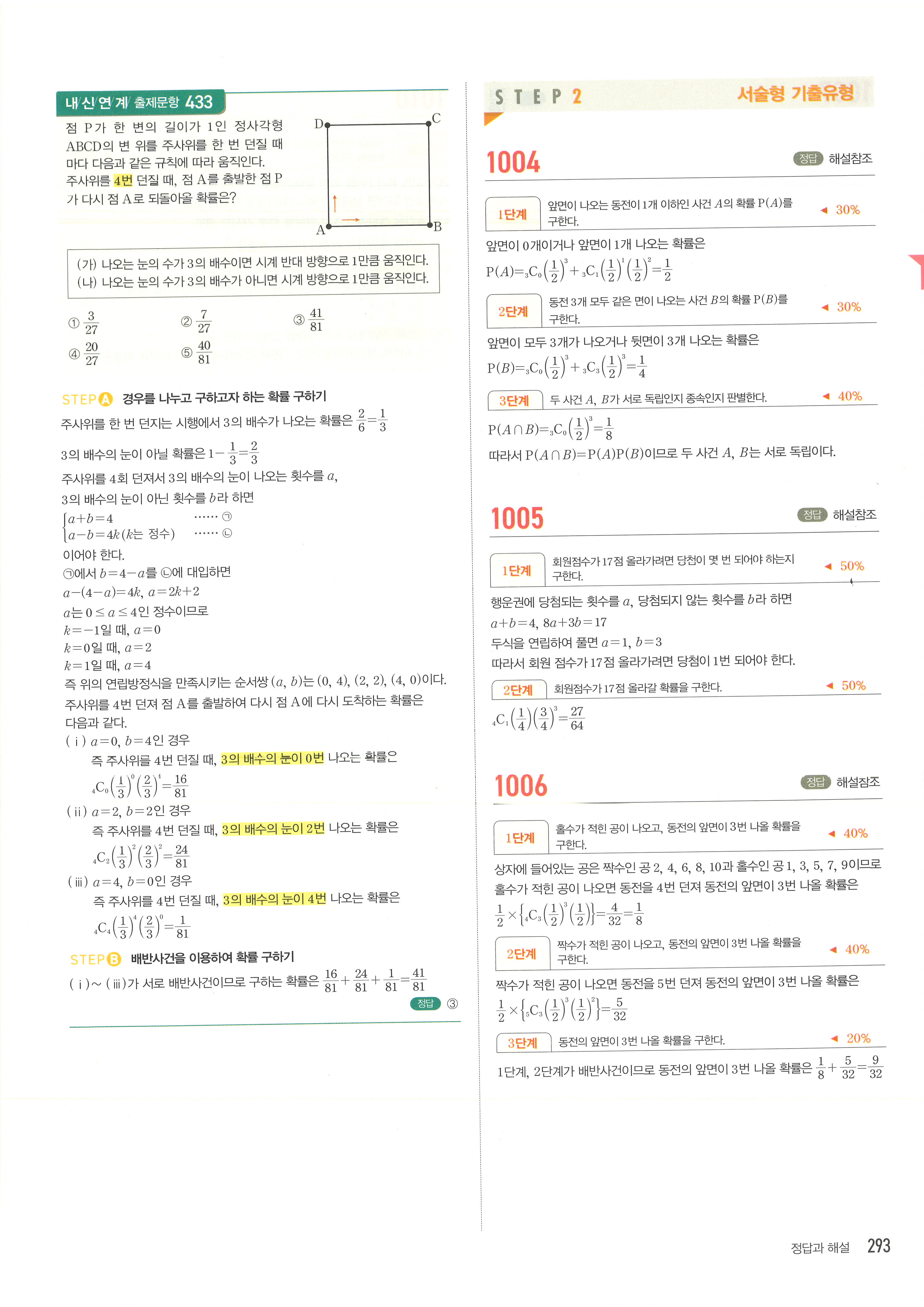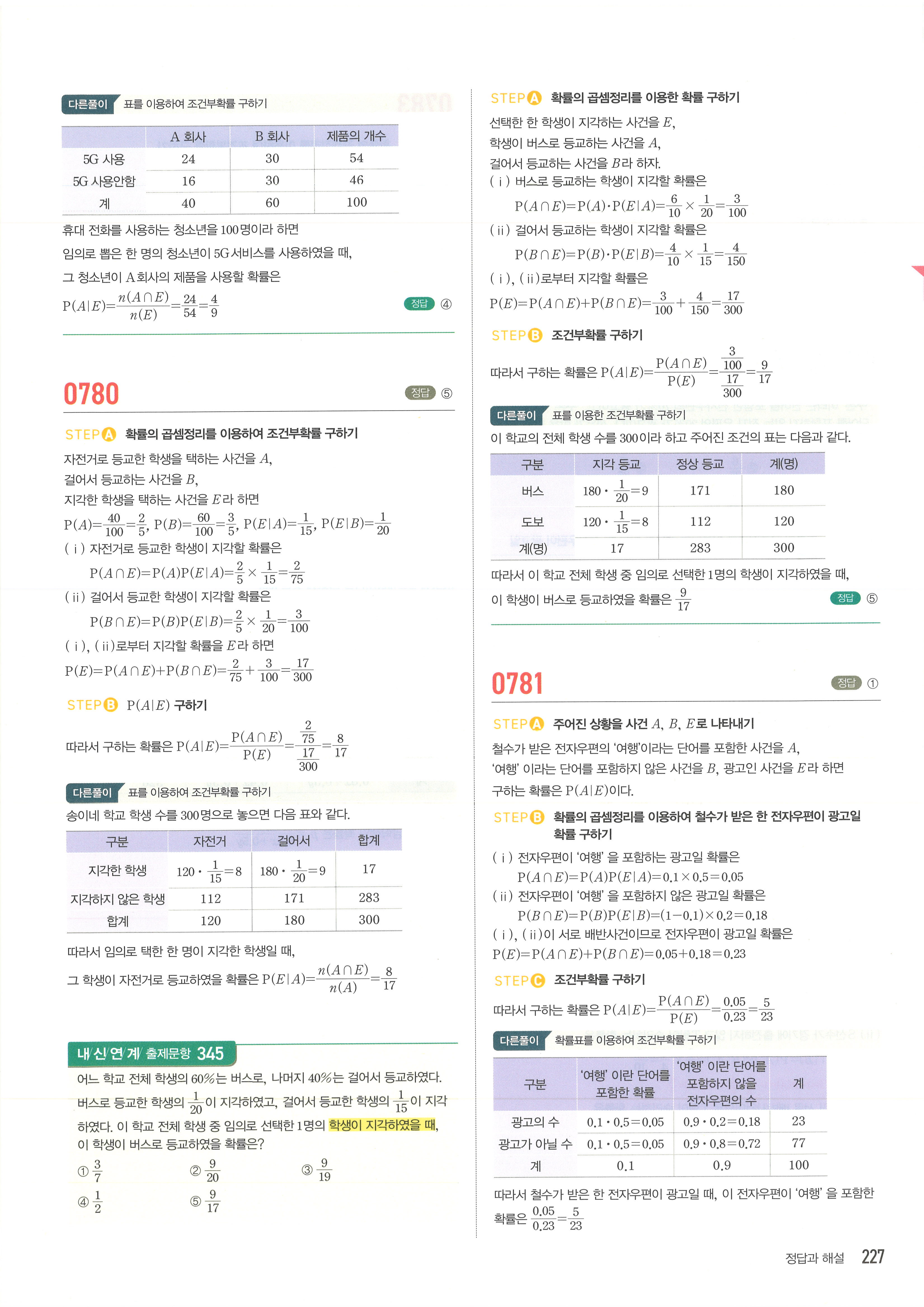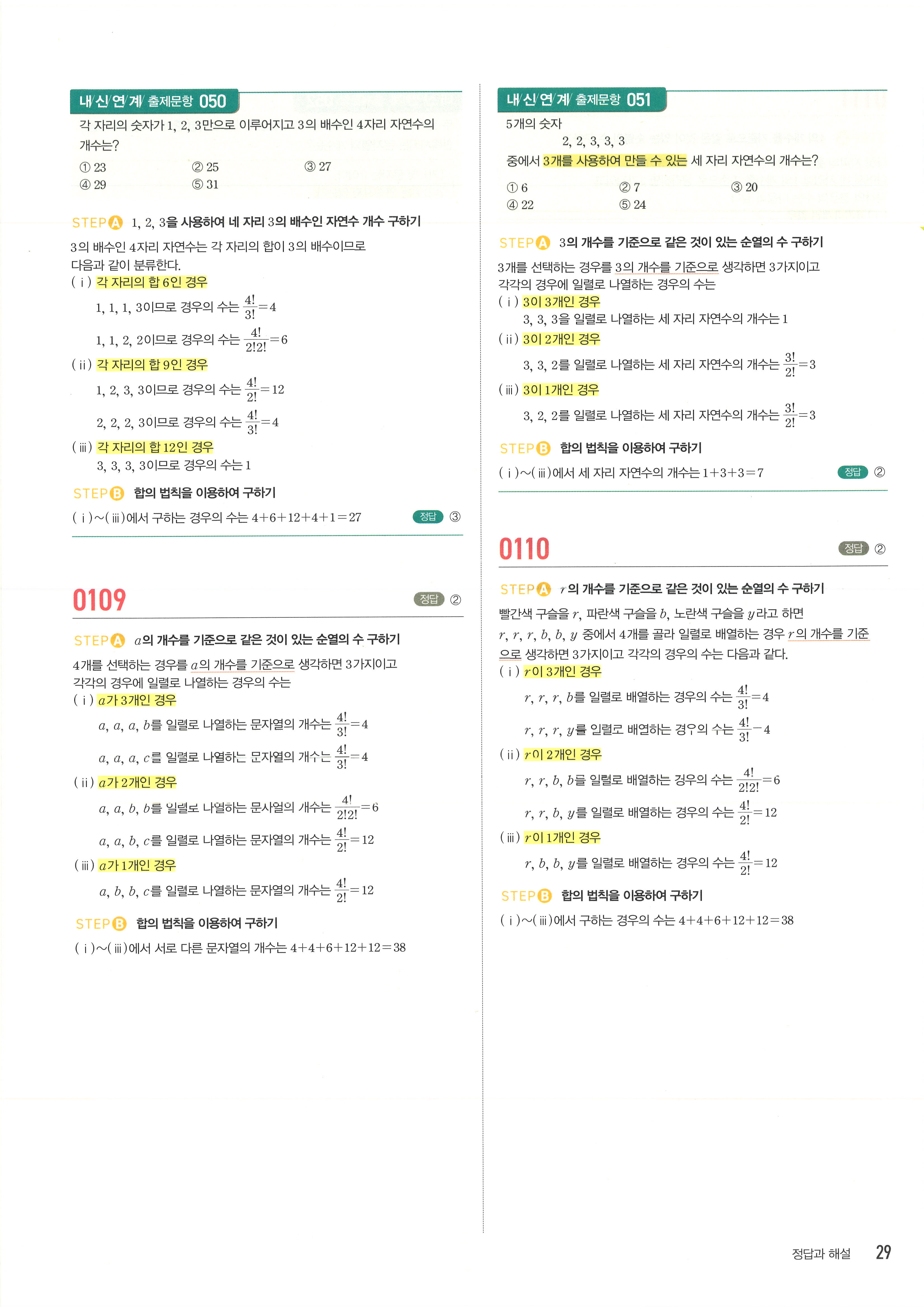 답지의 풀이 과정을 보며 확률과 통계의 중요한 개념을 다시 복습하세요. 개념을 명확히 이해하면 시험에서 비슷한 유형의 문제도 쉽게 해결할 수 있습니다.