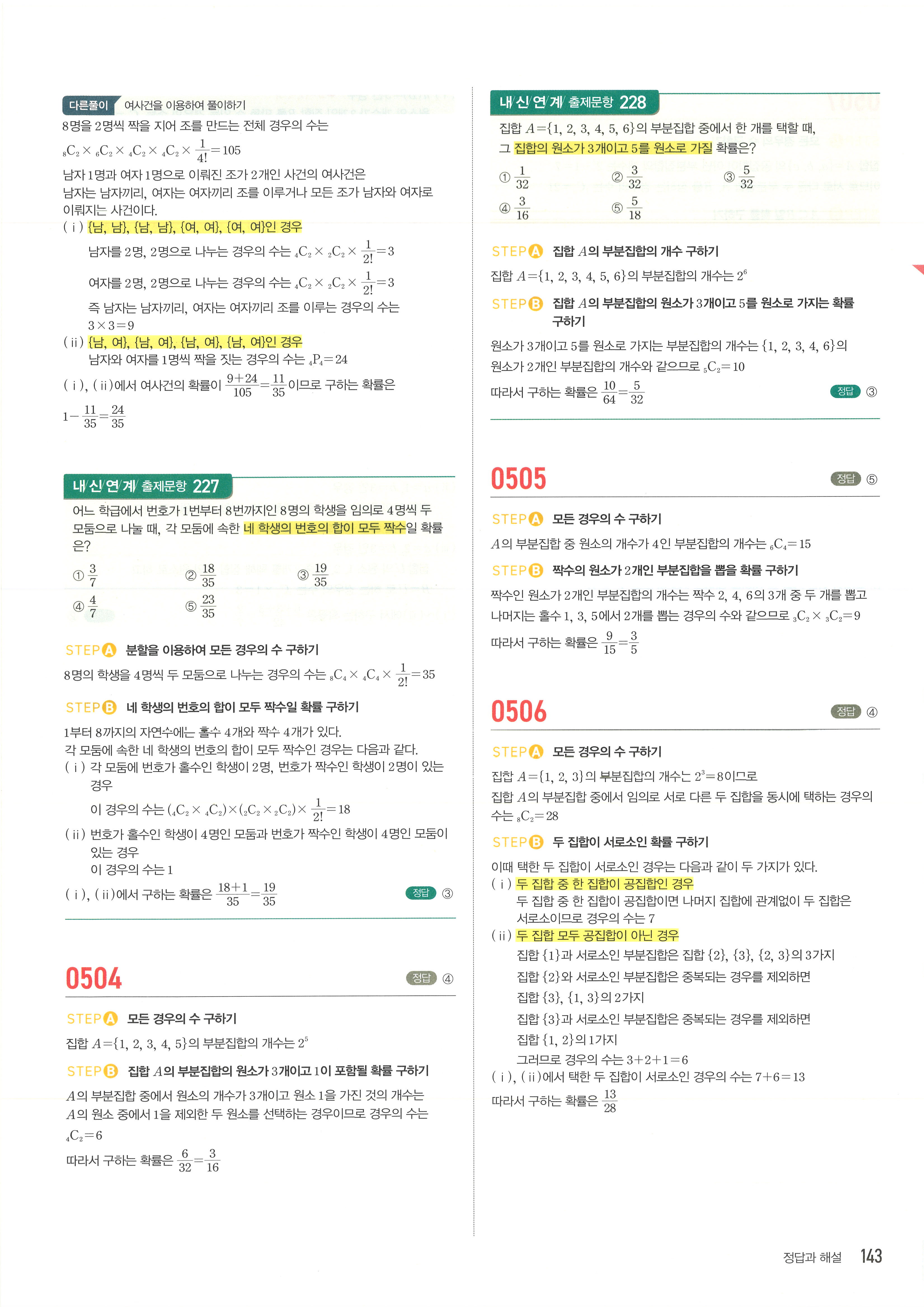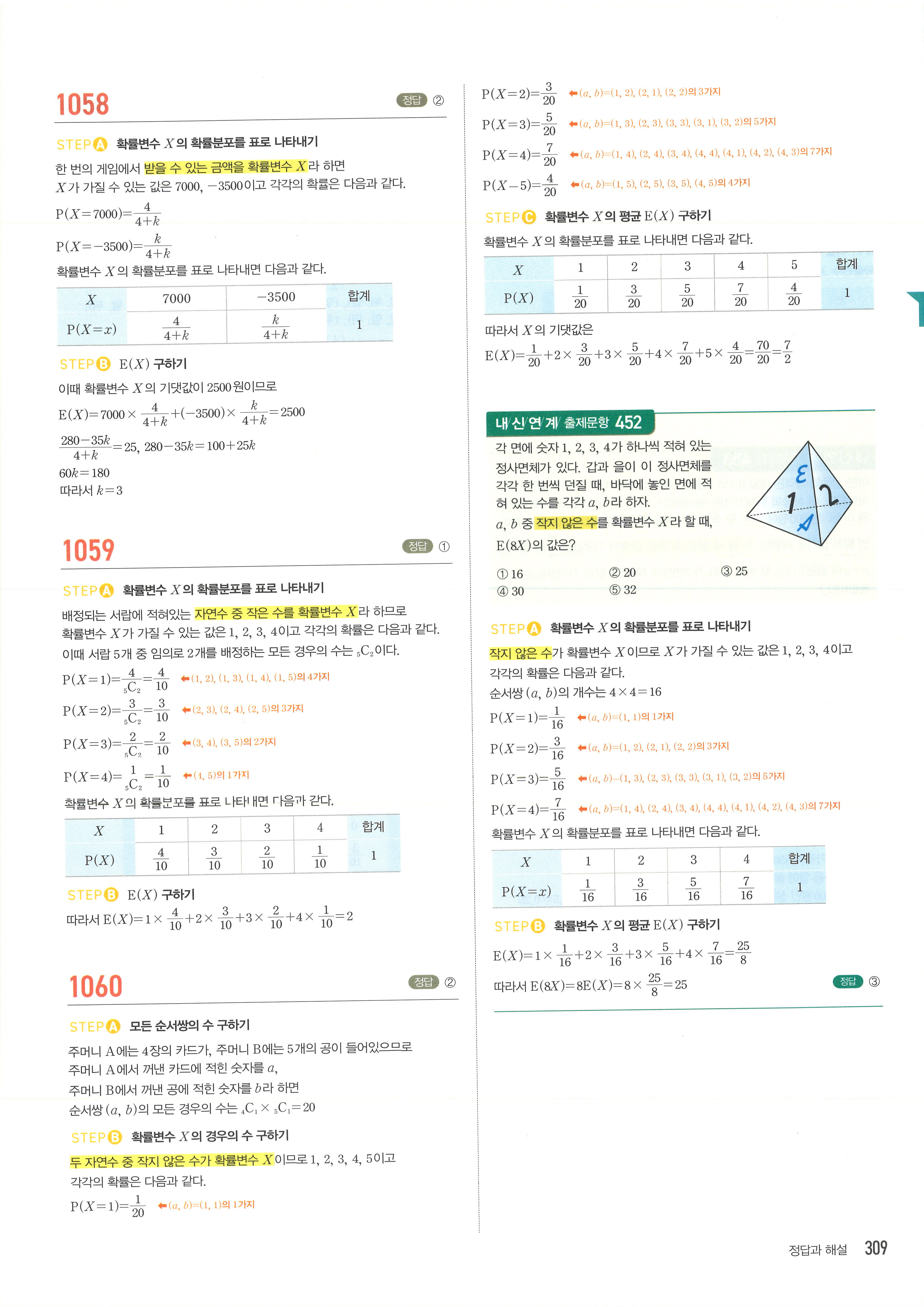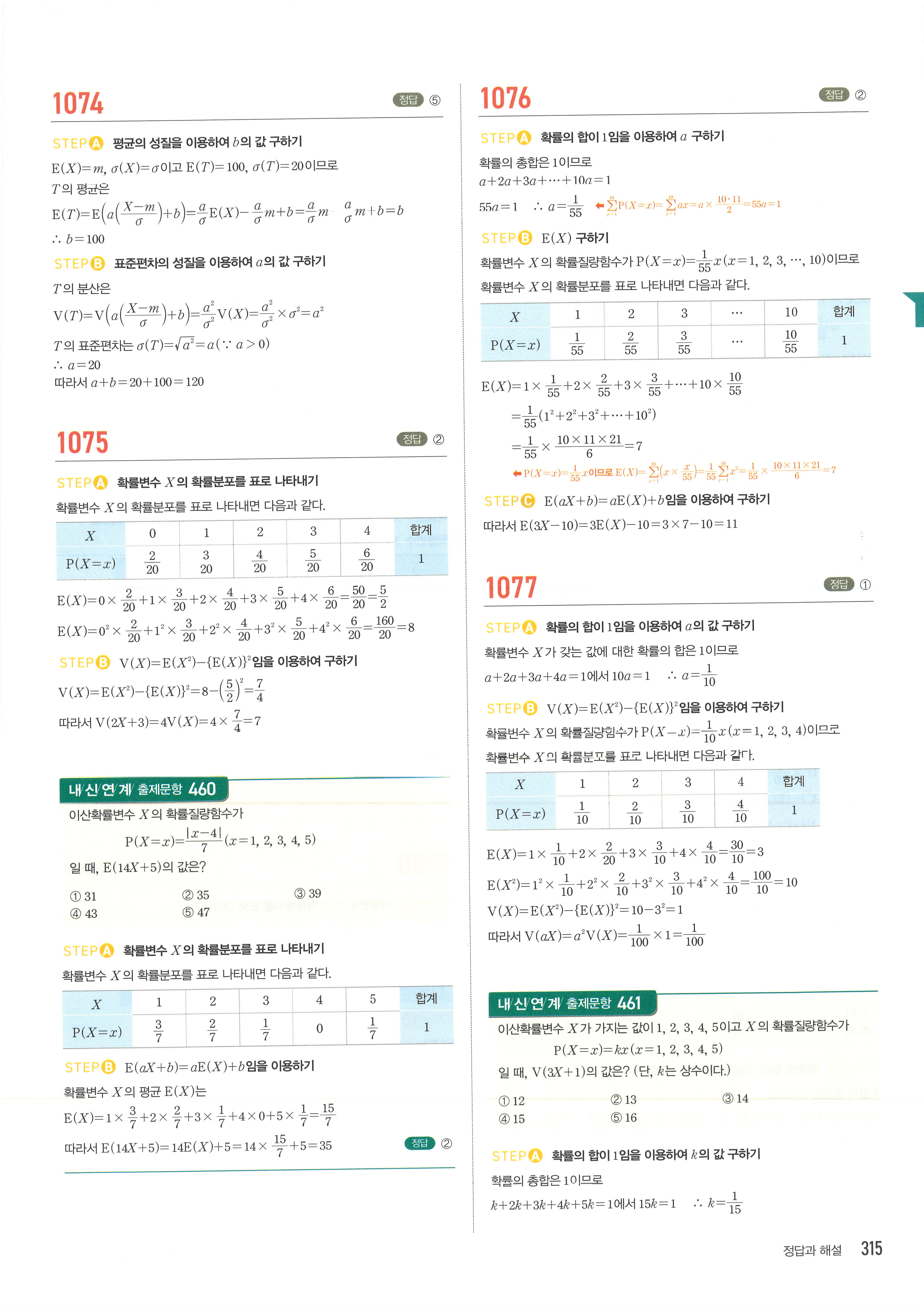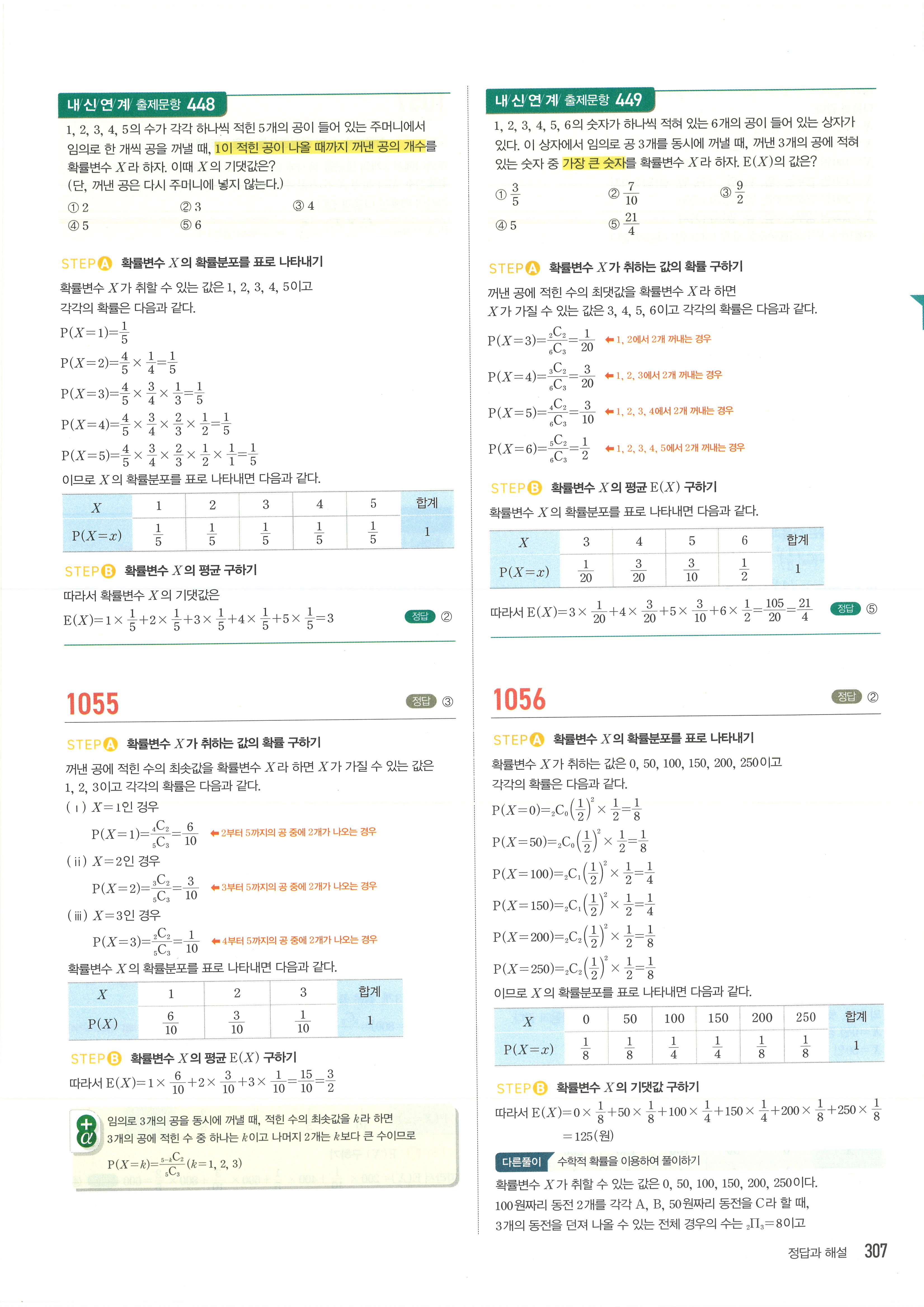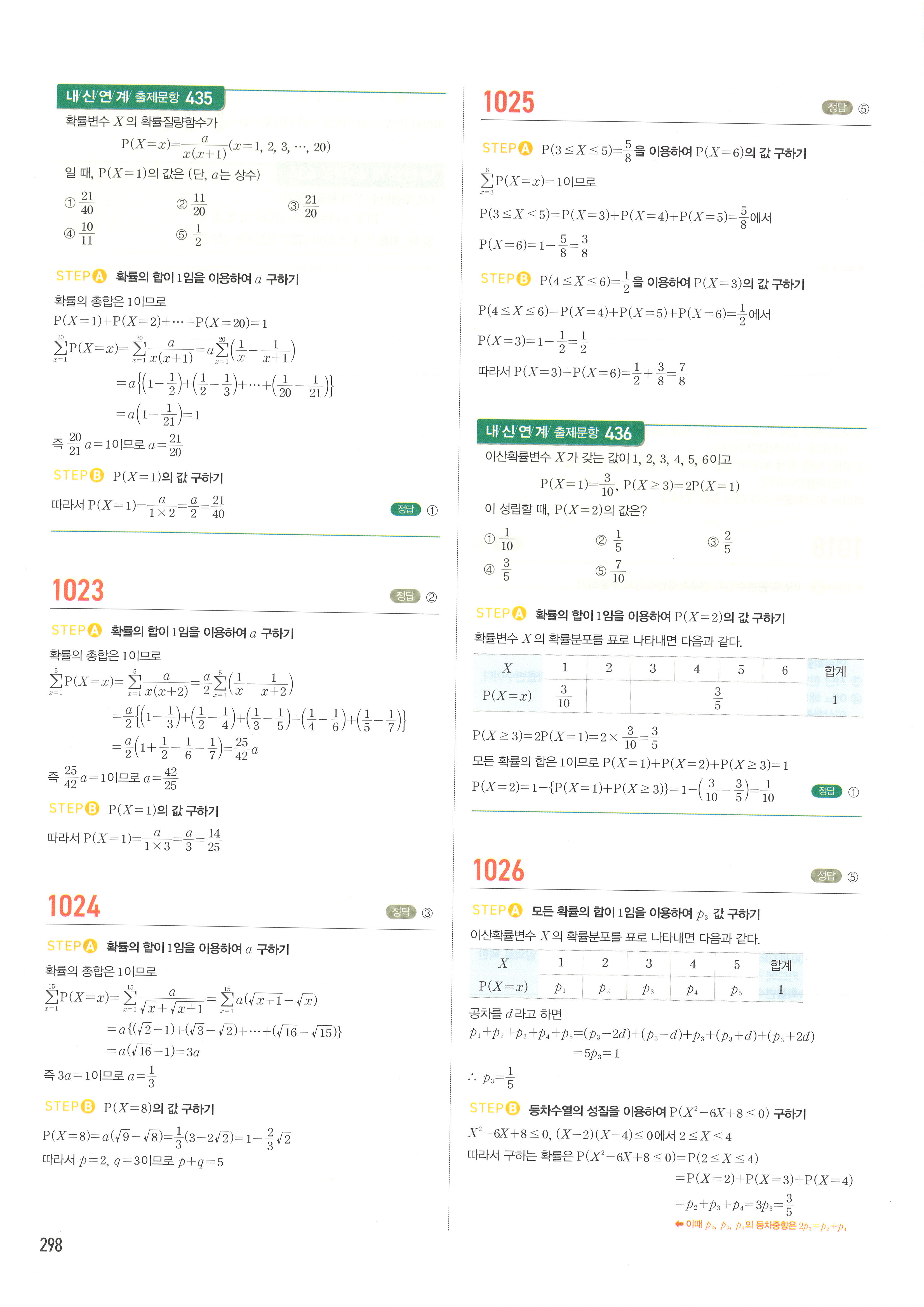 | 마플시너지 확률과통계 | https://mathuncle.tistory.com/217 |