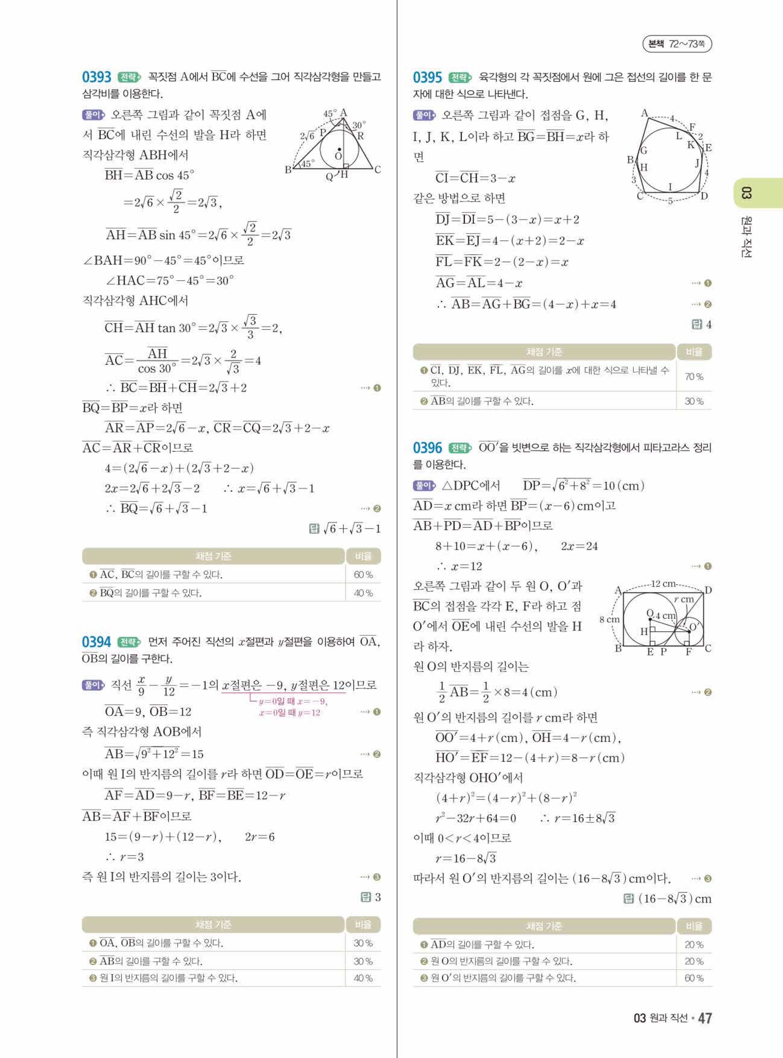 육각형의 한 꼭짓점에서 원에 그은 접선