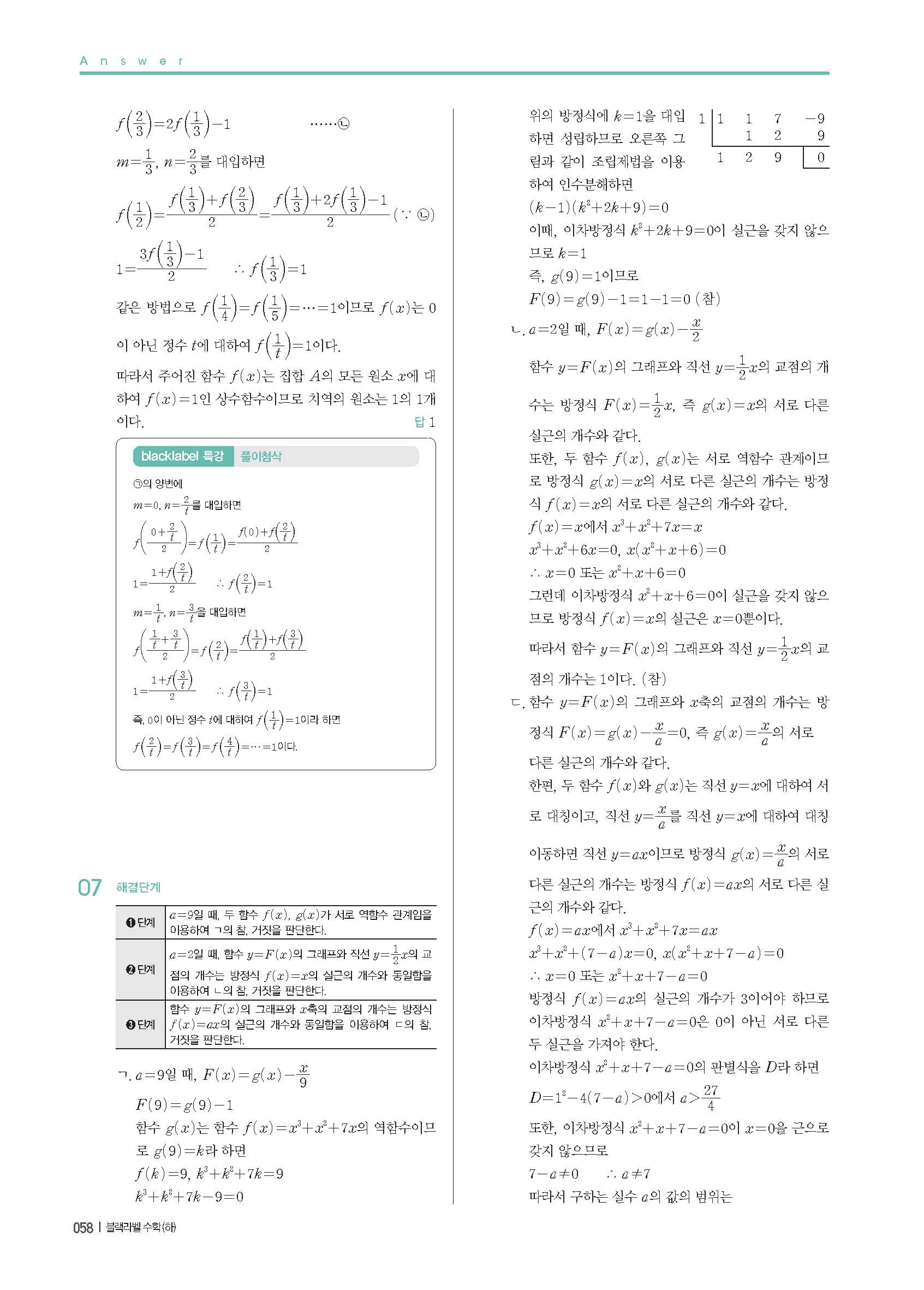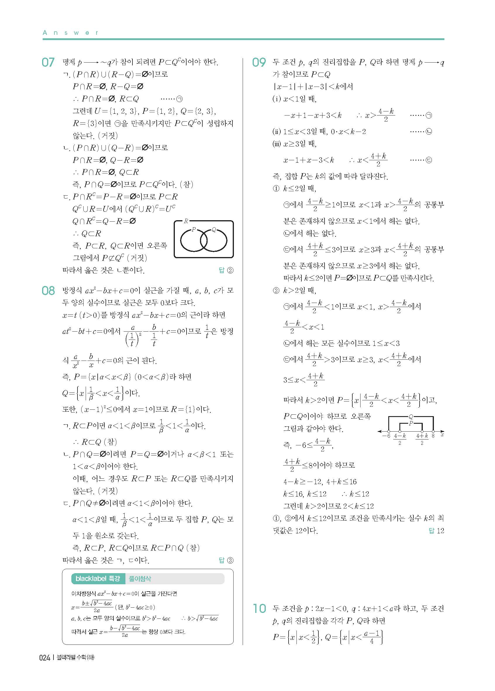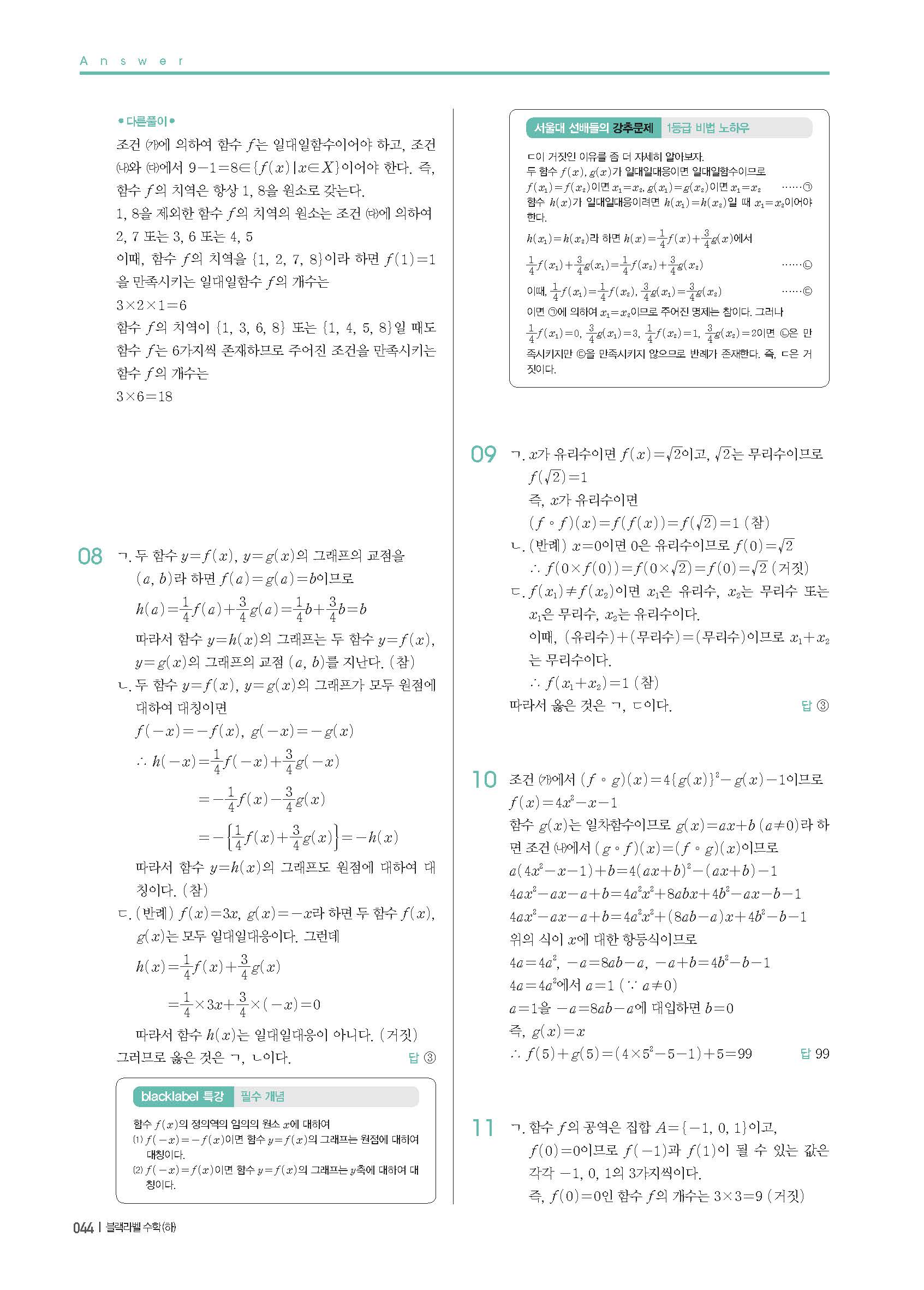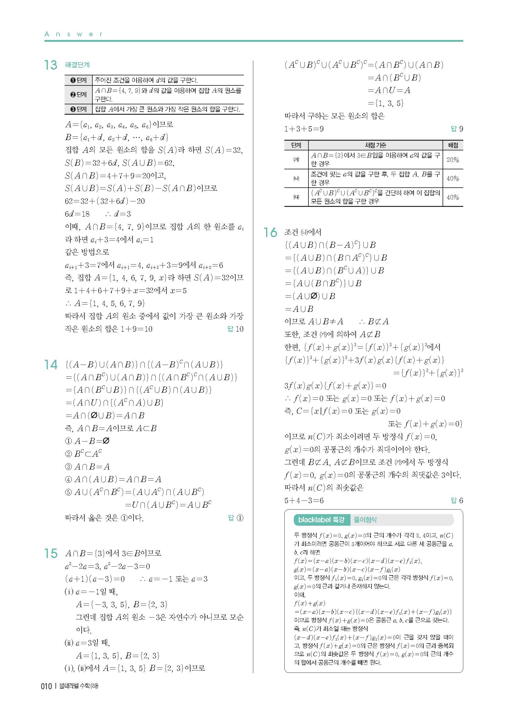 블랙라벨 고등수학하 답지 사진답지 빠른답지 모바일최적화