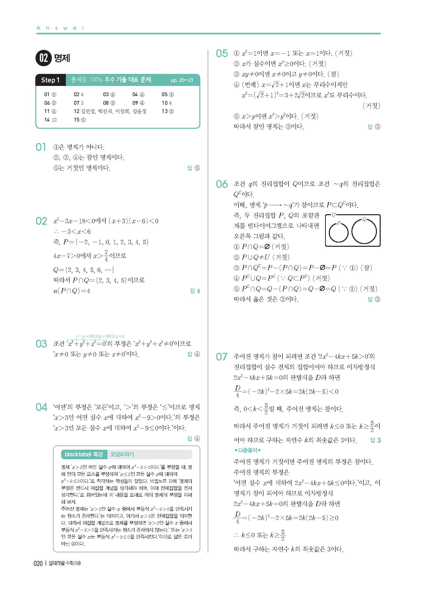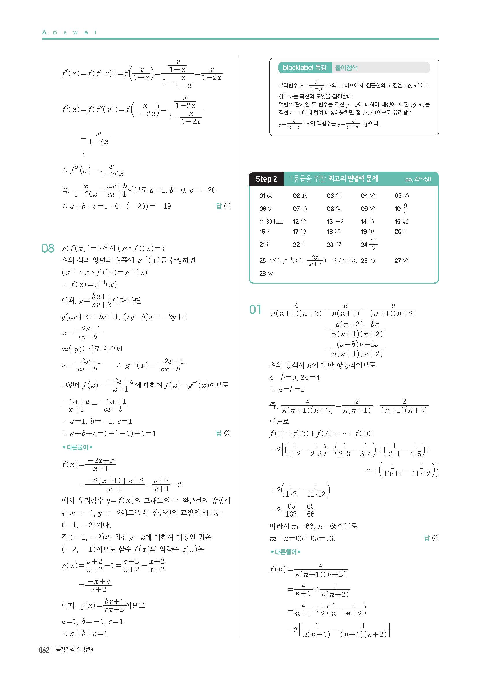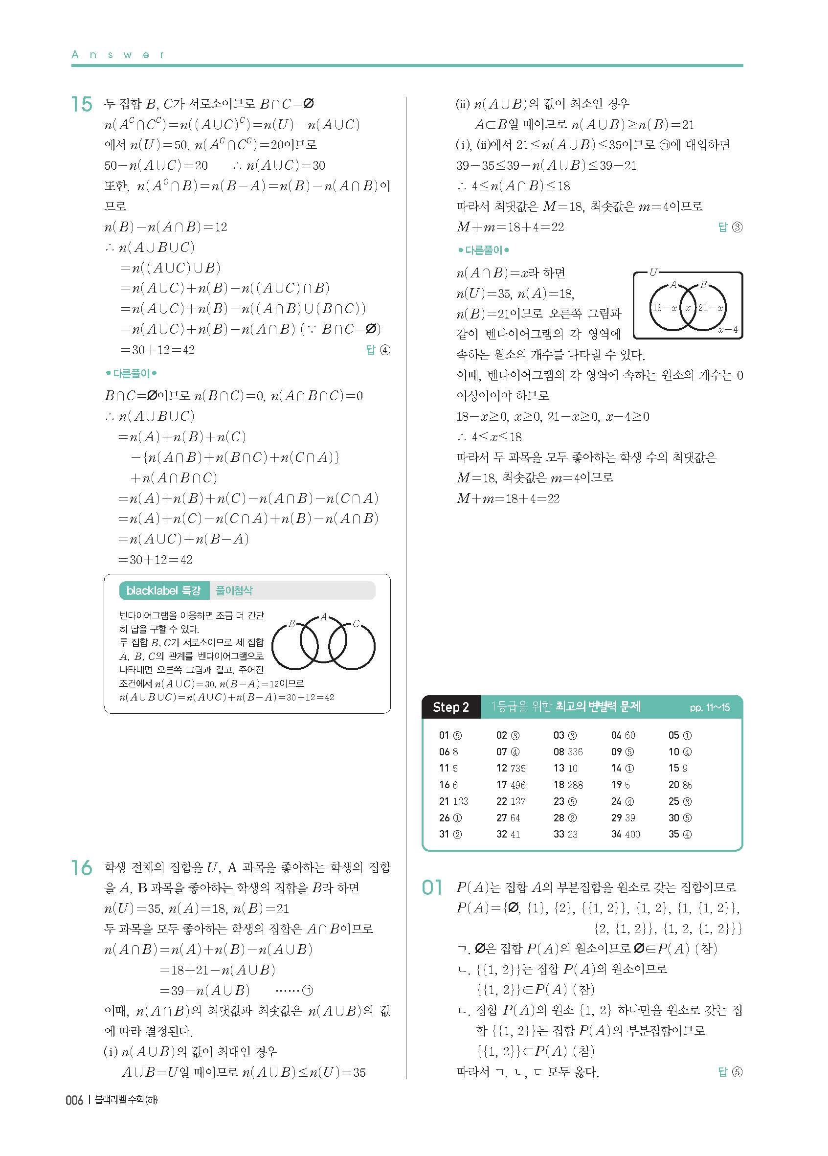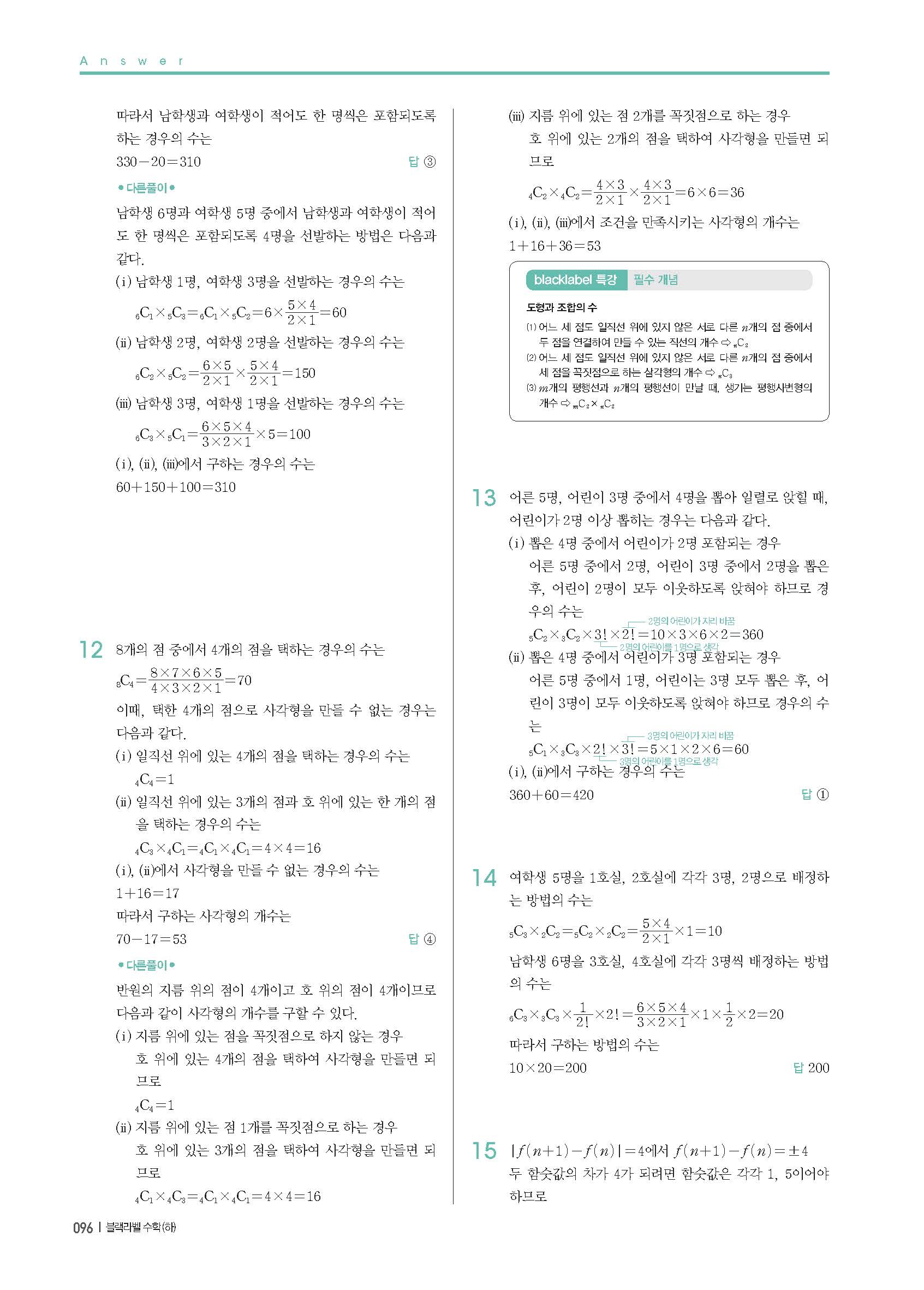 블랙라벨 고등수학하 답지 사진답지 빠른답지 모바일최적화