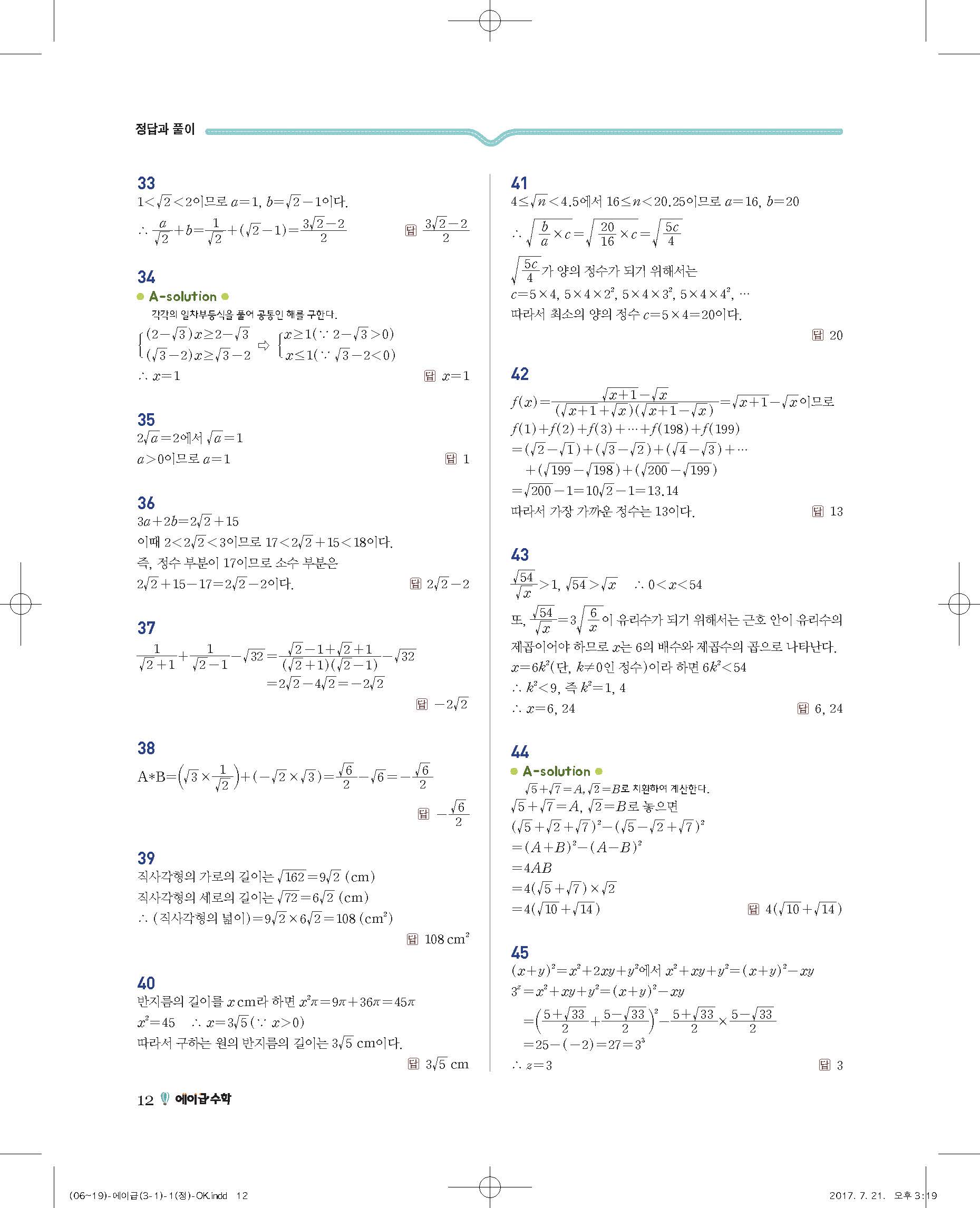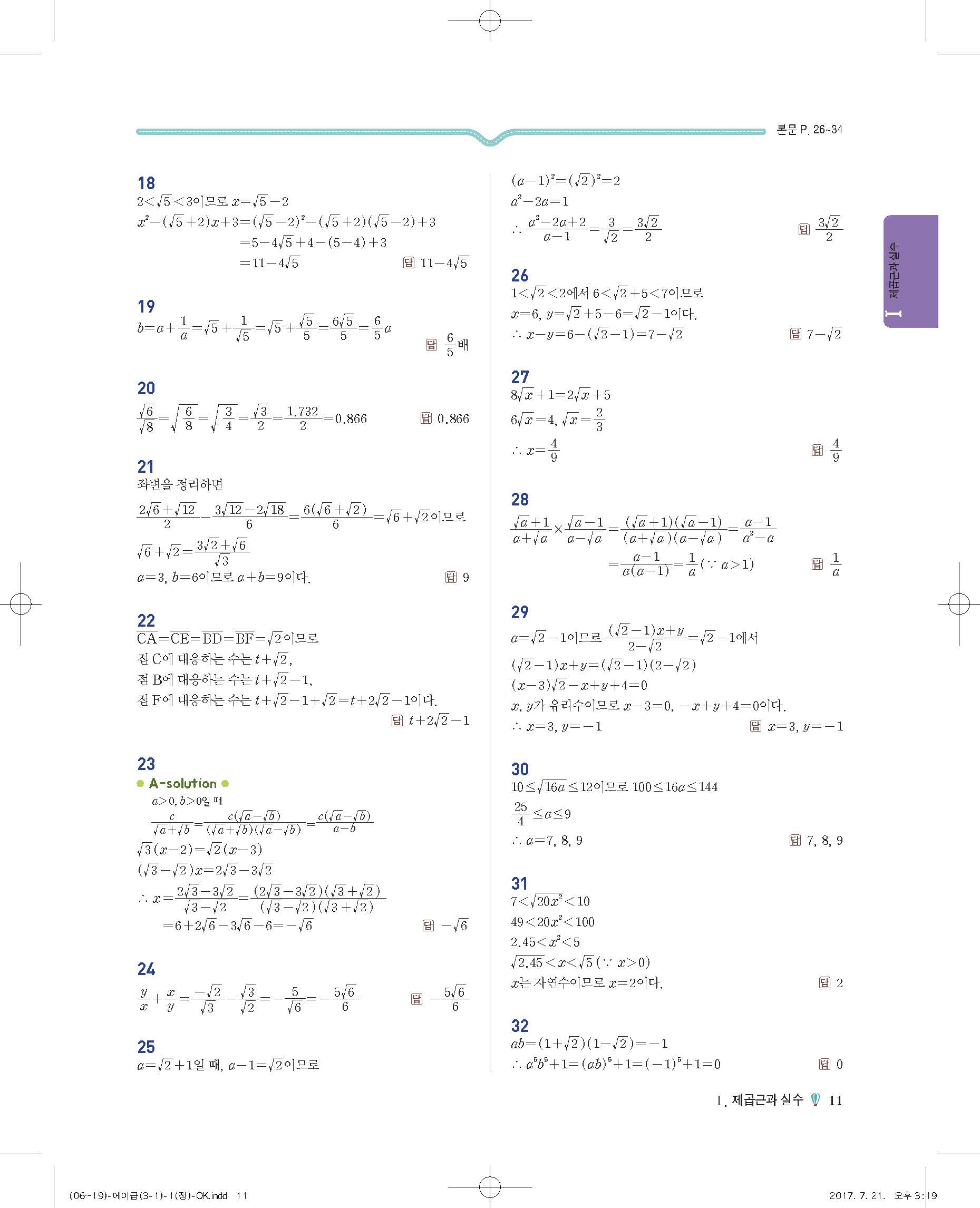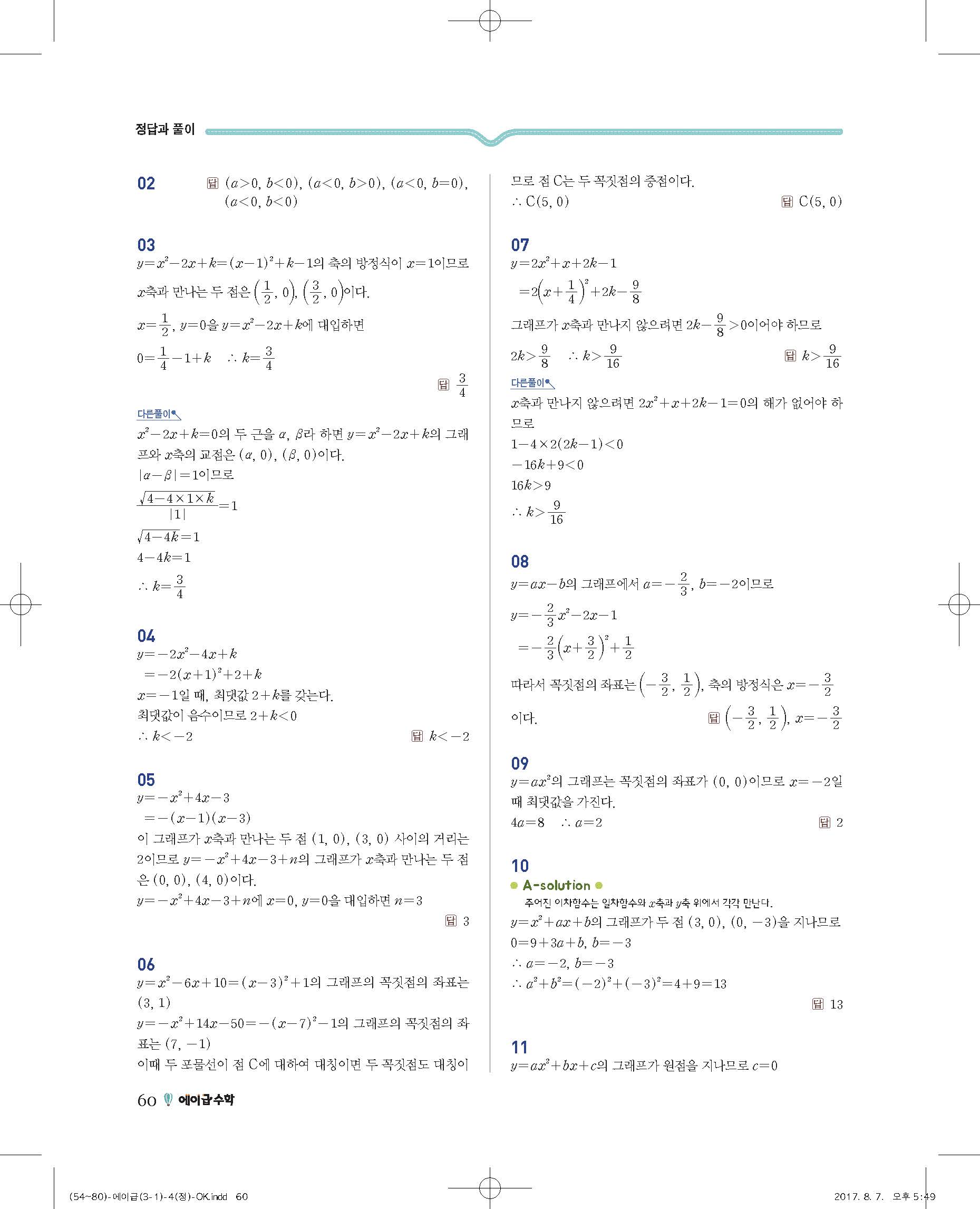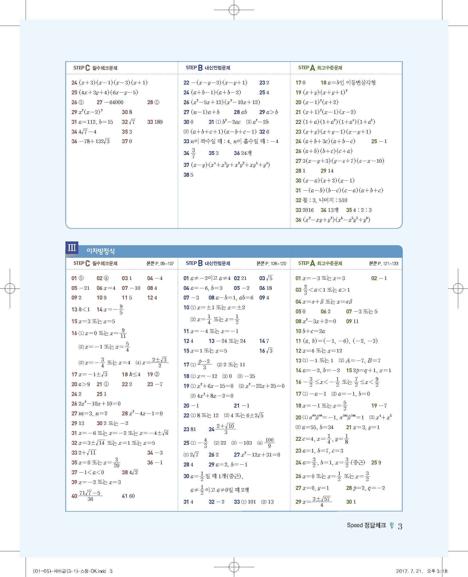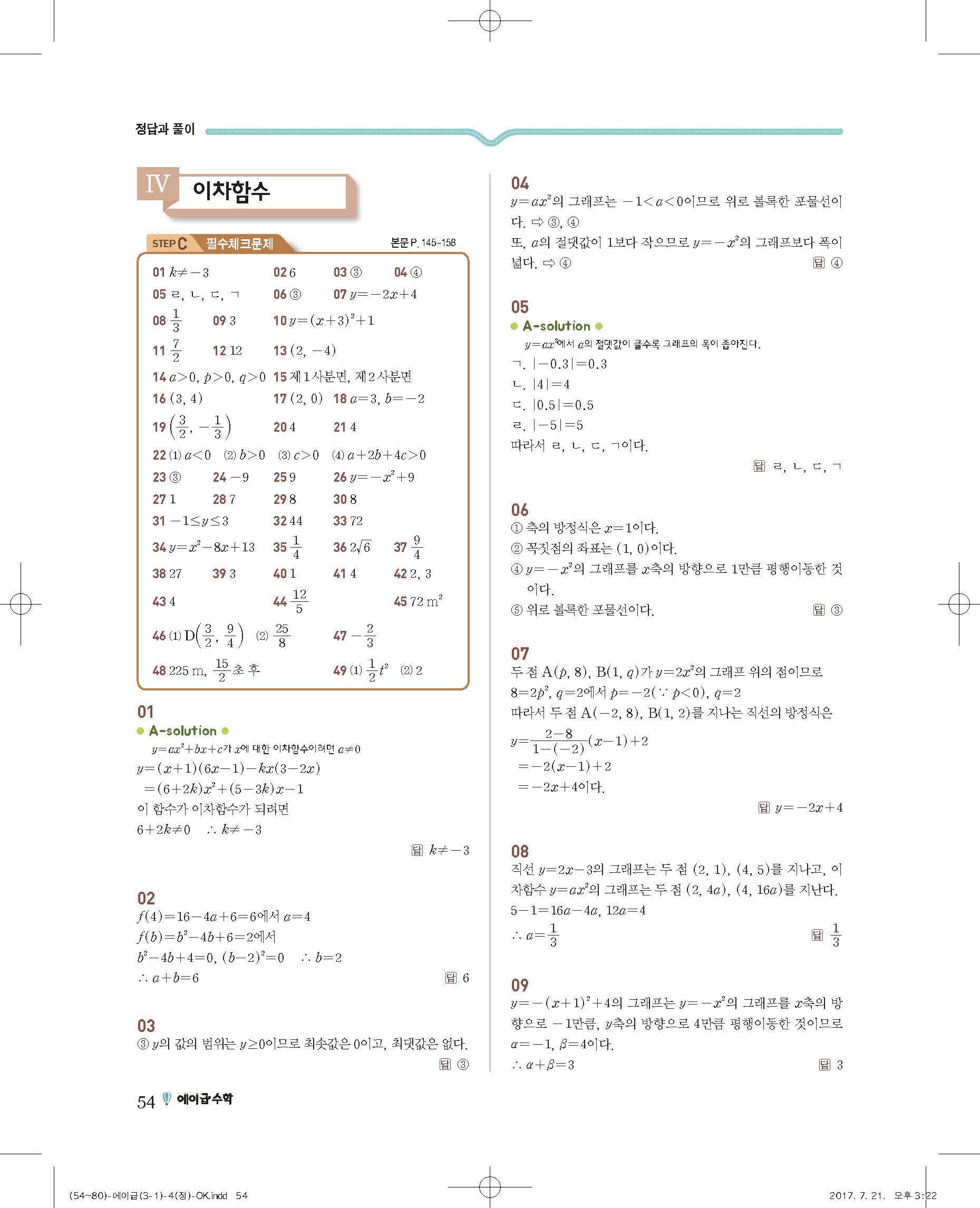 에이급수학 중3상 답지 사진답지 빠른답지 모바일최적화