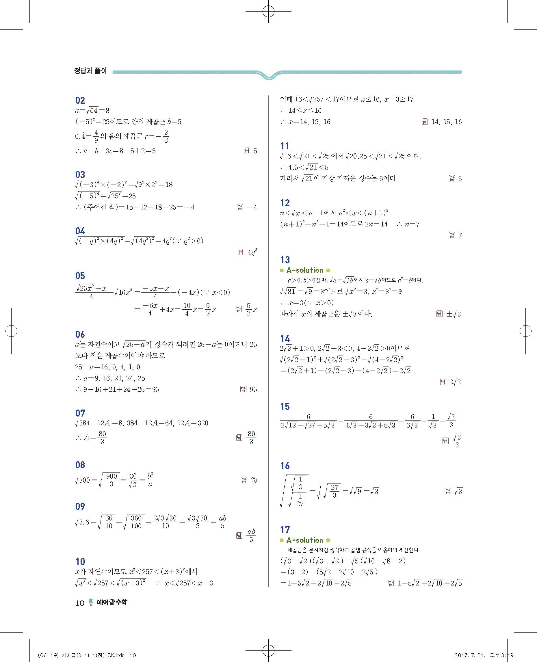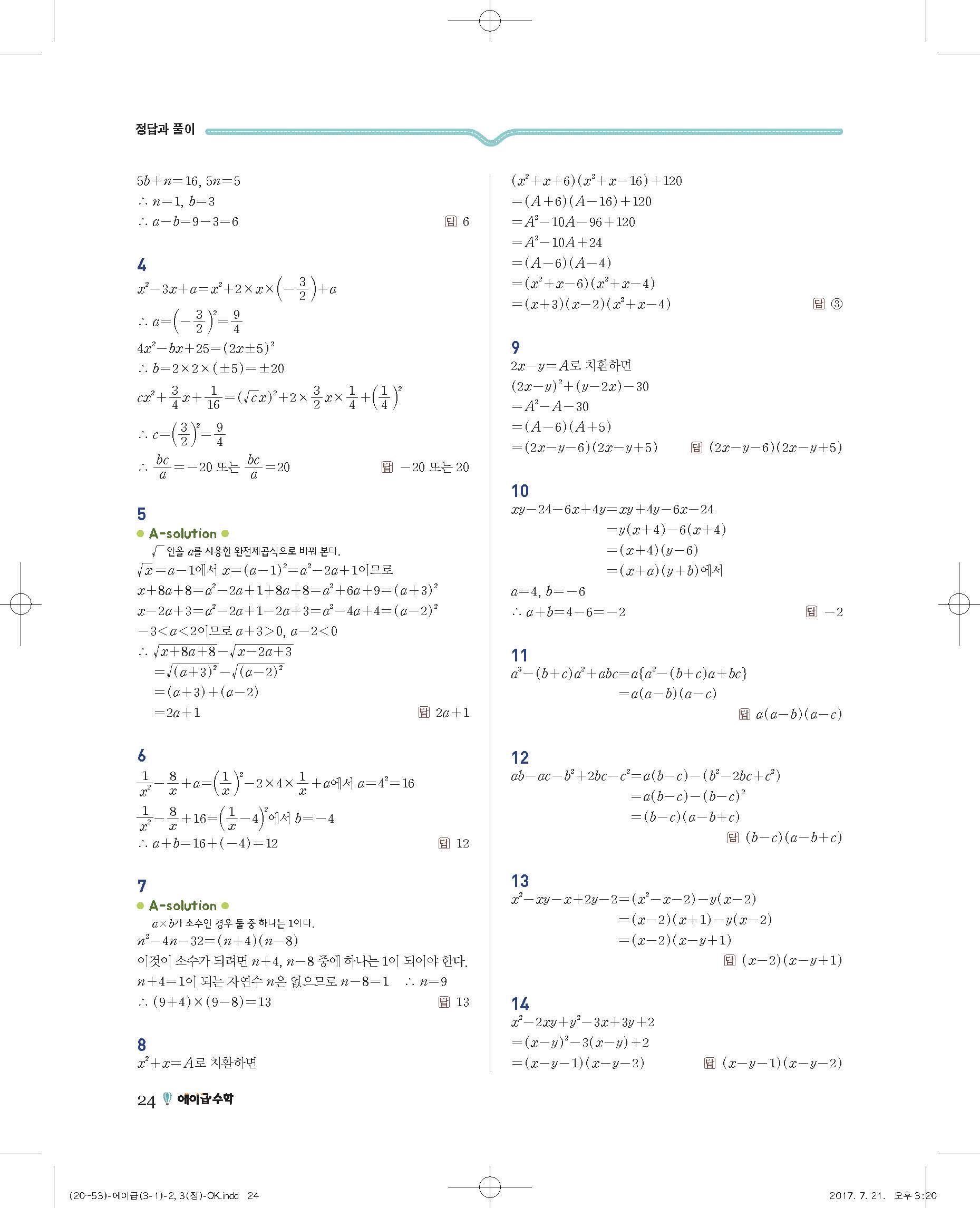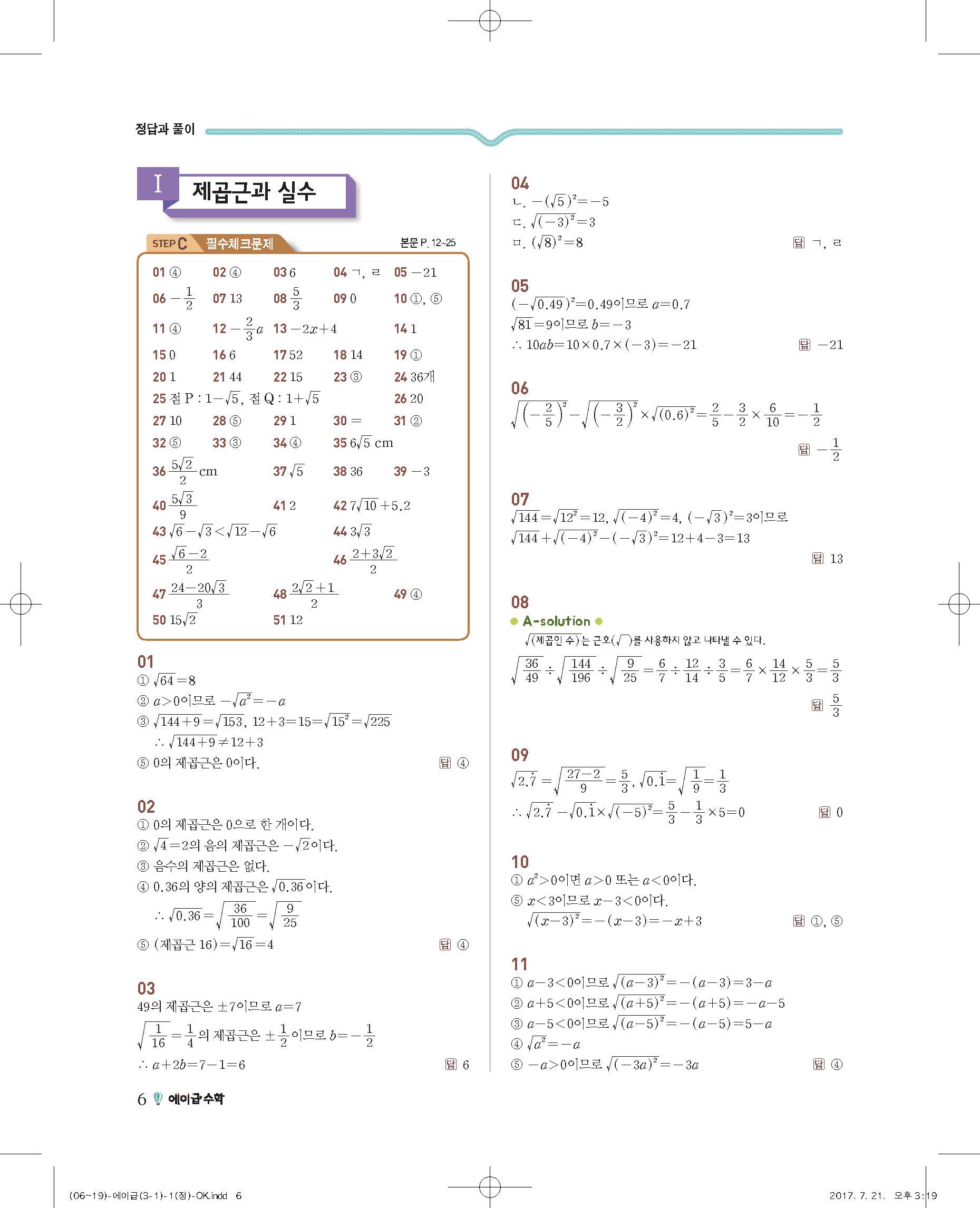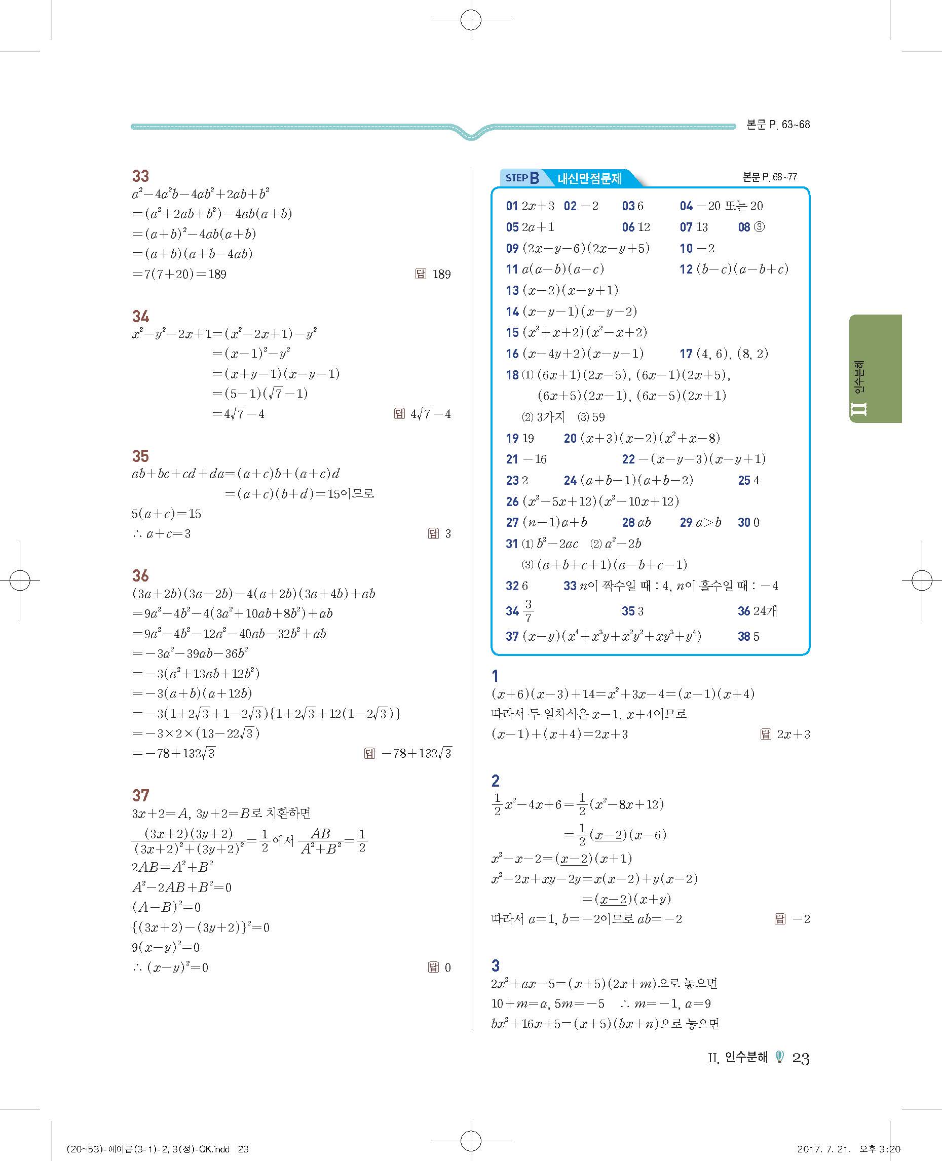 에이급수학 중3상 답지 사진답지 빠른답지 모바일최적화